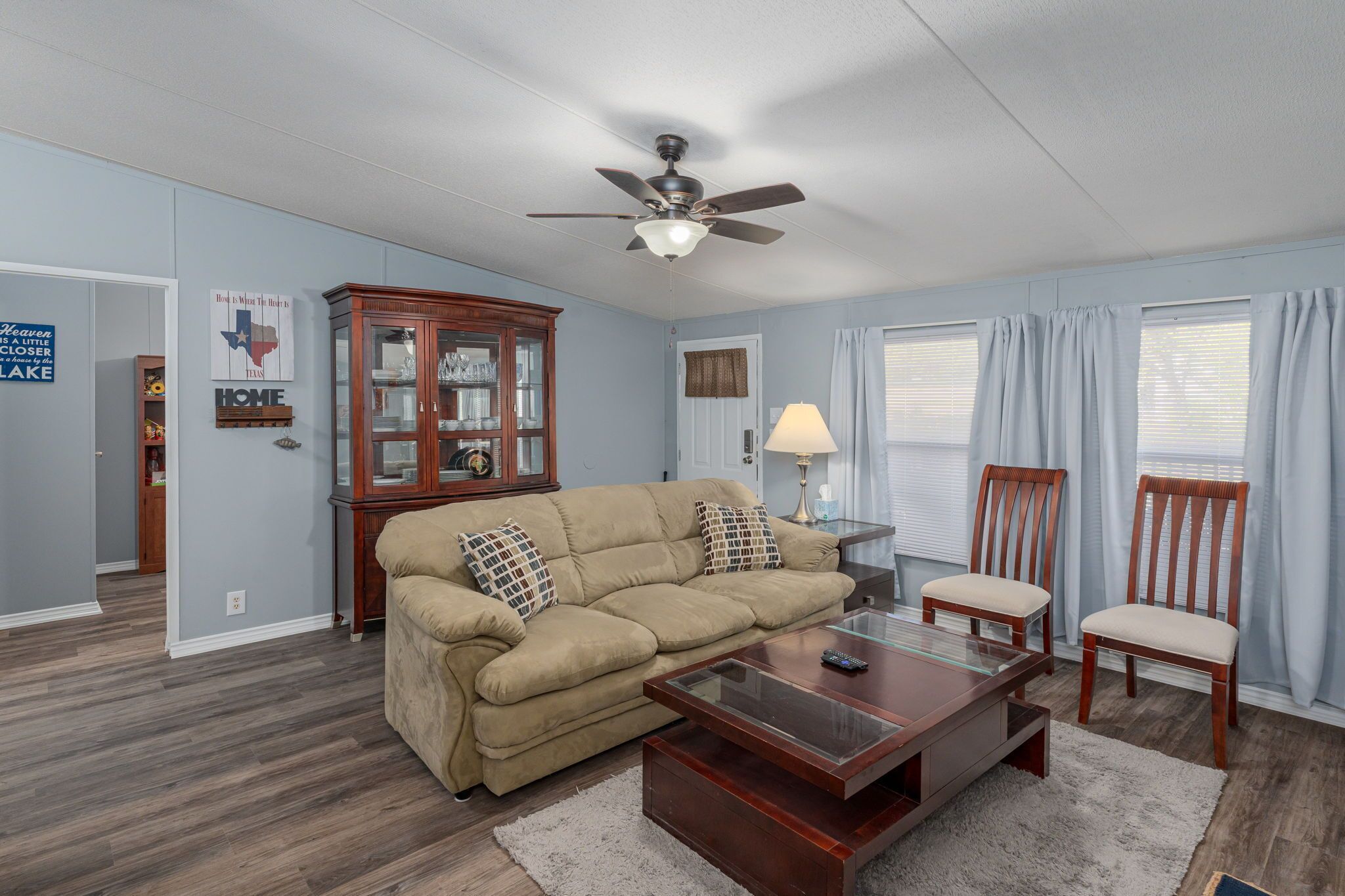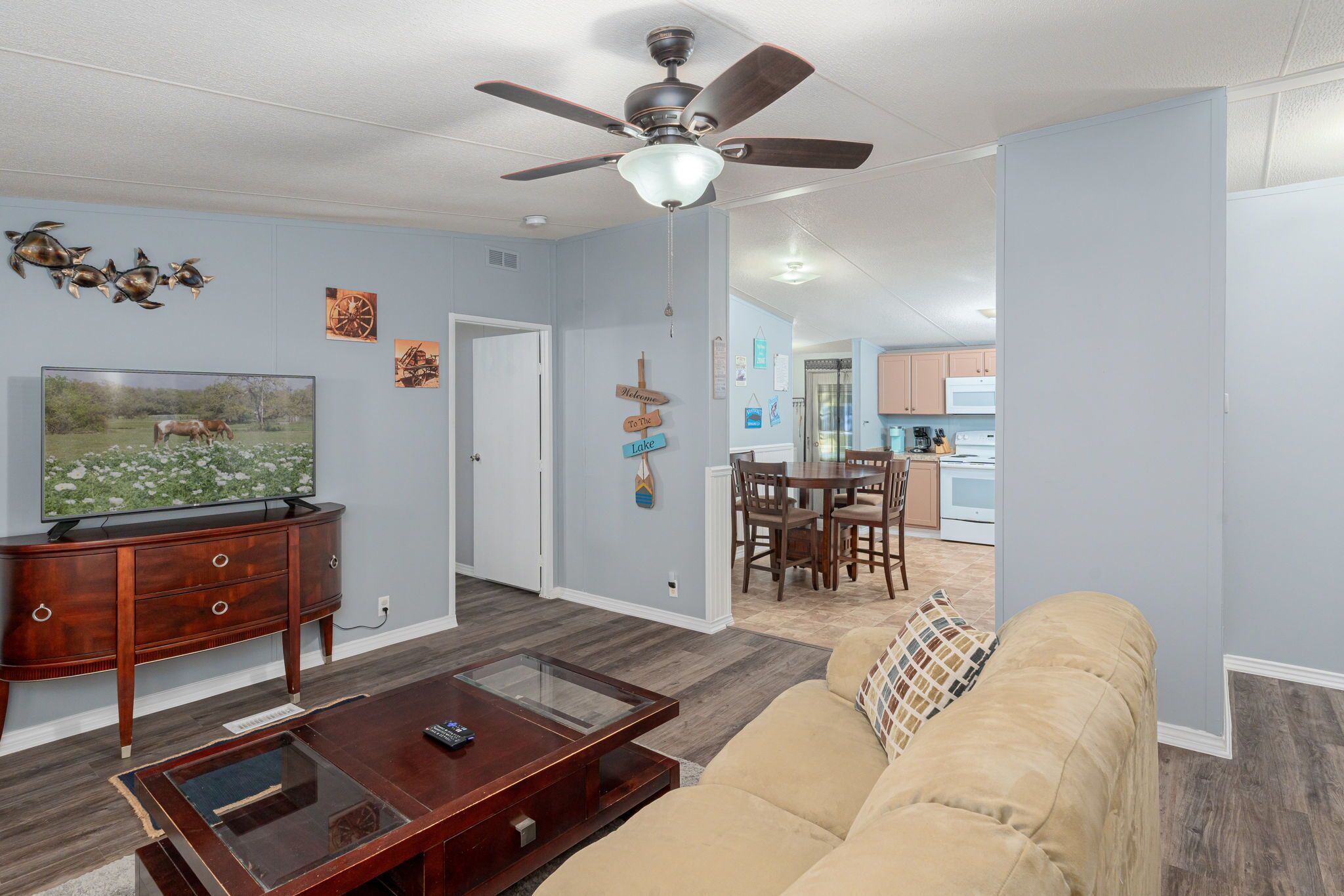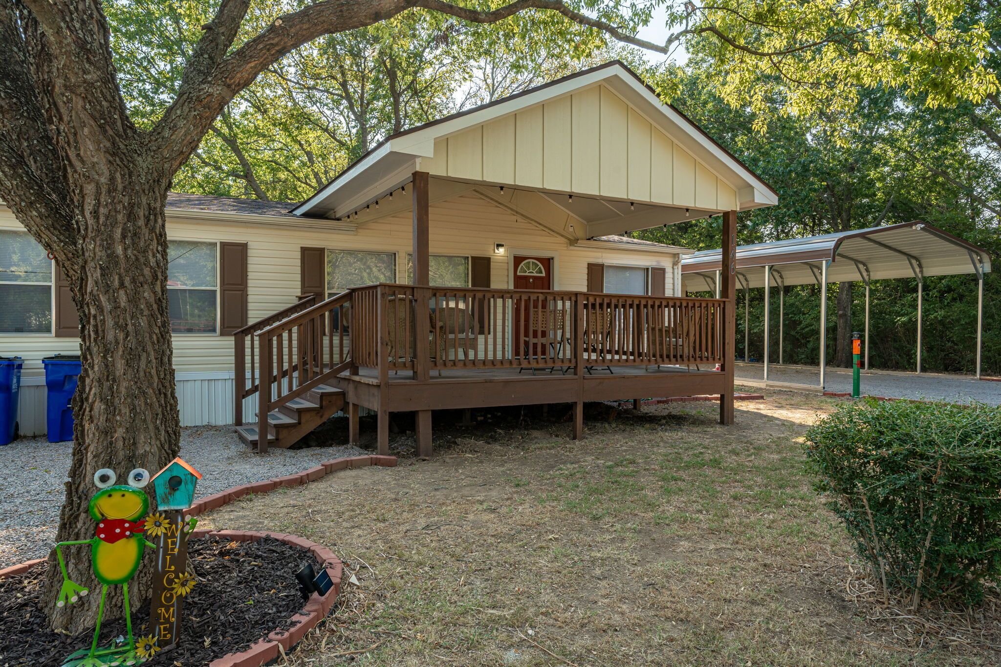 3Bdrms Firepit Close to Beach, Swim, & Fish Texoma VACATION GET AWAY! TURN KEY LAKEHOUSE RENTAL HOME close to Marina on Lake Texoma! This property has a wonderful 3 bedroom, 2 bath, Manufactured LAKEHOUSE with approx. 1100 sq. ft. which includes front porch and back patio for BBQ's and entertaining. Property has covered parking & additional parking that gives plenty of space to park 4 cars and 2 boats.-- PROPERTY DETAILS --3 TOTAL BEDROOMS - Master Bedroom: Queen | Guest Bedroom 1: Queen | Guest Bedroom 2: 2 Twin XL | Living Room: Queen Sofa Sleeper2 TOTAL BATHROOMS - Master Bathroom: Shower & Soaking Tub | Vanity (2 Sinks) | Guest Bathroom: Shower/Tub Combo | Vanity (1 Sink) KITCHEN AMENITIES - Refrigerator | Stove-Oven Combo | Microwave | Dishwasher | Regular Drip Coffee Pot | Keurig | Toaster (4 Slots) | Other Kitchen EssentialsDINING AREA IN KITCHEN - Seats 6SPECIAL FEATURES - Firepit | Propane Grill | Large Yard | Games: Board Games| Internet | 60" TV w/ ROKU | Plenty of parking, including covered parking for 3 vehiclesTHIS HOME COMFORTABLY ACCOMMODATES 8 GUESTS.-- THE BOOK TEXOMA DIFFERENCE --Book Texoma absolutely wants to make your vacation great. We know the area because we have enjoyed the area personally for years. We offer the largest and most diverse collection of properties on the Texas and Oklahoma side of the lake which accommodate up to 30 guests. If you have a question, please ask. We are happy to recommend a property that will best fit your needs. The best fit may be a property we don’t represent, but we know all the rentals in the area and we are happy to help. Try Book Texoma today!- Must be at least 25 years old to book- Additional fees and taxes apply- Photo ID may be required upon check-in- Pets are allowed - not allowed on furniture, guest must clean up waste- No Smoking indoors, we will charge for littered cigarette butts- No prom parties*Large group? Too large for one property? No problem! Contact us for information on our territories. With Book Texoma, you can book one or more additional properties and be right next door or around the corner from your group!
