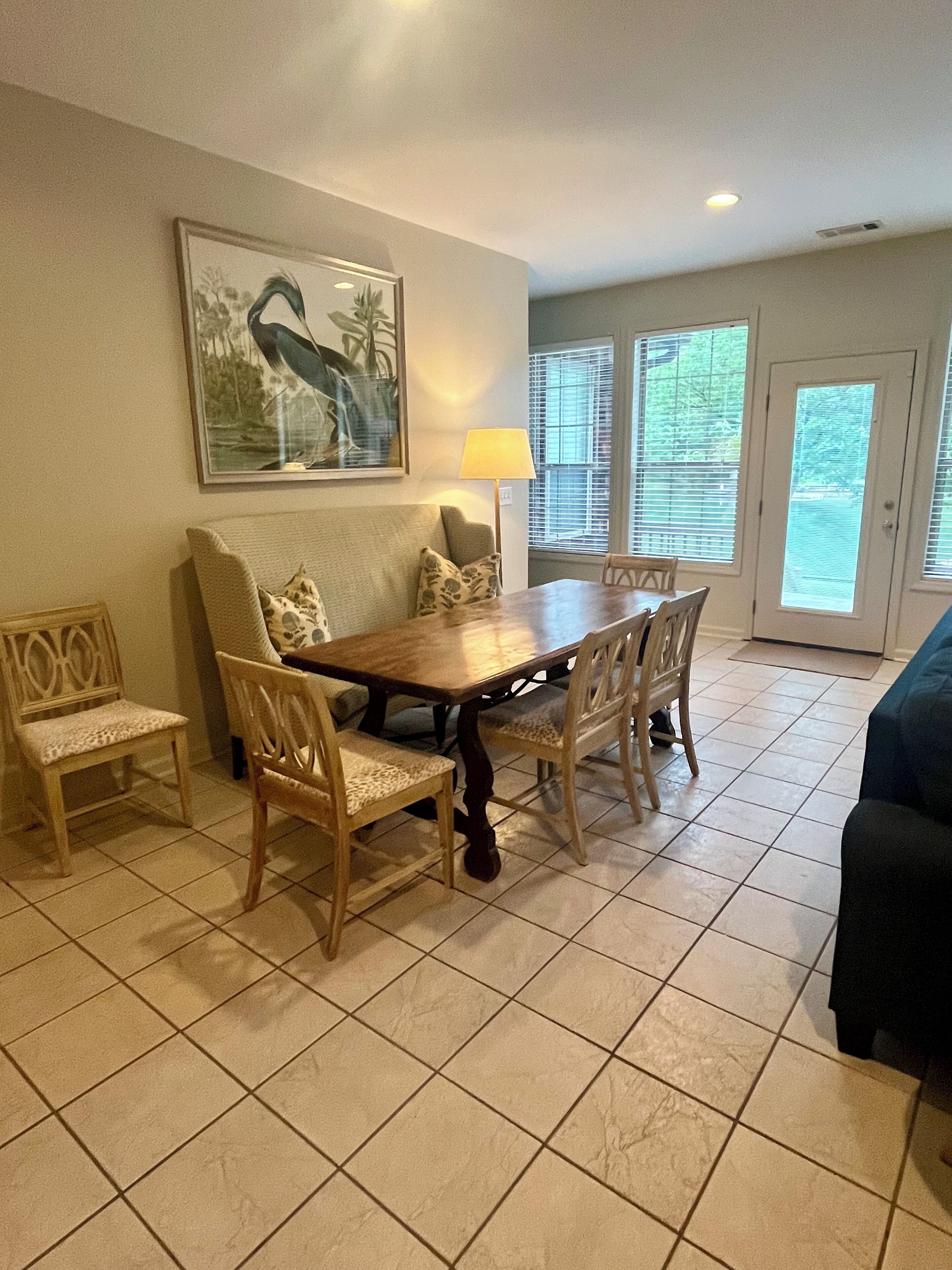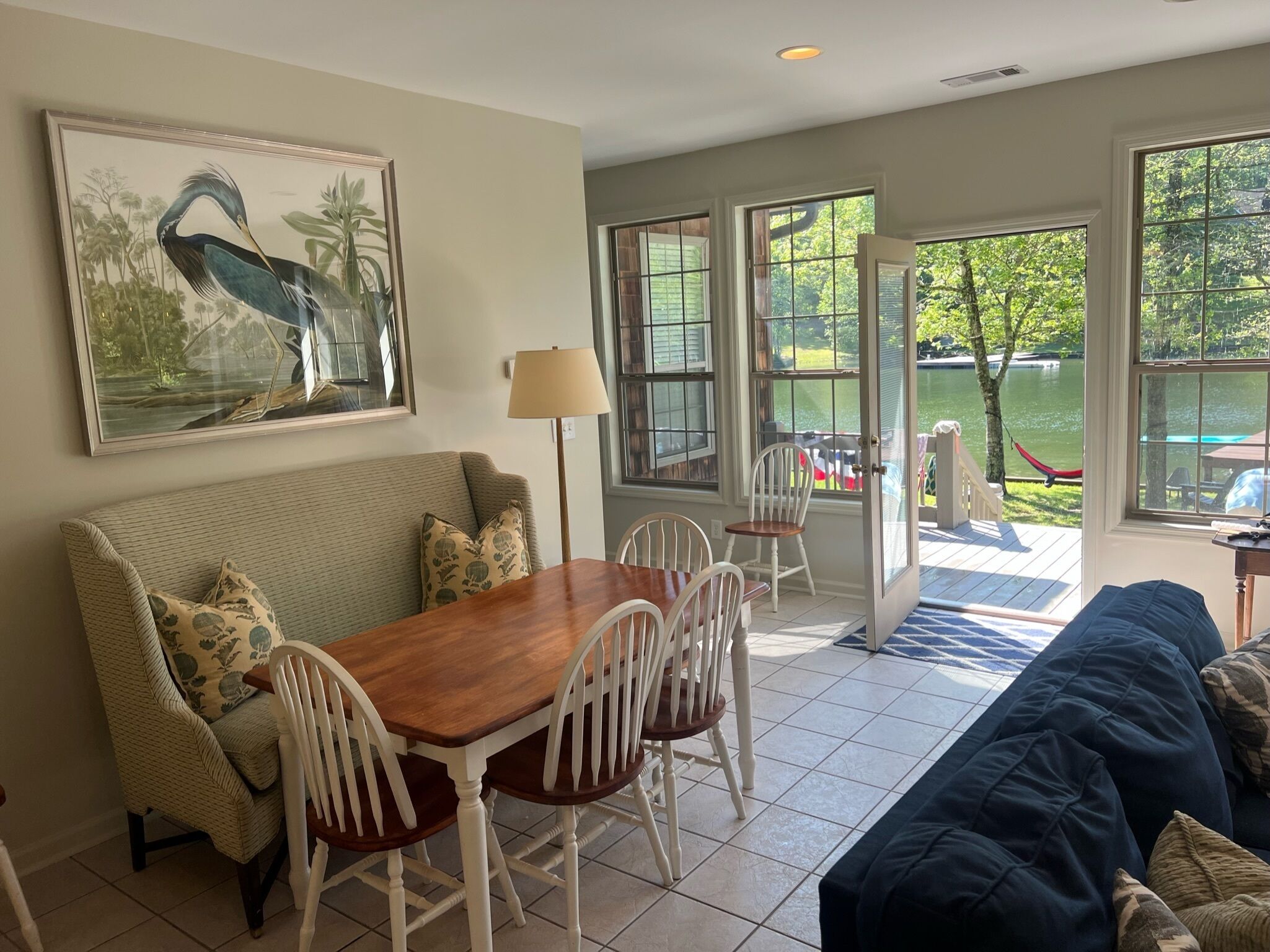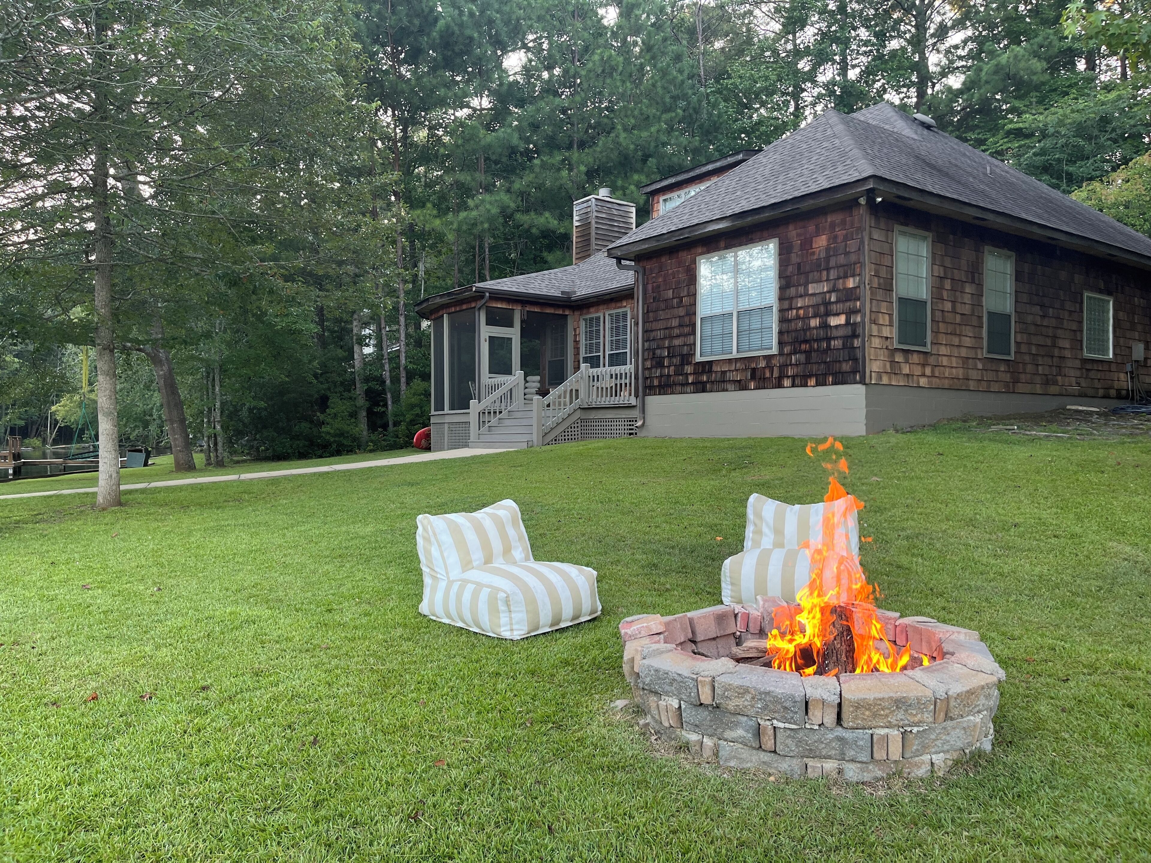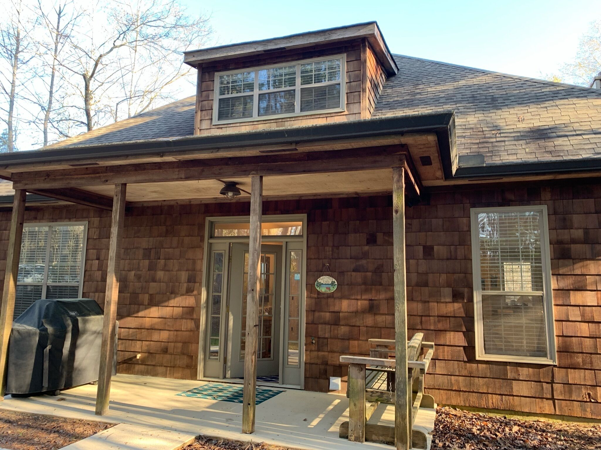 Heron’s Hideaway- Charming cedar home on Lake Martin with flat lot and dock This charming house with cedar siding is tucked into nature on a flat, waterfront lot in a quiet slough. There is a dock to tie up your boat, swim, or just enjoy the views of the water. An assortment of water toys are available to guests with this rental including a stand up paddle board, 3 different tubes, and a Maui mat so you are sure to have plenty of options for fun on the water. Large rooms with an open floor plan allow for entertaining groups but is also quaint enough for that getaway with your significant other. The owners love to cook so the kitchen has been well stocked for all your needs. There is also a charcoal Weber grill (please bring your own charcoal!). Enjoy your meals on the screened porch looking out at the lake or inside at the dining table. A fun time is sure to be had by all in this relaxing getaway!This property is close to The Landing, Willow Point and Russell Lands (Catherine’s, Spring House and Fanny Goldmine’s) by boat and not much further by car. Or take a quick ride to Smith’s Marina for some frozen yogurt! Kowaliga and The Social are also close by boat for your dining needs. Don’t worry, if you don't have your own boat there are several options for rentals. Delivery to the house is even an option wirh some boat rentals. This home boasts 3 bedrooms and 3 bathrooms. Two bedrooms include a queen bed and twin bunks (sleeping 4 each). The downstairs queen room has an attached bathroom with shower which is also accessible from the den. Also downstairs is the spacious master suite with a king bed, TV, and a large bathroom with separate shower and jetted tub. The third bedroom (queen and twin bunks) is located upstairs with its own bathroom (tub/shower combo). Upstairs has a separate HVAC to ensure everyone is comfortable. Home has wi-fi so you can comfortably work from home if desired! Streaming options and YouTube TV included. Kitchen includes both a Keurig and a programmable 12 cup traditional drip coffee maker. Forgot groceries? No problem- with Walmart+ you can have them delivered to the house! Home is 1.5 hours from Birmingham, 1 hour from Auburn, just under 1 hour from Montgomery & 2.5 hours from Atlanta.External security cameras in use when unoccupied.