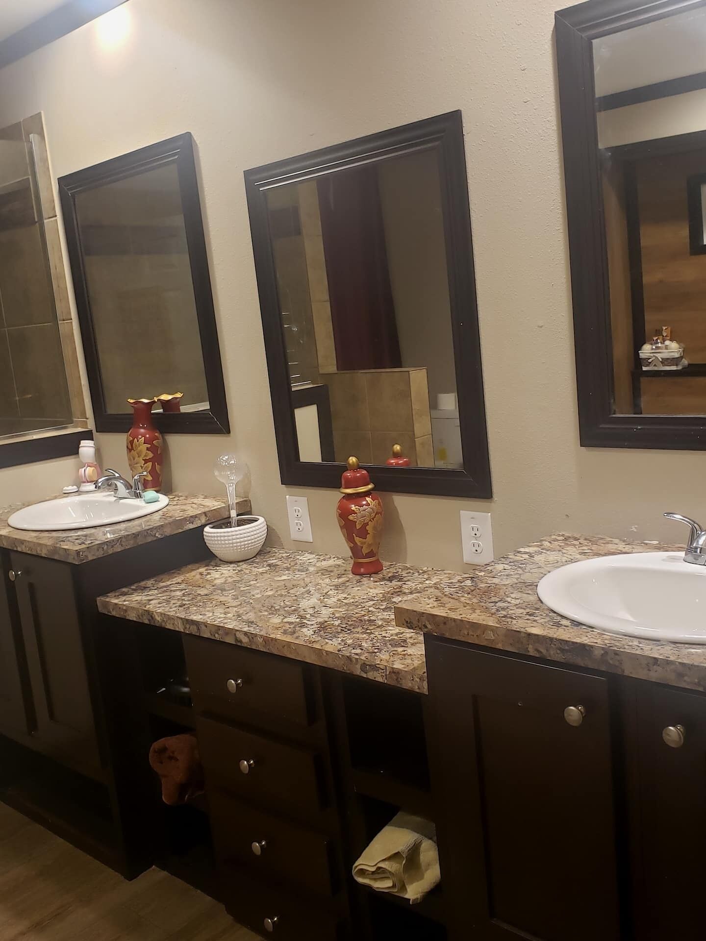 Safe area minutes from,restaurants,mall,Walmart relax in this newly built modular home with a charming entertainment center with 65" tv ready for movie night or a battle on any gaming system. High windows that give a gazing view of the Peaceful neighborhood and a cozy bath inside of the deep garden tub perfect for couples or a long solo soak.The spaceThis newly built modular home is right by exit...