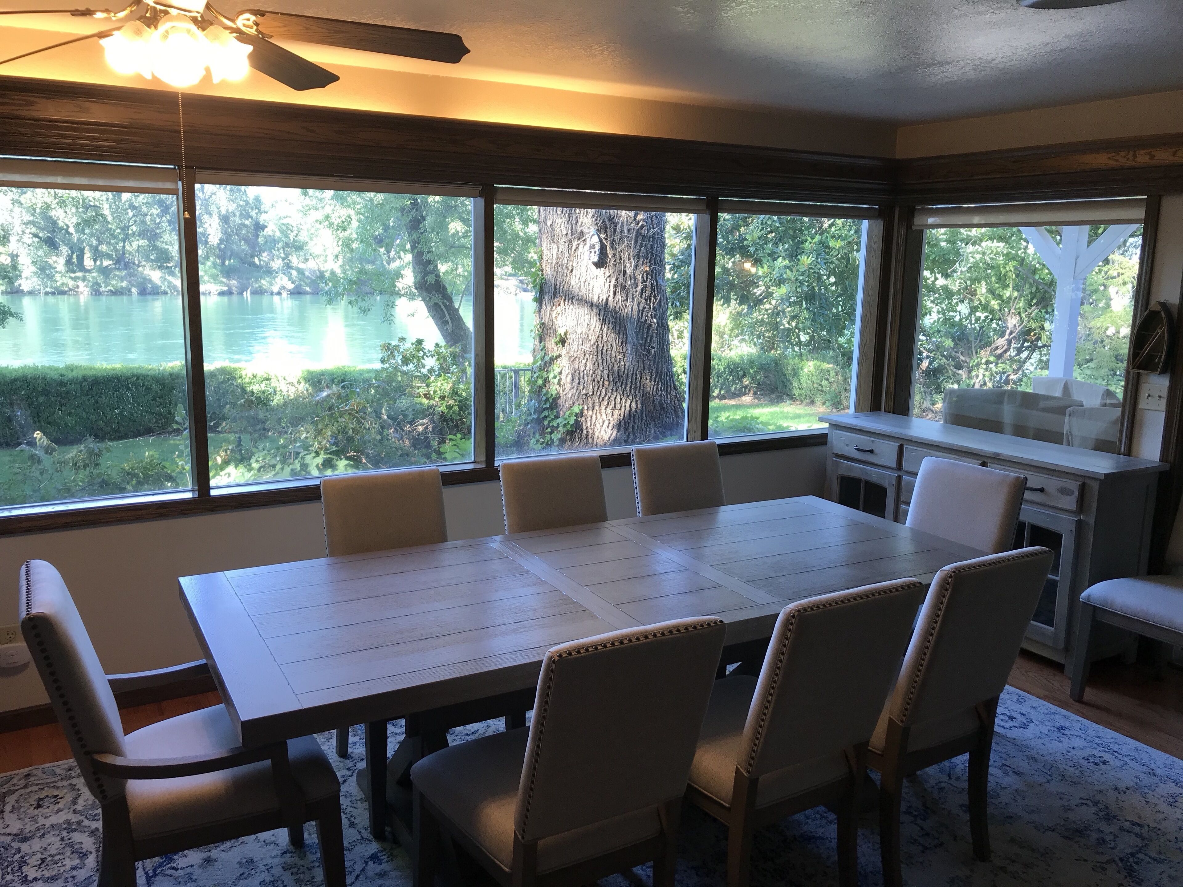 Fish on the Sacramento River! Amazing River retreat overlooking the Sacramento River.Enjoy lazy days enjoying the views, fishing, bird watching hot tubs and a swim in the pool. Great floor plan for family gatherings and weekend retreats.Whiskeytown Lake and Lake Shasta are just minutes from the house. Master suite w/new marble bath. Three additional bedrooms, 2 with queen size beds and 4th with 2 queen beds. Hall bathroom w/shower over tub and just been remodeled. New T.V and cable installed in master as well as Living room. Wifi internet available. Cleaning service available during your stay for an additional fee Gardener and Pool services may occur during your stay, please let them do their job!