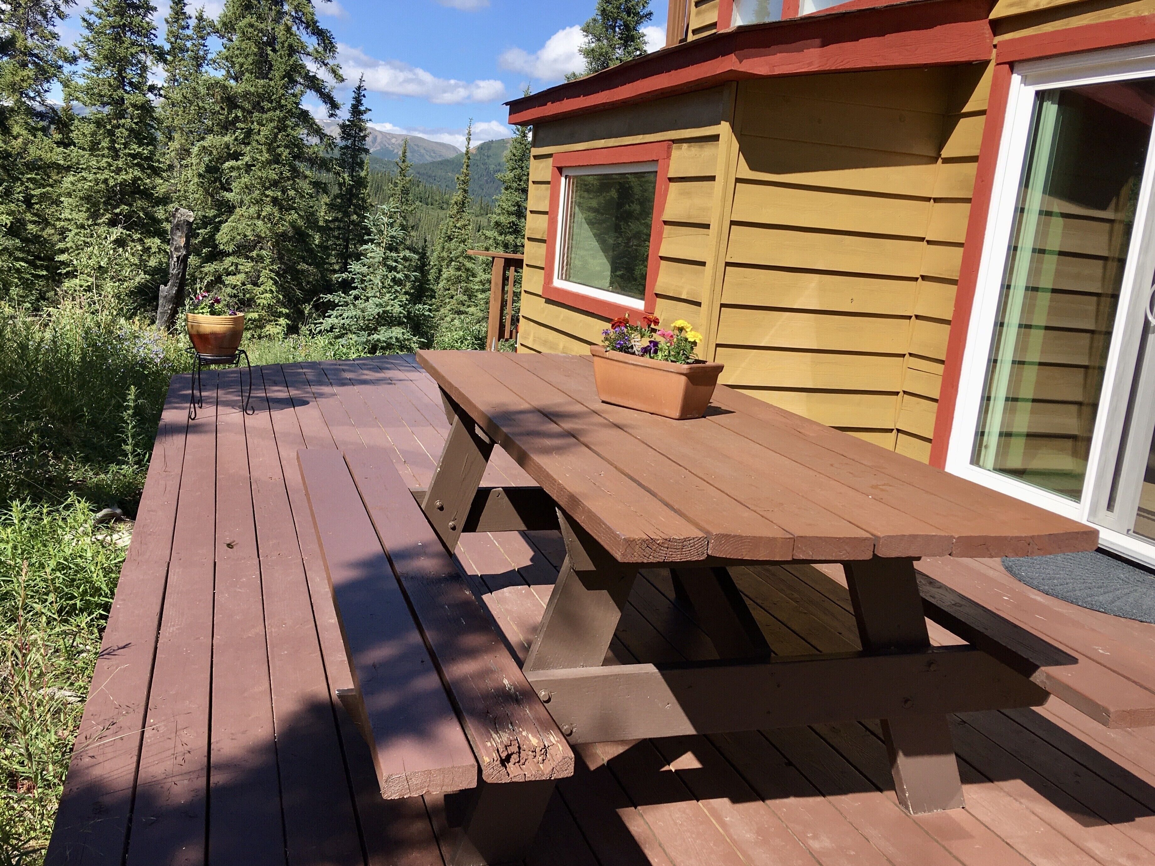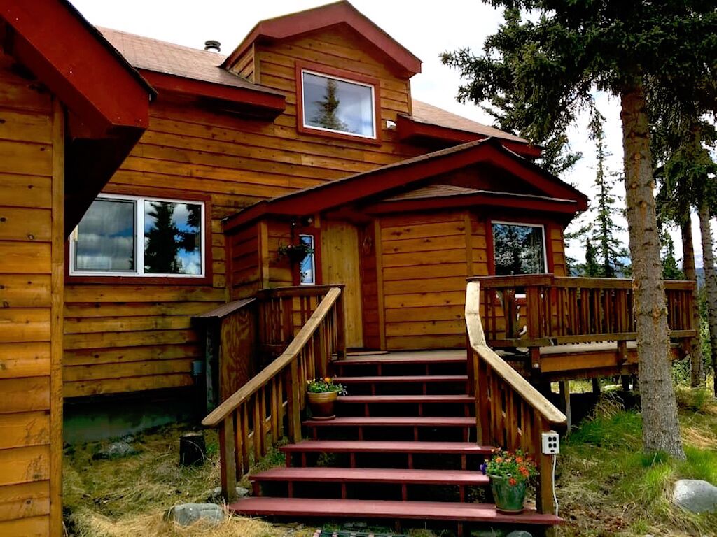 ☆ Denali Sunset House - Wild scenery with creature comforts! A spacious craftsman-built home perched on a ridge at the edge of the park. You will enjoy beautiful mountain views out every window, while savoring your morning coffee or a glass of wine on the upper or lower decks. You won't even notice the lack of a TV. There is a full kitchen complete with a crock pot and coffee maker, and an outdoor grill for preparing meals with your family or friends. Spacious bedrooms and comfortable beds ensure you’ll get a good nights sleep before heading out on your Denali adventures. Providing an alternative to the crowding noise and traffic of Denali’s hotel strip, our house was designed with a focus on providing relaxing spaces for hanging out, socializing or solitude. Our home has been featured in Travel & Leisure's "7 Stunning Homes Near National Parks You Can Book on VRBO." There is room in the house for a maximum of 10 people. There is one downstairs bedroom and three bedrooms upstairs. For new parents, a pack & play is located in the upstairs closet. It costs $50 a night for each additional person over 6 guests. If you want to have more than 6 people, please keep in mind that there is only one shower (in downstairs bath). Upstairs, there is a half bath and a sink, a washer and a dryer.No pets allowed, please.If you plan to arrive by train to Denali, you will need a rental car to get around the local area and to our house. "Keys to Denali" and "Alaska Auto Rental" located locally in Healy offers rental vehicles (including 12-passenger vans) and railroad depot pick-up and drop-offs. Be sure to book in advance. For a fly over of the house, go to Denali Sunset House on youtube.You will have access to the entire house, except the garage. This includes upstairs and downstairs decks, the yard surrounding the house, and of course you can step into endless wilderness just by walking down our driveway. The home is located a mile off the Parks Highway, just a 10 mile drive to the Denali Park Visitor Center and the train depot, and the main hotel/restaurant and shopping zone. A few restaurants, and a nice locally owned cafe and art gallery are located within two miles, as is the trailhead for the popular Triple Lakes hike (no fishing license required inside the park).We live close by. You can reach us by text or phone. Terry is around in the mornings, and Becky is usually around in the afternoon and evenings, so one of us is usually available to answer questions or offer advice on the local area.We would suggest that you buy your groceries in Fairbanks or Anchorage. Although, there is a small supermarket 20 miles north in Healy. There are convenience stores around here, but they are limited and more expensive. We provide all linens, dish soap, trash bags, paper towels and toilet paper. A coffee maker is provided. The 1.5 mile road from the highway to our house is a maintained gravel road. It should not pose any problem for any vehicle.Enjoy the books and board games - there is no TV, but have high speed Starlink internet!Minimum stay two nights, please. At times, we will get that odd night that is available between two bookings. We will consider waiving the two night minimum stay in unique cases like this.