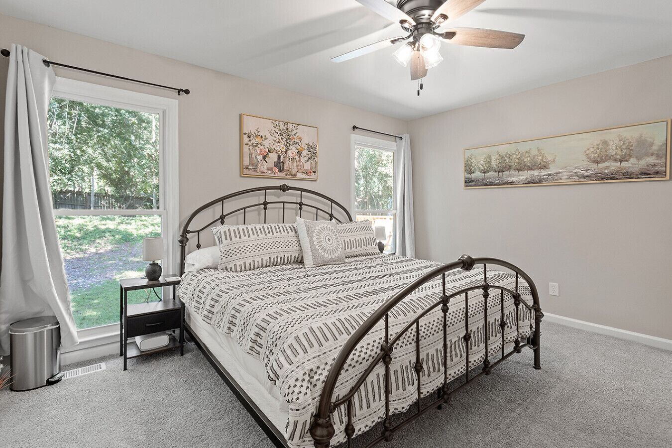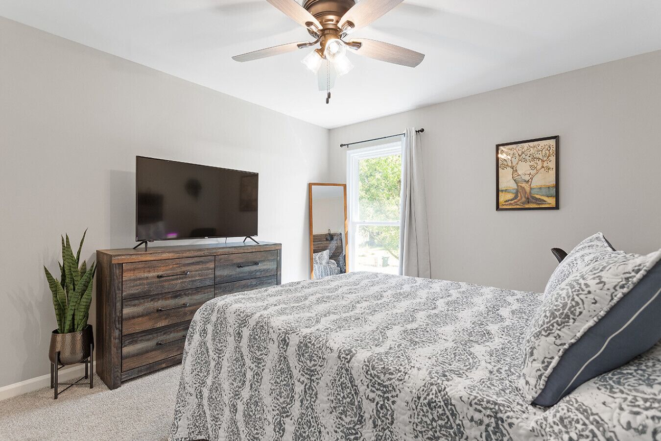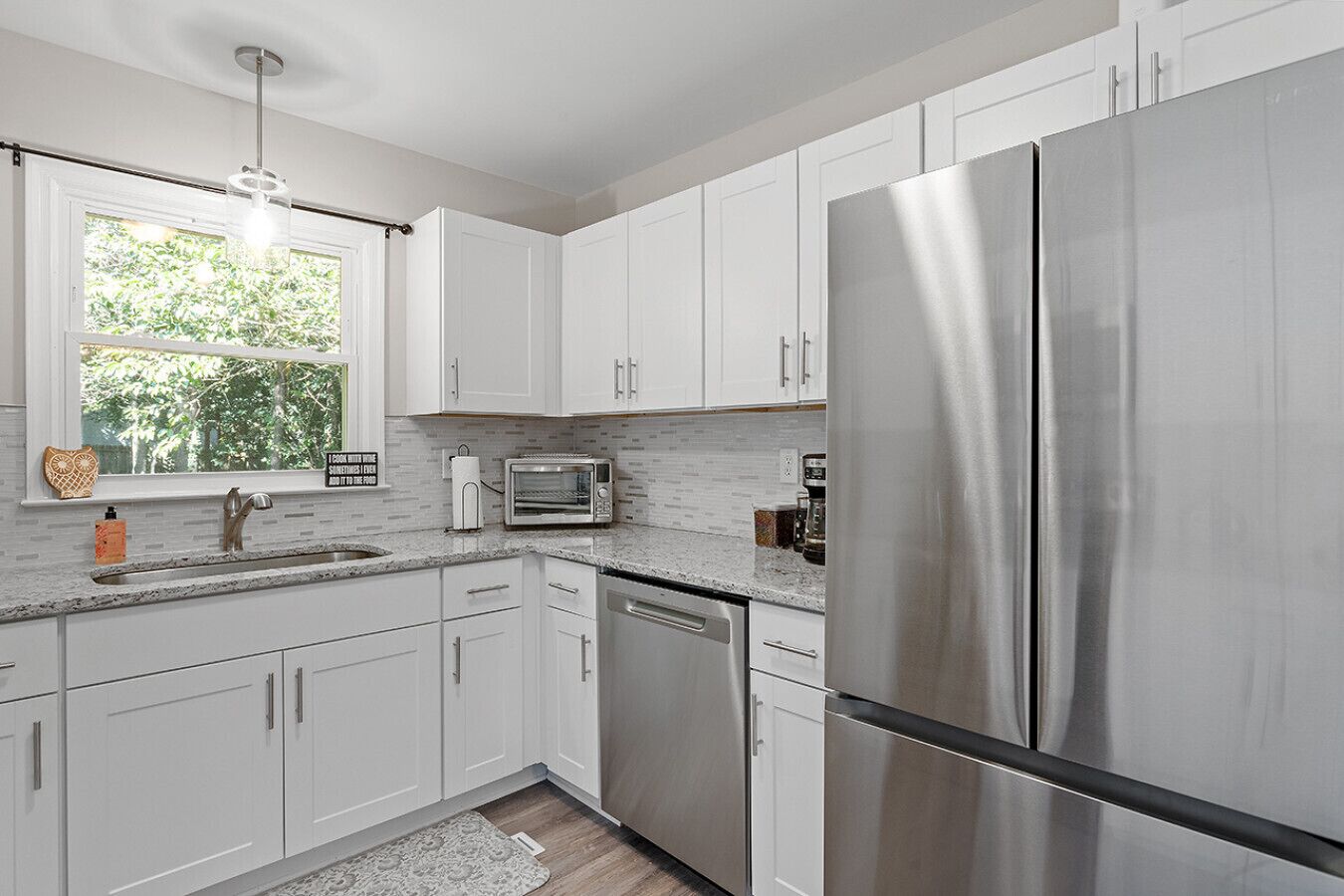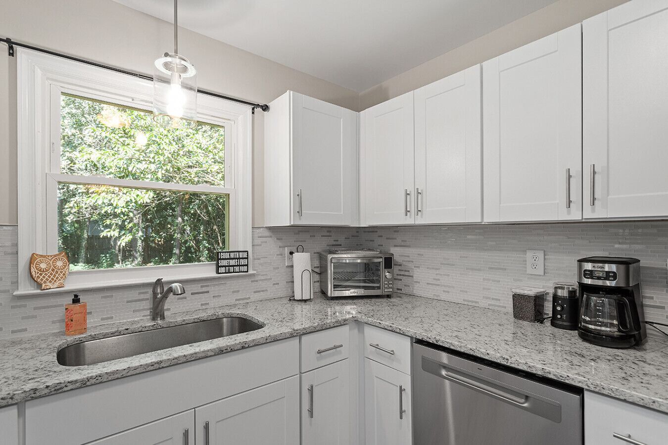 Garner Relaxing Stay GORGEOUS Ranch with 1 car garage in the HEART of Garner! Features a bright open floor plan with a beautiful kitchen. The home has been completely renovated, and has a comfy feel the minute you enter, just like home. Enjoy your morning coffee and your evenings feeding your crew on the patio with the grill on the back deck overlooking the quiet backyard or just taking in the quiet nights with the bright stars above. Nearby Mom and Pop restaurants, coffee shops, banks, and grocery, are all within distance. Work from home in one of two desk areas equipped with fast internet. Bring your own login for the smart TVs. Enjoy preparing meals in the fully equipped kitchen. Sit in the larger dining table that seats 4-6. Washer and dryer available for your laundry needs. Park up to 4 cars in the driveway. 3 bedrooms with 2 full showers centrally located to all kinds of great things (State Farmers Market, Cabela's and lots of great local spots in Garner). Convenient to White Oak Shopping Center and highways. Easy commute to Downtown Raleigh and RDU airport. Quiet neighborhood very centrally located and can get into DT Raleigh in 10 minutes. Also, there are lots of great local spots in Garner. Digital Lock on Front Door. Landscaper will be mowing the front and backyard on a bi-weekly basis.