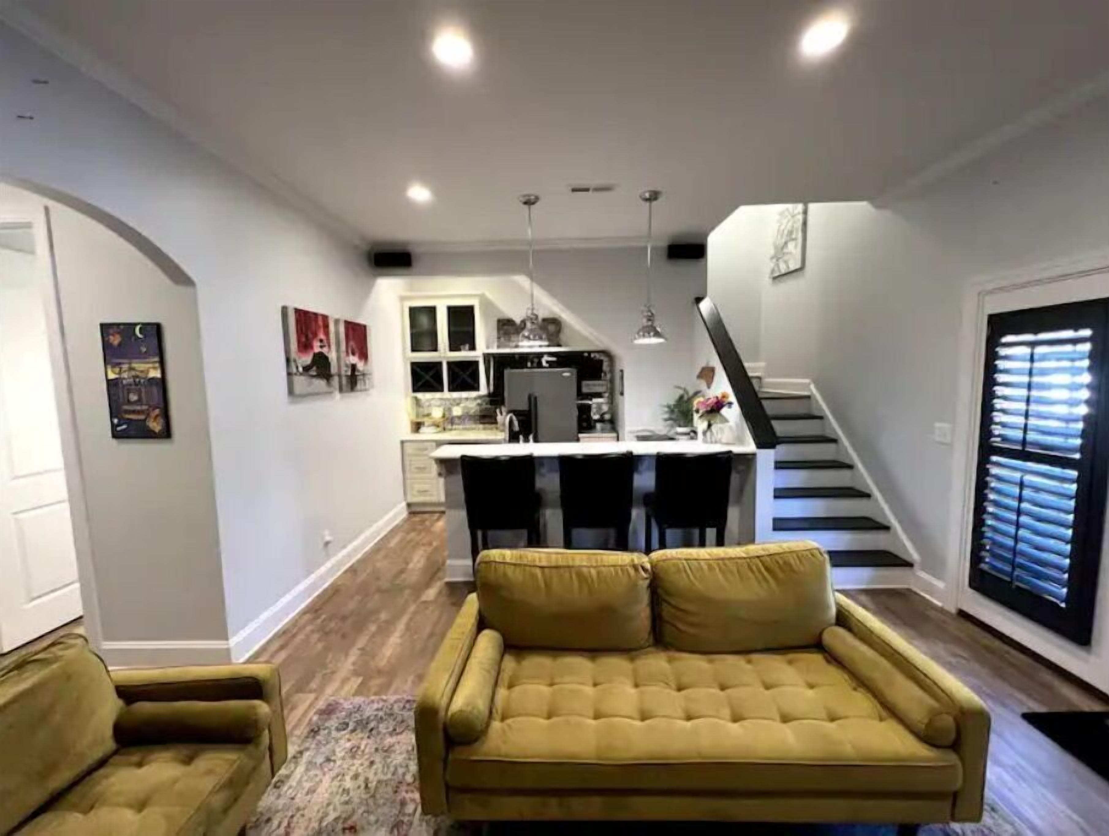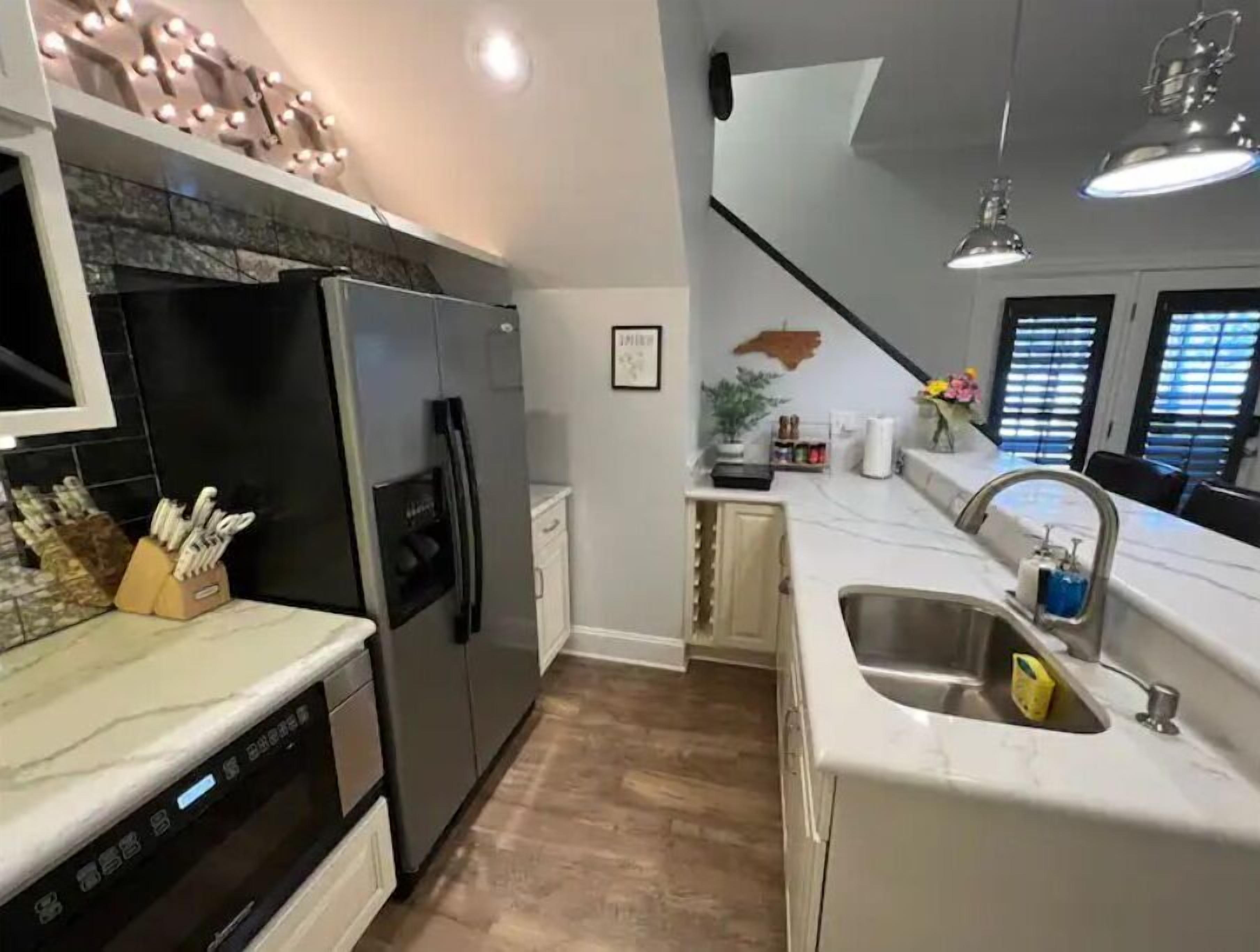 Fancy Private Basement near DTR Just 10 minutes to Downtown Raleigh (DTR), 25 to the airport (RDU) and 5 min from Lake Benson and charming Downtown Garner, we hope our renovated basement can be your home-away-from-home! Totally private. Queen bed, full bath, living area and kitchen w/ high-end built-ins, great water pressure, tall ceilings and doors, closet built-ins, grill, even a private exit/entrance (you must be able to walk up/down a small grassy hill). All are welcome; LGBTQ+ friendlyThe spaceEntire private basement for your use. We rent out the main and second floor.Guest accessThe entire basement and backyard are yours. (Living room, kitchen, bedroom, bathroom, patio, grassy fenced area)Other things to noteWe love living in Raleigh and happy to help with anything to make you feel at home here!
