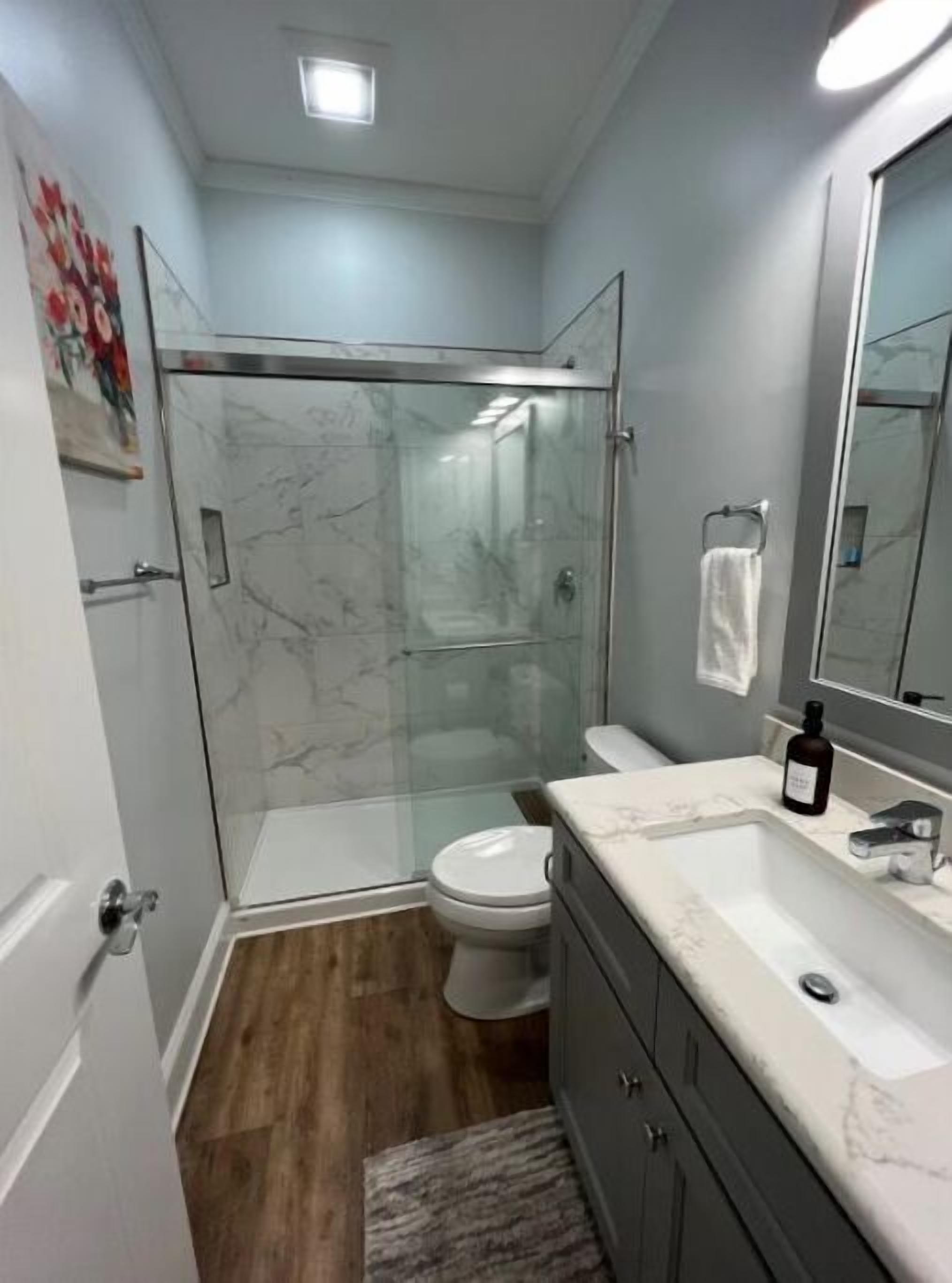Fancy Private Basement near DTR Just 10 minutes to Downtown Raleigh (DTR), 25 to the airport (RDU) and 5 min from Lake Benson and charming Downtown Garner, we hope our renovated basement can be your home-away-from-home! Totally private. Queen bed, full bath, living area and kitchen w/ high-end built-ins, great water pressure, tall ceilings and doors, closet built-ins, grill, even a private exit/en...