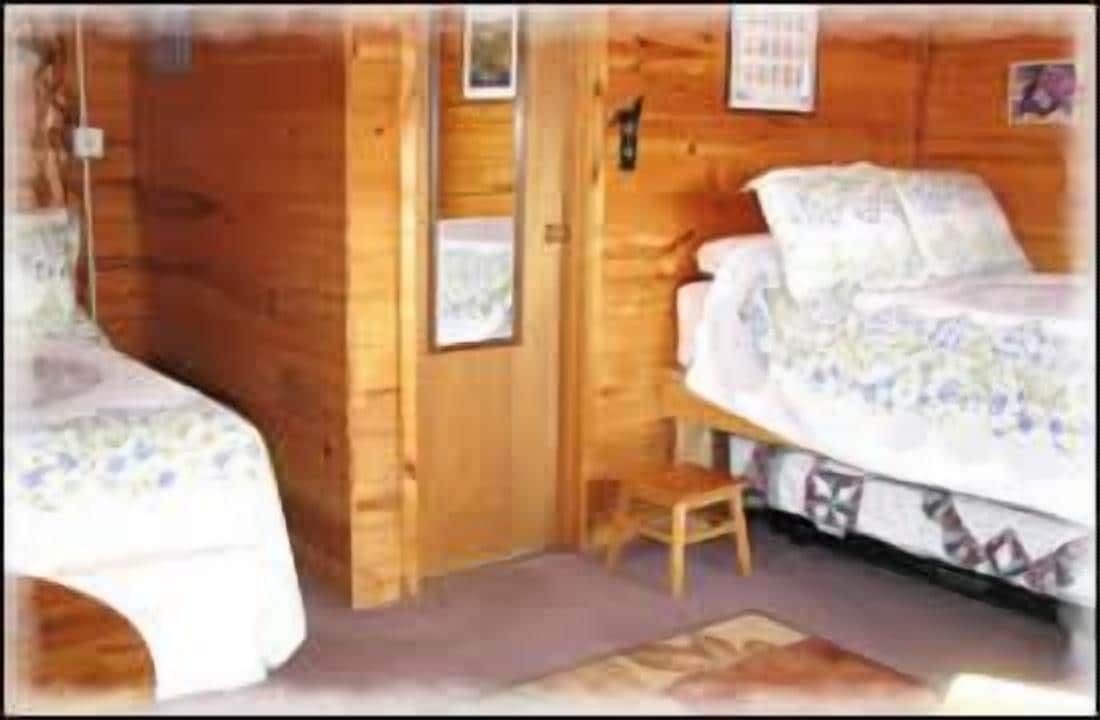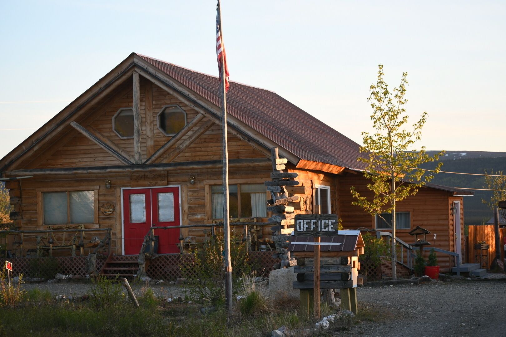 Earthsong Lodge - FAMLY EarthSong Lodge provides an opportunity for Denali Park visitors to have a unique, authentic place to stay overnight while visiting the National Park. Located four miles out Stampede Road (from "Into The Wild" fame), EarthSong is above treeline on open tundra, with unobstructed views of the Alaska Range. It's the perfect spot for guests who wish for a quiet, spectacular place to sleep, and have accommodations that are more than just a bed and bathroom. Log cabins are well-apportioned and have modern conveniences, spaced for privacy. On-site guests can enjoy some extra amenities, such as our coffeehouse. EarthSong is for the visitor that wants just a bit more from their visit.Family cabins have one double bed, one queen bed, and one twin trundle bed with bathroom. These cabins are perfect for the small families and people that need more than one bed. The cabin is a one-room cabin with separate bathroom, and beds are off-set from each other so you do not feel like you are sleeping on top of each other. Each cabin has bathroom with modern facilities, individual hot water heater, nice towels, extra pillows, and more to make your stay comfortable. Cabins are also insulated and heated for the cooler nights. All cabins have either private or shared porches. While there are no cooking facilities in the cabins, there is a shared kiosk where guests have access to fridge and microwave. Cabins are log, all hand-built and unique, and have nice mix of authentic and comfort, with a high level of cleanliness. Daily housekeeping service available.