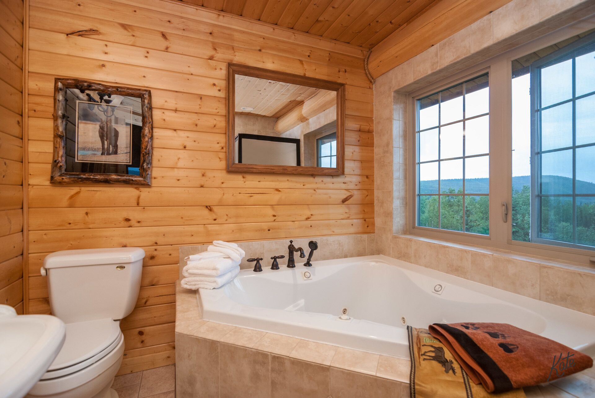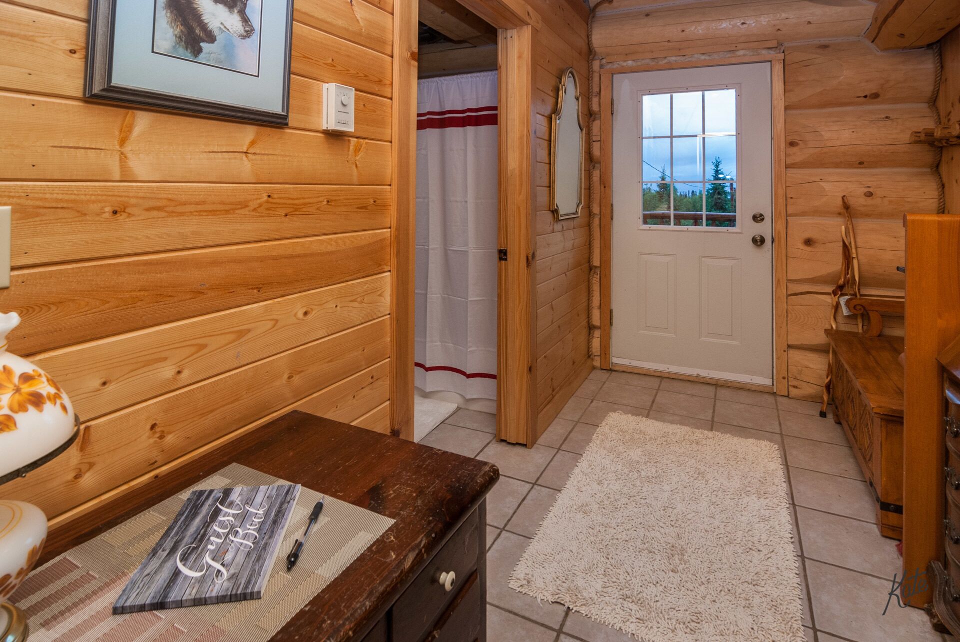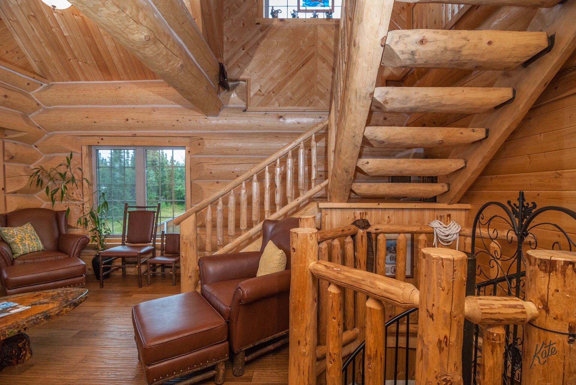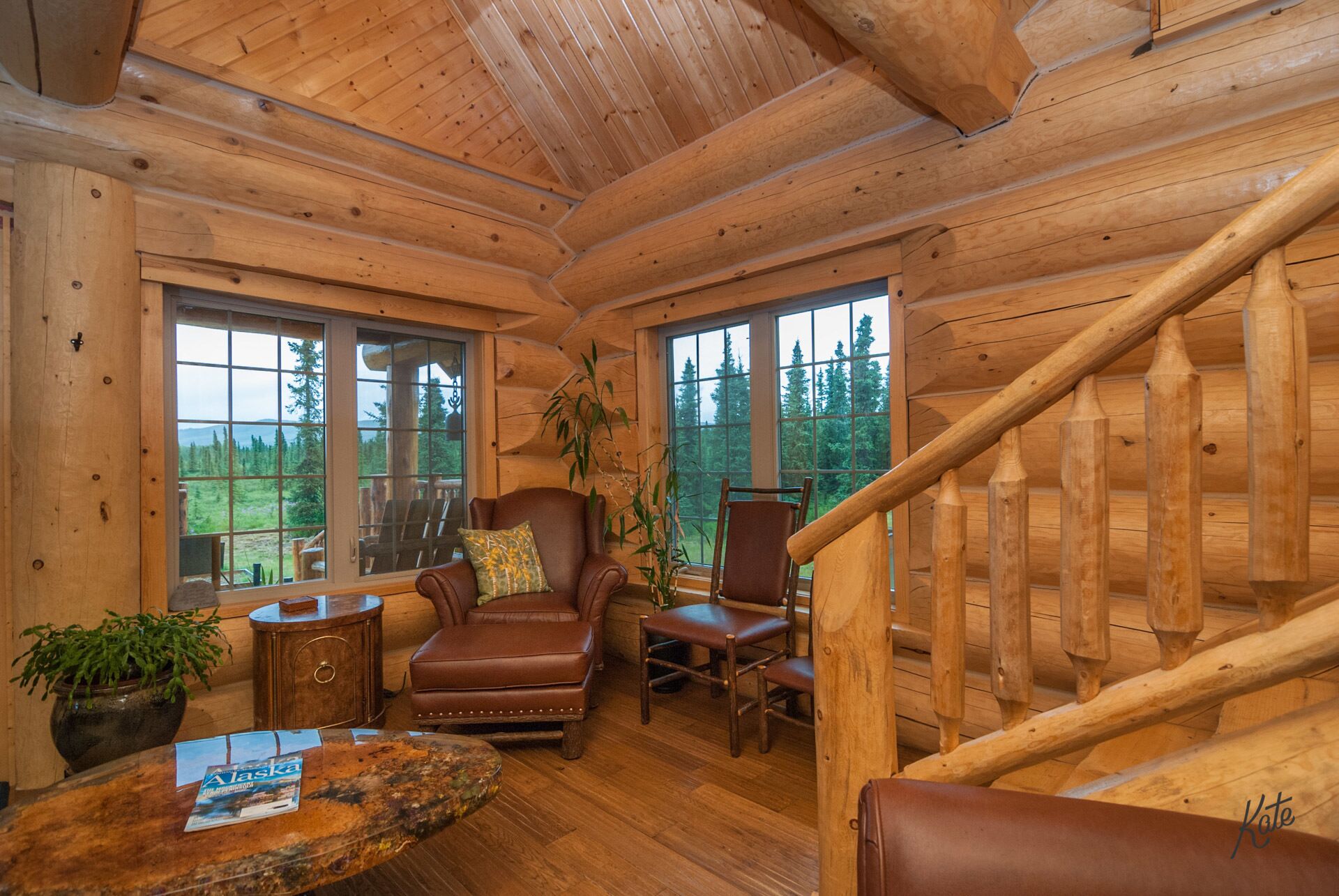 Denali only 17 miles away! Outdoor grill, washer/dryer, jacuzzi tub w/view Experience true Alaska in this amazing 2 bedroom, 2 bath upscale custom built log cabin. It is only a short distance (approximately 17 miles) from Denali National Park. This rental is truly a unique and a special place to enjoy your next vacation getaway. As soon as you drive in you are immediately greeted by the expansive wrap around deck with plenty of Adirondack chairs to take in the amazing view. On the main level you'll find the adjoining living room with a fully equipped kitchen, dining space, cozy bedroom and full bath with stackable up-to-date washer & dryer. Take a short walk upstairs and you’ll enter the open floor plan with spacious office area, charming king bedroom area, walk in closet, private balconies and full bath with separate shower & Jacuzzi tub. The basement is fully furnished and carpeted, with another full living room set, tv entertainment area, two queen sleeper sofas, and kids play area. Your stay will be complete as we provide fresh linens, complimentary coffee, and extensive movie/book selection.