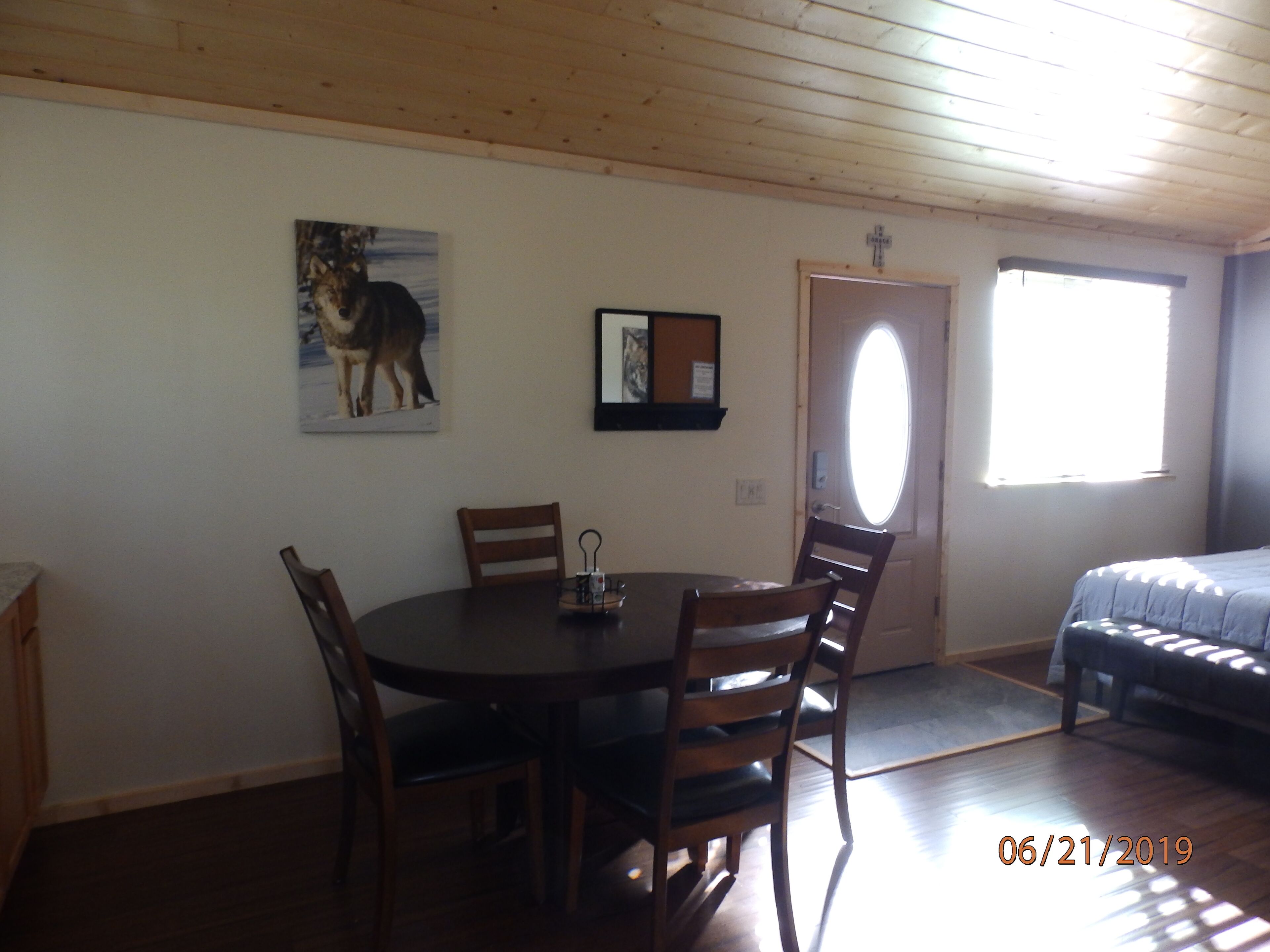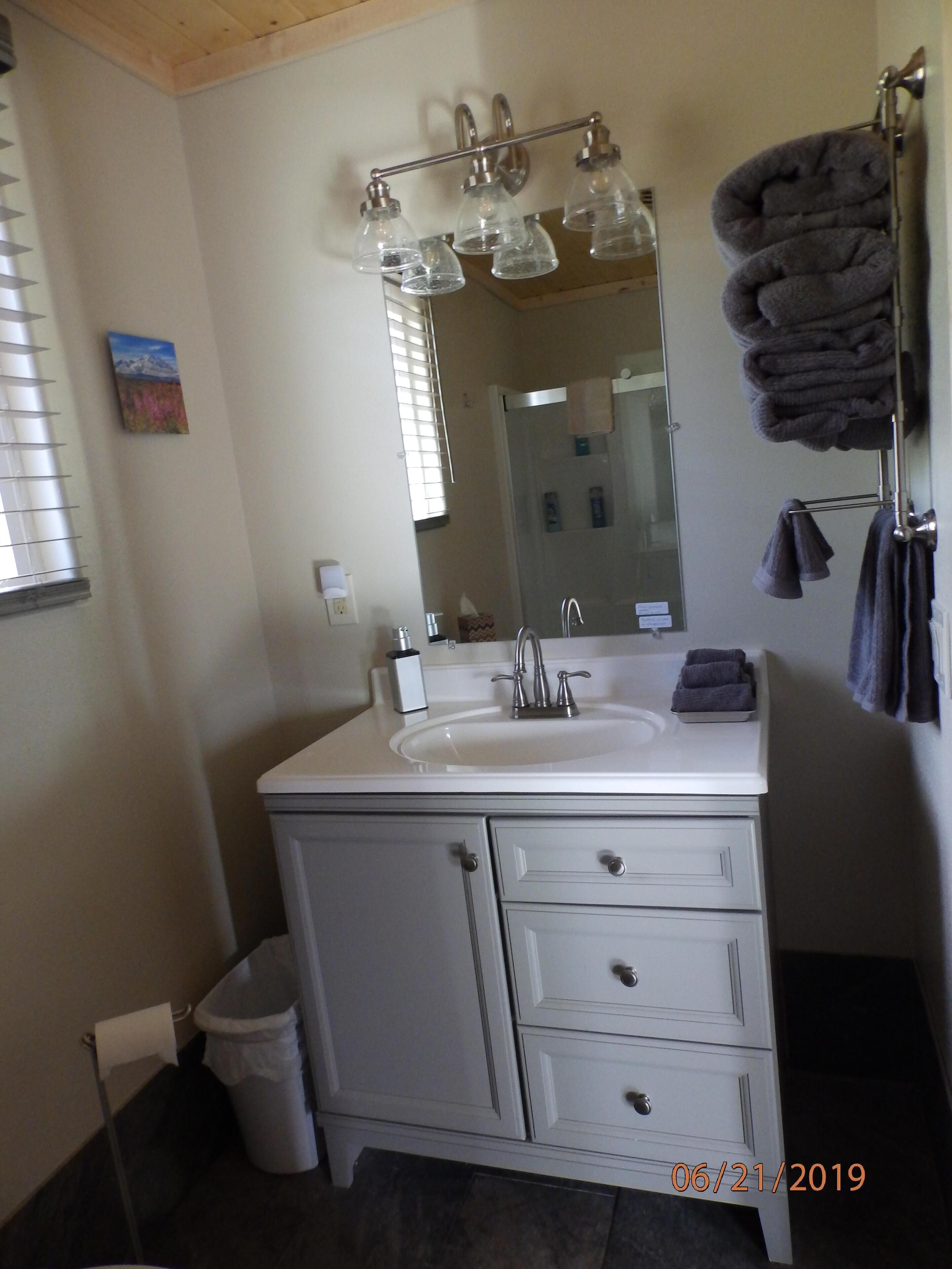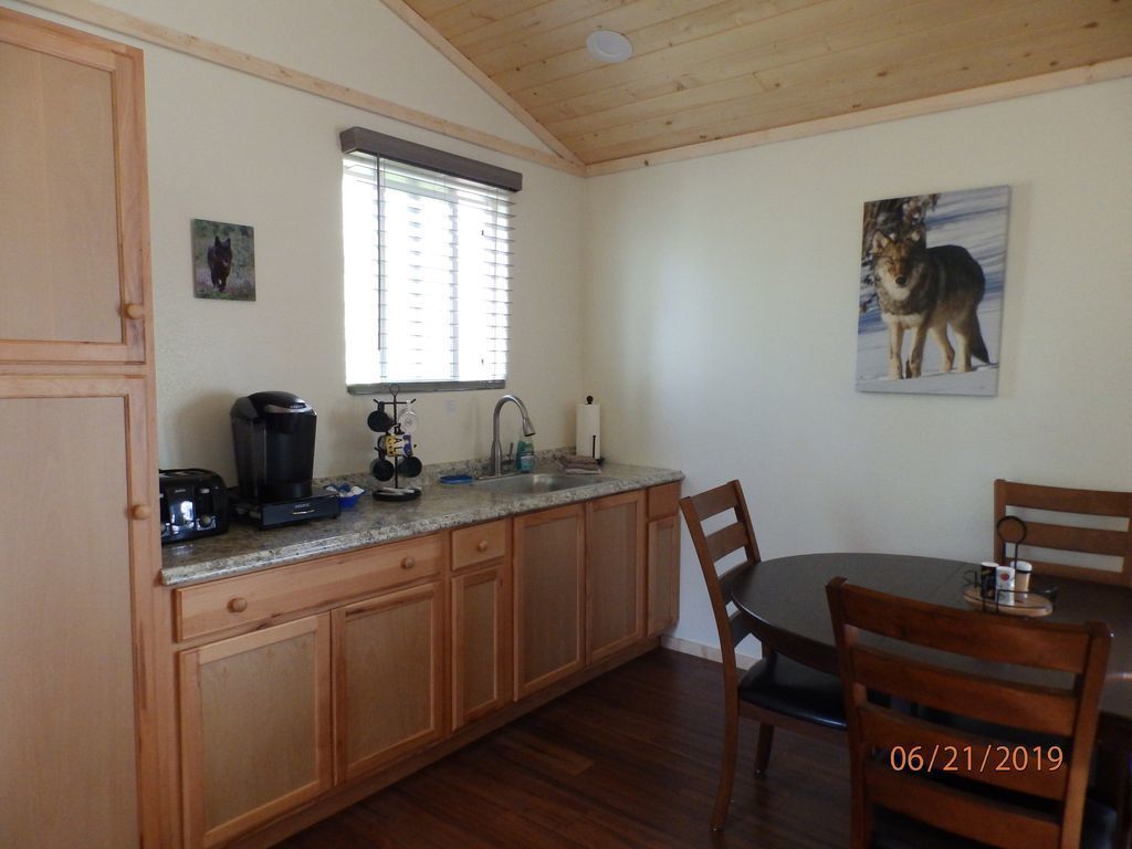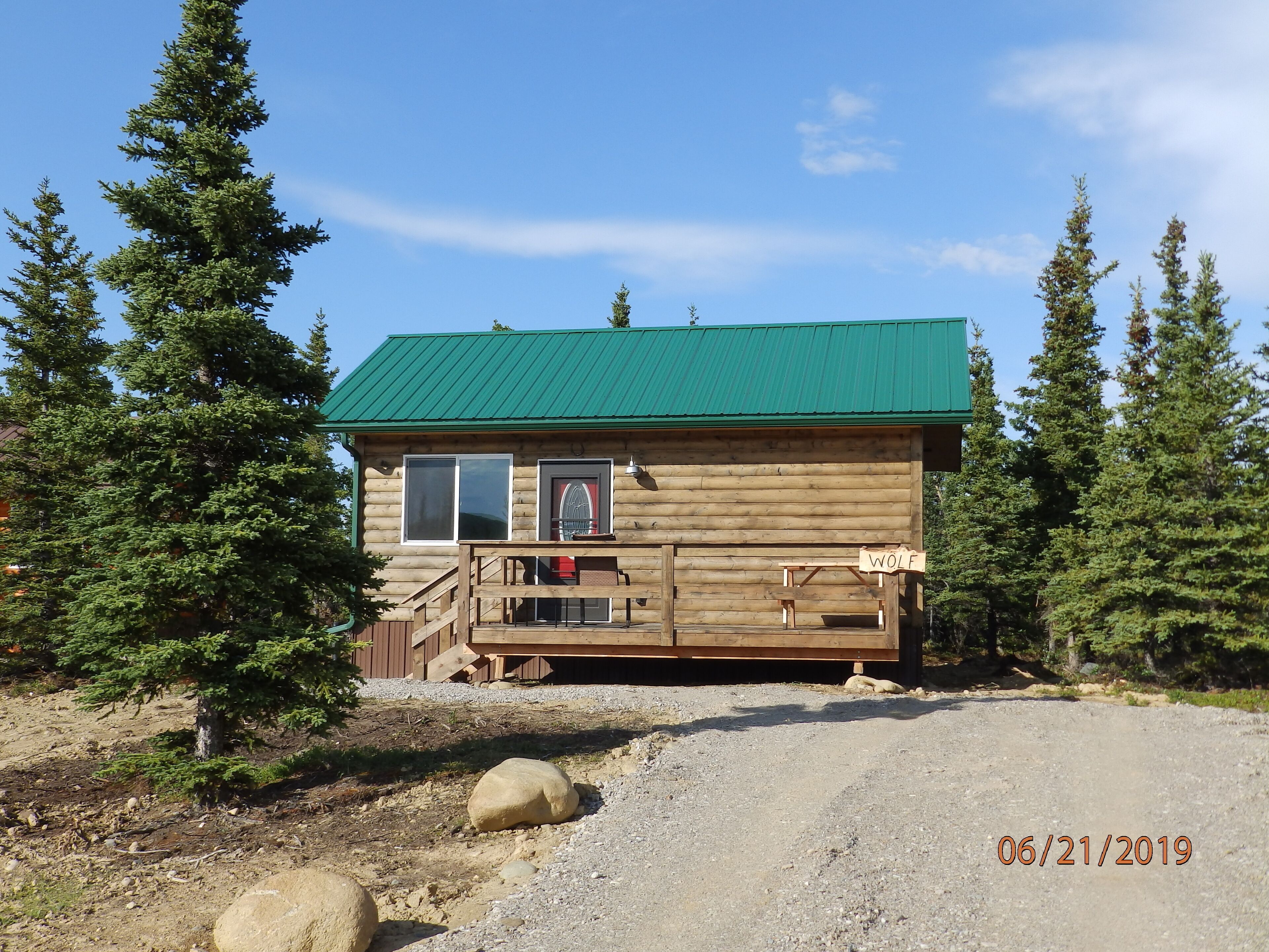 Denali Wildlife Wolf Cabin Luxury with a touch of Rustic.. NEW BUILD READY for 2019 summer season! Denali Wildlife Wolf Cabin,, just 10 miles north of Denali National Park and 3 miles south to our quaint town of Healy. We are a little over a mile off the Parks Highway, most of that private road - watch for the moose they will probably be standing in the road watching you. We sit tucked away on 27 wooded acres surrounded by state land, at the base of Mt Healy and Otto Lake. With the seclusion, tranquil privacy and the amazing panoramic mountain views you get the "Alaska Wilderness" feeling that so many people worldwide come to our beautiful state hoping to find. With great hiking and Otto Lake right out your door, the abundance of wildlife that comes thru at any given time,, moose, caribou, Alaska hare, linx, red fox, wolves, bear, owls. Don't be surprised if your sitting on your deck taking in the awesome views in the evening and you hear a wolf howling or the sound of owls - hoot back at the owls and they'll respond! The Wolf Cabin is one of several situated on our tranquil wooded acreage, all are studio style cabins themed after wildlife in Denali National Park, new and built this winter/spring. They are luxury with a touch of rustic, so whether you head down to Glitter Gulch to do some shopping, go out your cabin door on a wilderness hike, picnic by the lake, or right on your deck. BBQ (we supply the charcoal and propane), or sit by the fire ring (firewood provided) relaxing, roasting marshmallows making smore's (supplies provided in the pantry :)) We designed and built our cabins with your comfort and relaxation in mind,,,,, each cabin has 2 plush queen pillow top beds, therapeutic pillows (that won't give you a neck ache) ceiling fans when you want that slight breeze in your room, Italian tile and hard wood flooring, nice dining room table to eat on and play games on, kitchenette's that have microwaves, refrigerators/freezers, keurig coffee makers, induction plates and kettles, toasters, sinks, dish soap and kitchen towels alsoa few other small kitchen appliances, but they DO NOT have stoves in them. They have big showers, soap, shampoo, conditioner and nice thick towels, I look forward to making your Alaska trip a relaxing, memorable one. I will email you detailed driving directions and the key code for the key-less entry key pad 30 days prior to your arrival