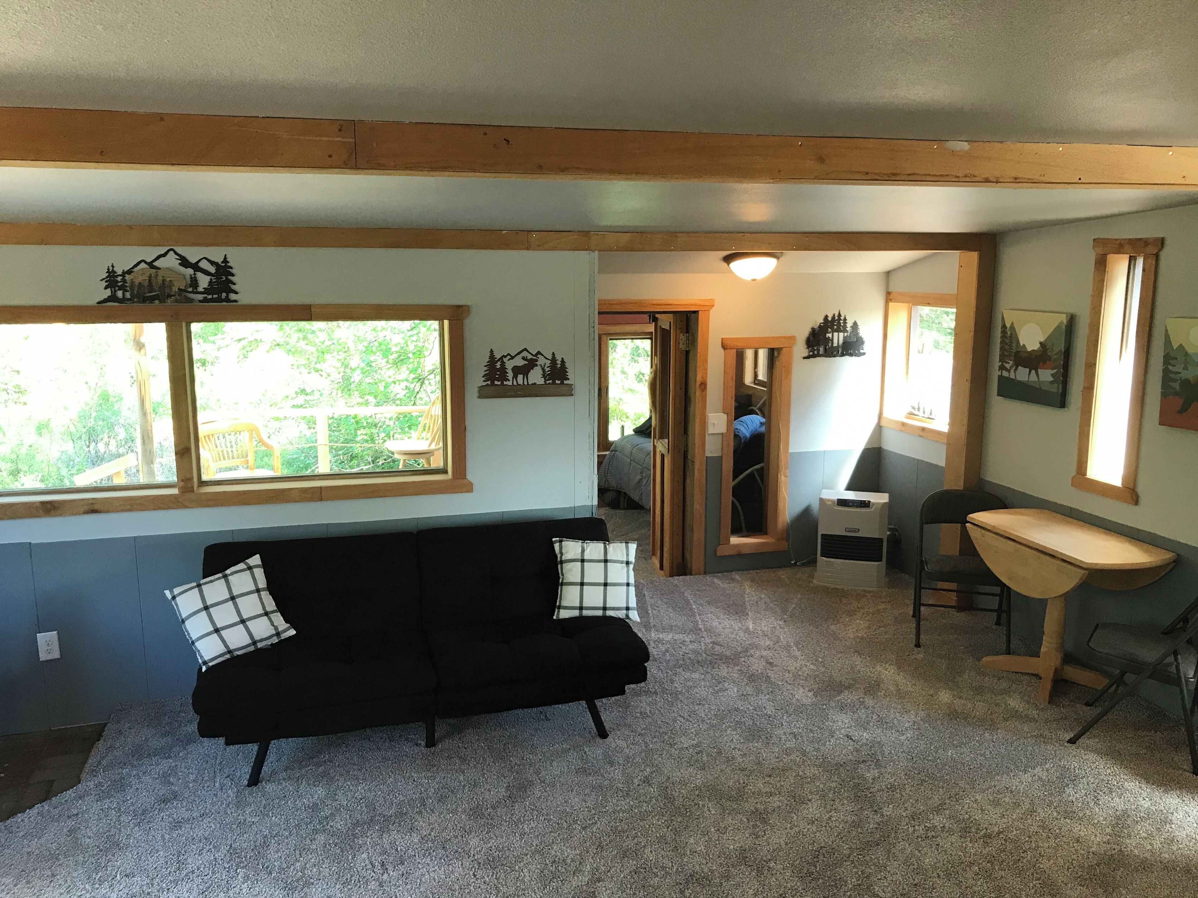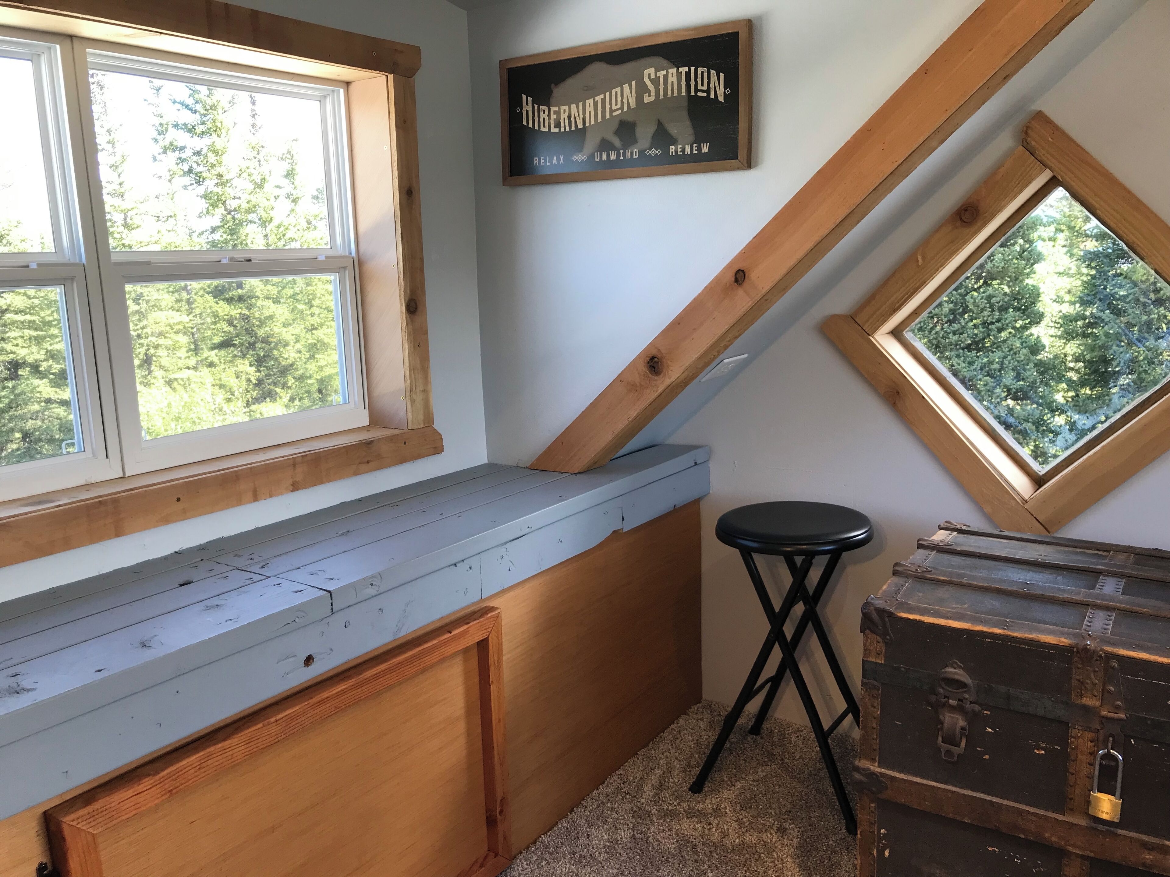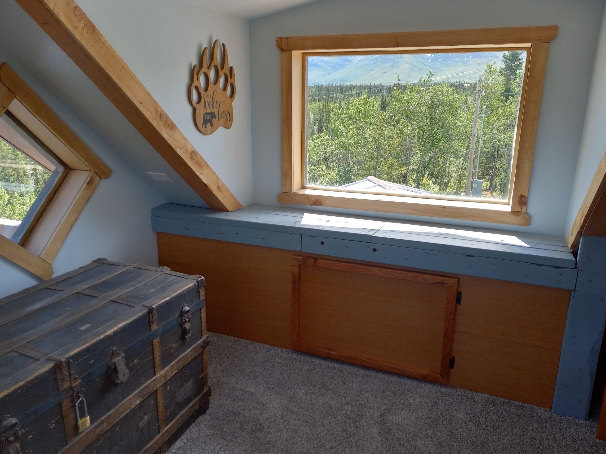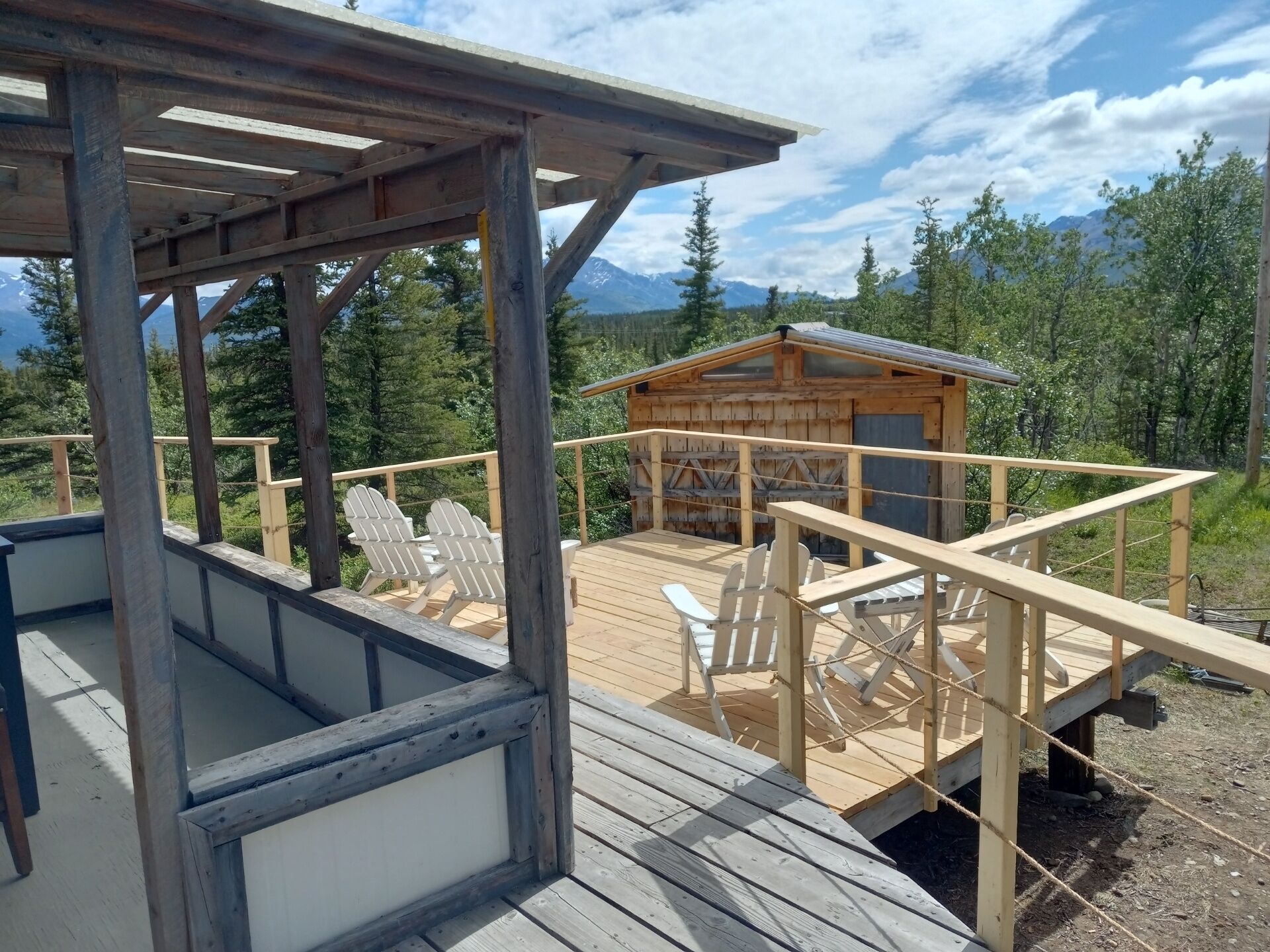 Authentic Alaskan cabin experience near the heart of Denali Our secluded “authentic Alaskan cabin” is nestled in a rustic setting with spectacular mountain views. This private wooded property, boasting an "off the grid" driveway and plenty of wildlife, is walking distance to Otto Lake. Enjoy great fishing, swimming, and other water activities or stop at Black Diamond Resort for tundra golf, horse pulled wagon rides, ATV excursions, or fine dining.Our quaint town of Healy is the home to several unique dining experiences, an amazing coffee spot, local brewery, and so much more. Down the heart of the community is the Parks Highway, which takes you to an outdoor adventure at Denali National Park less than 15 minutes away.The authentic Alaskan cabin has an open great room, with sleeper couches, and a built-in dining area. There is a queen blow-up mattress available that is able to sleep two guests in this area. The sitting room, with a day bed and an additional twin mattress, opens to a private patio. Up a steep stairs, which adds to the experience, leads to the loft. The loft has a comfortable full bed, exhilarating views, and additional amenities. The kitchen is full service, with fridge, sink, microwave and stove. Off the main entrance deck, the mountain views are beyond description. The bathroom offers a sink, shower, and a waterless Separett toilet. However, for those truly desiring the full Alaskan experience, there is an “elite” outhouse out back as well. If your previous adventures have left you exhausted, not to worry…we will provide wireless Internet and Netflix.