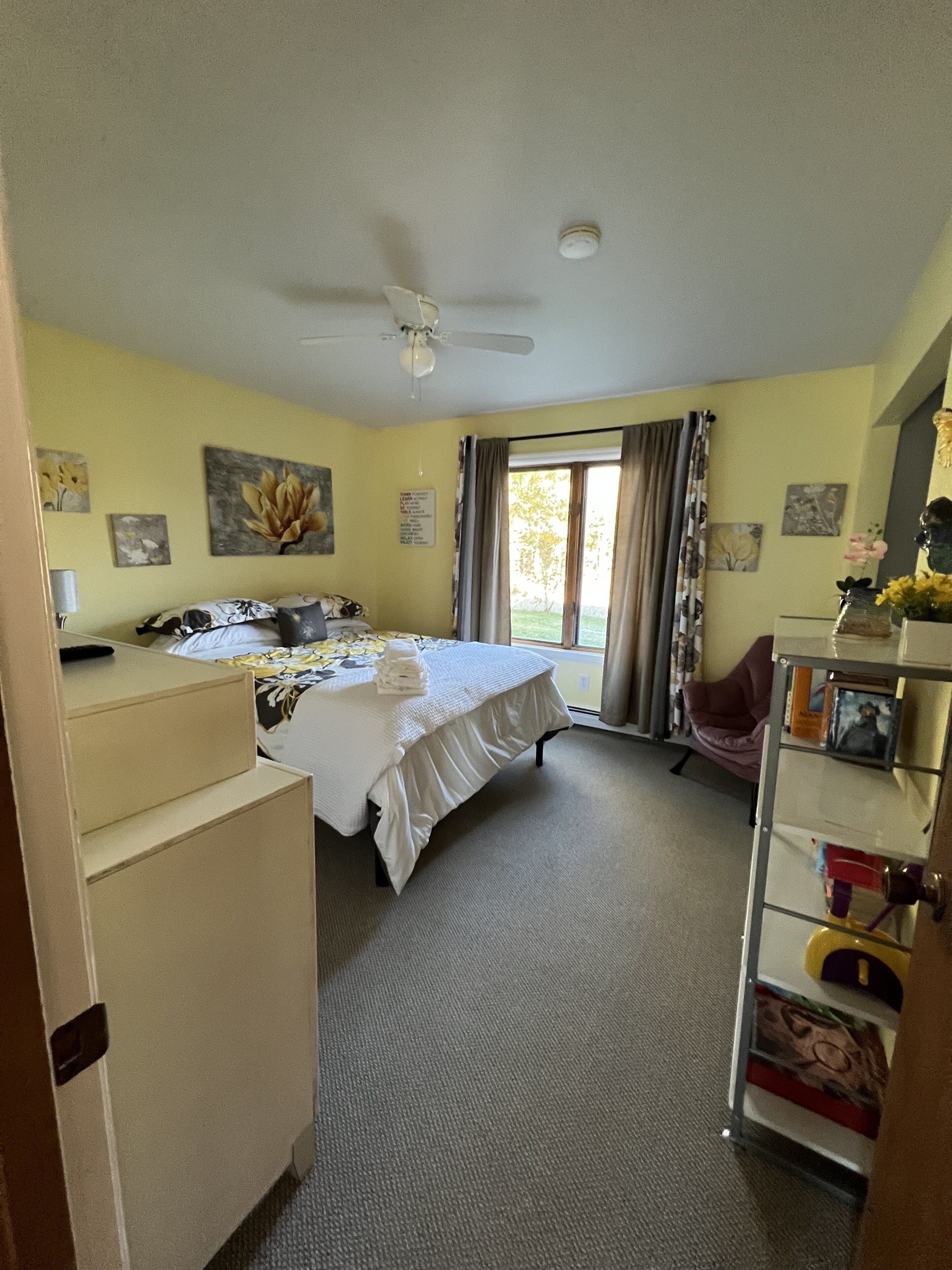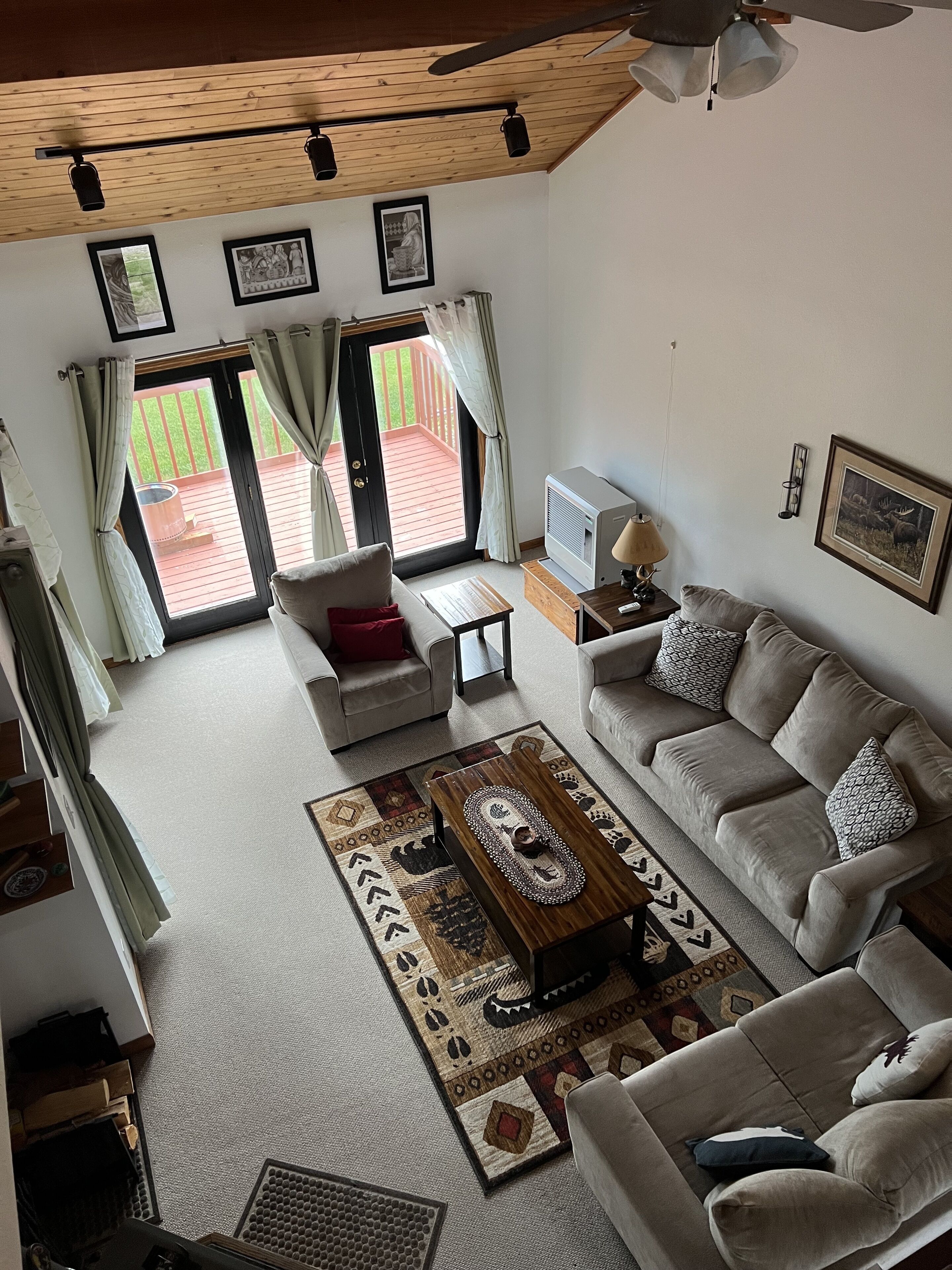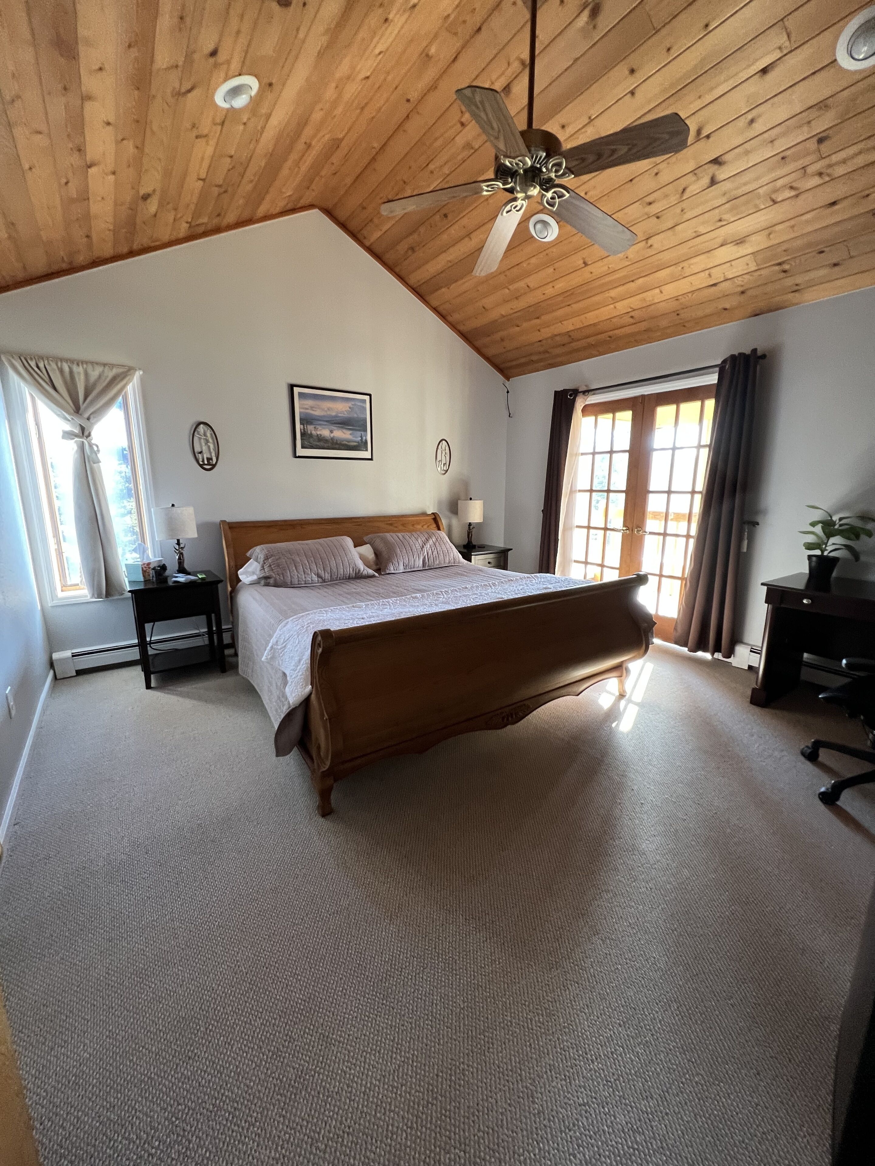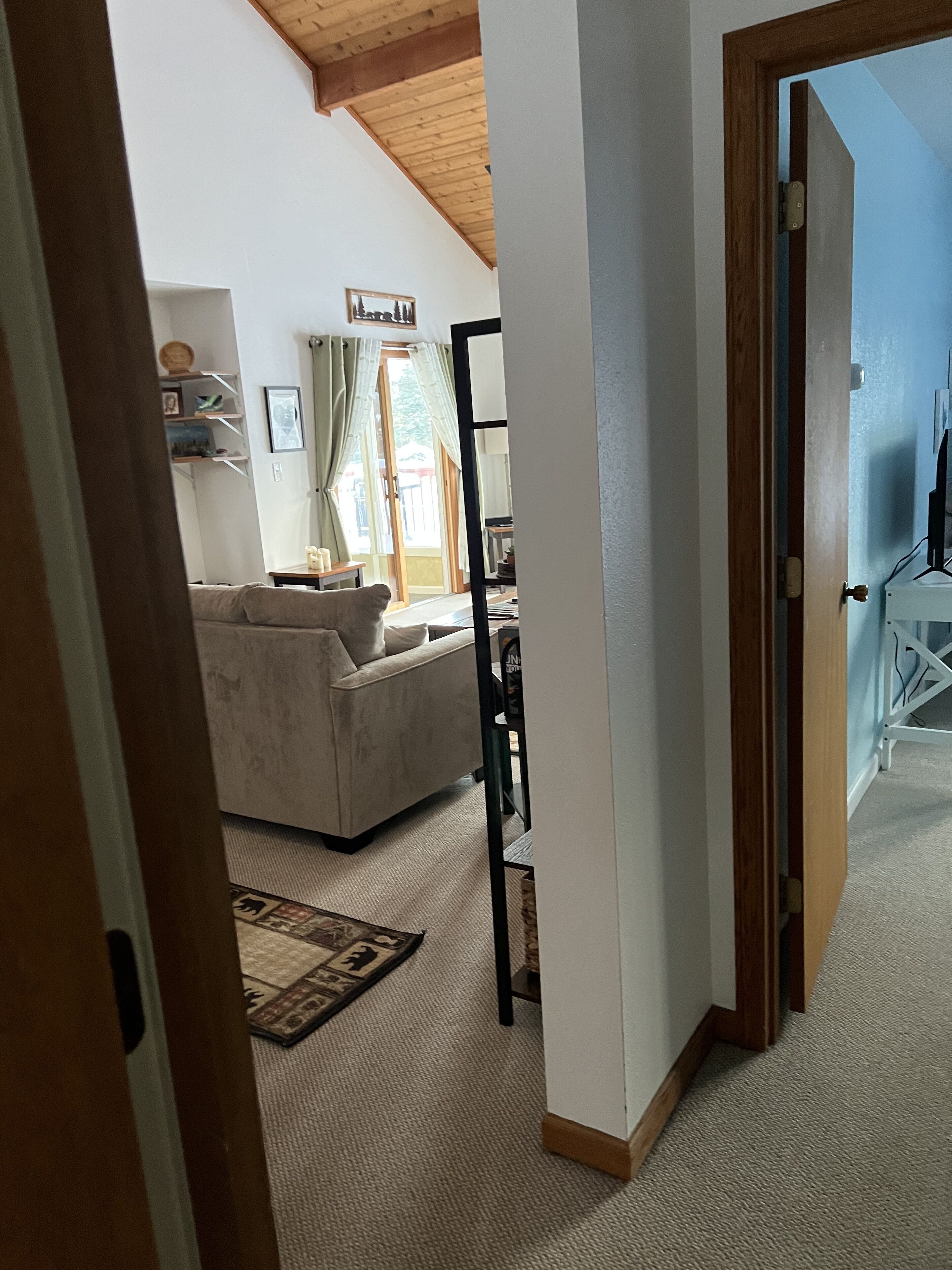 Your Home Along the Way in Denali Home Along is a clean, custom, charming home filled with windows that look out to private land and views of the mountains. This spacious home has a private driveway and private parking area. It is a comfortable home with 3 bedrooms, two bathrooms, dining room, full kitchen with dishwasher and new quartz countertops, living room, sun room, a study area with large desk, deck and private lawns. It is owner-occupied in a completely separate space from the rental to follow HOA regulations. Alaskans owners have been hosting guests for 35 years in Denali. Owners also provide rental cars and will book train tickets, flights, rafting, Husky Homestead Tours, ATVing, Fat Truck tours, etc. Owners are happy to provide many tips and suggestions for your Denali National Park visit.This home offers privacy, but is close to restaurants, grocery stores, trails and especially...Denali National Park.There are close to 3.5 acres with this property. It has BBQ, outdoor dining table for six, and Solo fire pit.Your Home has an exclusive washer and dryer, hanging racks, iron and ironing board in a separate laundry room. Supplies are provided.There are so many extras provided with your rental: Bose Sound System, wood stove, Wolfe gas stove, five ceiling fans, shades and curtains on the windows, established lawn and berry patch, open living room concept, and wood accents for a cabin feel.There is no hot tub.