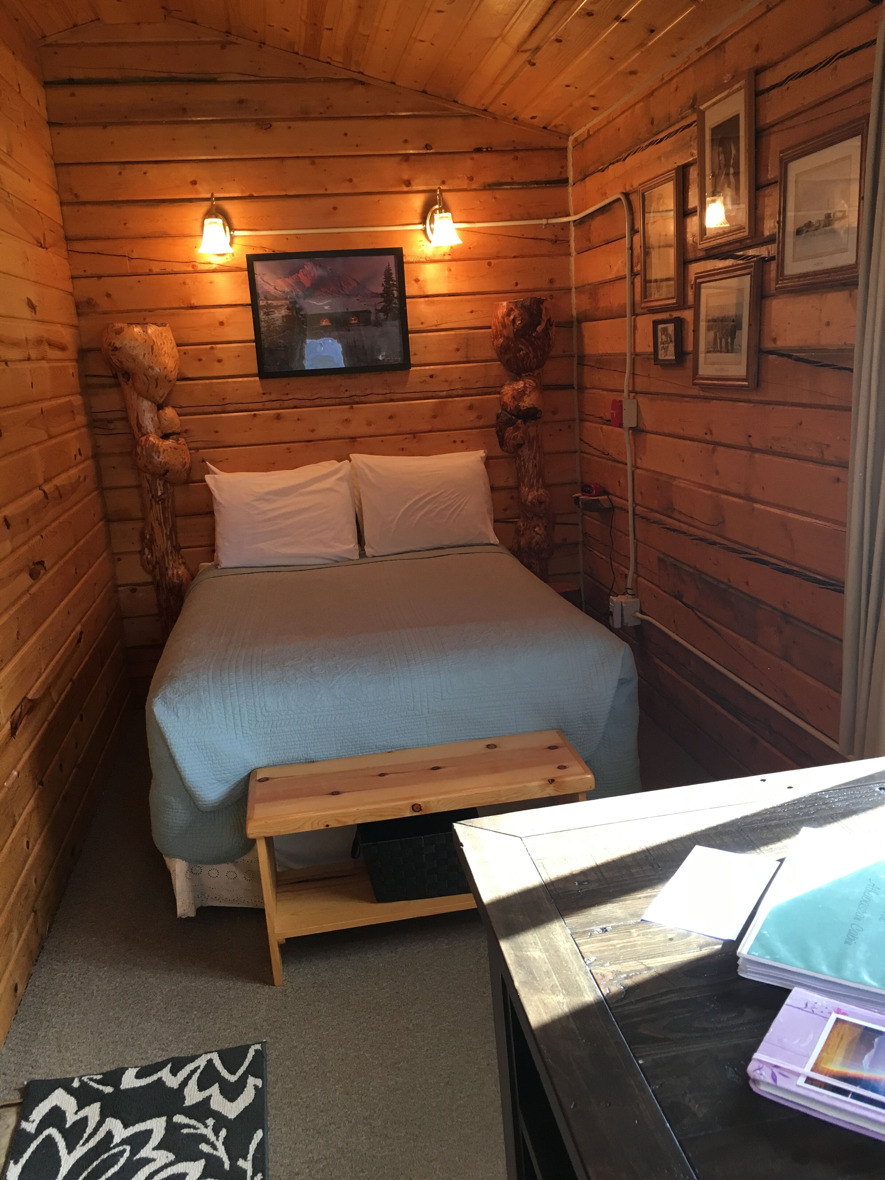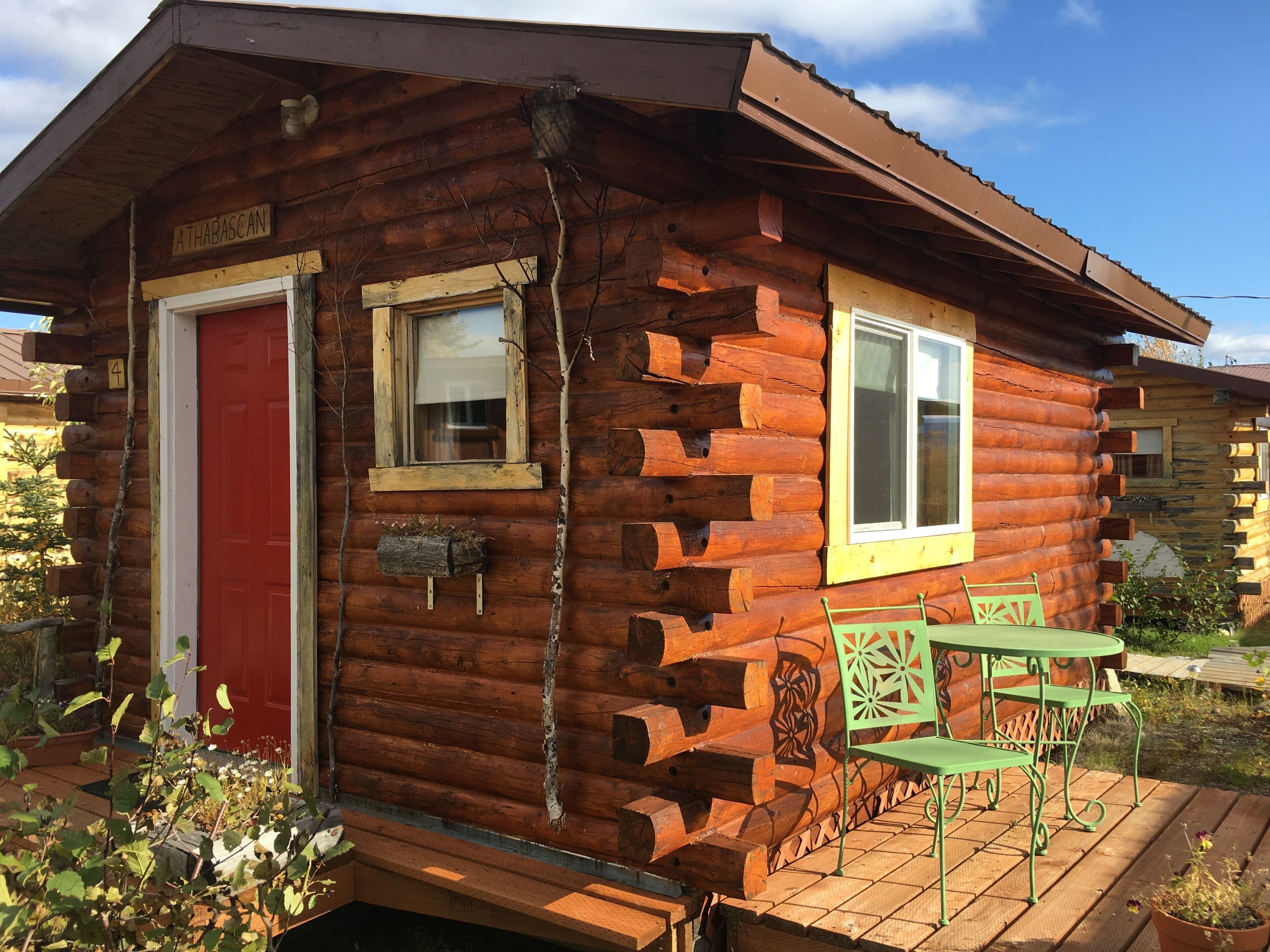 Earthsong Lodge - STAND EarthSong Lodge provides an opportunity for Denali Park visitors to have a unique, authentic place to stay overnight while visiting the National Park. Located four miles out Stampede Road (from "Into The Wild" fame), EarthSong is above treeline on open tundra, with unobstructed views of the Alaska Range. It's the perfect spot for guests who wish for a quiet, spectacular place to sleep, and have accommodations that are more than just a bed and bathroom. Log cabins are well-apportioned and have modern conveniences, spaced for privacy. On-site guests can enjoy some extra amenities, such as our coffeehouse. EarthSong is for the visitor that wants just a bit more from their visit.Standard cabins have one double bed and bathroom, and are perfect for the solo traveler or couple. Each cabin has bathroom with modern facilities, individual hot water heater, nice towels, extra pillows, and more to make your stay comfortable. Cabins are also insulated and heated for the cooler nights. All cabins have either private or shared porches. While there are no cooking facilities in the cabins, there is a shared kiosk where guests have access to fridge and microwave. Most cabins are log, all hand-built and unique, and have nice mix of authentic and comfort, with a high level of cleanliness. Daily service available.