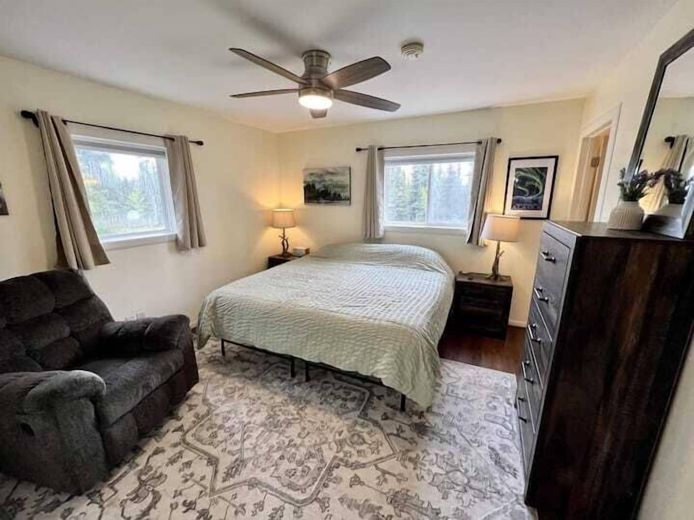 Denali National Park 2 King Bedroom Hideaway with About this spaceSituated on 5-Acres on the National Park Boundary w/mountain views, our upstairs 2- King Bedroom (each with private full bathroom) guest hideaway is perfect for 2 couples traveling together or small families.The spaceLocated on the Denali National Park boundary, this modern 2/bed 2/bath upstairs unit is perfect for two couples trave...