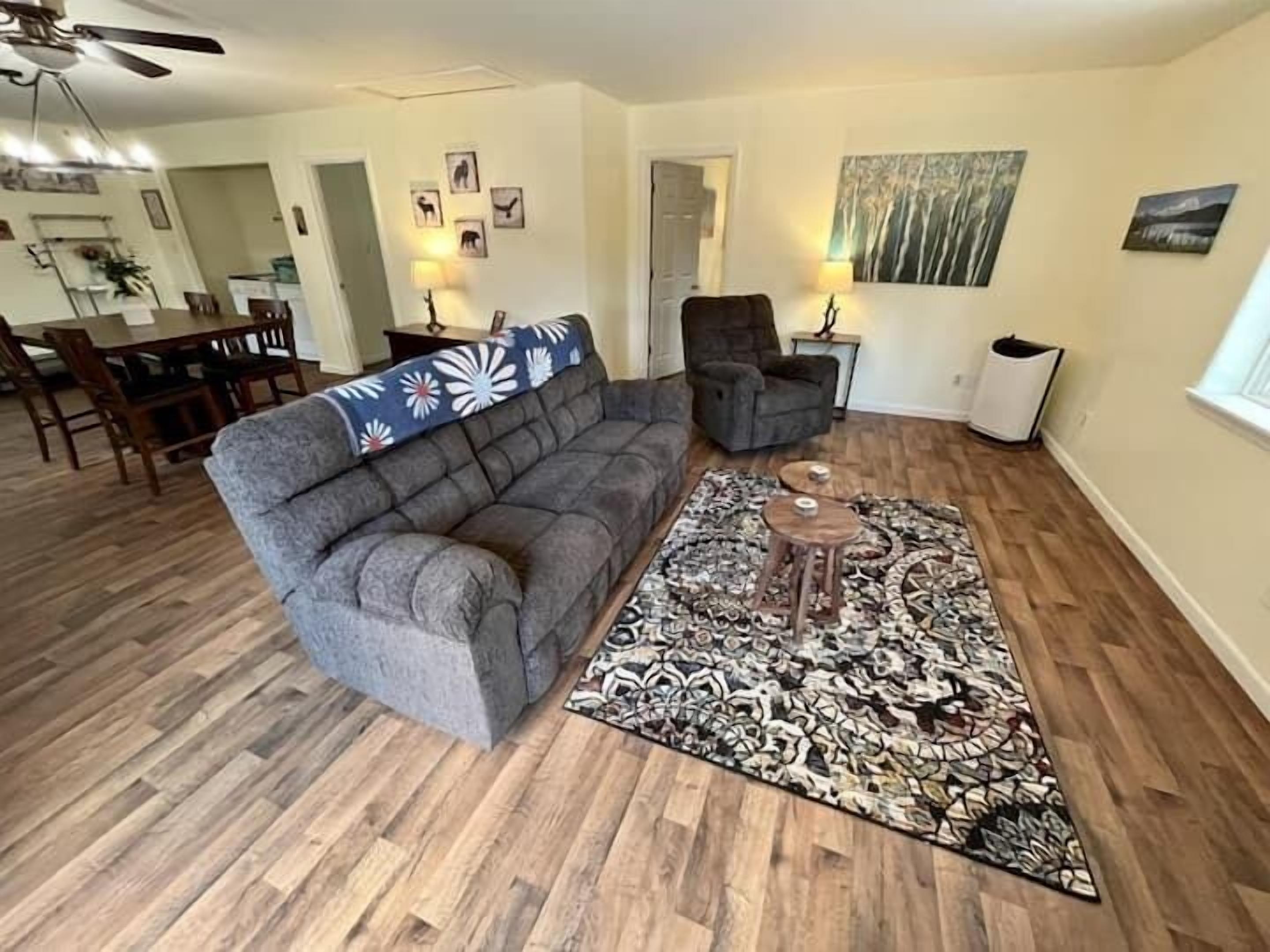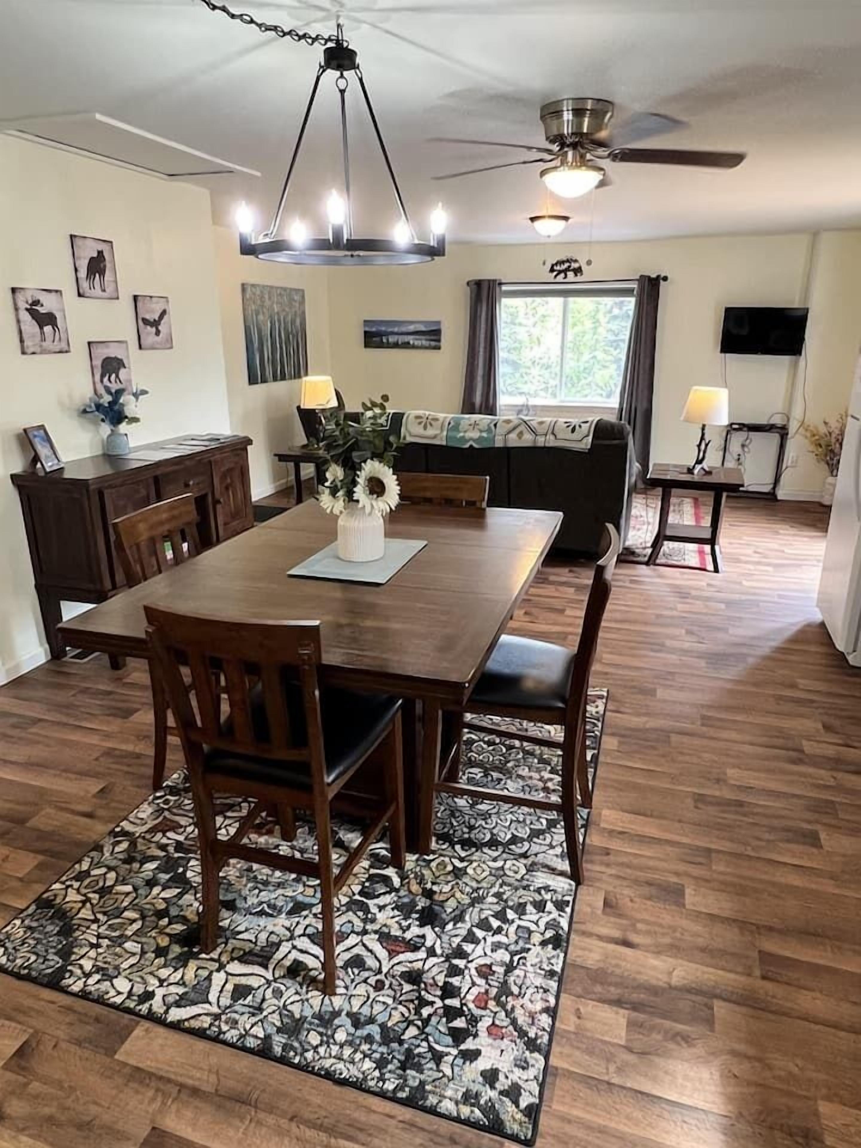 Denali National Park 2 King Bedroom Hideaway with About this spaceSituated on 5-Acres on the National Park Boundary w/mountain views, our upstairs 2- King Bedroom (each with private full bathroom) guest hideaway is perfect for 2 couples traveling together or small families.The spaceLocated on the Denali National Park boundary, this modern 2/bed 2/bath upstairs unit is perfect for two couples traveling together or a small family.You will love the amazing view of Denali National Parks mountains from your private deck.You will be staying in the perfect location, a short 15-minute drive to Denali's only Entrance Rd. and less than 1-mile from The Parks Highway and the Town of Healy which has a full-service grocery/liquor store, bars and restaurants and all area activities.Healy is where you want to be, away from the congestion of glitter gulch and all the cruise ship hotels.We are situated on 5-acres with private trail access to Dry Creek Drainage which has amazing views of the Parks' Mountains and great hiking right out of your door. We are in a tiny subdivision and our backyard is millions of acres of wilderness. We see an abundance of wildlife in our neighborhood.This unit gives you the feel of being secluded inside the National Park, yet you have all the creature comforts of modern living.This newly remodeled unit check all the boxes.We offer a well-stocked full kitchen with dishwasher, washer/dryer, High Speed WIFI, Direct TV, ATT 4G and a private deck with a BBQ (propane provided).Our housekeepers are the best business, you should expect your unit to be spotless. Please read the hundreds of 5-Star Reviews for our properties.FAQ’sI will email you detailed driving directions and the key code for entry 30 days prior to your arrival. Self-check in any time after 4pm.You must have a rental car to stay at our property. There is plenty of parking and we are very easy to locate.Our property is 4.5 hours north of Anchorage and 2 hours South of Fairbanks. There is only 1-highway between Anchorage and Fairbanks which makes navigation very easy. Follow the mile markers.We recommend you book your park bus tour prior to arrivalWe recommend taking the Park Bus all the way to East Fork. There is only 1-road, so the least expensive bus takes the same exact route as the most expensive bus. You can book all other activities upon arrival depending on weather and your groups desires. All activity brochures are located in the entry way to the house and most are nearby and/or can arrange pick up at the house.You can drink our water.We recycle.We provide all linens, dish soap, shampoo, conditioner, laundry detergent, trash bags, paper towels and toilet paper.The Coffee Maker does not need filters and we provide drip coffee and powdered creamer and sugar.From time-to-time people leave condiments and other non-perishable foods but please do not expect anything in the way of food items to be provided. Please bring everything you will need.We provide propane for the BBQ.For larger groups there are 2 other private units located on this property (a 2-bedrrom and a 3-Bedroom house).DENALI NIGHTLY HOUSE RENTALSWe stive to be the best Vacation Rental Operators in our area. We want to be an important part of your groups Denali Experience and hope to exceed your expectations.In the unlikely event you have an issue, or something is not to your satisfaction please do not hesitate to contact us immediately. We want everything to be perfect.My wife and I live in the area and are close by. If you have questions, feel free to text or phone We are more than happy to answer any questions or offer advice. We respect your privacy and independence so if we do not hear from you, we will assume all is well.We truly hope you enjoy you Alaskan Adventure.Dave, Denise & Carissa Coleman