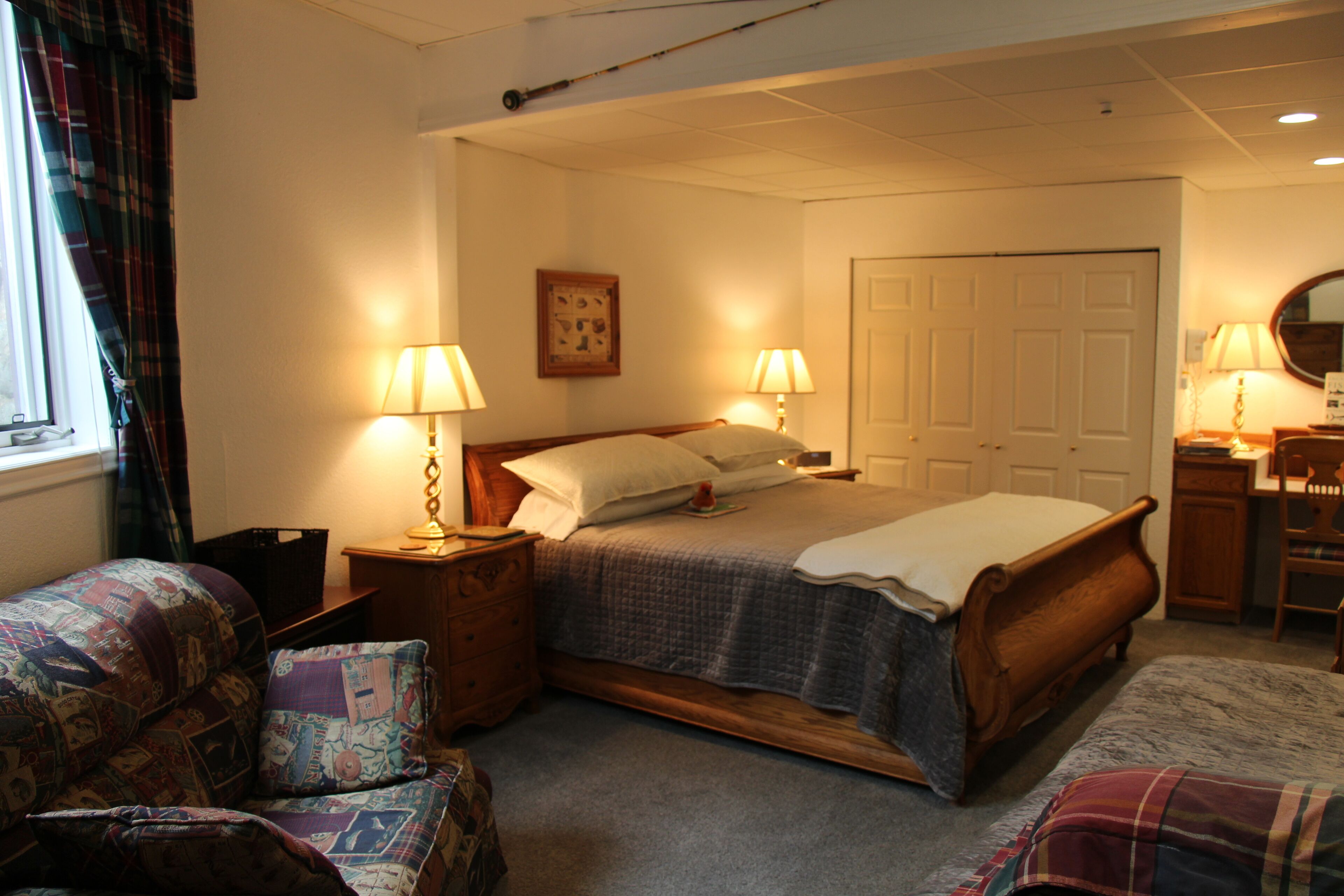 Two beautiful bedrooms and 2 baths in your private space in an award-winning B&B These two beautiful bedrooms in the Denali Dome Home are on the lower level with a common space and entry between rooms. Bedroom 5 has a king bed and pull out couch. The beautifully tiled bathroom has a large shower and a heated tile floor. This room will be cool and dark in the summer months. It has two chandeliers. Bedroom 6 has a king bed, a twin bed and a pull out couch. The bathroom has a shower/tub combo with single person jacuzzi. Included with private area of two bedrooms is access to a family room with kitchenette. Hosts provide full, cooked to order breakfasts from 7:30-9:00 each morning in the large dinning room area. They also have rental cars and provide tour desk services based on their 35 years of year-round housing. This award winning B&B is on 10 acres of gardens, wooded area and lawns. It has a paved, private parking lot and driveway. The best views are from the porches, decks and common areas.