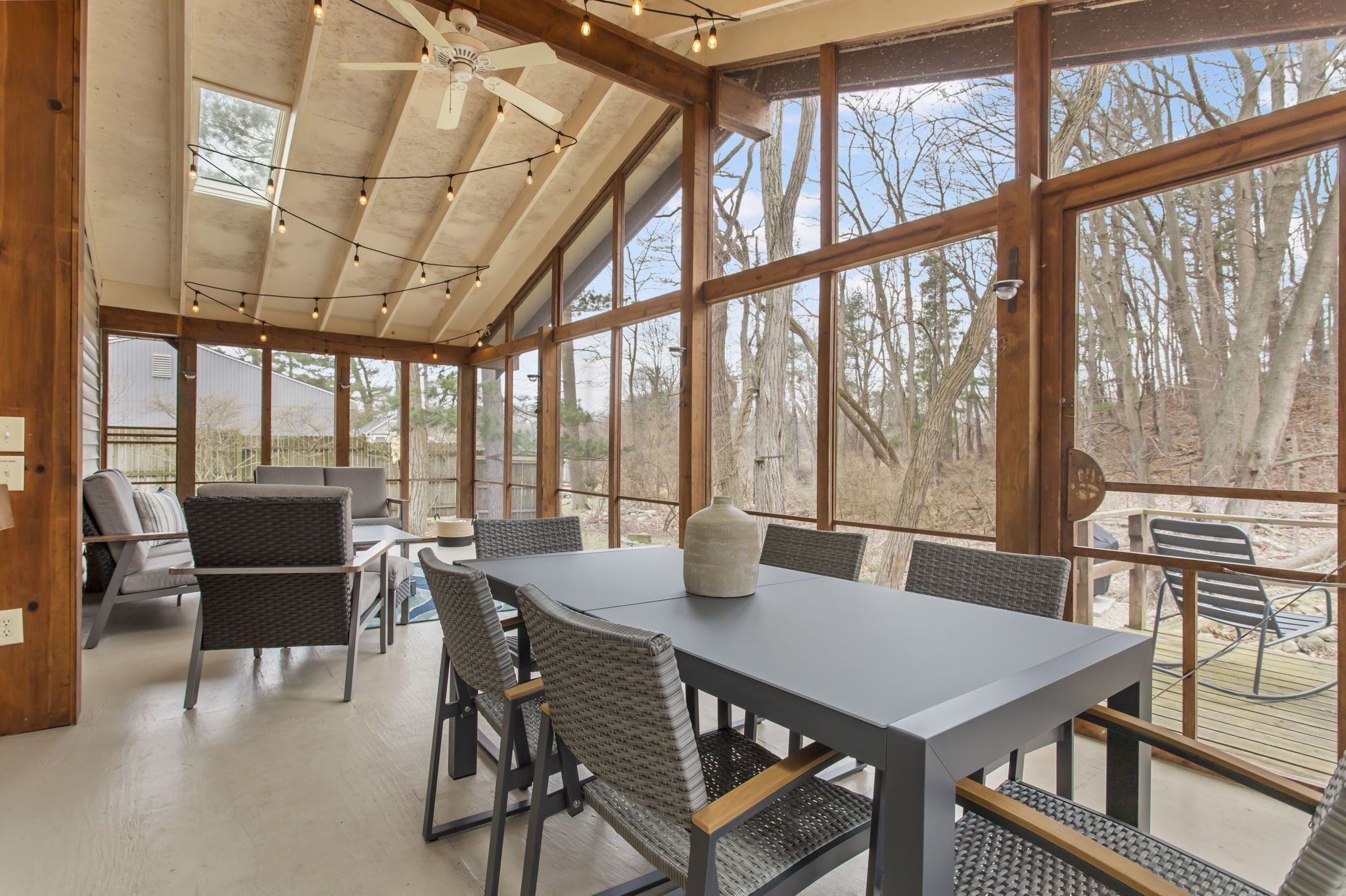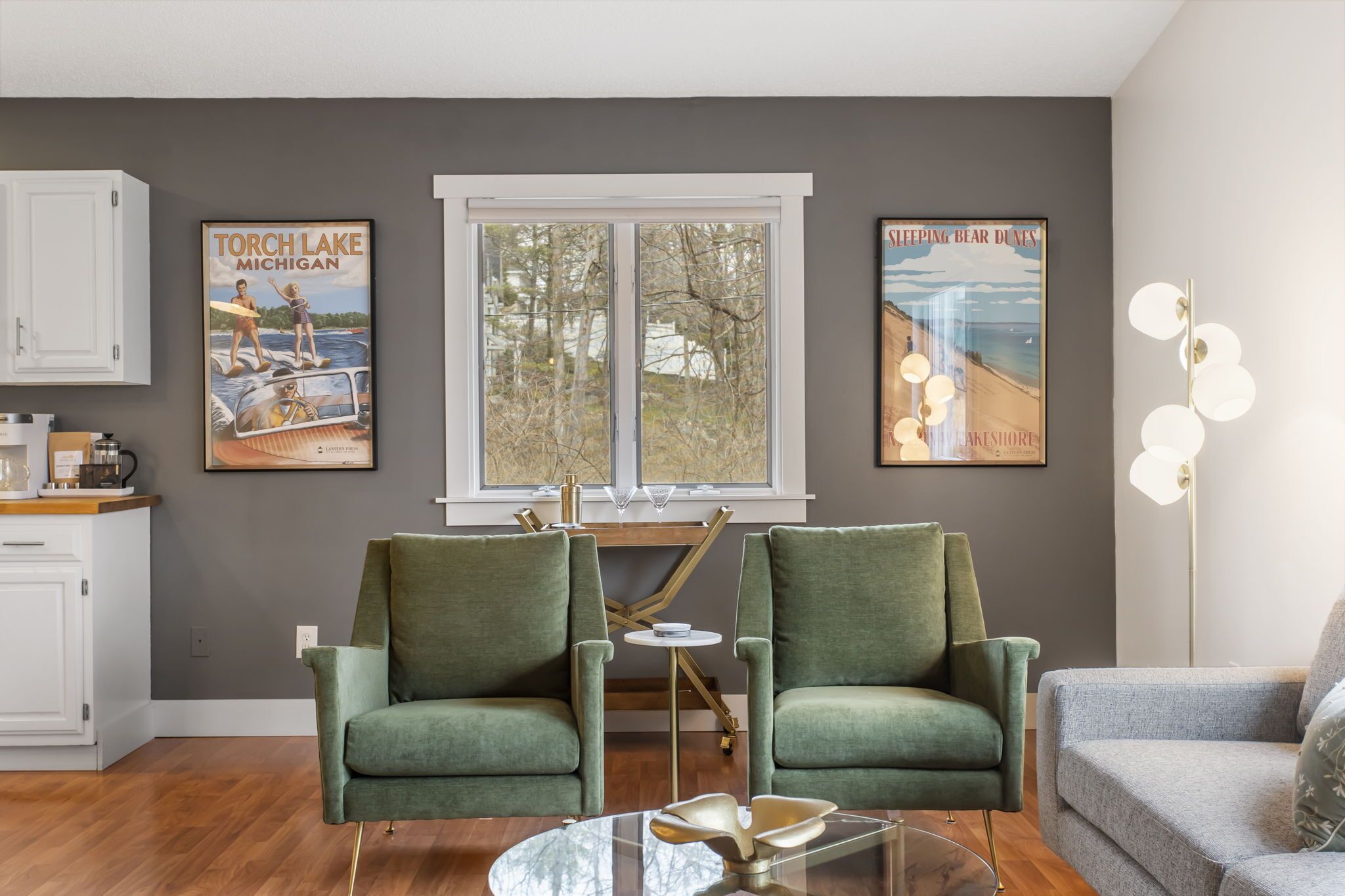 Sandhill Retreat | Hot Tub | One Level This charming modern bungalow is located on the border of Saugatuck/Douglas, just north of the historic Root Beer Barrel and on the way to Oval Beach. Sandhill Retreat is a mid-century chic retreat that is ready to welcome up to 6 guests and your furry friend with 2 bedroom and 2 baths. The home features an open living area that flows into the kitchen and dining area, an office, three seasons porch and a hot tub. This is the perfect place to relax and unwind. This charming modern one-story home is an Upscale Lakeshore Vacation Property. The team of hospitality members are here for you when you need us most. We will be available via text, email, and through any booking platform. Welcome to the darling towns of Saugatuck/Douglas! This modern bungalow retreat is located just a 3 minute drive or 10 minute bike ride into downtown Douglas and downtown Saugatuck. Enjoy strolling Center Street and hitting all the restaurants and shops these quaint towns have to offer. From Douglas' famous antique shops to locally roasted coffee, jam and jelly shops. There is no shortage of fabulous places to ignite the senses. After spending a day checking out the neighborhood, take a nice walk to hop on the Saugatuck Chain Ferry. In service since 1838, this little boat is chain pulled across the Kalamazoo River and plops you right in the heart of Saugatuck. With this towns huge art scene, boasting various art festivals throughout the summer season, you are sure to find a treasure for you or a loved one back home. Saugatuck allows open container in the "social district" off Butler and Water Streets. Enjoy a beverage from one of the local watering holes and feel free to bring it with you as you walk the riverfront.Get outside and enjoy the nature that the area has to offer! With the four beach cruiser bikes that comes included with your stay and a plethora of wooded foot and bike trails that lead to the beach, take a pep step through the dunes to find your perfect sunset over Lake Michigan. Prefer something that requires a bit less exertion? Head over to one of the local wineries or breweries to test taste some of the yumminess that Michigan has to offer. You'll find a more detailed list of tried and true local recommendations upon check in.You will have access to the entire property. With our keyless entry, you can enjoy a flexible check-in any time after the designated check-in time on your arrival date and guests can conveniently gain access via the smart lock. Check-in Time - 4:00 pmCheck-out Time - 10:00 amMain Level: Kitchen Dining Area with seating for up to 6 guestsFront Living Room Office RoomKing Bedroom with Ensuite Full Bathroom King Bedroom with Ensuite Full Bathroom Back Living Room with Pull Out queen sofa for extra sleeping space. With TelevisionThree Seasons Room Outdoor space: Spacious backyard with back deck, grill, outdoor dining area and hot tub This charming modern retreat is within a 15 minute walk of Downtown Douglas and the Saugatuck Chain Ferry which takes you across the Kalamazoo River and drops you in Downtown Saugatuck. Fares are $2/person each way.The Interurban is a on call public transportation service that services Saugatuck/Douglas/Fennville. Simply call the number and request a pickup. $1 fares each way!Enjoy four beach cruisers during your stay and take a ride to the surrounding downtown's of Saugatuck and Douglas!There will be a sampling of coffee and tea for you to enjoy during your stay.For summer bookings, check-ins may be required Monday through Friday. If you have any issues booking, please reach out to us directly at Upscale Lakeshore, West Michigan.Outdoor furniture may be winterized from December - May.There are 3 parking spots available for guest use. 1 parking space in the garage and 2 parking spaces in the driveway with no street parking allowed.All Upscale Lakeshore vacation rentals follow local and state tax rules. Your booking will include applicable taxes, a cleaning fee along with a safety and damage protection policy. We want to ensure the safety and security of our guests and properties. When you book a vacation home with us, you will be required to sign a rental agreement after booking along with completing a verification process. To complete the verification, you will be contacted via email and/or text message. Please be sure to complete this before your arrival, so we can confirm your reservation. Prior to booking, please reach out to us directly if you would like to see the rental agreement.Bring your furry friends along on your next vacation! Please let us know in advance if you're bringing your pets with you. We happily welcome up to two dogs on our premises. A dog guest fee charge of $145 will apply (emotional support included and feline friends are prohibited).Please review our cancellation policy from our rental agreement below as our cancellation policy varies ever so slightly from those on some booking platforms. Our rental agreement is included prior to completing your reservation and will supersede the cancellation policies listed on some booking sites. Cancellation Policy: We hope you will not need to cancel your time away, but in the event that you do the following terms will apply. Please note there is a non-refundable credit card processing fee. -100% refund (MINUS the non-refundable credit card processing fee) if you cancel within 30 days prior to check-in-50% refund (MINUS the non-refundable credit card processing fee) if you cancel between 7 to 30 days prior to check-in-No refund if you cancel within 7 days of check-inWe recommend securing travel insurance to protect your investment should you need to cancel your reservation outside of the allotted window or due to inclement weather or any other factor.
