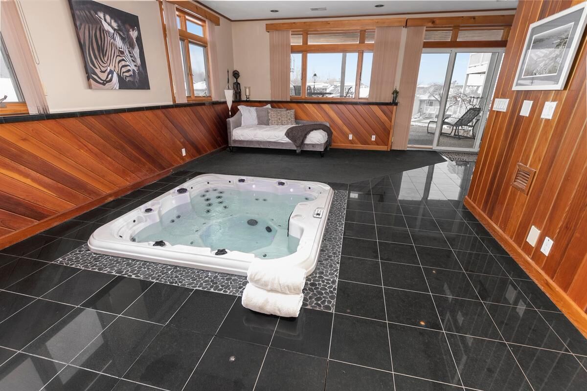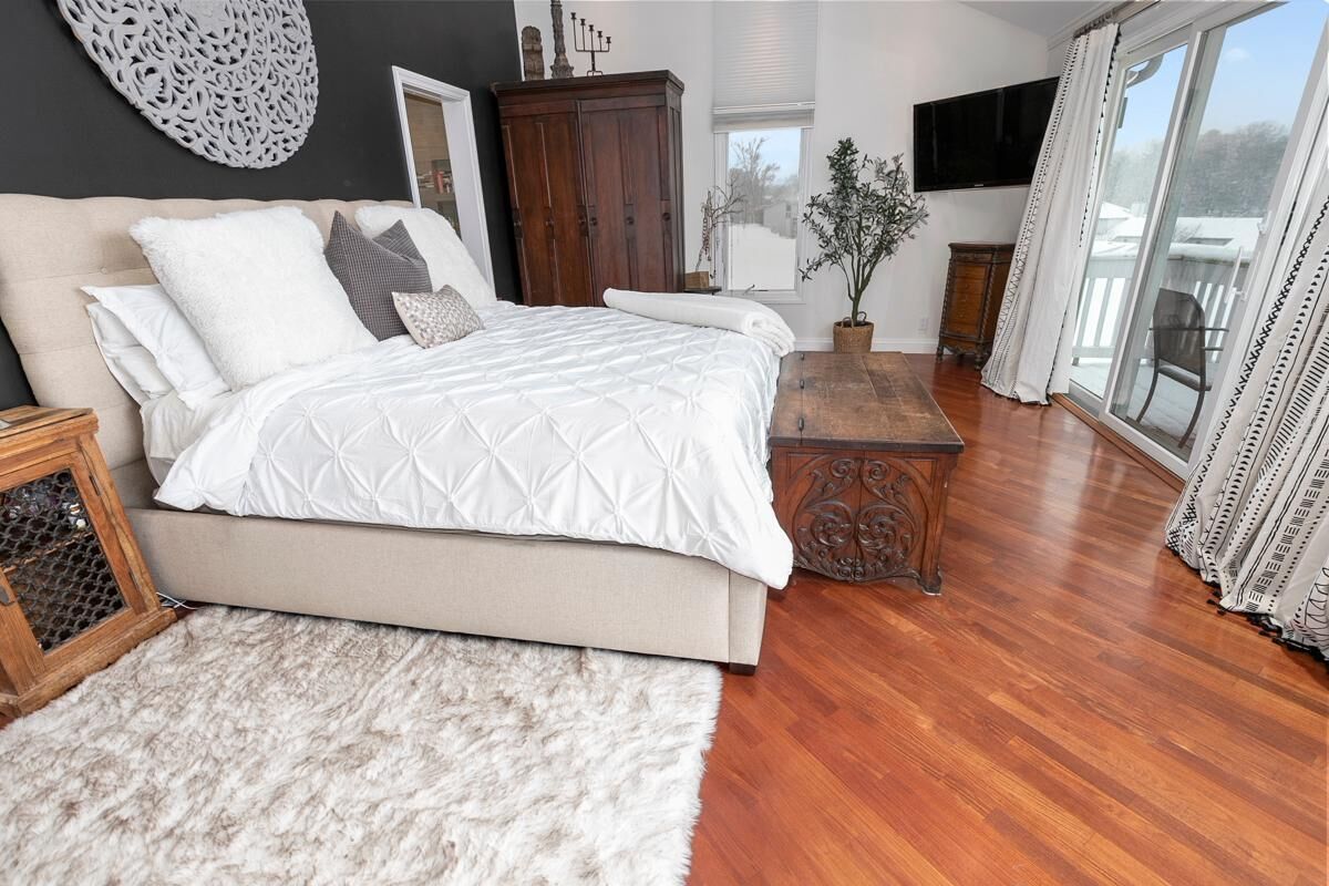 Harbor View - Five Bedroom Villa, Sleeps 12 This is a first time vacation rental!! Newly listed for all to enjoy!!! New additional mini split AC added 8-1 to 3rd level of villa for your summertime comfort. Luxurious Townhouse with a location and a view that cannot be beat. Nestled in Douglas overlooking Lake Kalamazoo and Mt. Baldhead. This is a perfect summer location with a spectacular view of Kalamazoo harbor and Mt. Baldy! This location can not be beat as you are less than a mile from downtown Douglas/Saugatuck, Douglas beach, Mt Baldy with surrounding walking/biking paths less than 2 miles to Award winning Oval beach. With plenty of hiking, wine tastings, gallery strolling and outdoor concerts. Also a perfect winter home to cozy up with all of the amenities this home has to offer. Take a stroll along the docks or just sit back and relax and prepare a meal in this vast gourmet kitchen or sitting on one of the two decks or walkout patio and grill out using the Webber Grill all while enjoying great views of Kalamazoo Harbor and Mt. Baldy. Relax and enjoy the large 5 person Hot tub, 4 person Sauna or enjoy the steam shower! Relax in front of the fireplace in the movie room or entertain in the bar area. Choose to hang out on the main level with a gas fireplace, oversized furniture and smart tv with the waterfront view. Featuring 4 bedrooms, 4 full baths and a daybed in the basement. This Property accommodates 12 people comfortably, privately and has plenty of room for all. The primary bedroom features a California King bed, smart TV ensuite bath with heated flooring, multi-head shower, and bidet toilet. Bedroom 2 features two queen beds and smart TV. Bedroom 3 features 1 queen bed with a daybed and a smart TV. Bedroom 4 features a king bed with a smart TV. There is also a twin daybed in the lower level room. There are 4 bathrooms. Bathroom 2 has a shower/bath combo. Bathroom 3 and 4 feature showers. Washer and dryer on lower lever. Parking for up to 4 cars. Don’t miss the opportunity to experience this incredible property!By renting this property you are agreeing to the following rules:(RULES ARE STRICTLY ENFO1. No smoking. 2.) You and your guests are using our home at your own risk. We nor the owner of the property will be held responsible for any injuries that occur at the vacation rental or for any lost or stolen items. 3.) No boats or trailers are to be parked at our rental properties. Tents of any kind are not allowed. Arrangements for trailers need to be made. There is parking for 4 cars in the driveway. Parking on the road is prohibited.4.) Do not move the furniture.5.) Each cottage has a maximum number of guests that is listed on this contract you must verify that it is correct. That number is not to be exceeded - this includes children and adults. For fire safety, we are required to limit the number in each home. If additional people are found to be staying at the cottage the entire group will be asked to vacate with no refund. Inflatable mattresses or alternative sleeping other than pack n plays or cribs are not allowed. Tents are also not allowed on the property.6.) Pets are not permitted. If a pet is on the property then there will be a $1500 fee and it will be required that the owner board the pet immediately. 7.) Damages are to be reported during your stay. If we find damage after you vacate, you authorize the charge to your credit card for replacement or repair or provide another credit card number, pay by cash or check. Damages reported upon arrival will not be guests' responsibility.8.) Cleaners will come to the cottage after you have departed - they will not visit to clean, change linens, or replace towels during your stay. Please contact the office should you need assistance during your stay regarding any cleaning items.9.) Grills are to be cleaned after each use. 10.) Quiet time is after 11pm nightly per the local ordinance, however because this home is in town and there are neighbors close please keep the noise levels down as to not disturb any of the neighbors.11.) You are at least 25 years old and will be able to verify with valid identification during your stay if needed.12.) Weddings and formal events are NOT permitted on our properties, if there is found to be a formal event on the property the entire group will be asked to vacate the property with a no refund. It is acceptable to have a visitors during the day hours but that number can not be more than double the maximum occupancy of the cottage.13.) No more than 5 people in the hot tub and 4 in the sauna at a time. Please rinse of all oils and lotions before entering the hot tub as the filter will not be able to keep up. KIDS CAN NOT BE IN THE HOT TUB OR SAUNA WITOUT AN ADULT!14.) The garage is not available for use.15.) Fireworks are prohibited on the property at all times.16.) Please do not wear your shoes in the townhouse.Pets - not allowedYou will receive a text message from us with checkin instructions and the code for the door.