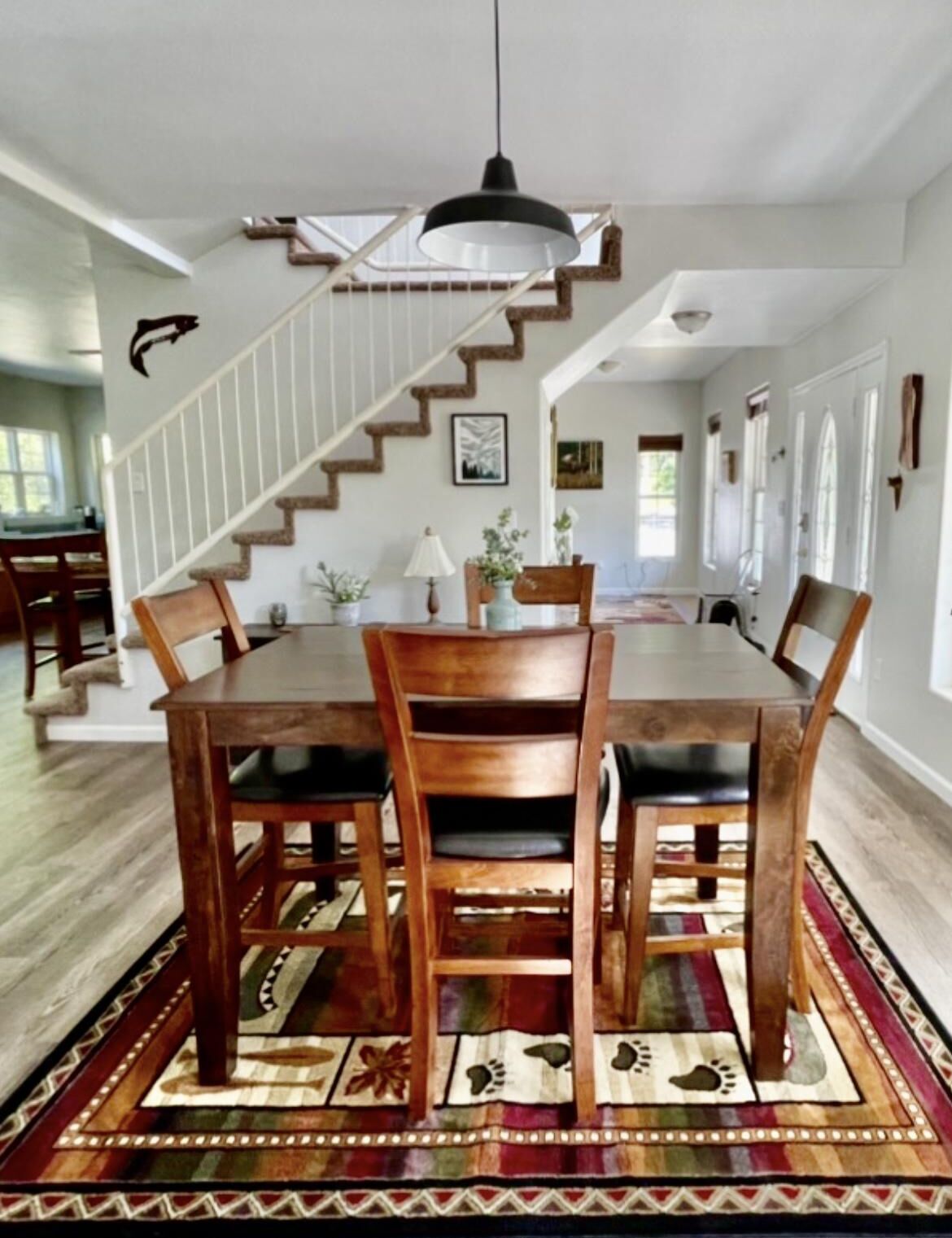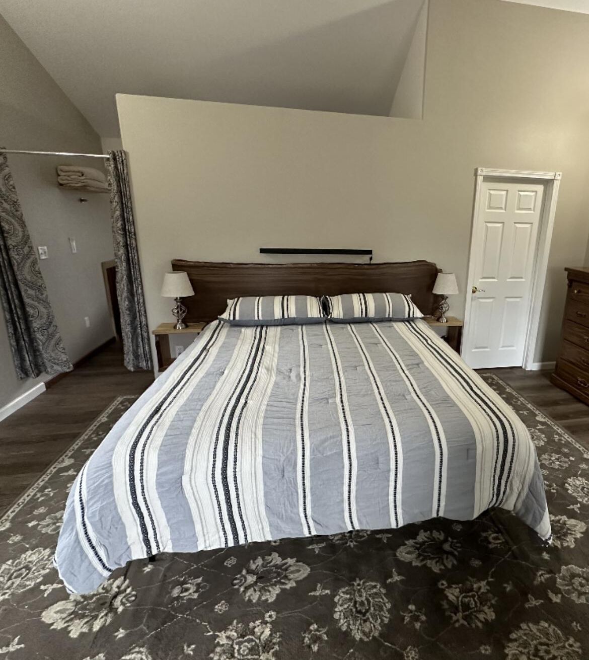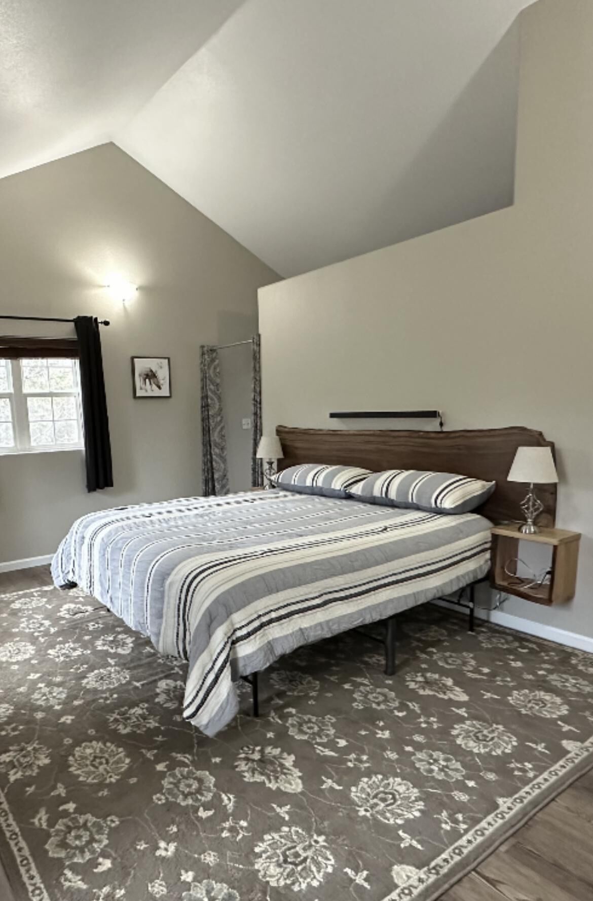 Constellation Lake Home Constellation Lake Home is the perfect destination vacation home set on the shores of a private lake located within 3 miles of the Kasilof River boat launch! A great place to stay if you plan on fishing the river and also plan on fishing or visiting in Homer as well. An amazing retreat cozy enough for a couple yet large enough for the whole family. The en-suite master is on the main floor. The 3 guest bedrooms, a loft and the spacious guest bath are located upstairs. Close to mercantile & cafe.Constellation Lake Home is located in Kasilof. Within a 20-minute scenic drive are the nearby towns of Kenai and Soldotna for all your shopping needs. There is a Walmart Super Center and a Safeway in Kenai, and Sportsman’s Warehouse, Fred Meyer and more in Soldotna. This beautiful home has room to spread out with multiple dining spaces and outdoor seating. The main floor offers a spacious kitchen with an open concept dining/living room as well as a separate breakfast nook. Enjoy outdoor dining from the raised deck overlooking the lake. Modern reclining leather sofas offer a comfortable gathering space where you can stream your favorites on the 60” Smart TV. Admire the beautiful lake view through the bright French doors and keep your eyes peeled for moose. There is a Traeger grill for guests to use. This attractive home is in a terrific central location for world class fishing and outdoor adventures on the Kenai Peninsula- Alaska’s Playground!