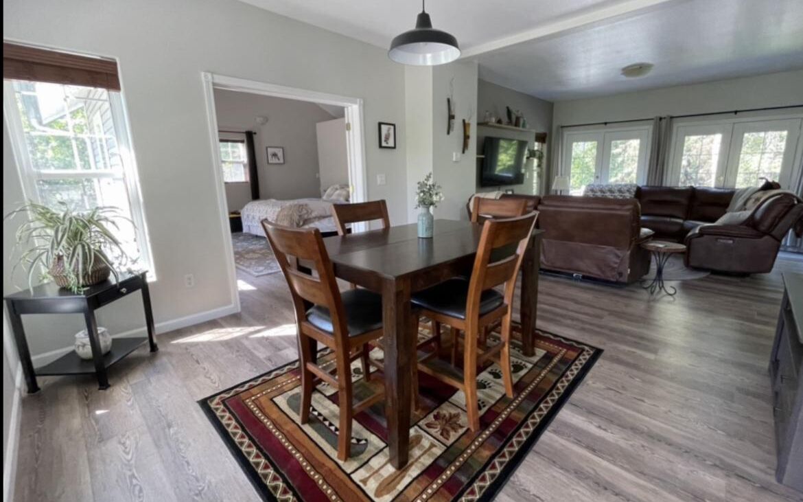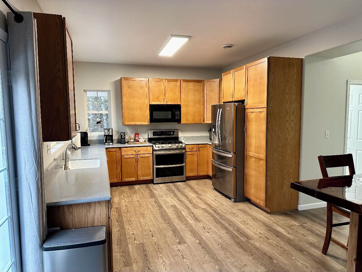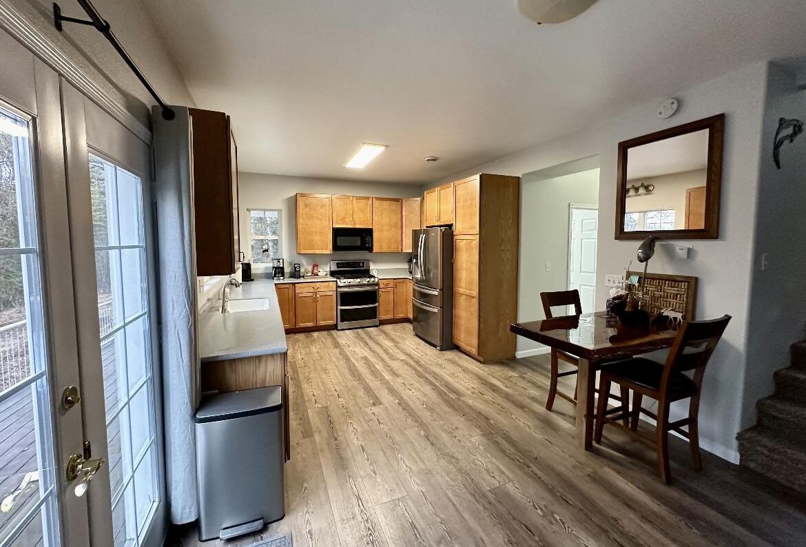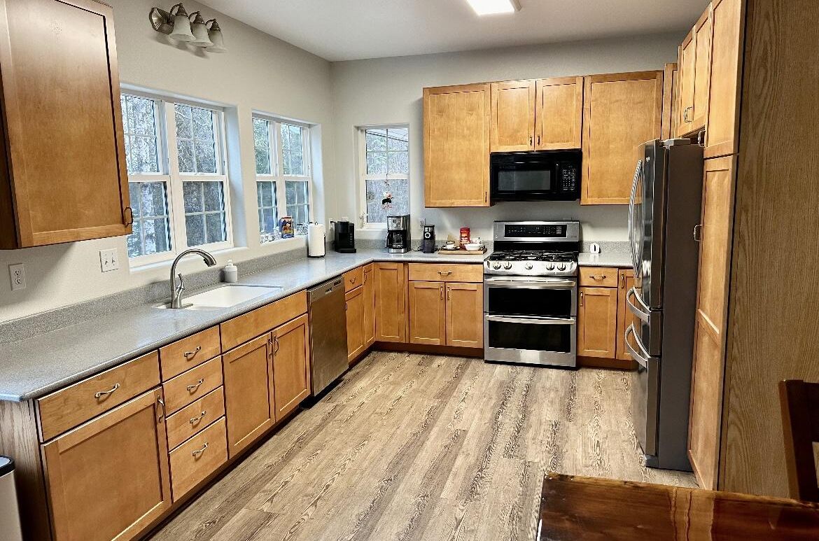 Constellation Lake Home Constellation Lake Home is the perfect destination vacation home set on the shores of a private lake located within 3 miles of the Kasilof River boat launch! A great place to stay if you plan on fishing the river and also plan on fishing or visiting in Homer as well. An amazing retreat cozy enough for a couple yet large enough for the whole family. The en-suite master is on the main floor. The 3 guest bedrooms, a loft and the spacious guest bath are located upstairs. Close to mercantile & cafe.Constellation Lake Home is located in Kasilof. Within a 20-minute scenic drive are the nearby towns of Kenai and Soldotna for all your shopping needs. There is a Walmart Super Center and a Safeway in Kenai, and Sportsman’s Warehouse, Fred Meyer and more in Soldotna. This beautiful home has room to spread out with multiple dining spaces and outdoor seating. The main floor offers a spacious kitchen with an open concept dining/living room as well as a separate breakfast nook. Enjoy outdoor dining from the raised deck overlooking the lake. Modern reclining leather sofas offer a comfortable gathering space where you can stream your favorites on the 60” Smart TV. Admire the beautiful lake view through the bright French doors and keep your eyes peeled for moose. There is a Traeger grill for guests to use. This attractive home is in a terrific central location for world class fishing and outdoor adventures on the Kenai Peninsula- Alaska’s Playground!
