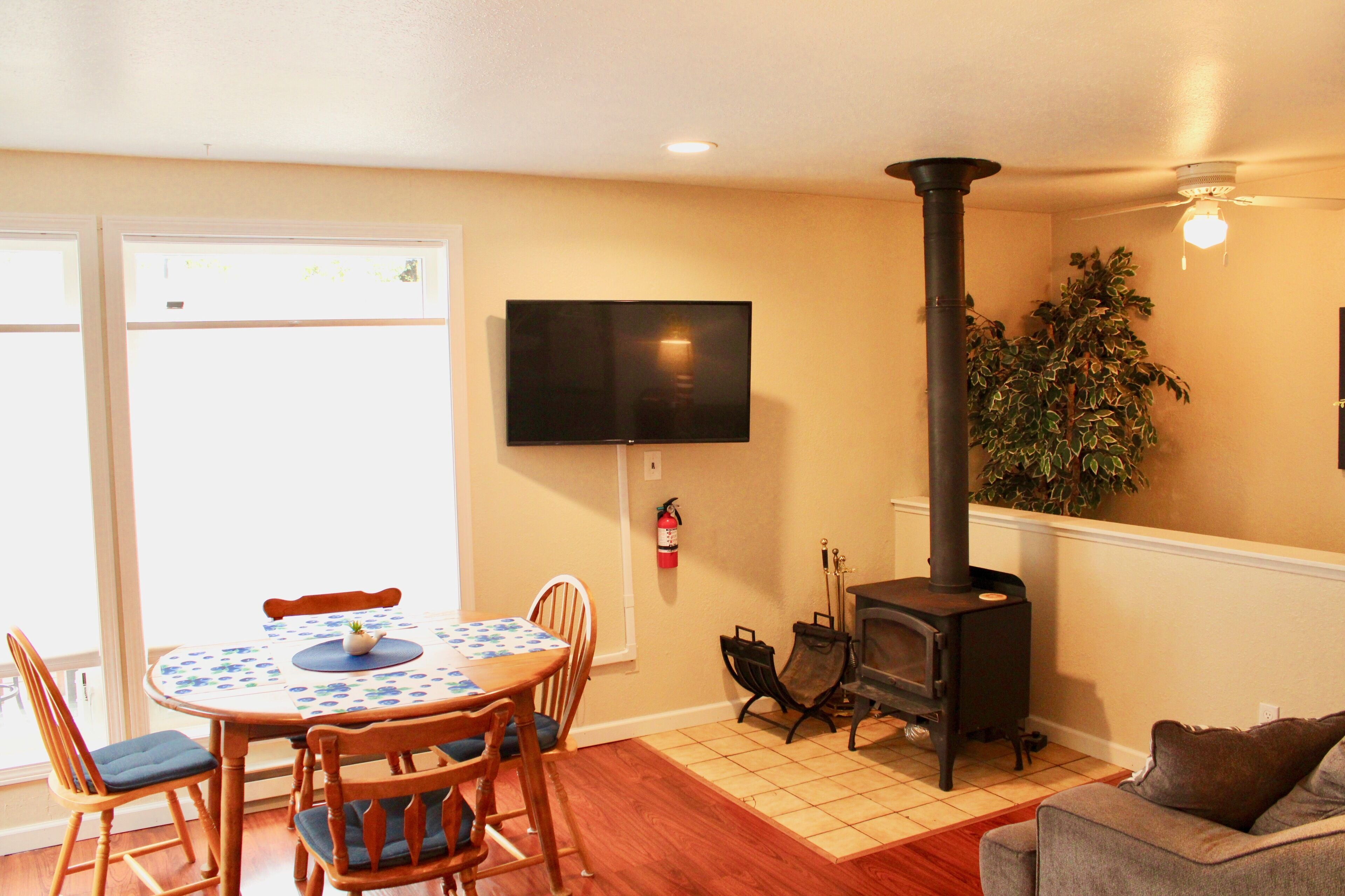 Blueberry Haven - At the Base of Mt. Marathon Enjoy Blueberry Haven - a two story townhouse at the base of Seward's Mount Marathon. The upper floor, with living area, kitchen, and half bath, has lots of natural light with large windows and a sliding glass door. Enjoy the fully equipped kitchen w/peninsula and the deck with barbecue grill and table and chairs. In the evening, relax around the outdoor fire pit. Two bedrooms and a full bathroom are located on the ground floor. One bedroom has a queen bed and the other bedroom has two twin beds; sleeps four adults comfortably (add'l fee over four guests). There is an inflatable mattress/bedding available as needed for children. Just a 10-15 minute walk to the Alaska SeaLife Center, downtown shops, waterfront trail, and harbor area. During the summer, Seward's free shuttle stops three blocks away. For runners and hikers, the townhouse is next to the Mount Marathon runner's trail and only three blocks from the hiker's trail.