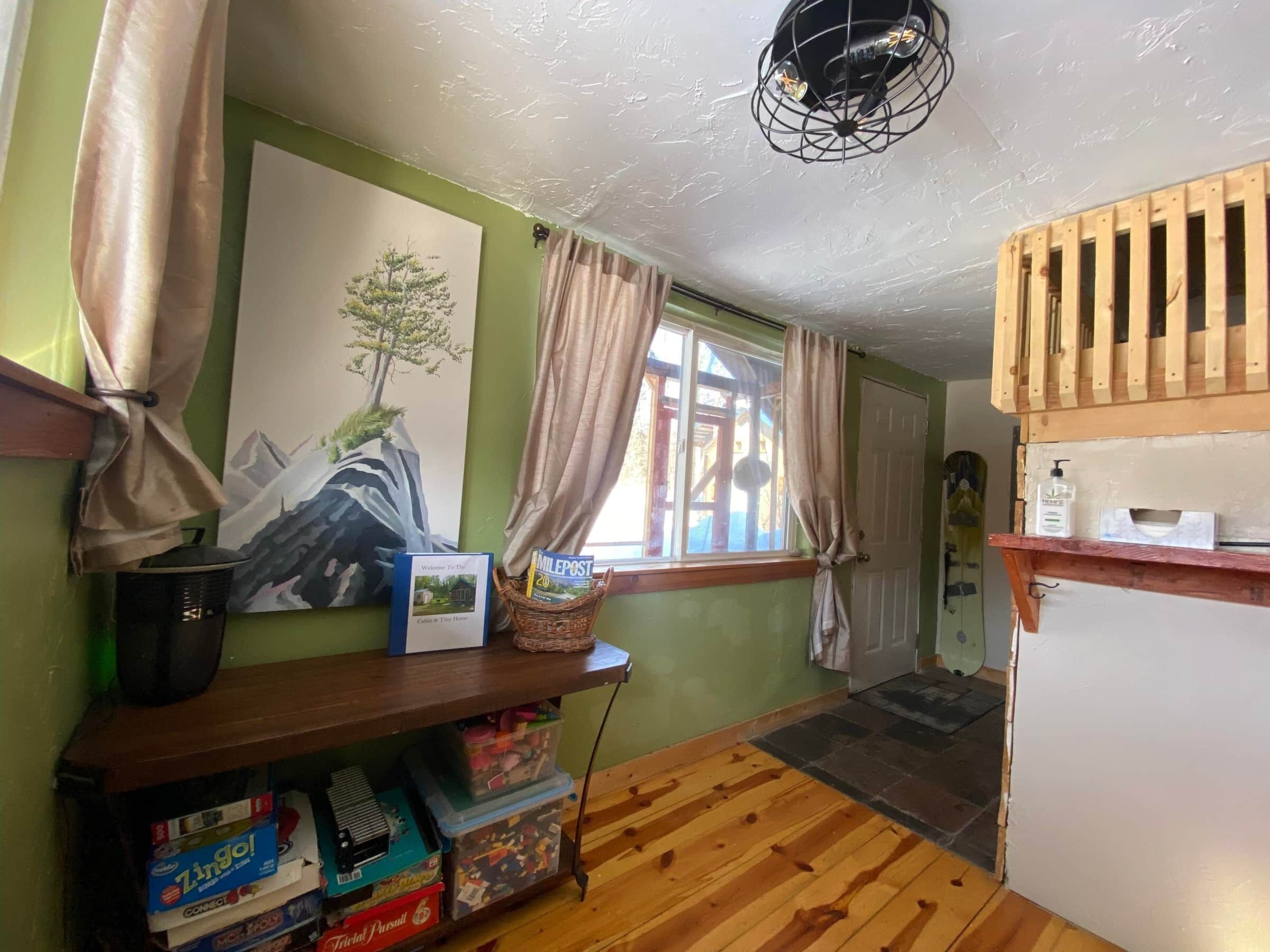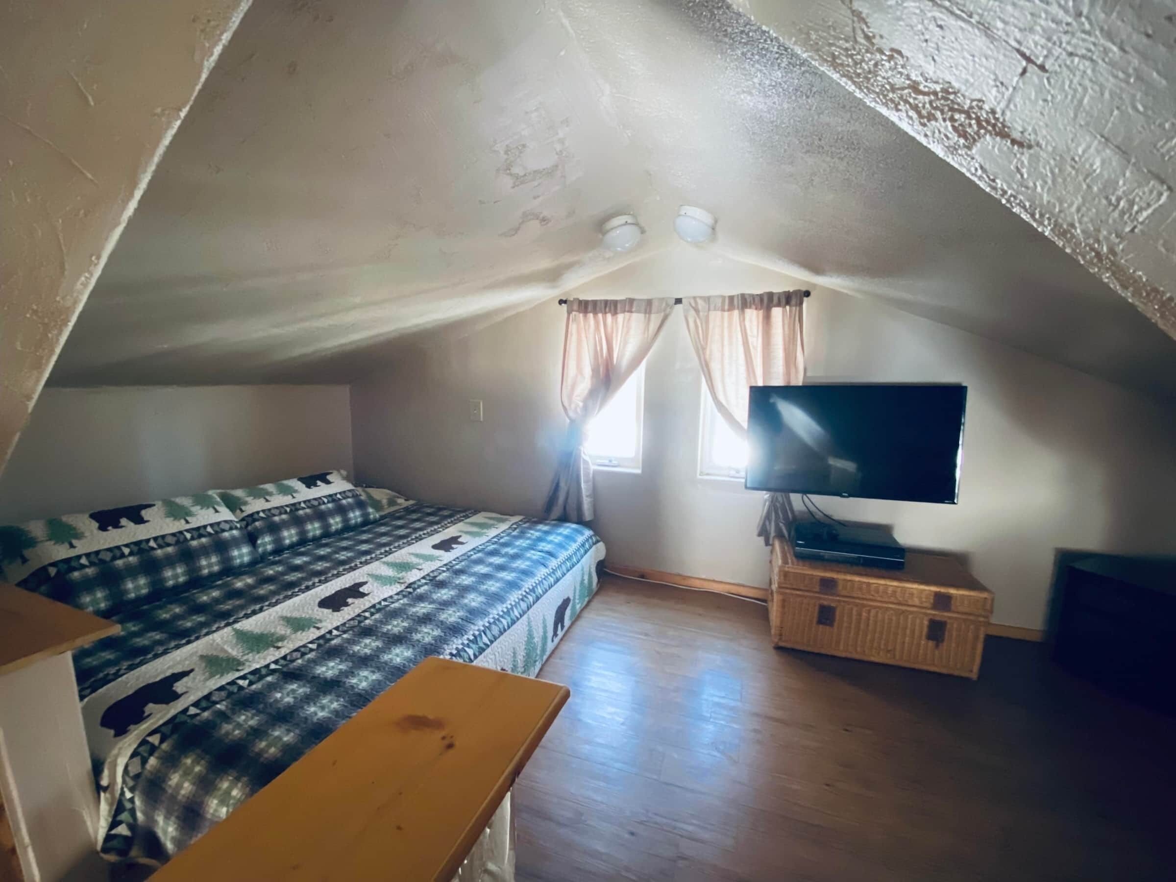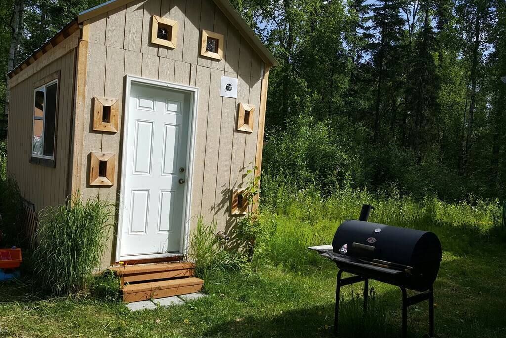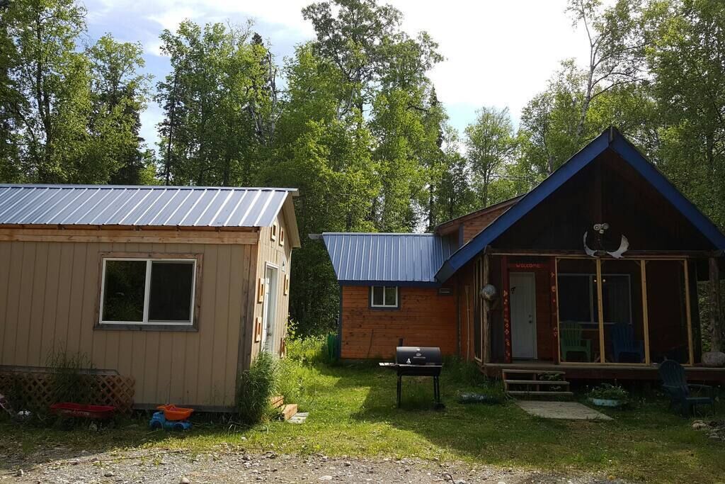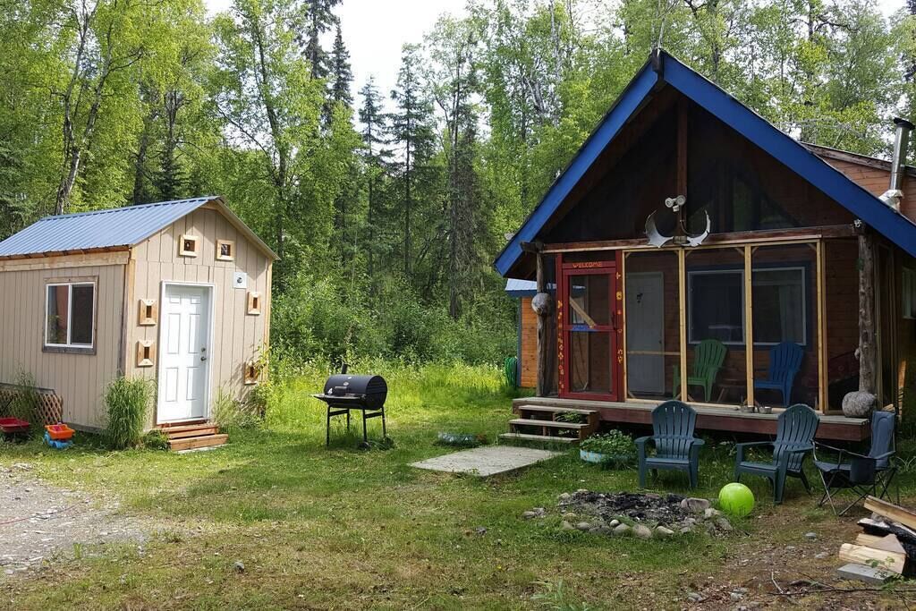 Cabin and Tiny Home The Cabin and Tiny Home is situated a moderately tree'd 1 acre property with plenty of privacy. The 'Main Cabin' has a living room, loft, full kitchen, full bathroom, washer/dryer and dishwasher. The 'Tiny House' has a loft with a queen bed and a living room with a TV. Both the 'Main Cabin' and the 'Tiny Home' have Toyo heaters which are reliable and easy to operate. There is a nice campfire ring in the front yard for summer or winter bonfires.The Main Cabin: The main cabin has a cozy living room with comfortable reclining leather furniture. For family meals there is a fold-able table and chairs stored under the stair case. There is a full bathroom and washer/dryer, shampoo and soap are provided if needed. The kitchen is equipped with a full size re-refrigerator, electric range oven/stove top, and dishwasher. You will find a full compliment of pots, pans, plates, bowls, glasses, utensils etc.... The front porch is also covered and screened in so you can hangout during rainy days bug free.There are games, movies, and lots of books provided for your entertainment and evening activities with friends. The loft in cabin is the sleeping area of the cabin and has a king and queen bed. There is also a Smart TV with a DVD/VHS player in the loft so that you can hangout relax and watch a movie.The Tiny Home:The 'Tiny Home' has a quaint little living room and a loft with a queen bed. There is a TV and DVD player along with some movies in the Tiny Home. There is an electric heater for heat and it has a half bath that is available for use in the summer but is not in-service in the winter due to freezing temperatures on the outdoor water line.The Property:The Cabin is located on a 1 acre piece of property on a culdesac road with very little road traffic making it the perfect neighborhood for walking and biking. There is also a charcoal bbq for having cookout.The main cabin and tiny home are fully accessible. The shop is the only building not accessible.I will be available by phone and will occasionally be in Talkeetna while hosting guests at the cabin. A full list of activities and local spots to go will be left at the cabin for guests.This is a small quiet residential neighborhood with nice and friendly neighbors. This is a dog friendly neighborhood so expect some of the neighbors dogs comming by and saying hi. There is a lake and park within walking distance that has good fishing for trout and landlocked salmon, the lake is perfect for a canoe or kayak.It is a 5min drive to downtown Talkeetna from the house, or a 20min bike ride. Streets are pedestrian friendly. There are parks, lakes, and trails within close proximity of the cabin.