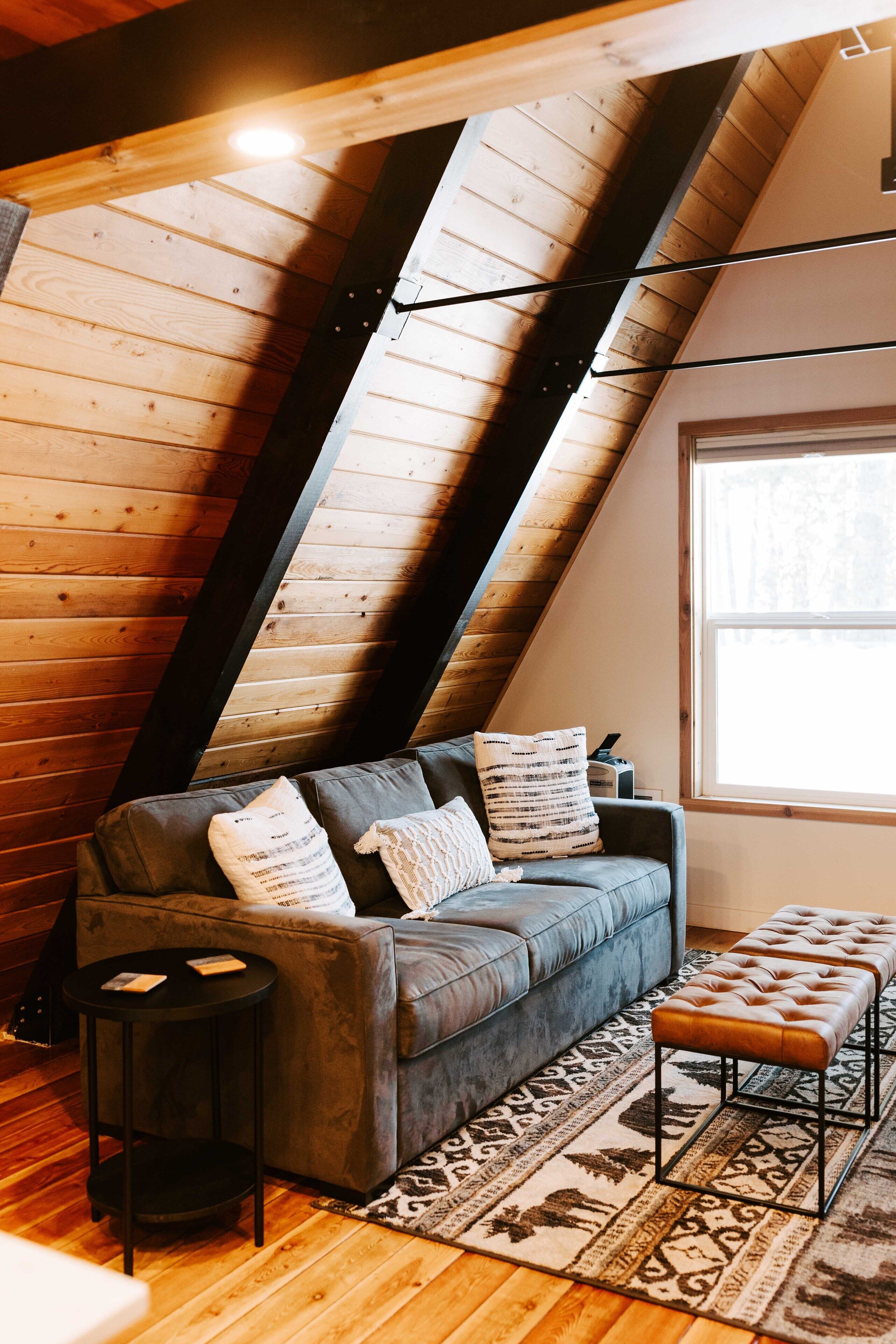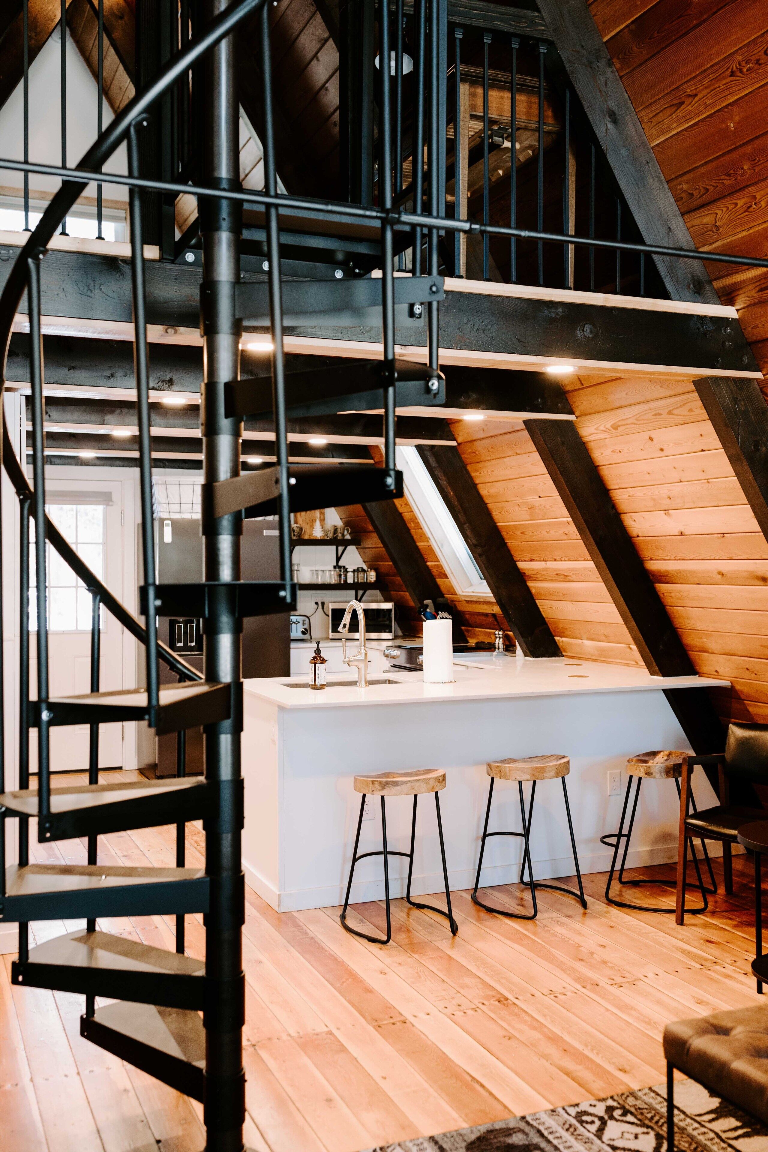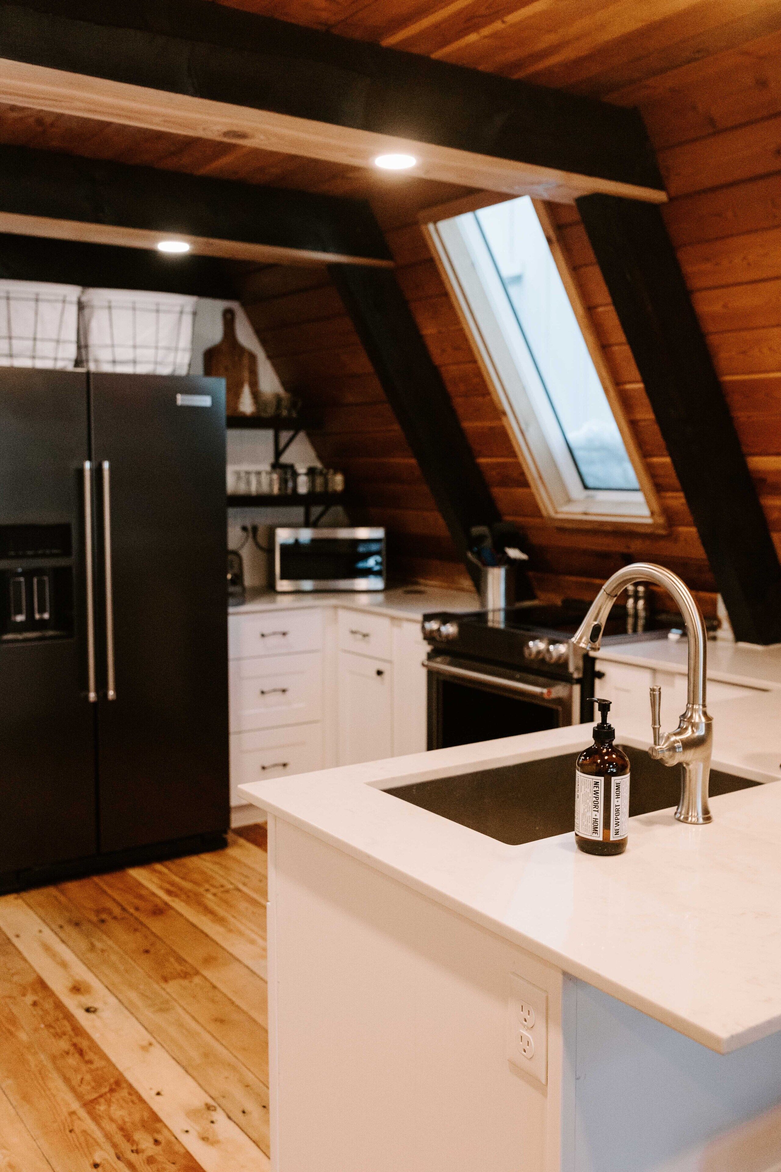 Charming cabin tucked near Cascade Lake Newly remodeled a-frame cabin - perfect for a cozy weekend getaway! A-Frame has a lofted bedroom, as well as a sleeper couch and full bathroom on the main level. Other amenities include: fully equipped kitchen, hot tub, wifi, and roku tv. Limited lake views from the front deck, and just a short walk can provide you with access to a public park and the lake....