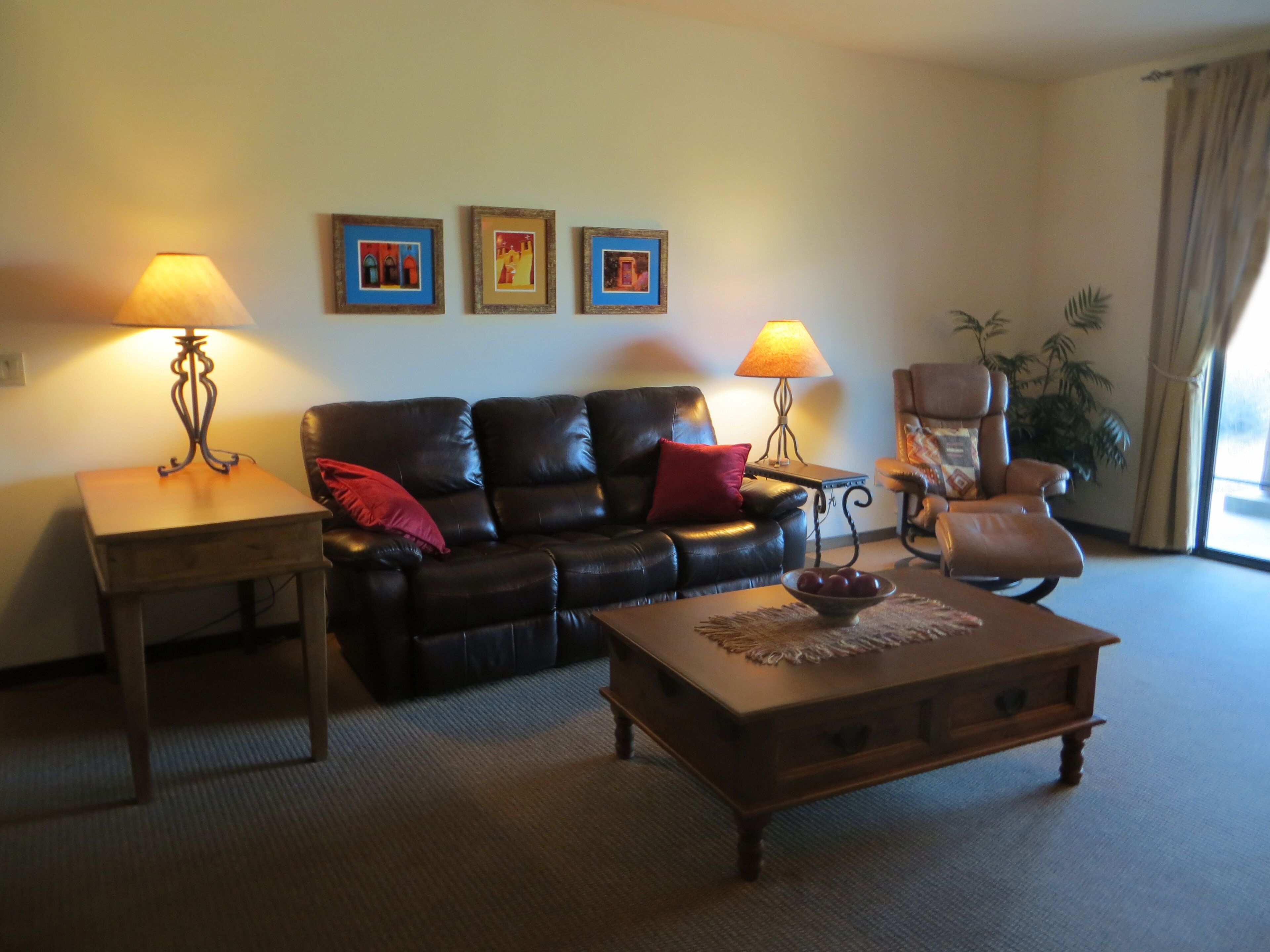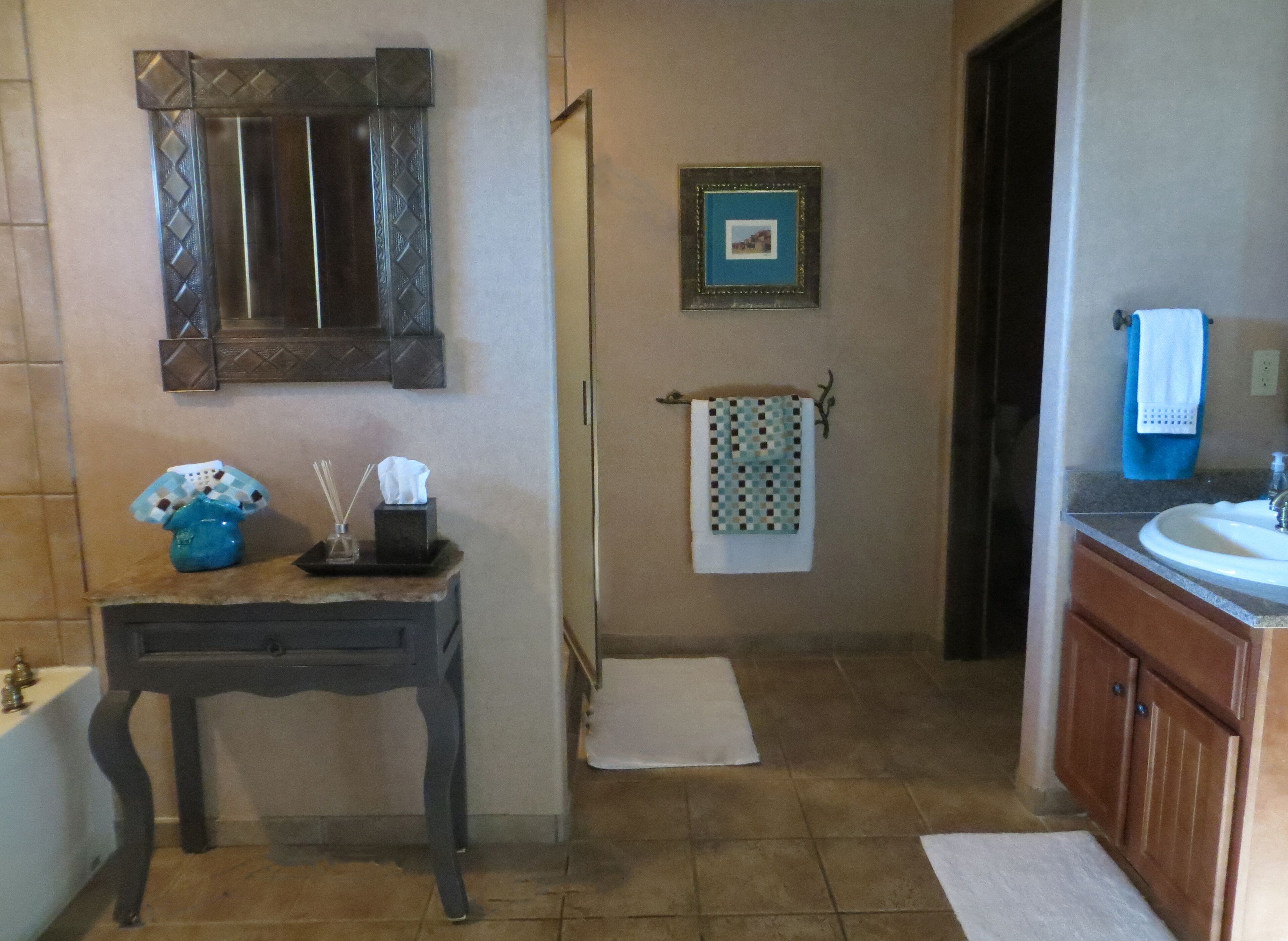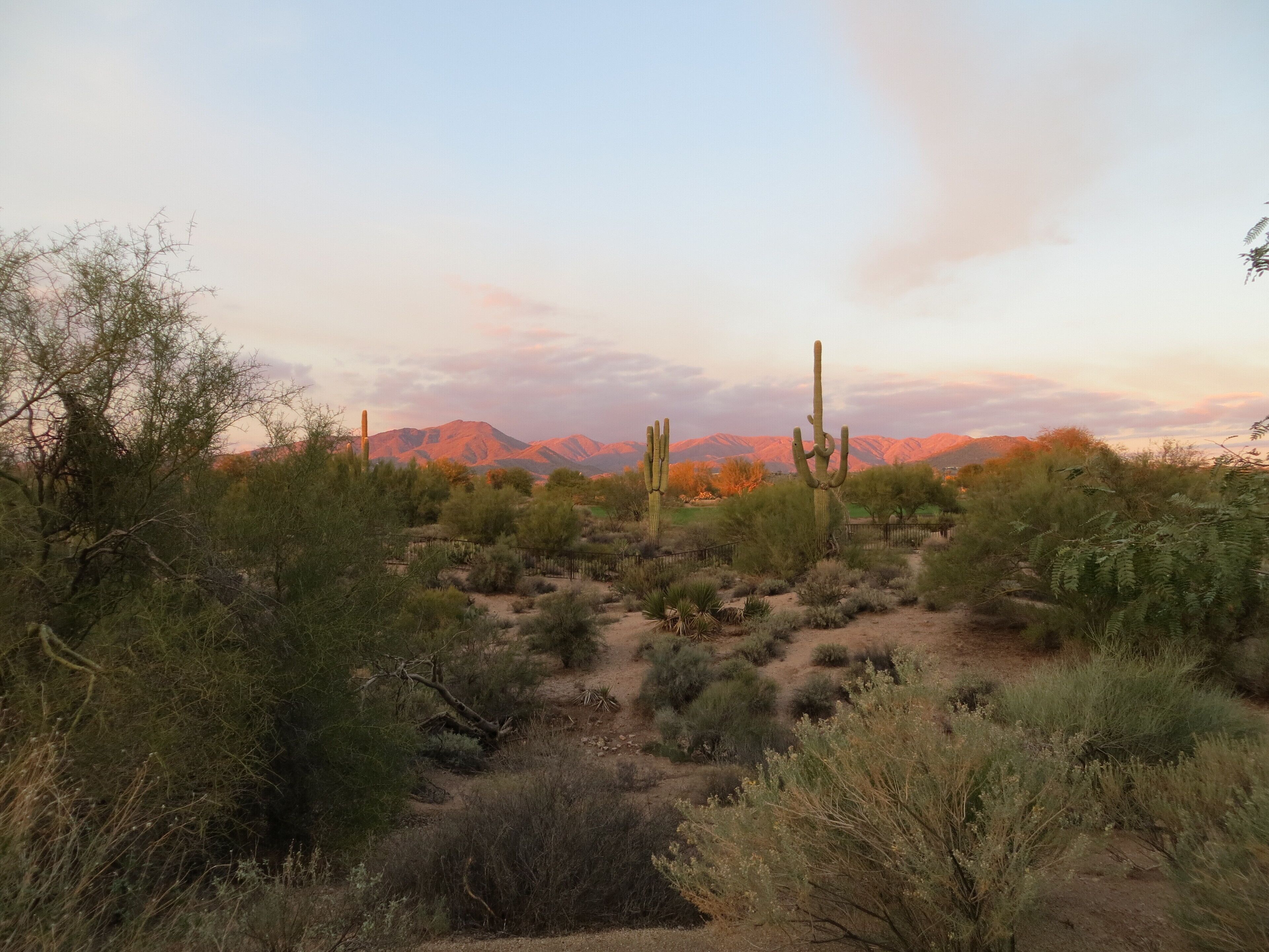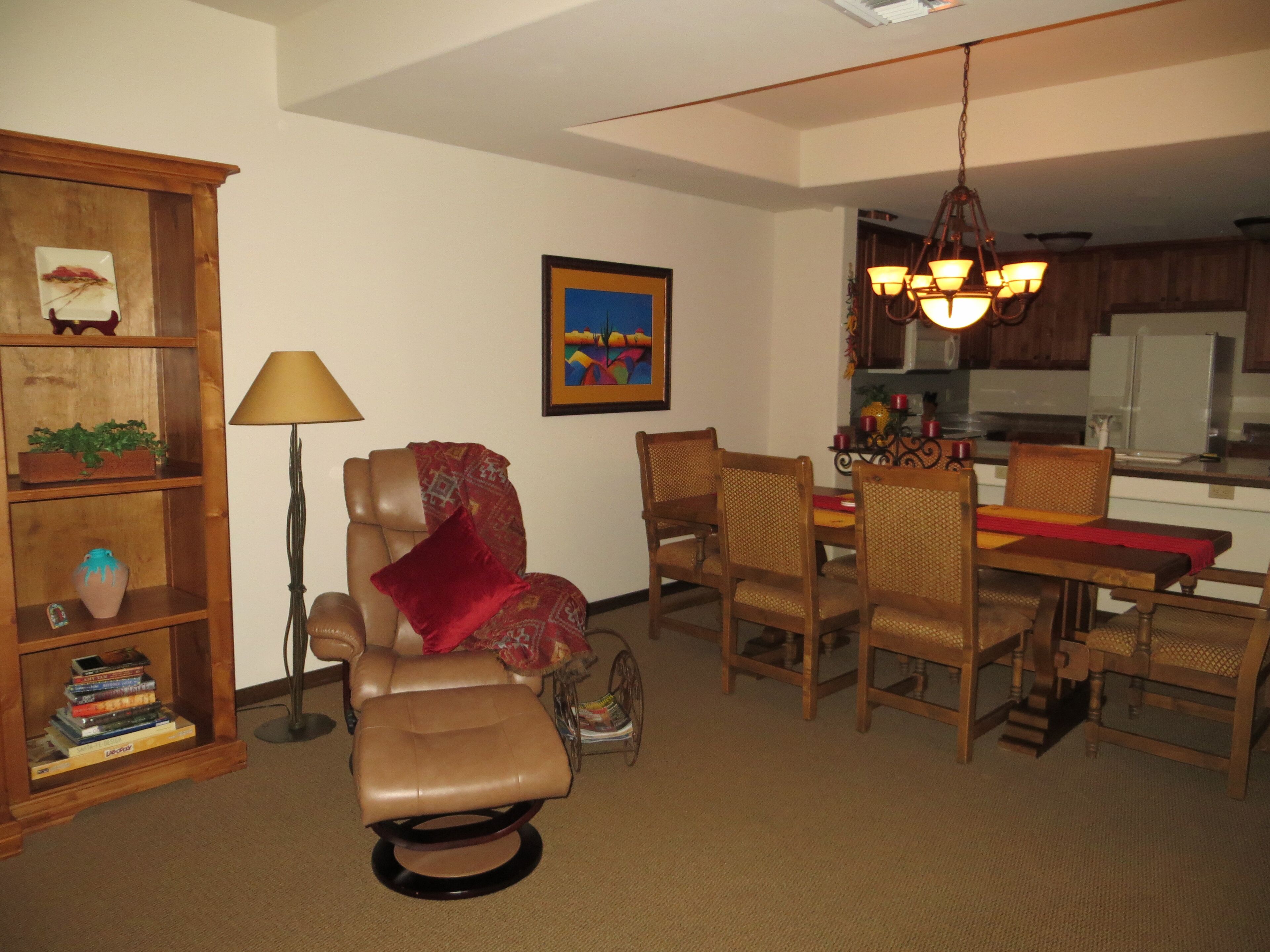You'll Love The Views! Spacious 2br/2 1/2ba Condo With Sunset & Mountain Views! Experience the comfort and tranquility of a quiet, gated neighborhood with resort-style amenities of a community swimming pool (heated in winter), hot tub, and putting green. Our 2,000 sq. ft. villa embraces desert living with 2 private covered patios and no interior or exterior stairs. Secure WiFi (password protected for our unit only), high-speed internet, and cable are available throughout the villa. From our fully stocked and ideally located Carefree vacation villa, you can be in town or the desert in minutes. Tennis and bike rentals are an easy 5 minute walk; public golf courses a very short drive away.Relax in the Master Suite comprised of a spacious family room, dining area, full kitchen, powder room, and master bedroom with king bed, large walk-in closet, and full bath with jetted tub and shower. New flat screen HDTV's with cable and DVD/CD players in the family room and master bedroom are provided for your entertainment. Your guests will enjoy a private (lock-off) Guest Suite: den, bedroom with king bed and TV/DVD, full bath and walk-in closet. Both suites have private covered patios to enjoy the desert beauty and abundant wildlife. This unique area north of Scottsdale offers a quiet haven with beautiful views of mountains, desert, and stately saguaros. Hummingbirds, owls and other bird species, javelina, coyotes, and bobcat are often seen in the early morning and late afternoon. At dusk, enjoy beautiful sunsets followed by a star-filled sky. The greater Carefree area offers a myriad of activities. Hike nearby Cave Creek Park, Spur Cross Ranch, Pinnacle Peak, or other desert trails. Hit the links or enjoy the courts at the area's world class golf and tennis resorts or public courses. Bike or horseback ride on desert paths. Enjoy authentic Mexican food, delicious BBQ, and casual and fine dining in the many diverse Carefree, Cave Creek or Scottsdale restaurants. Experience the western lifestyle at an authentic rodeo and western-themed restaurants, and enjoy the excitement at a nearby casino. Pamper yourself at a local spa or peruse the many art galleries and shopping experiences in the area. Winter events include the Barrett Jackson Auto Auction and Show, the PGA Phoenix Open, art exhibits, and MLB spring training games.Please join us to experience the best of the Southwest. We invite you to make this your home during your stay in sunny Carefree.Master Suite:Family room with kiva fireplace, flat-screen HDTV with DVD/CDDining area with seating for 6Fully equipped, roomy kitchen: oven/range, refrigerator with ice-maker, microwave, dishwasher, garbage disposal, coffeemaker, toaster, blender, mixer, Forman grillMaster bedroom with king bed, flat-screen HDTV and DVDWalk-in shower, spa tub, and dual sinks in master bathLarge walk-in closetPowder room adjacent to family roomFull laundry room: washer and dryerPrivate covered patio with mountain, desert & golf course viewLock-off Guest Suite with separate entrance:Den with TV, mini-refrigerator, and coffee-makerGuest bedroom with king bed, TV and DVDTub and shower in guest bathWalk-in closetPrivate covered patio with mountain, desert, and sunset viewsAmenities:High speed Internet, secure WiFi (password protected for our unit only), cable TVLinens and towels providedFull kitchen supplies: dining, cooking and baking utensilsSmall kitchen appliances: coffee makers, blender, toaster, mixer, Forman grillFull laundry roomIrons and ironing boards (2)Hair dryers (2)Private garage parking for one car; additional off-street parking adjacent to villaShort walk to community swimming pool and hot tubCommunity club house with lending libraryPutting green