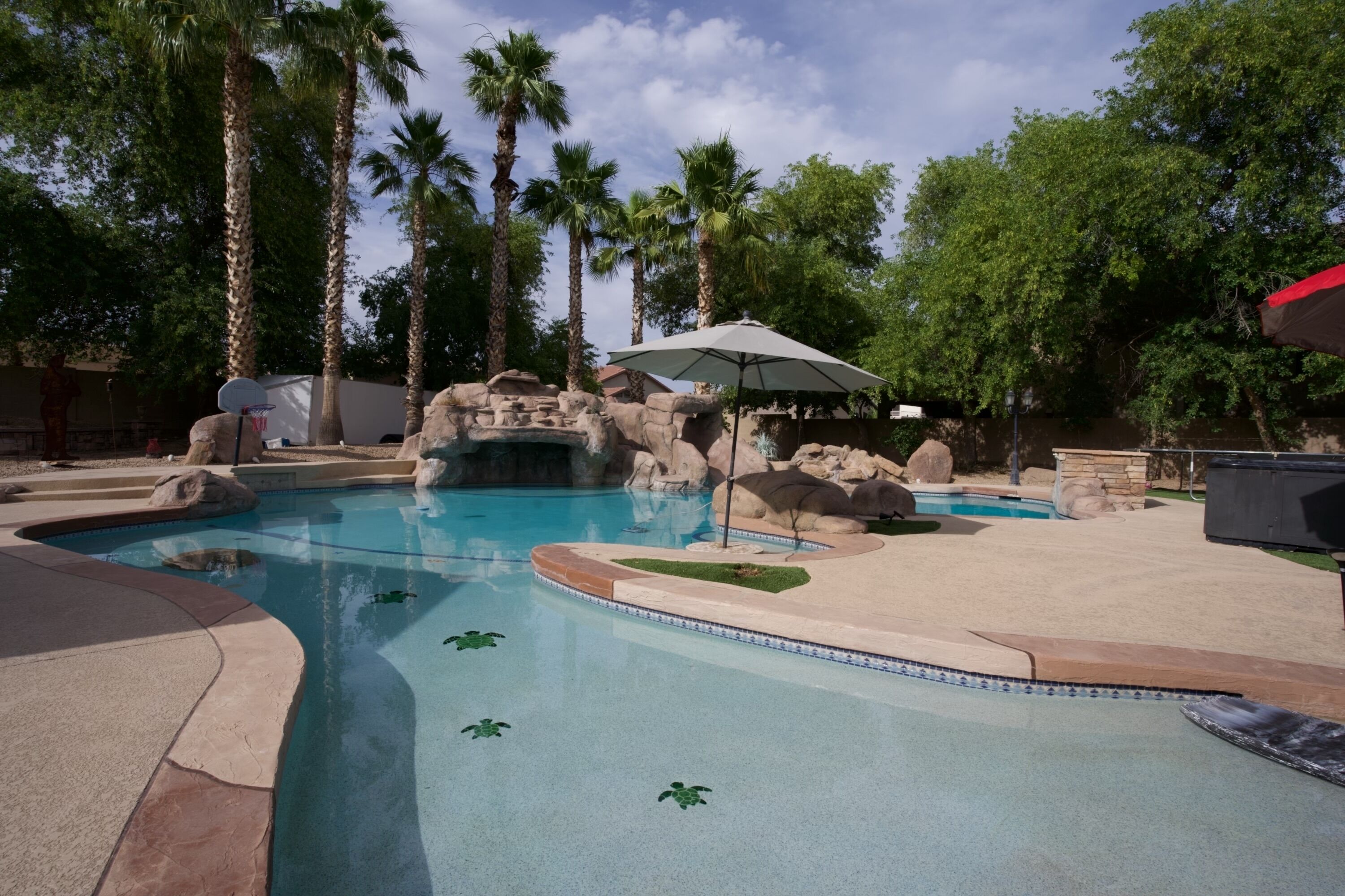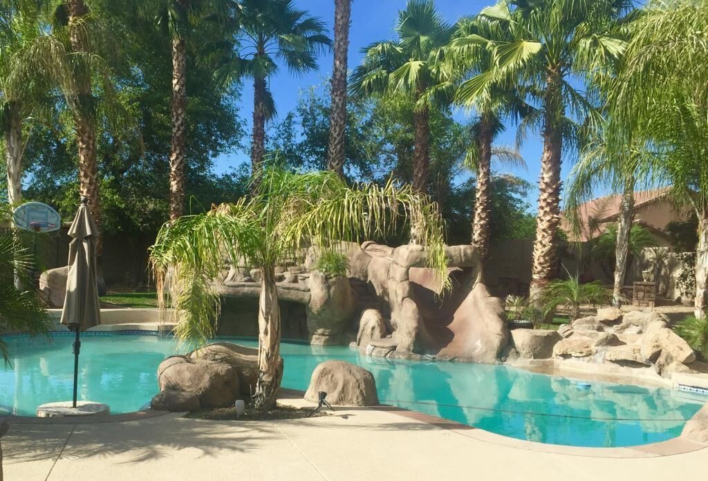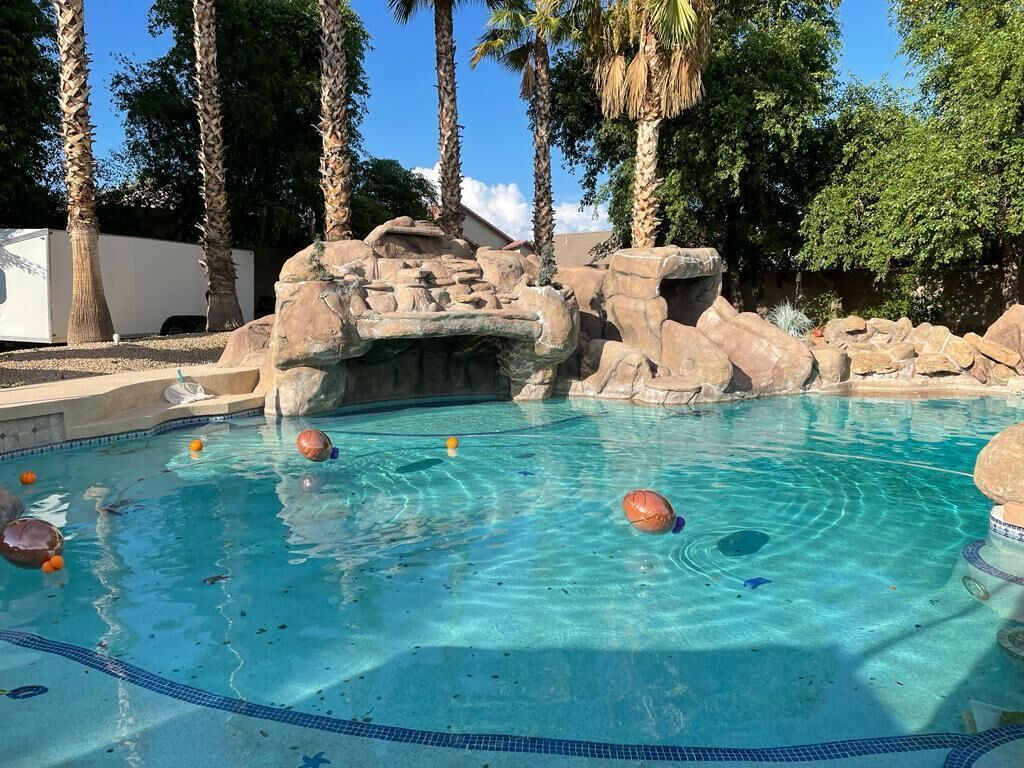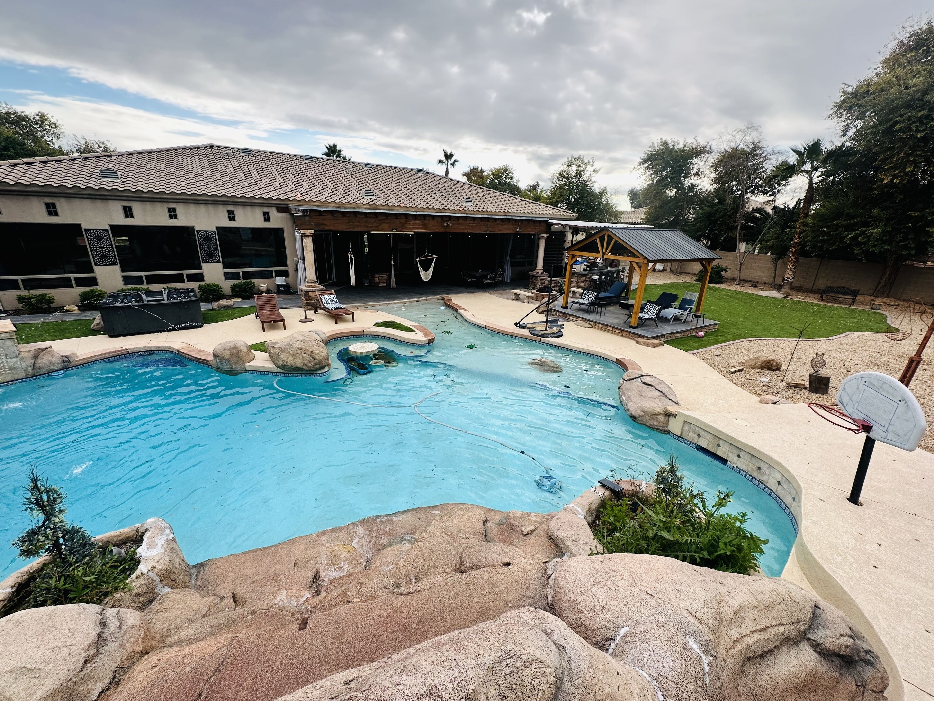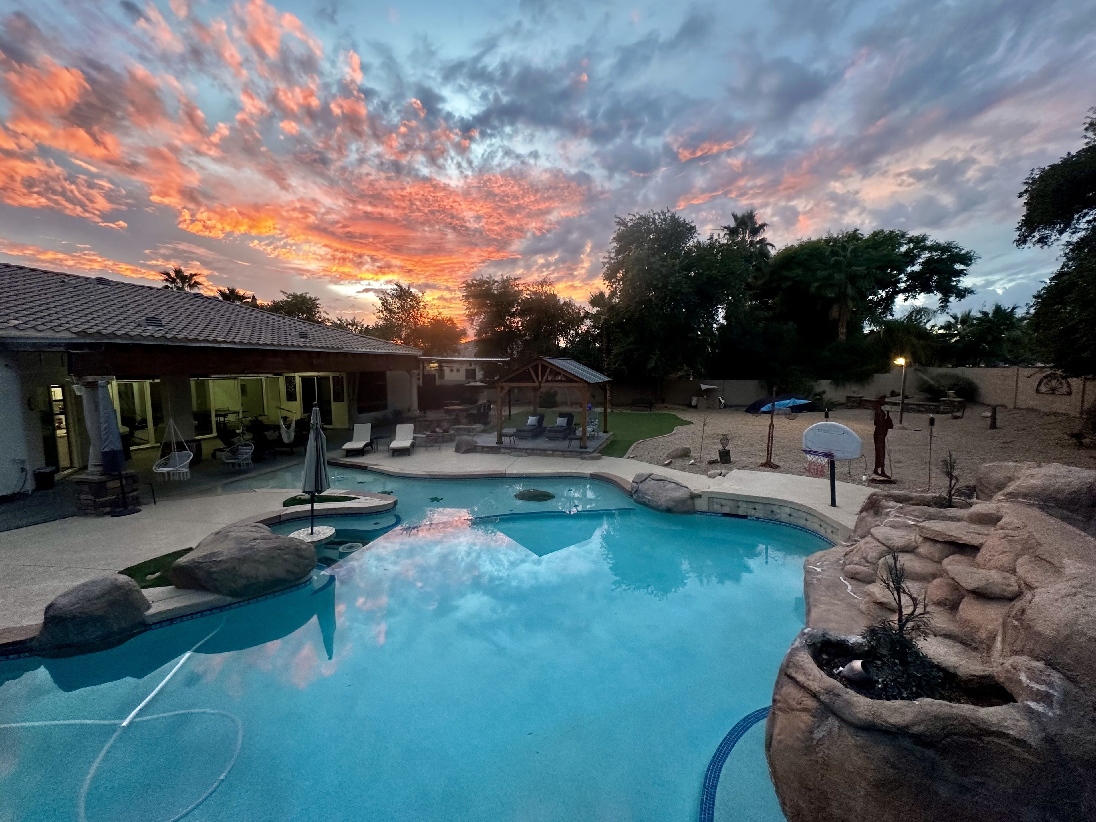 AMAZING CUSTOM HOME - OASIS RESORT STYLE POOL Sleek, sophisticated, and ready to host your next Litchfield Park soirée, this well-appointed vacation rental is just what you’re searching for! Play a round of golf or visit the LA Dodger's & White Sox Camelback Ranch Ballpark in Glendale - all within minutes of this property - before heading back to your home-away-from-home to cool down in the private pool & jacuzzie, complete with waterfalls, jumping rocks and a water slide! Sip a cocktail on the covered patio with and outdoor dinning area before you gather around the fireplace with loved ones. With 4 bedrooms + den and 4 baths, this prime spot has it all!This Arizona home is the ideal spot for large families, sports enthusiasts, and those simply wanting to lounge poolside without sacrificing any at-home comforts and conveniences!-This spectacular custom home on 1 acre lot is located in one of the best areas in west Phoenix. This is a super luxury residence, perfect for a family or friends get together.Huge outdoor living space that includes a pool, outdoor kitchen really nice BBQ area, Gazebo, and fireplace.Bedroom 1: King Bed Bedroom 2: Queen Bed Bedroom 3: Queen Bed Bedroom 4: Full Bed & Bunk BedsDen: 1 Futon Additional Sleeping: 2 Queen Air MattressUp to 12 GuestOUTDOOR SPACE: Pool, yard games, beach chairs, gas grill w/ prepping station, mini-fridge, outdoor dining, patio furnitureINDOOR LIVING: 3 Smart TVs, board games, fireplace, laptop-friendly workspace and a huge game roomKITCHEN: Fully equipped w/ cooking basics, dishware/flatware, Crock-Pot, blender, hot water pot, ice maker, coffee potGENERAL: Free WiFi, washer/dryer, linens/towels, complimentary toiletries, central air conditioning/heat, hair dryers,FAQ: quiet hours (10:00 PM - 6:00 AM), pool depth (3' - 6'5), optional daily pool heat fee (paid pre-trip, applied to entire stay, Sept-May)PARKING: Driveway (8 vehicles), garage (2 vehicles)-- THE LOCATION --Only 9 Minutes from State Farm stadium-super bowlOnly 5 min from the LA Dodgers Spring TrainingOnly 9 min from WestGate EntertainmentOnly 7 min from Top golf, Wigwam golf, Shops, Restaurants & many more attractions.OTHER ATTRACTIONS: Wildlife World Zoo, Aquarium & Safari Park (5 miles), Desert Diamond Casino - West Valley (11 miles), Castles N’ Coasters (25.0 miles), Japanese Friendship Garden of Phoenix (24.2 miles), Phoenix Speedway (34.0 miles), Butterfly Wonderland (37.6 miles)SPRING TRAINING: Camelback Ranch LA Dodgers & White Sox (4 miles)Surprise Stadium (11 miles)Peoria Sports Complex (12 miles)Goodyear Ballpark (9 miles)GOLFING: Grandview Golf Course (7 miles), Sun Village Golf Course (8 miles), Pebble brook Golf Course (7 miles), Cimarron Golf Course (7 miles), Riverview Golf Course (9 miles), Sun City North Golf Course (14 miles), Falcon Dunes Golf Course (16 miles), Pueblo El Mirage Golf Course (9 miles)HIKING TRAILS: White Tank Mountain Regional Park (10 miles), Vietnam Veterans Memorial Trailhead (14 miles), Mesquite Canyon Trail (15 miles), Desert Vista Trailhead (24 miles), Shaw Butte Trailhead (25 miles), Hole in the Rock (28 miles), Apache Wash Trailhead (32 miles), Echo Canyon Recreation Area (36 miles)AIRPORT: Phoenix Sky Harbor International Airport (24 miles)-- POLICIES --- No smoking- No pets allowed- No events, parties, or large gatherings. We have a caretaker just in case of any emergency. The caretaker is on a RV Trailer right next to the house and guest don't have any access to this side of the property and caretaker has no access to the house or any area of the primary residence either. We have a huge 1 acre lot. - Must be at least 21 years old to book- Photo ID may be required upon check-in- NOTE: Please observe quiet hours from 10:00 PM to 6:00 AM- NOTE: There is an optional daily pool heat fee of $150 + fees & taxes, paid pre-trip, applied to entire stay (Sept-May)-NOTE: The maximum number guests allowed is 12 people. Guests #11 and #12 will have an extra fee of $40 per person/per night (including any individuals who do not stay in the house)