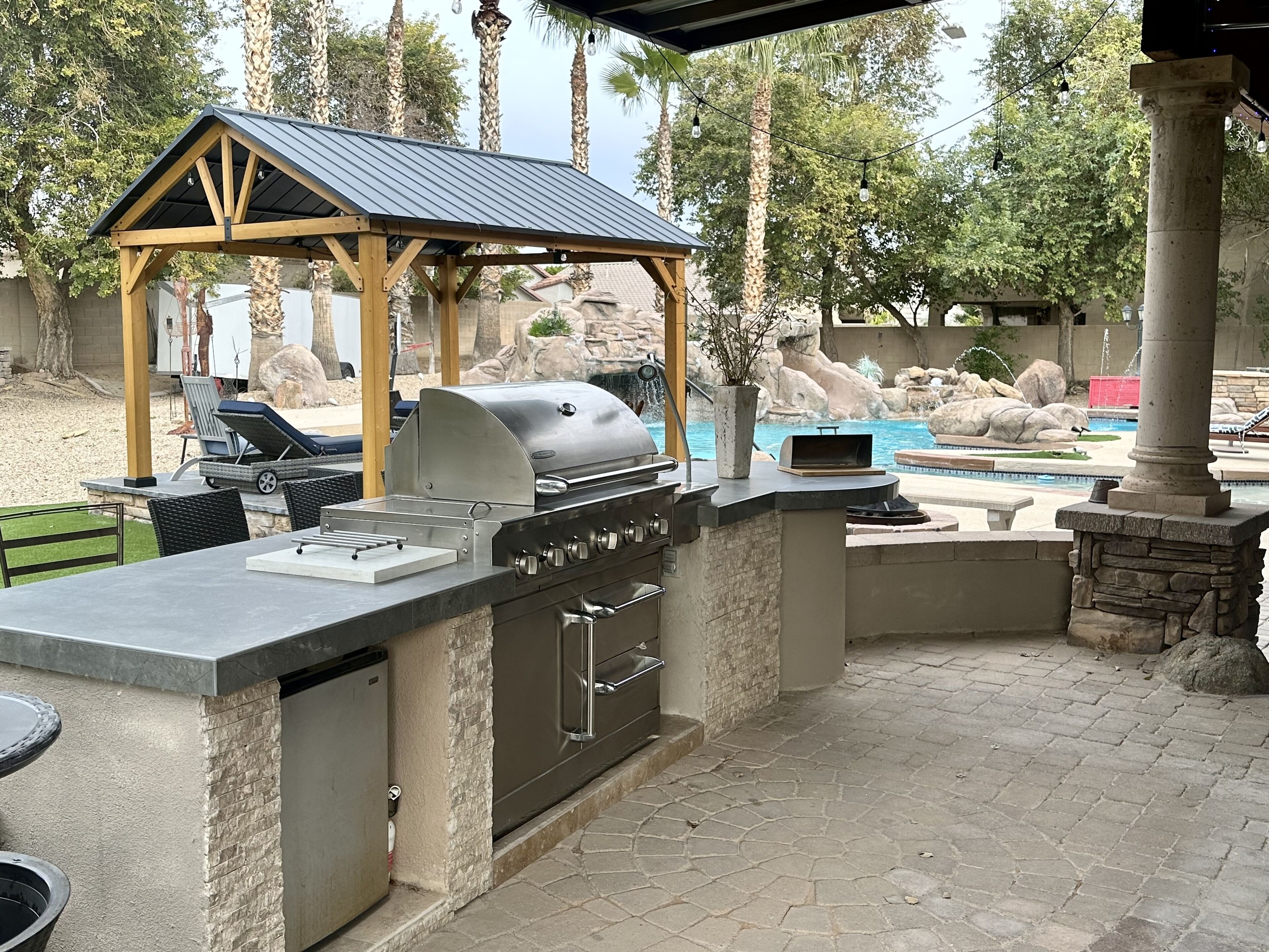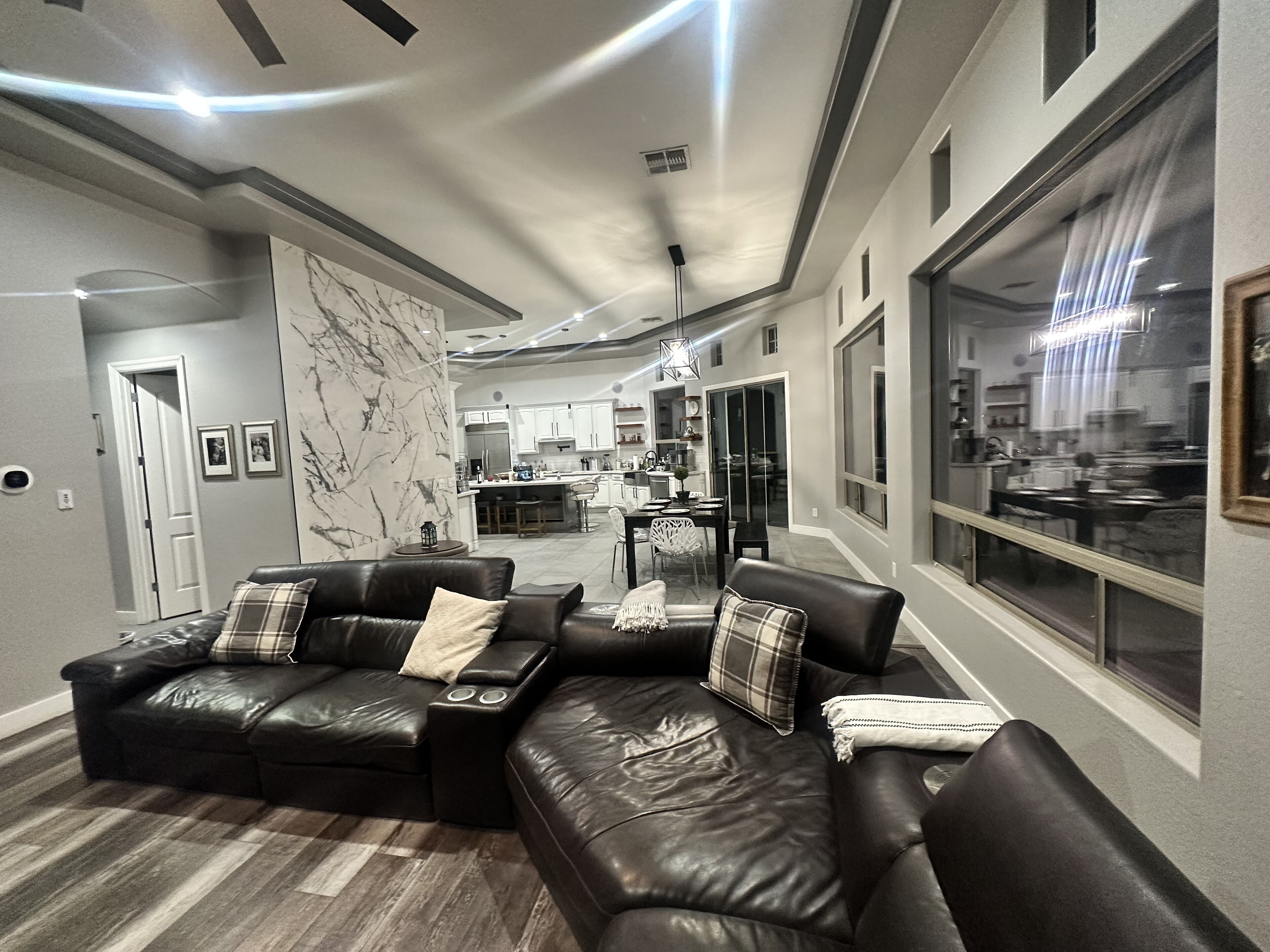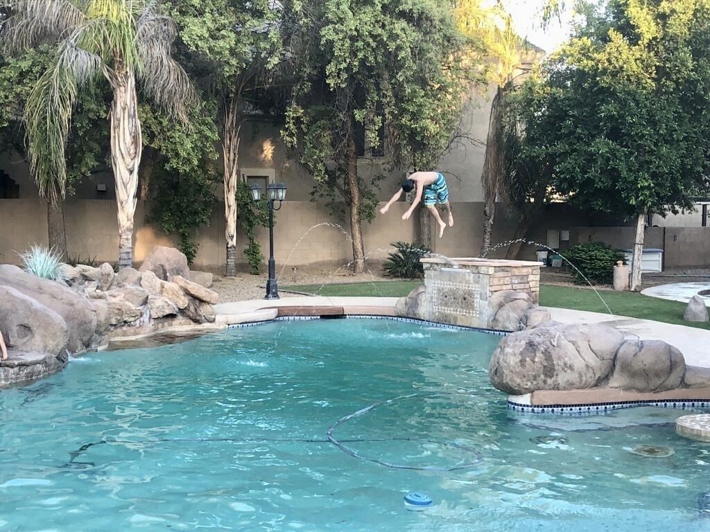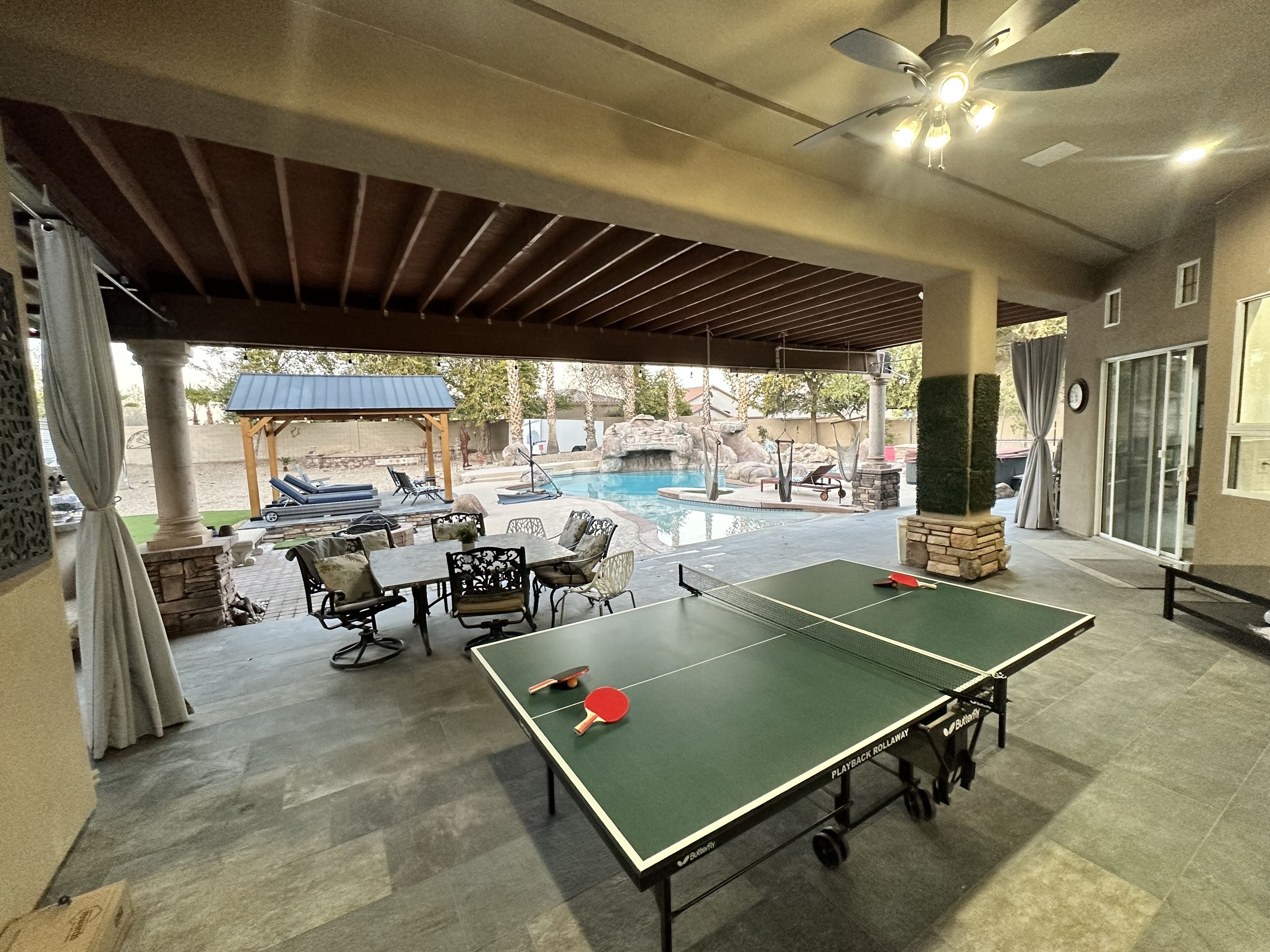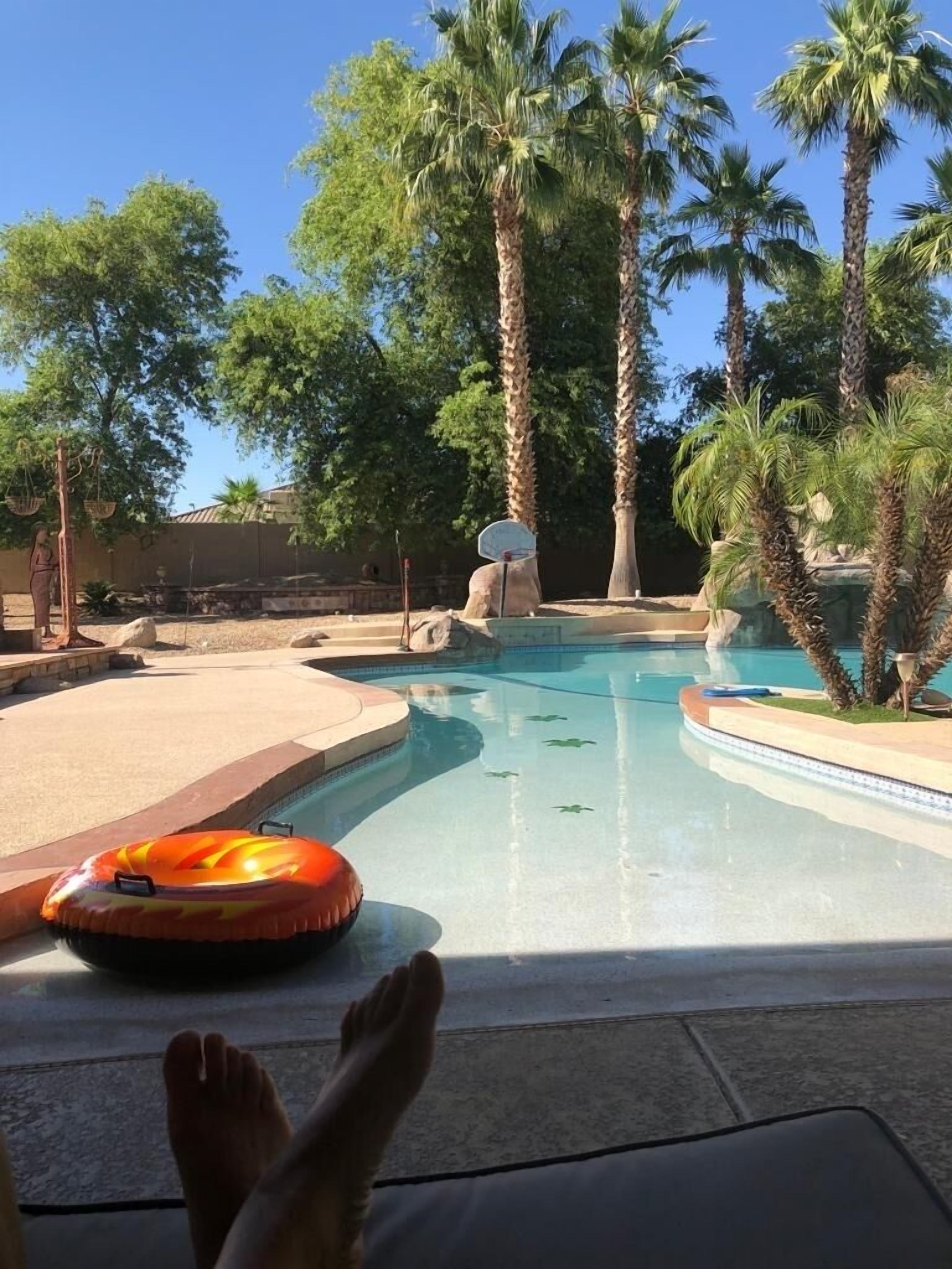 AMAZING CUSTOM HOME - OASIS RESORT STYLE POOL Sleek, sophisticated, and ready to host your next Litchfield Park soirée, this well-appointed vacation rental is just what you’re searching for! Play a round of golf or visit the LA Dodger's & White Sox Camelback Ranch Ballpark in Glendale - all within minutes of this property - before heading back to your home-away-from-home to cool down in the private pool & jacuzzie, complete with waterfalls, jumping rocks and a water slide! Sip a cocktail on the covered patio with and outdoor dinning area before you gather around the fireplace with loved ones. With 4 bedrooms + den and 4 baths, this prime spot has it all!This Arizona home is the ideal spot for large families, sports enthusiasts, and those simply wanting to lounge poolside without sacrificing any at-home comforts and conveniences!-This spectacular custom home on 1 acre lot is located in one of the best areas in west Phoenix. This is a super luxury residence, perfect for a family or friends get together.Huge outdoor living space that includes a pool, outdoor kitchen really nice BBQ area, Gazebo, and fireplace.Bedroom 1: King Bed Bedroom 2: Queen Bed Bedroom 3: Queen Bed Bedroom 4: Full Bed & Bunk BedsDen: 1 Futon Additional Sleeping: 2 Queen Air MattressUp to 12 GuestOUTDOOR SPACE: Pool, yard games, beach chairs, gas grill w/ prepping station, mini-fridge, outdoor dining, patio furnitureINDOOR LIVING: 3 Smart TVs, board games, fireplace, laptop-friendly workspace and a huge game roomKITCHEN: Fully equipped w/ cooking basics, dishware/flatware, Crock-Pot, blender, hot water pot, ice maker, coffee potGENERAL: Free WiFi, washer/dryer, linens/towels, complimentary toiletries, central air conditioning/heat, hair dryers,FAQ: quiet hours (10:00 PM - 6:00 AM), pool depth (3' - 6'5), optional daily pool heat fee (paid pre-trip, applied to entire stay, Sept-May)PARKING: Driveway (8 vehicles), garage (2 vehicles)-- THE LOCATION --Only 9 Minutes from State Farm stadium-super bowlOnly 5 min from the LA Dodgers Spring TrainingOnly 9 min from WestGate EntertainmentOnly 7 min from Top golf, Wigwam golf, Shops, Restaurants & many more attractions.OTHER ATTRACTIONS: Wildlife World Zoo, Aquarium & Safari Park (5 miles), Desert Diamond Casino - West Valley (11 miles), Castles N’ Coasters (25.0 miles), Japanese Friendship Garden of Phoenix (24.2 miles), Phoenix Speedway (34.0 miles), Butterfly Wonderland (37.6 miles)SPRING TRAINING: Camelback Ranch LA Dodgers & White Sox (4 miles)Surprise Stadium (11 miles)Peoria Sports Complex (12 miles)Goodyear Ballpark (9 miles)GOLFING: Grandview Golf Course (7 miles), Sun Village Golf Course (8 miles), Pebble brook Golf Course (7 miles), Cimarron Golf Course (7 miles), Riverview Golf Course (9 miles), Sun City North Golf Course (14 miles), Falcon Dunes Golf Course (16 miles), Pueblo El Mirage Golf Course (9 miles)HIKING TRAILS: White Tank Mountain Regional Park (10 miles), Vietnam Veterans Memorial Trailhead (14 miles), Mesquite Canyon Trail (15 miles), Desert Vista Trailhead (24 miles), Shaw Butte Trailhead (25 miles), Hole in the Rock (28 miles), Apache Wash Trailhead (32 miles), Echo Canyon Recreation Area (36 miles)AIRPORT: Phoenix Sky Harbor International Airport (24 miles)-- POLICIES --- No smoking- No pets allowed- No events, parties, or large gatherings. We have a caretaker just in case of any emergency. The caretaker is on a RV Trailer right next to the house and guest don't have any access to this side of the property and caretaker has no access to the house or any area of the primary residence either. We have a huge 1 acre lot. - Must be at least 21 years old to book- Photo ID may be required upon check-in- NOTE: Please observe quiet hours from 10:00 PM to 6:00 AM- NOTE: There is an optional daily pool heat fee of $150 + fees & taxes, paid pre-trip, applied to entire stay (Sept-May)-NOTE: The maximum number guests allowed is 12 people. Guests #11 and #12 will have an extra fee of $40 per person/per night (including any individuals who do not stay in the house)