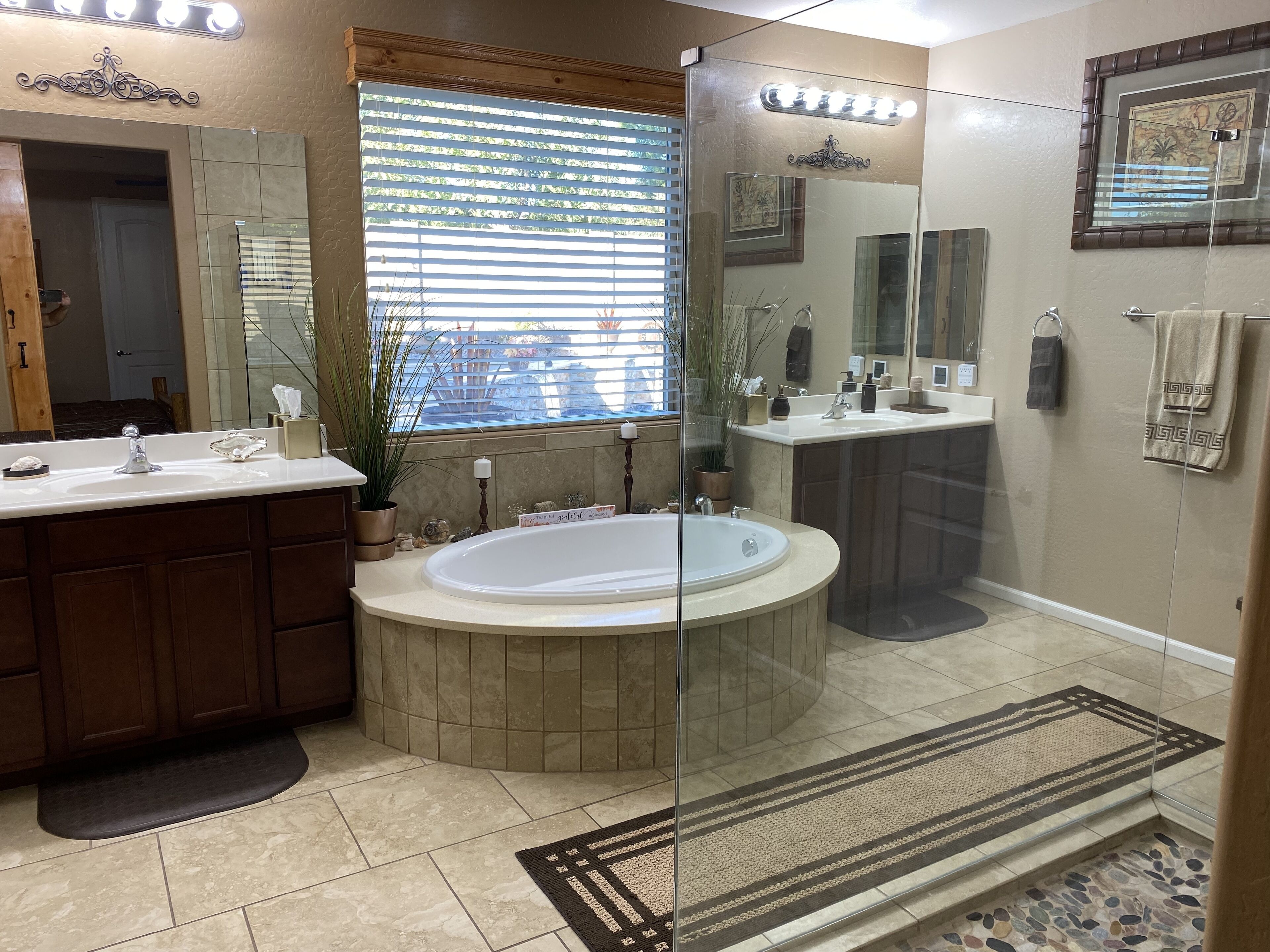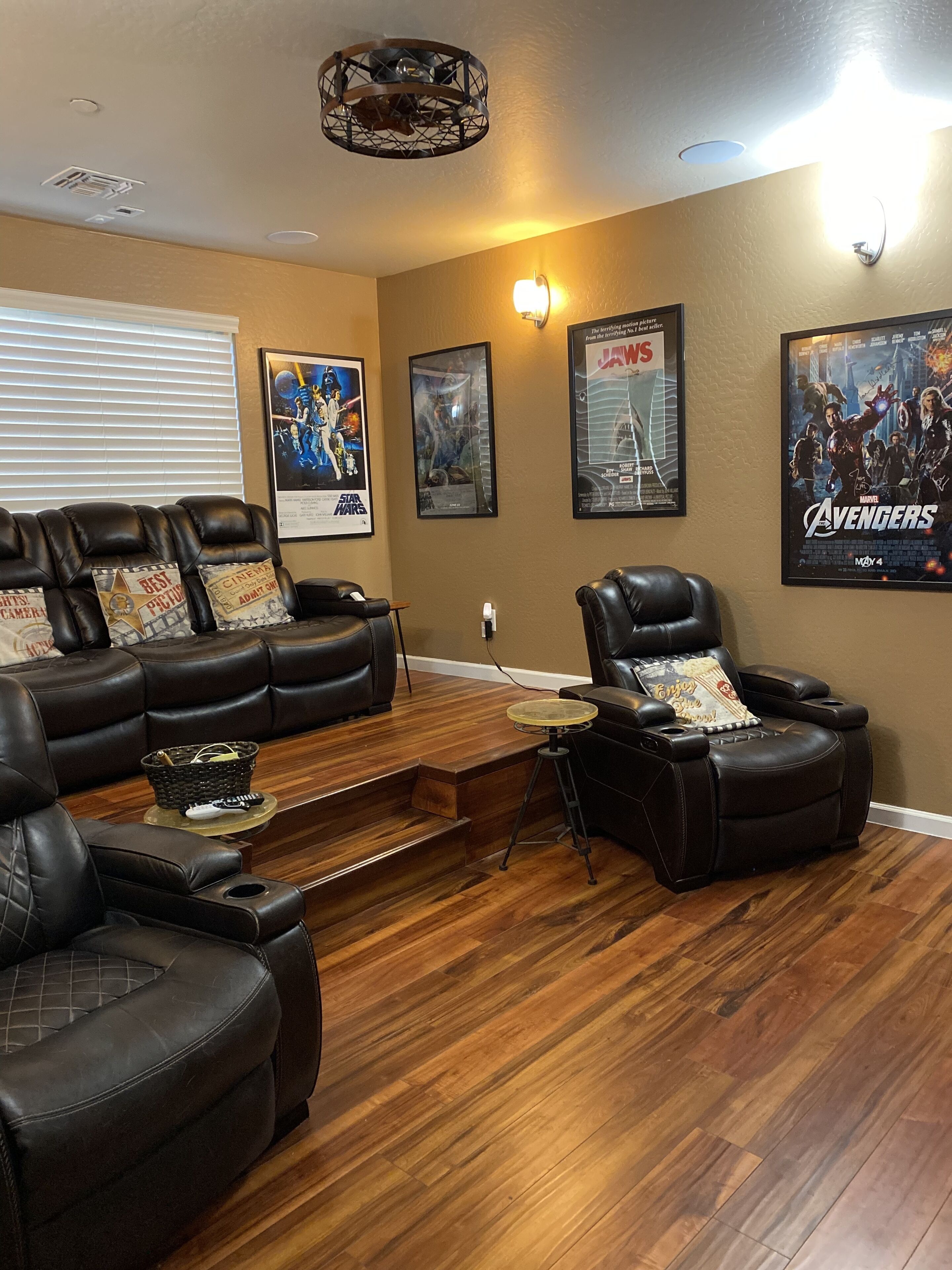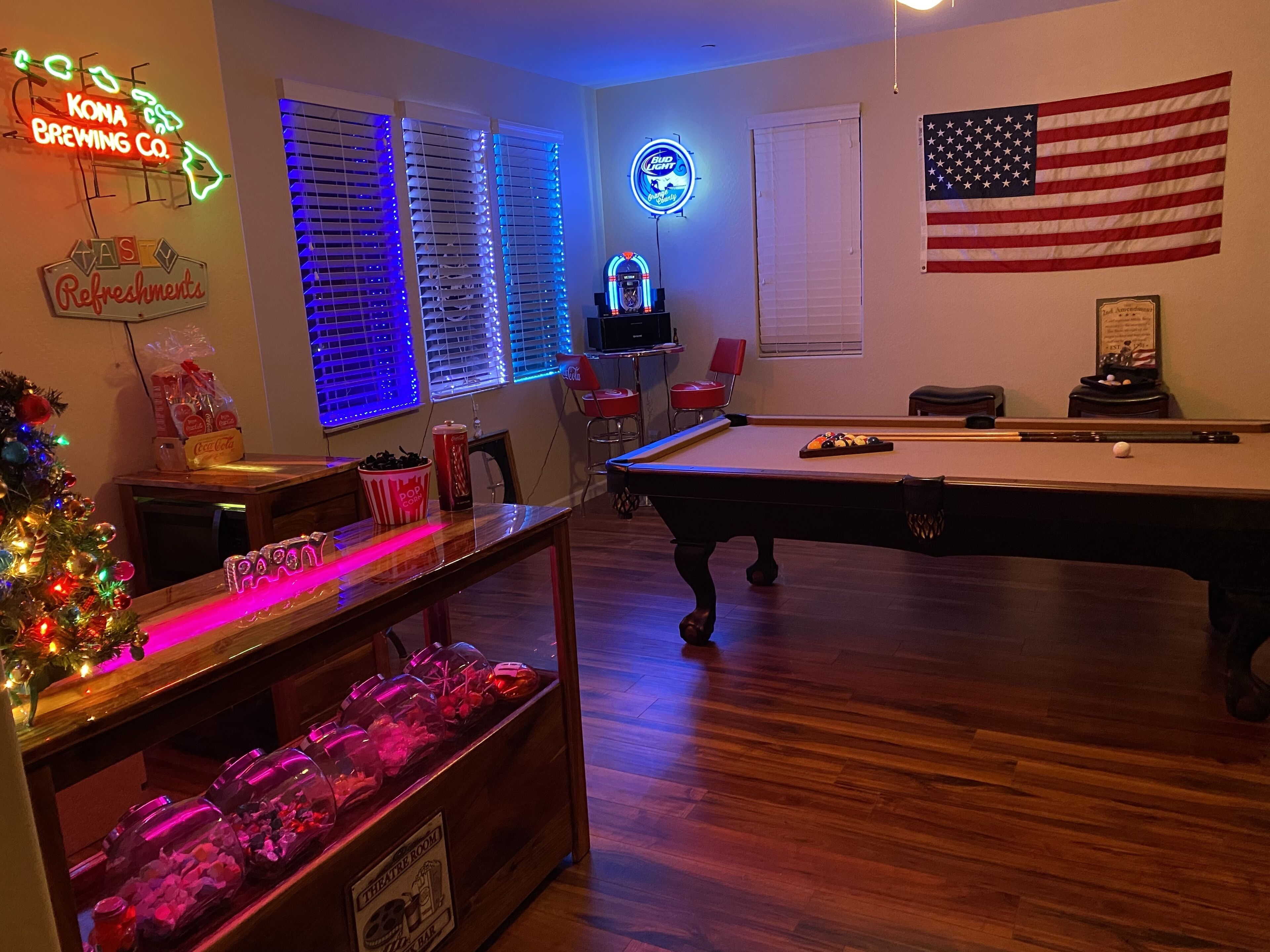 Luxury 6 Bedroom - heated pool & spa- close to stadium, golf, & more! Just 10 min from State Farm Stadium and the 2023 Super Bowl!Close to multiple sports venues, golf, shopping, dining, casinos, hiking and biking trails. BRAND NEW designer pool, spa, and built-in bbq. Pool/spa and BBQ are new, finished just six months ago!Private movie room with 90 inch TV, popcorn machine, and ultra comfortable brand new reclining movie seats.Game room with big screen TV, pool table / table tennis, and snack bar.3 of the 6 bedrooms have large screen wall mounted TV’s.