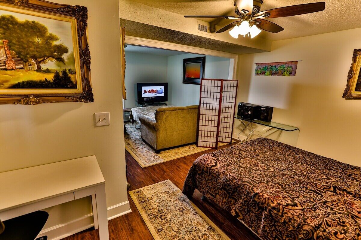 Ray's Place on Lookout Mountain Summary:From the back deck you can see 3 states! Gigabit speed wifi is available to all guests, along with Fiber Optic 4K HD TV, fireplace, outdoor fire pit, BBQ grill, 2 full bathrooms, 3 beds, nice kitchen, BOSE surround sound for incredible movie watching, washer & dryer, and a million-dollar view. Chattanooga 20 minutes, Cloudland Canyon, Rock City and hang gliding all within 5-13 minutes. Very safe area, & onsite security. Undeclared guest fee of $50 per night for each undeclared guest will apply.The Space:When you walk in the front door you will experience the total awesomeness of the place. The wall facing the valley is all windows, made especially to enjoy the view. The deck is made of a composite material, so you will never get a splinter while enjoying the evening view barefoot. There's a swing downstairs to enjoy while watching one of our amazing, stellar sunsets. A hammock is available if desired. There's a breakfast nook to wake up with morning cup of coffee and write, or read, or just take in the beautiful sunrise. Pull up your local newspaper on the free WiFi, or YouTube music/videos, and start the day right. Brand new Courtyard with fountain and Butterfly sculpture bench. This is a townhouse twinned with the neighbor, but all the property's spaces are for your private use.Please noteExterior security cameras are in use.Guest Access:You will have the entire house, (upstairs 1 bedroom, 1 full bathroom & downstairs is a bedroom, sofa bed, and full bathroom), except for the garage, and my office. After all, I have to have some place to put my stuff. I live here when I'm not out of town working. The key pad is located behind the big sun security door on the front porch next to the road. Open the security door and the keypad is located behind it on the inside door. The door is custom, and brand new, so the handle is a little stiff to turn. It is not locked, just turn it. You will see the keypad, enter your code and turn the handle. Don't push the LOCK button after entering your code. That simply locks it back. If you push any of the buttons, they light up so they are easy to see at night. There's a Ring door bell if you need anything--it will ring on my phone and I'm happy to help you if necessary.The Neighborhood:Very safe, quiet, and friendly neighborhood. Many places to hike. Bicycles are always riding around here and challenging themselves with Burkhalter Gap road coming up the mountain. On a good day for flying you'll see hang gliders making runs to the point of the mountain, and back. Scenic highway paints the picture for the area. The mountain faces NW so you will always get to see a spectacular sunset (unless it's raining or overcast, of course). Free internet with a GIG download speeds.Getting Around:Scenic highway is just outside the front door. It's also called Hwy 189, Hwy 157. Interstate I-20/I-59 is only 10 minutes away, Hwy 24 is only 20 minutes,, Hwy 136 is only 12 mintues. Both Rock City, and Ruby Falls, are only 13 minutes. The Tennessee Aquarium is only 26 minutes. All the best restaurants are less than 25 minutes away!! Covenant College is only 5 minutes on the same road as Ray's Place is on. Downtown Chattanooga and all the night life is about 26 minutes.Other Things to Note:There's a book with all the details of what you can expect from me, and what I expect from you (i.e. the do's and don'ts). I have a lung condition that prohibits me from having pet dander. I LOVE animals, but some people just can't tolerate some of them. Please read the guidebook! Also, the front of the house has been paved for parking and easy access to the front porch. Or, you can park in the driveway to the side of the house. 6 solar lights illuminate the front porch at night for help getting up the stairs.I've just designed and created a new courtyard in the front. This includes a butterfly sculpture bench and a 4 tier pineapple fountain. I could spend hours sitting and listening and watching that!!Please note: There is an extra guest fee of $10 per night per additional person beyond 2 guests. Bookings with undeclared guests will incur additional fees of $50 per undeclared guest per night.Ray's Place is a townhouse with plenty of privacy and peace to enjoy every minute of your stay. Also, if you have any allergies, please let me know BEFORE booking. Thanks!Interaction with Guests:Unique Stays is a local management company, and we're always available to help. Feel free to give us a call or shoot us a message and we'll be sure to get back to you immediately.