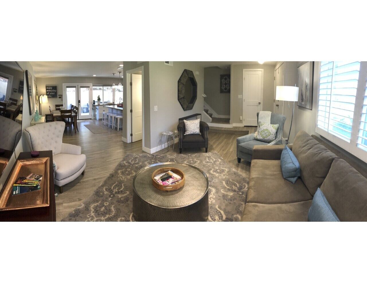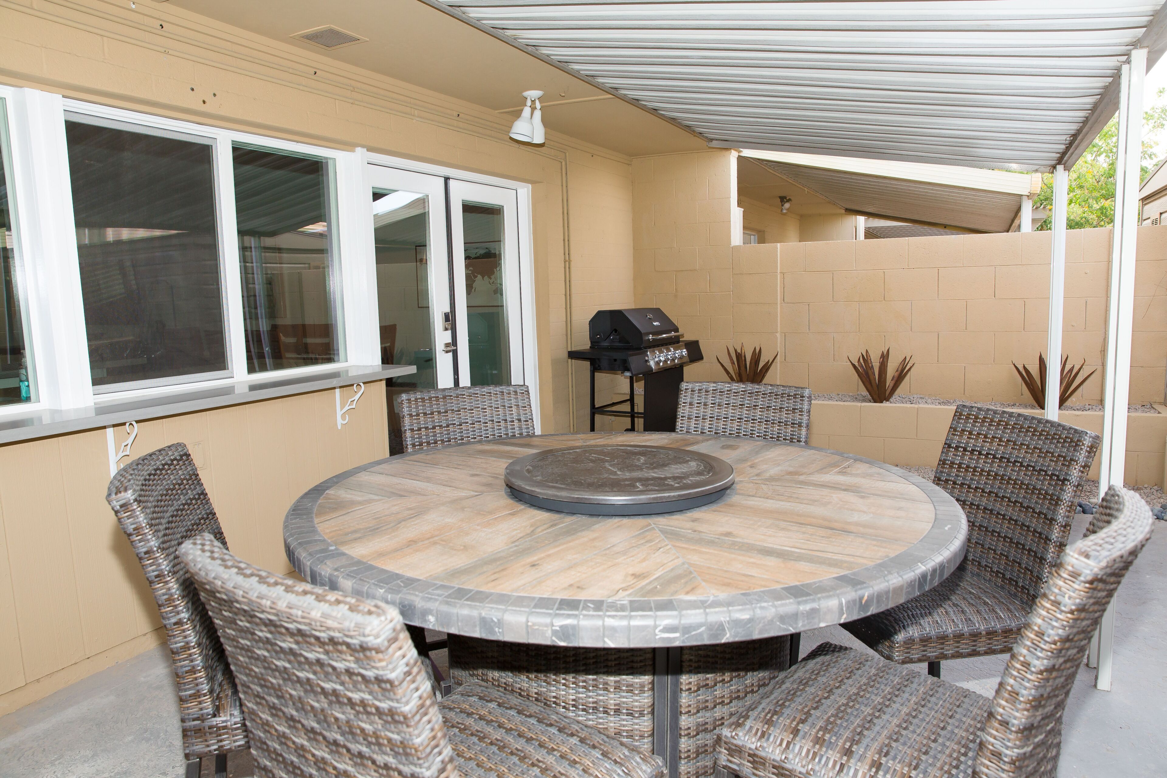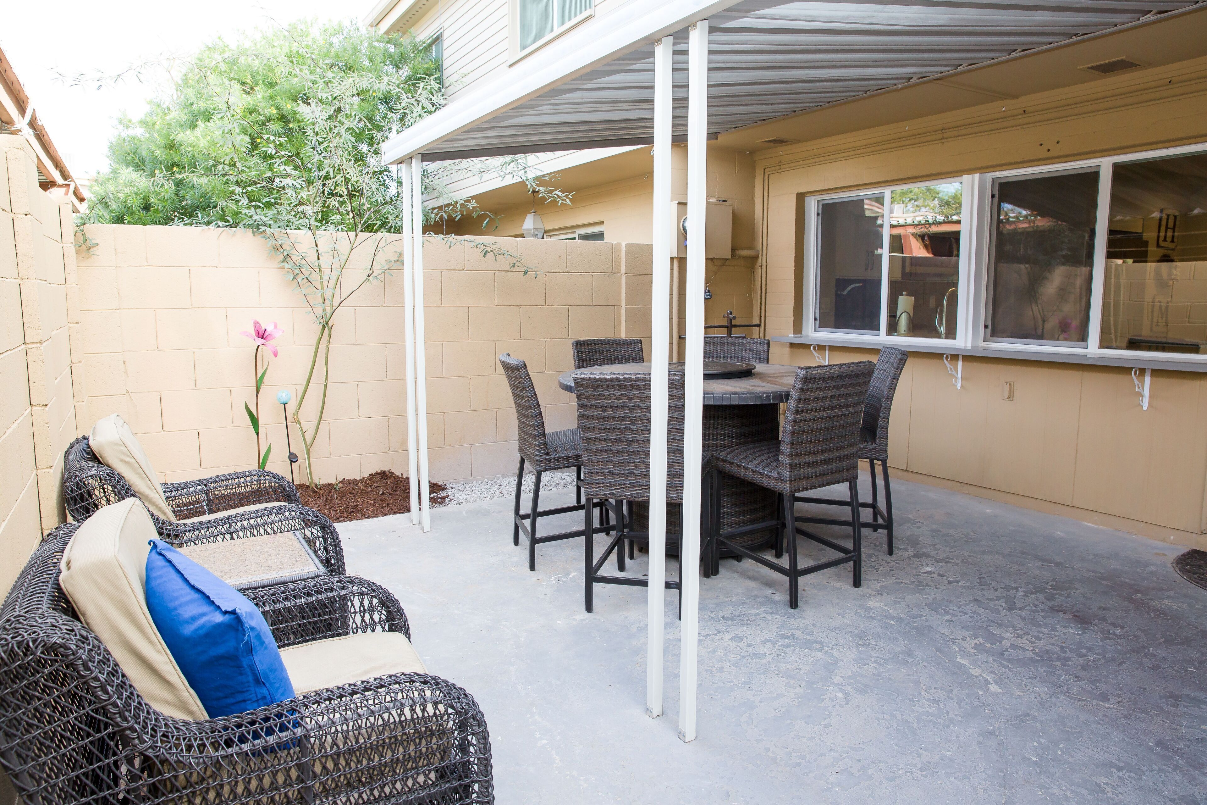 In the Heart of Oldtown Scottsdale Gorgeous Townhome 3d/2.5 bath Beautifully remodeled and newly furnished, this Oldtown townhouse has LOVE written all over it ~ Location (in all sorts of satisfying ways) ~ Style ~ Convenience ~Comfort; Plush Resort-style Beds ~ Large Townhouse Pool ~ Private Fire pit Patio Table & Space ~Style, convenience, and comfort! The open living/dining/kitchen space is perfect for group social time, with comfortable furnishings, a big flat screen TV, and a large kitchen bar that’s ideal for meal prep and enjoying pre-dinner chats.