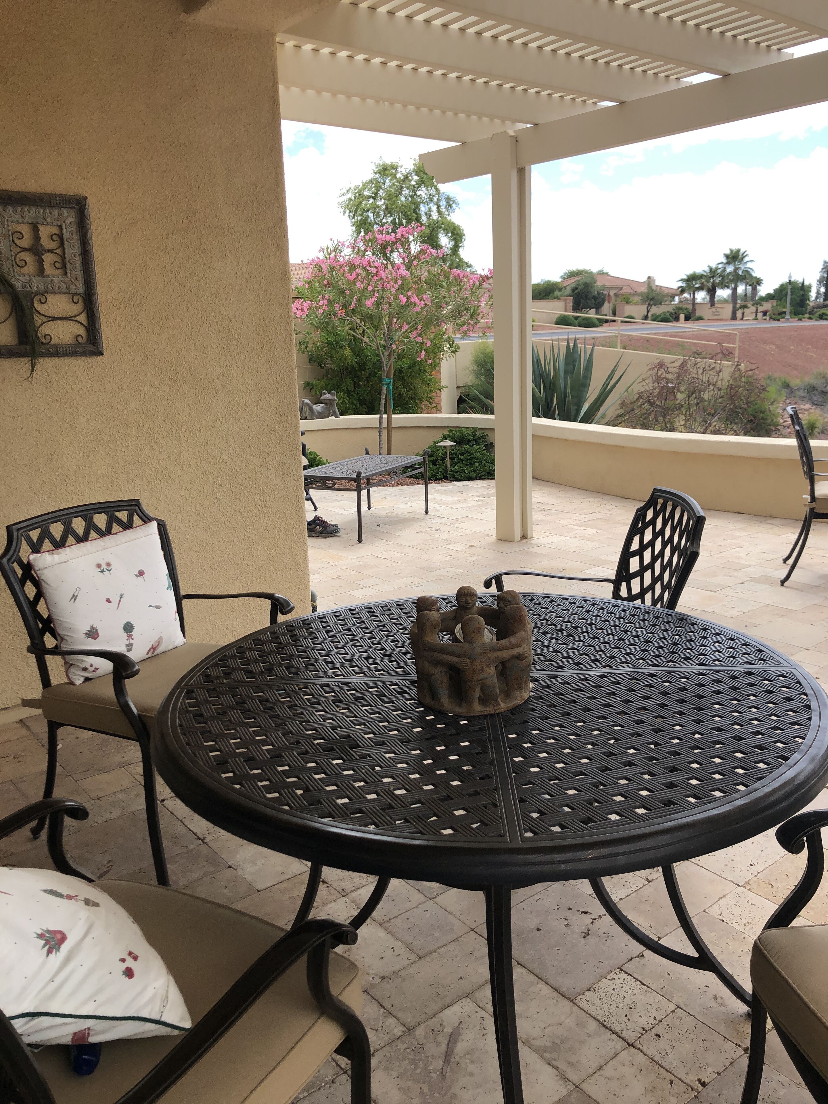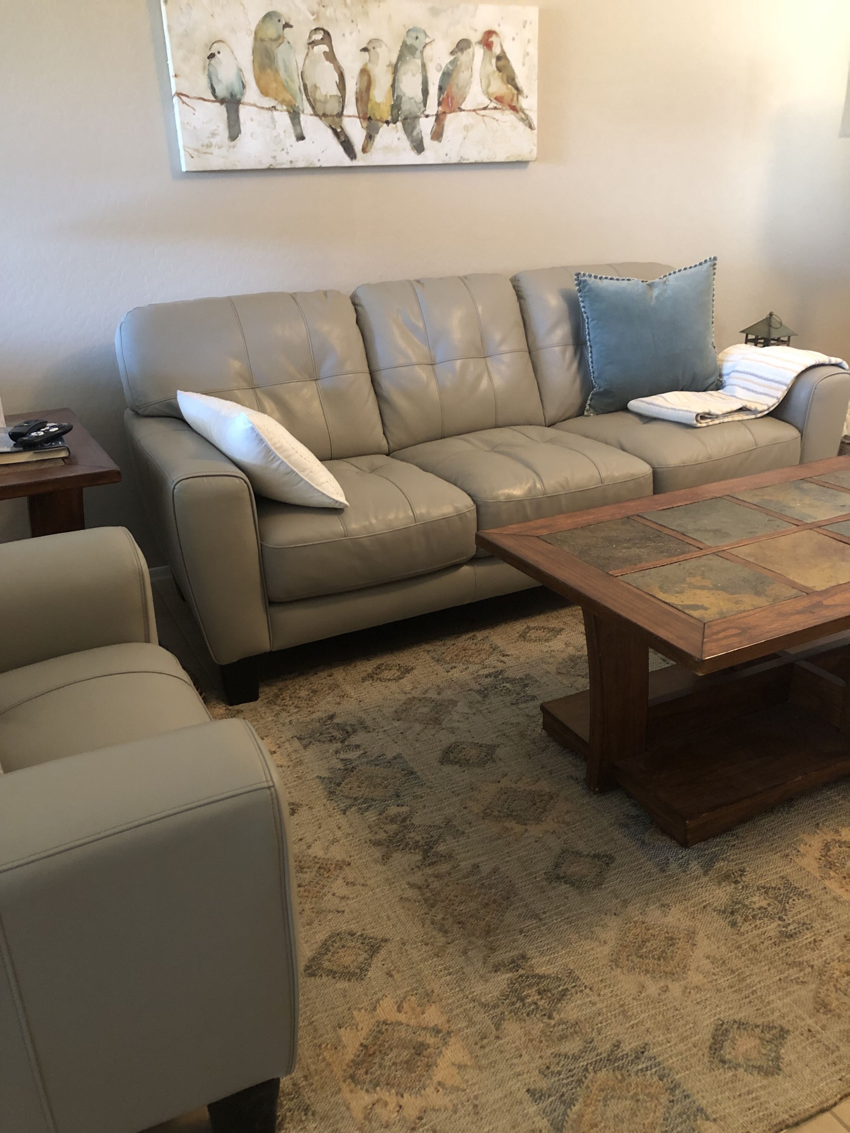 Golf Course See and go to the clubhouse Every comfort of home is in this lovely furnished villa. The kitchen is fully equipped with new Stainless Steel appliances and an open island with bar stools. There are linens for dining if you wish to use them. There are lots of pillows and linens to make you comfortable during your stay. Your access to the club house and restaurants is within walking distance. You can watch the golfers finish up on the 9th hole from your covered patio. The master bedroom has a queen size bed and comfortable leather chair with ottoman for watching TV or reading. The great room has an entertainment center with 55” Smart TV and stereo. The second bedroom has a queen bed and room to set up a baby crib for the grandchildren. There is an additional queen size bed in the master bedroom closet that can be set up in the great room for additional overnight guests. We have returning guests that speak for the comfort they experienced as our guests.Keywords: VillaWe require a $1000.00 damage deposit at time of booking. This is totally REFUNDABLE within 7-10 days after departure when home is left in same condition.