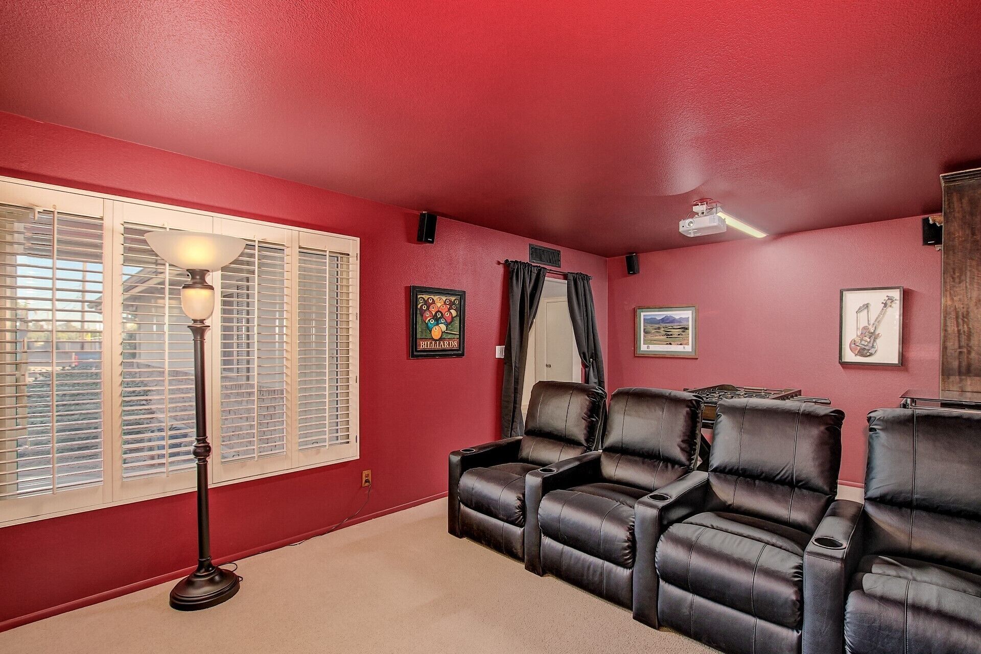 Tempe Home Theater House - Great Location! Please note that the property was used as a long term rental for the last two years and just went back on the vacation rental market as of 08/01/2024 thus the reviews are dated. Great location in the heart of Tempe. Close to ASU, Scottsdale and the geographic center of the valley. Be near great restaurants, shopping, spring training, golf, nightlife, Mill Avenue and much more. This dedicated vacation rental house is a great alternative to a hotel or other owner occupied houses. This home was decked out for the seasoned traveler that wants to have some fun. Whether it is a trip with family or friends we included amenities that many vacation rentals simply do not have in this price range. For starters we have a dedicated home theater room with 7.1 surround sound and a 9' X 5" screen. The projector is state of the art and the four leather theater seats recline for your viewing pleasure. Great for watching your favorite sports or a classic movie. Also, in the home theater room we include Foosball, which is the ultimate classic table game. Four bedrooms include a master suite with a California King SIze Bed, adjoining bath and television. A second bedroom with two twin extra long beds that can be adjoined into a king size bed. Bedroom three and four include Queen Size Beds. All sheets and comforters are made of high quality fabrics and foam mattresses are used throughout for comfort. Bedroom two-four share a full bath.A full kitchen and dining area for six are included as well. We supply all of the essentials to cook from home if you decide not to go out to the many restaurants nearby. Last but certainly not least you can relax in our private hot tub or play a game of table tennis just for the fun of it. Disclosure: We have a Ring camera doorbell installed on the outside of the front door.