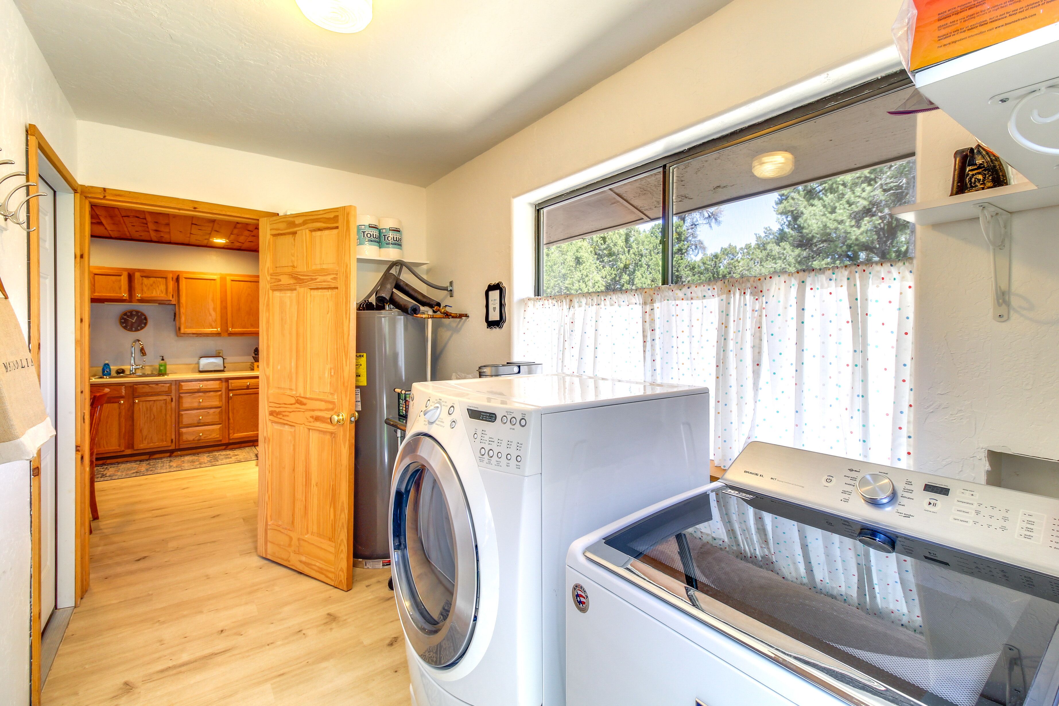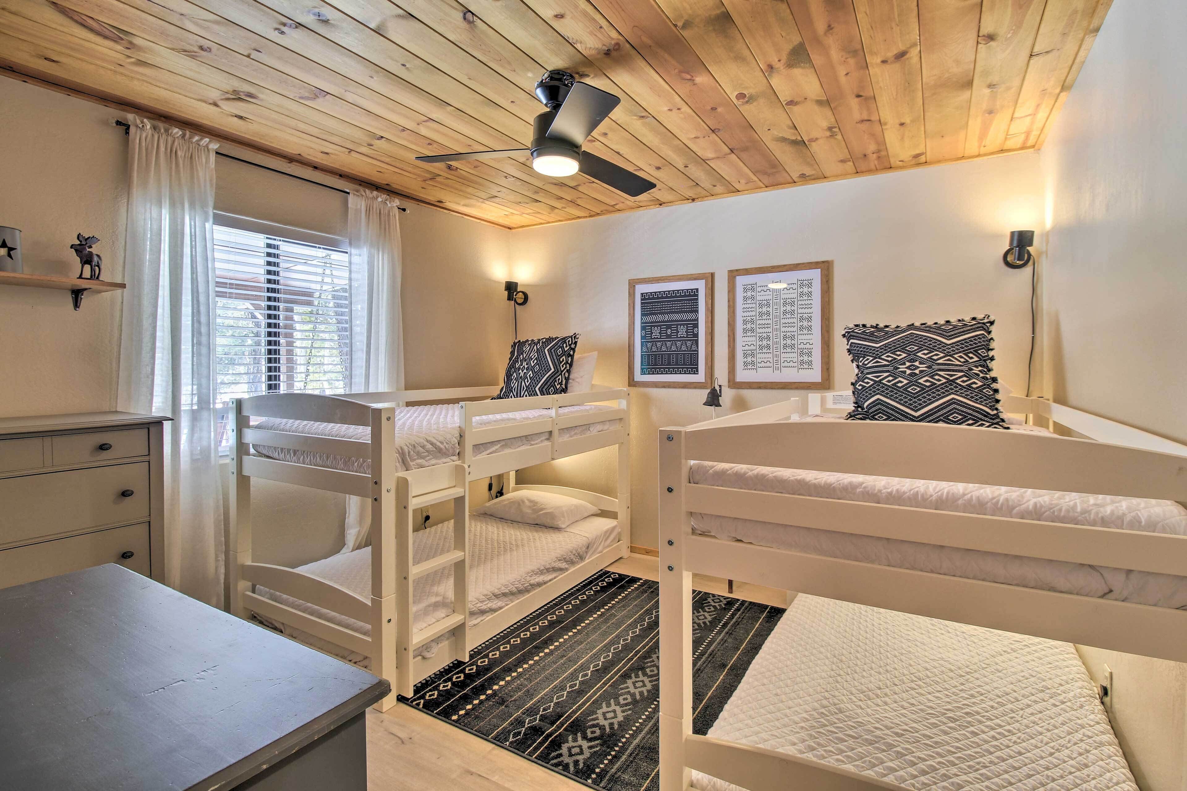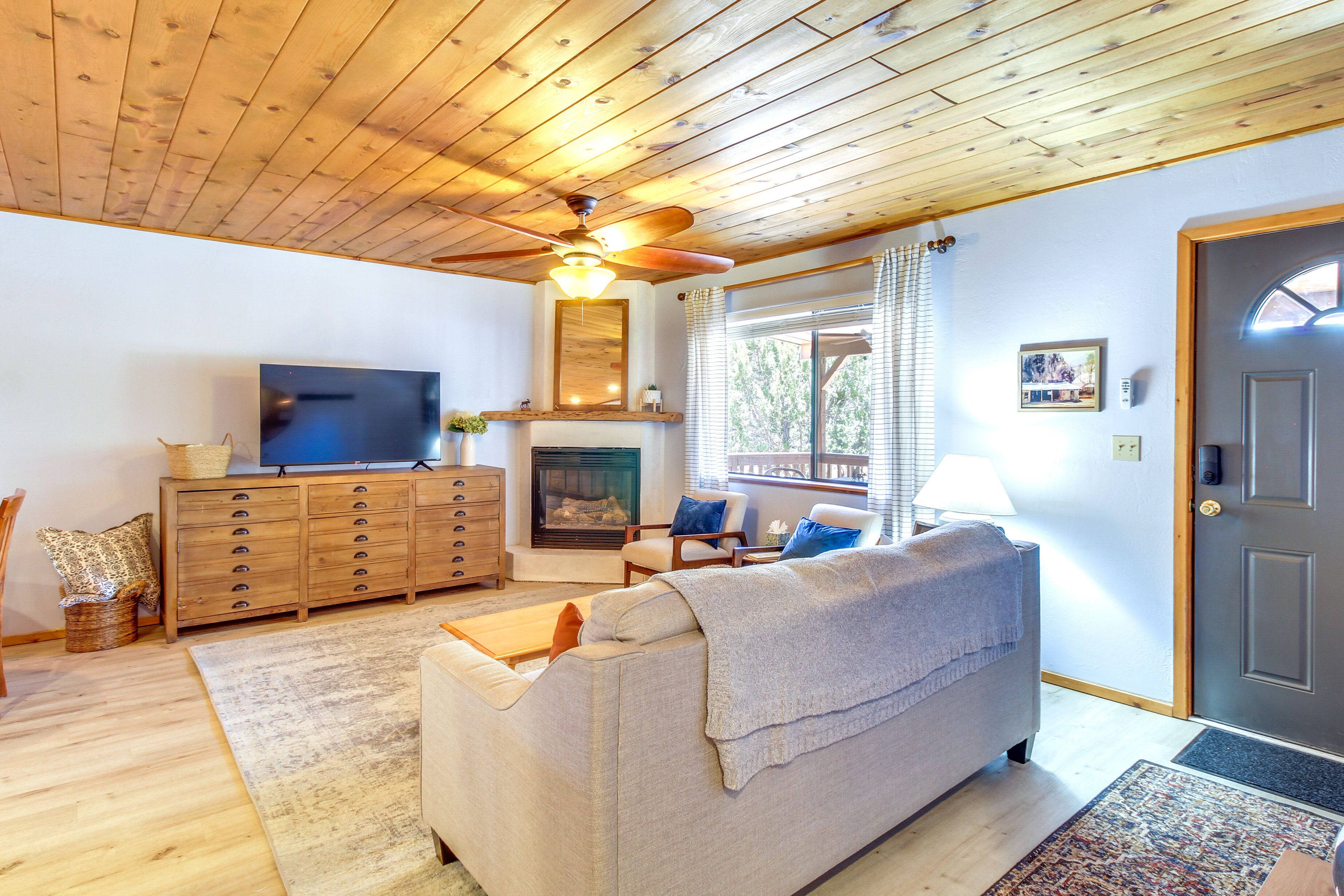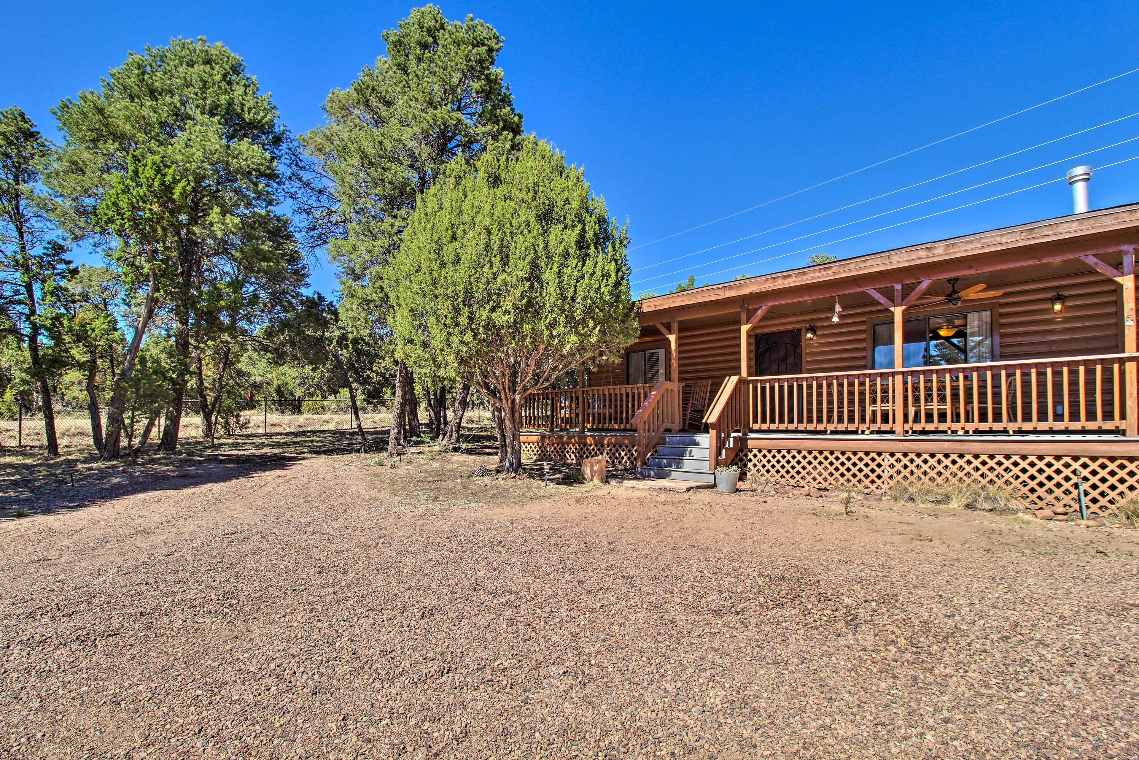 Cozy Heber Cabin Retreat w/ Deck + Fireplace! Reward yourself with a trip away from the hustle and bustle and a stay at this 2-bedroom, 1-bath vacation rental in Heber-Overgaard! The cabin is surrounded by the Apache-Sitgreaves National Forest, providing guests with a tranquil place to relax with family and friends. Let your four-legged friend run around the yard while you enjoy dinner on the deck prepared in the well-equipped kitchen. When you want to explore, visit the Petroglyphs or the Windy Hills Lavender Farm for a unique experience!-- THE PROPERTY --TPT-21449846 | Pet Friendly w/ Fee | Free WiFiBedroom 1: King Bed | Bedroom 2: 2 Twin Bunk Beds (165-Pound Weight Limit) | Living Room: Sleeper SofaOUTDOOR SPACE: Covered deck, outdoor dining area, rocking chairs, porch swing, gas grillINDOOR LIVING: Smart TVs, gas fireplace, ceiling fans, dining table, board games, book selectionKITCHEN: Dishware/flatware, Keurig, toaster, blender, microwave, stove/oven, refrigerator, spicesGENERAL: Washer/dryer, linens/towels, complimentary toiletries, hair dryer, laundry detergent, pack ‘n playFAQ: Stairs required for entry, bedrooms & bathroom on 1st floor, pet fee (paid pre-trip), no A/CPARKING: Gravel driveway (3 vehicles), garage (1 vehicle)-- THE LOCATION --TO SEE & DO: Wild Woods LLC (0.6 miles), Windy Hills Lavender Farm (0.7 miles), Rock House Museum (1.9 miles), Tall Timbers County Park (2.5 miles), Apache-Sitgreaves Observatory (3.6 miles), Petroglyphs (5.2 miles)OPT OUTSIDE: Black Canyon Lake - trout fishing (14.5 miles), Willow Springs Lake - trout fishing (22.7 miles), Woods Canyon Lake Recreation Area (28.3 miles), Snowflake Municipal Golf (28.5 miles), Bison Golf Club (34.6 miles), Silver Creek Golf Club (40.9 miles)LOCAL EVENTS: Heber-Overgaard Fourth of July Celebration - Tall Timbers County Park (2.5 miles), Oktoberfest - Tall Timbers County Park (2.5 miles)DINING: Smoke Signals Grillhouse (0.5 miles), Al & Diane's Red Onion Lounge (0.7 miles), June's Cafe (1.0 miles), Casa Ramos (1.4 miles), Three Bear's Cafe (1.6 miles), Wild Women Saloon and Grill (8.9 miles)AIRPORT: Show Low Regional Airport (39.0 miles)-- REST EASY WITH US --Evolve makes it easy to find and book properties you’ll never want to leave. You can relax knowing that our properties will always be ready for you and that we’ll answer the phone 24/7. Even better, if anything is off about your stay, we’ll make it right. You can count on our homes and our people to make you feel welcome--because we know what vacation means to you.-- POLICIES --- No smoking- Pet friendly w/ $50 fee (+ fees & taxes, max 1 pet)- No events, parties, or large gatherings- Must be at least 25 years old to book- Additional fees and taxes may apply- Photo ID may be required upon check-in- NOTE: The property requires stairs to access- NOTE: The bunk beds have a weight limit of 165 pounds- NOTE: This property does not offer air conditioning