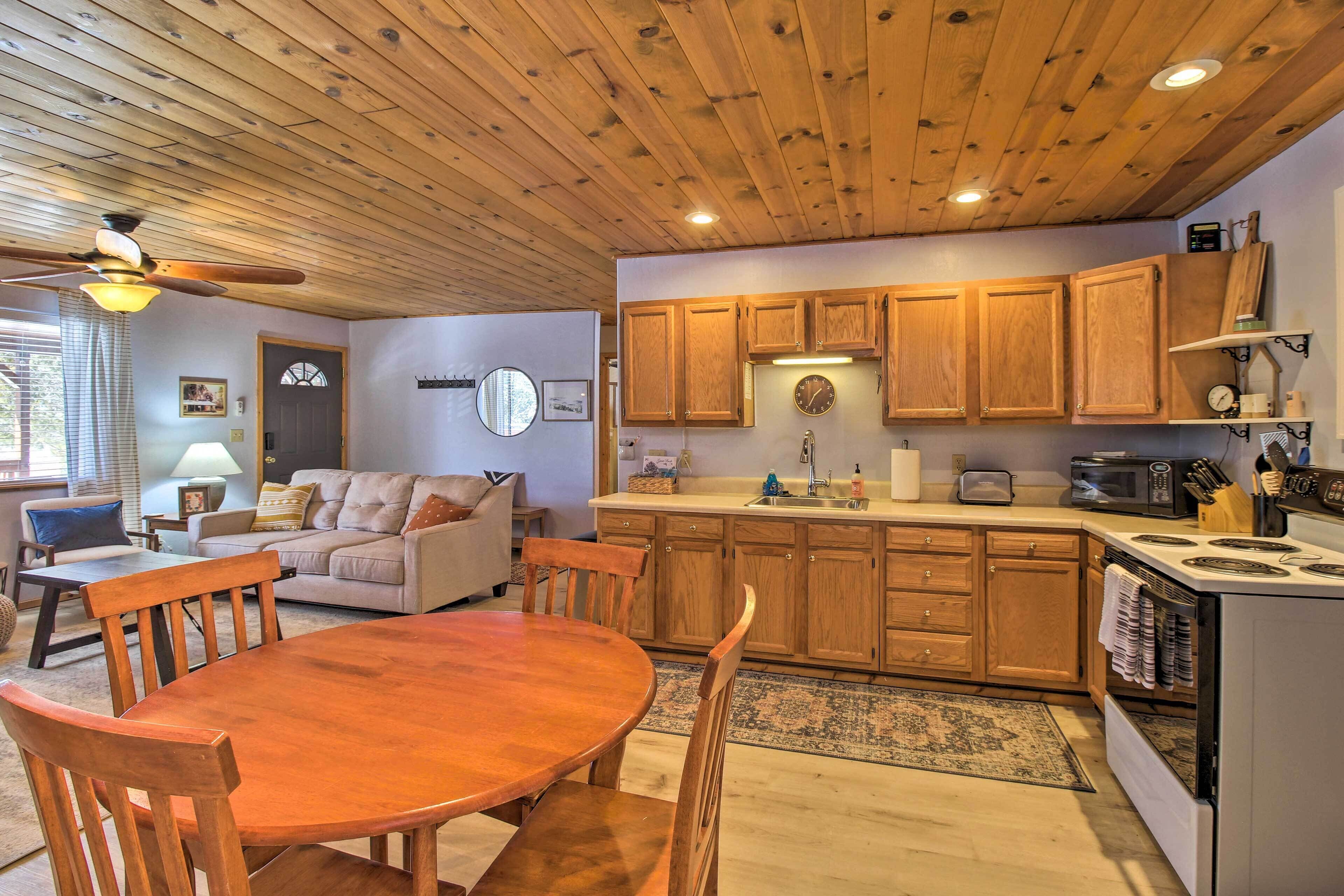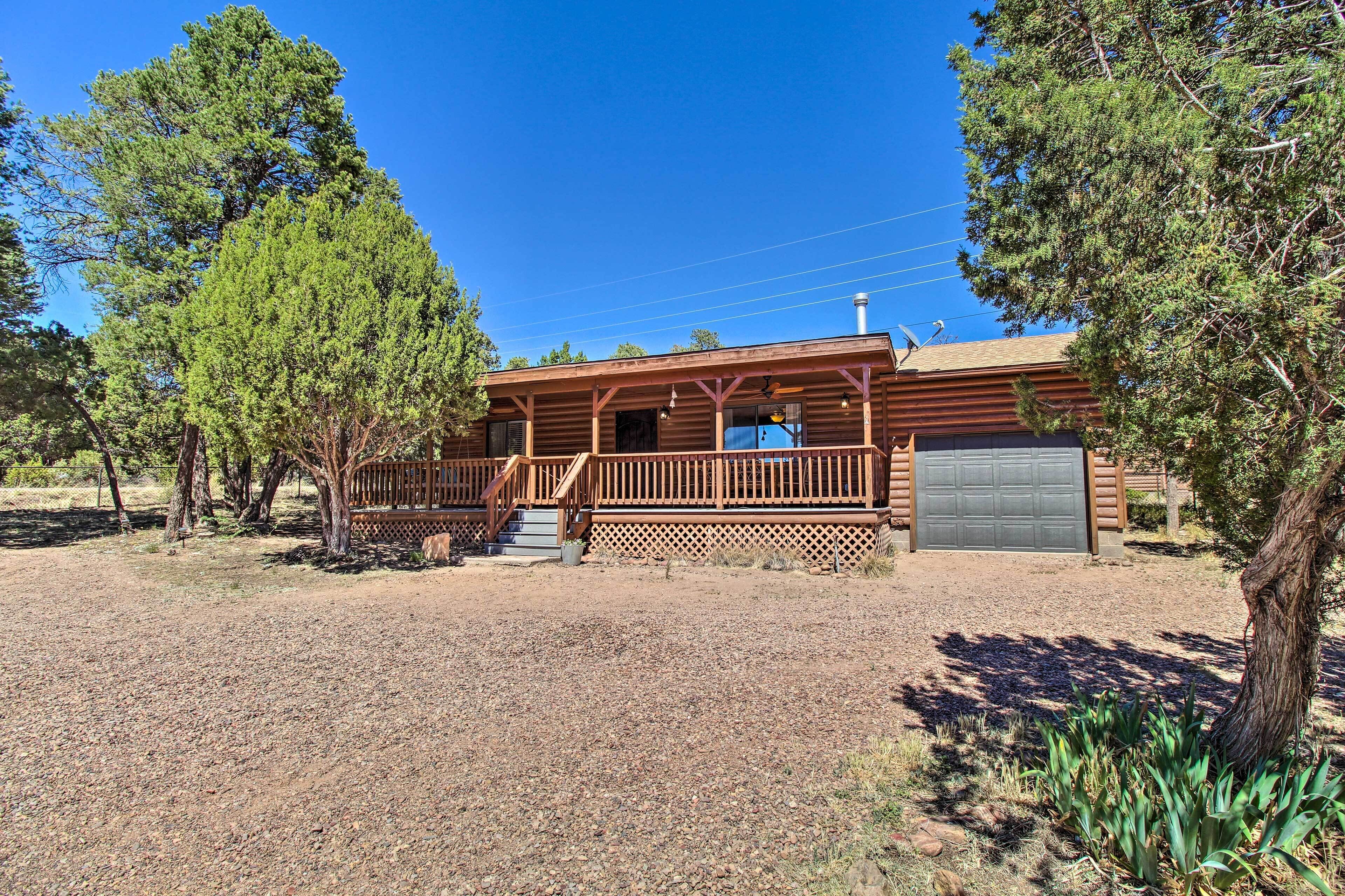 Cozy Heber Cabin Retreat w/ Deck + Fireplace! Reward yourself with a trip away from the hustle and bustle and a stay at this 2-bedroom, 1-bath vacation rental in Heber-Overgaard! The cabin is surrounded by the Apache-Sitgreaves National Forest, providing guests with a tranquil place to relax with family and friends. Let your four-legged friend run around the yard while you enjoy dinner on the deck...