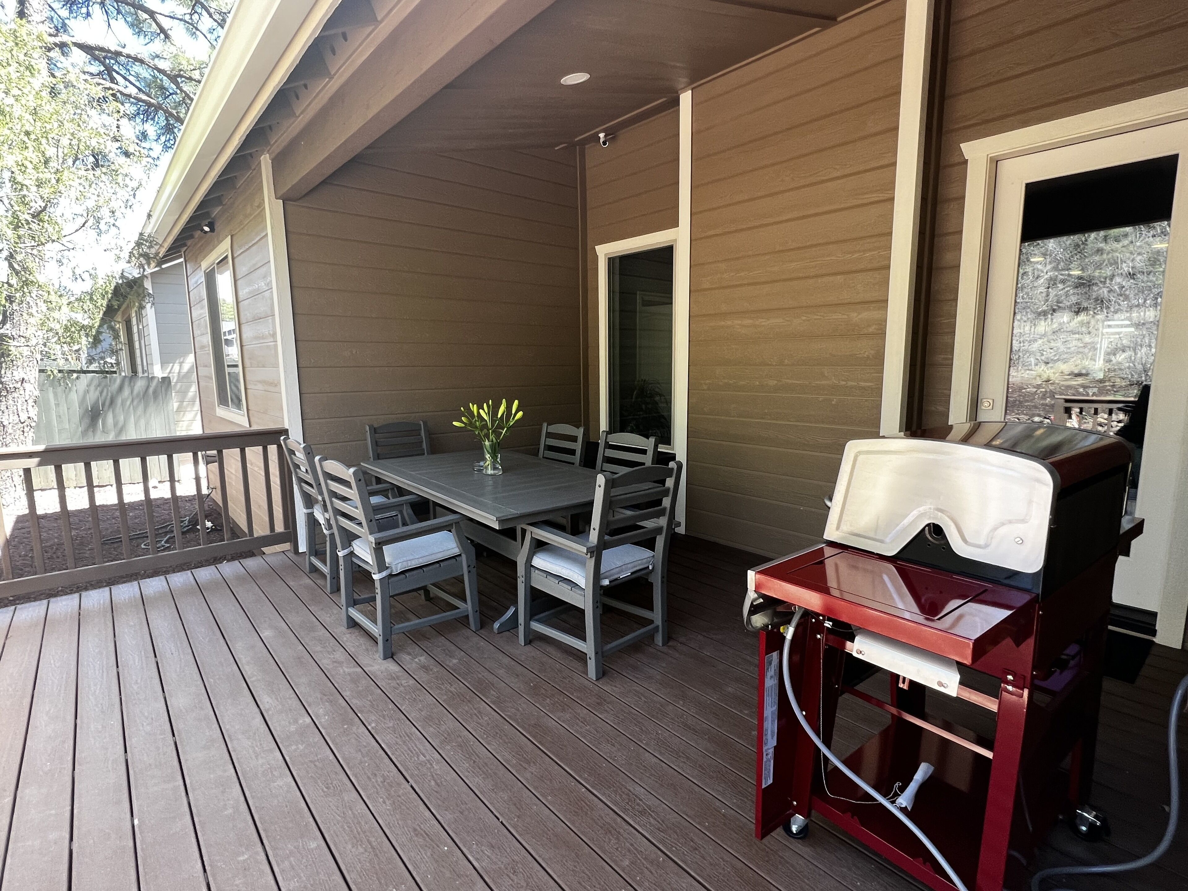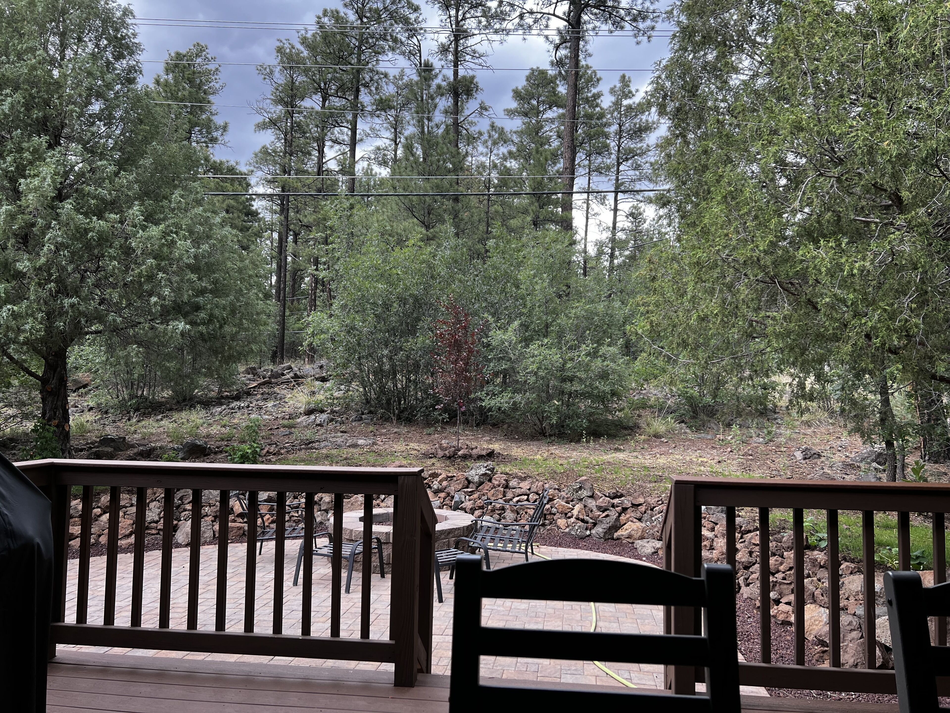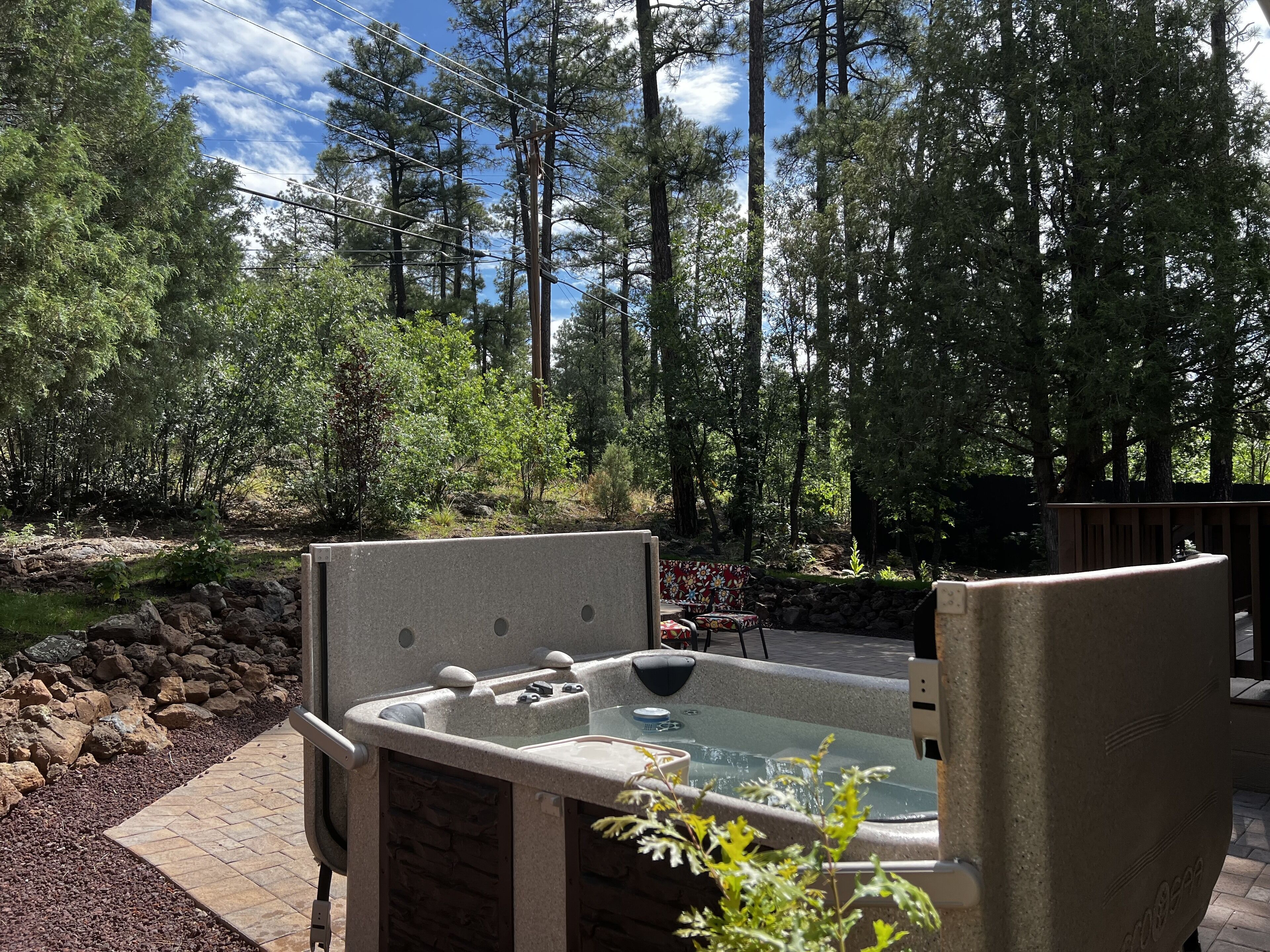 Gorgeous 3 bedroom cabin with hot tub Beautiful brand new cabin with all the luxury of a home. Conveniently situated in the heart of Pinetop, our place still gives the great feeling of being in the woods. Come enjoy our cabin as much as us!The master bedroom has a king bed, desk, HD TV, and spacious bathroom with walk in shower. The second bedroom has a queen bed and working area. The third bedroom has a full and a twin bed along with HD TV. The living room has a large area for gathering, dining area, fireplace and a 65" TV. The kitchen is fully stoked and has brand new stainless steel appliances and granite counter tops. There is a full breakfast bar with three bar stools. Step outside into the back yard to enjoy the forest views. Soak up in hot tub or sit by the fire to enjoy the nature!