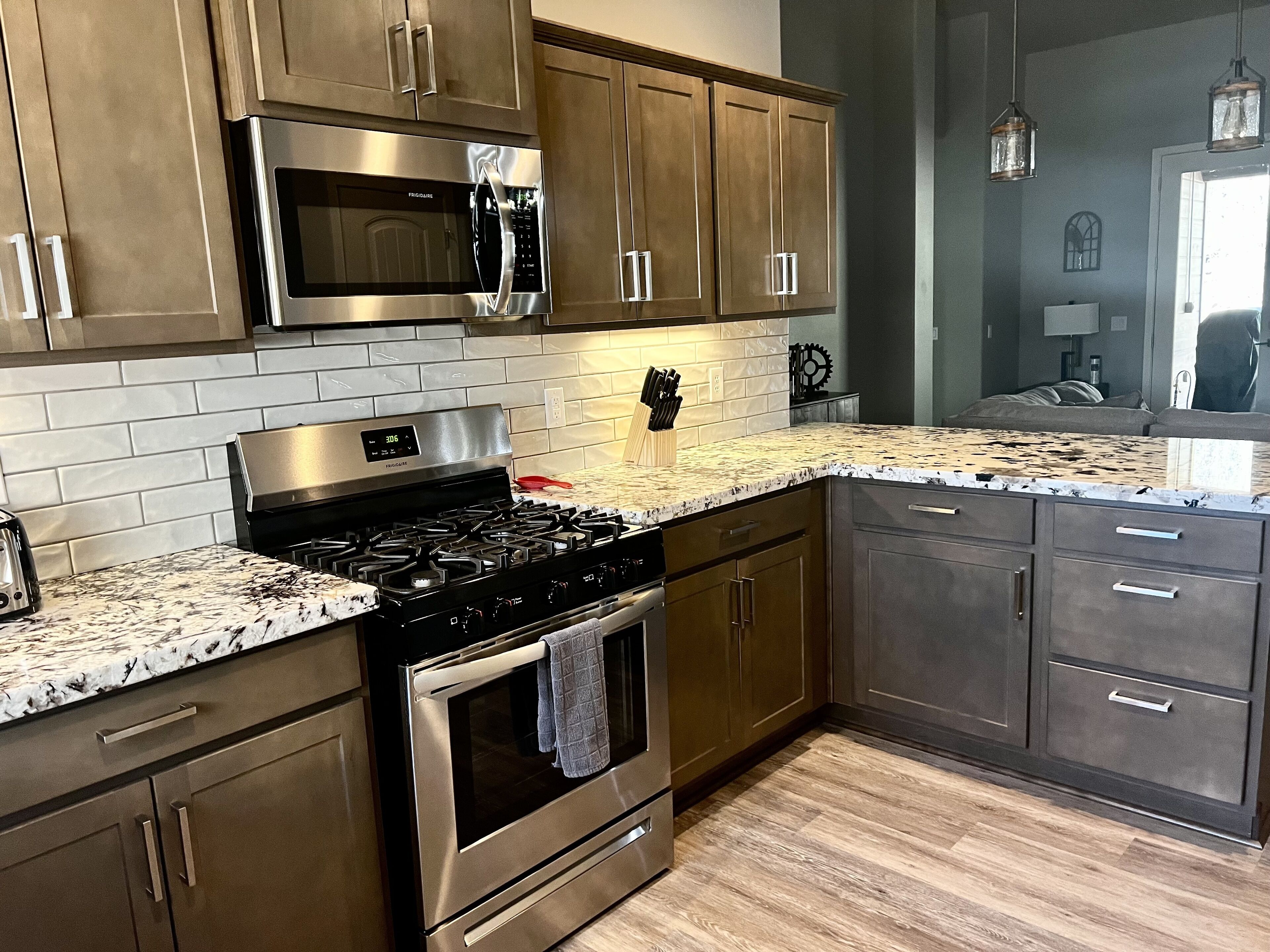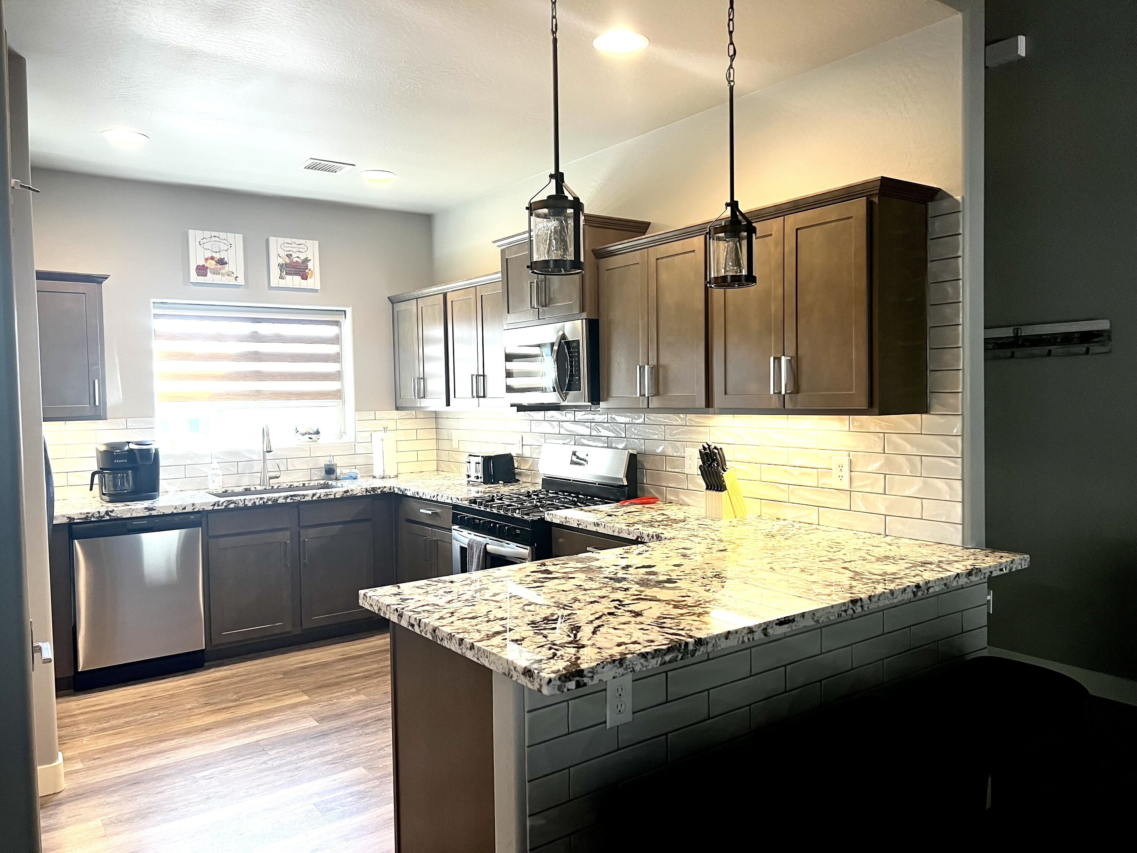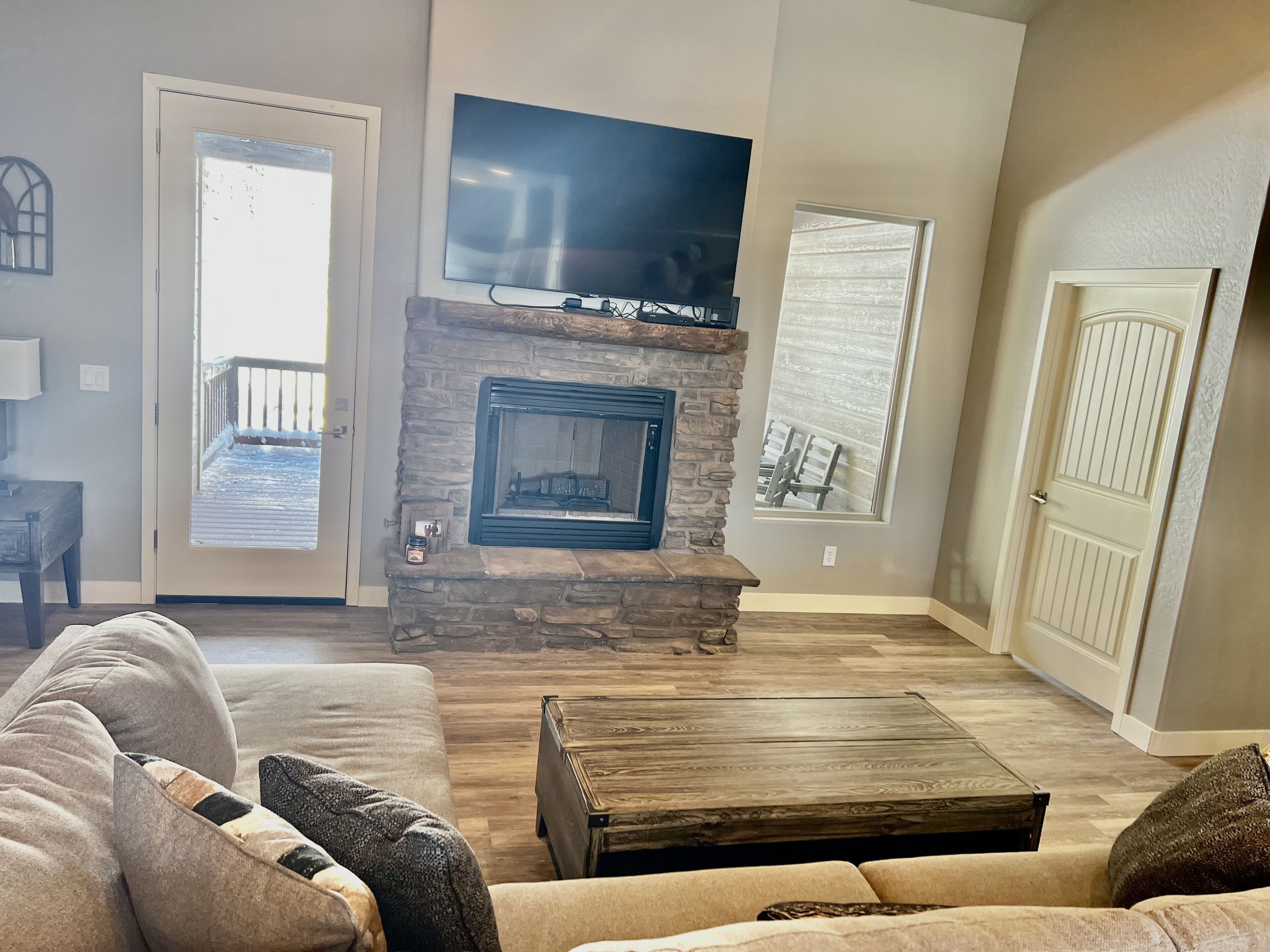 Gorgeous 3 bedroom cabin with hot tub Beautiful brand new cabin with all the luxury of a home. Conveniently situated in the heart of Pinetop, our place still gives the great feeling of being in the woods. Come enjoy our cabin as much as us!The master bedroom has a king bed, desk, HD TV, and spacious bathroom with walk in shower. The second bedroom has a queen bed and working area. The third bedroom has a full and a twin bed along with HD TV. The living room has a large area for gathering, dining area, fireplace and a 65" TV. The kitchen is fully stoked and has brand new stainless steel appliances and granite counter tops. There is a full breakfast bar with three bar stools. Step outside into the back yard to enjoy the forest views. Soak up in hot tub or sit by the fire to enjoy the nature!