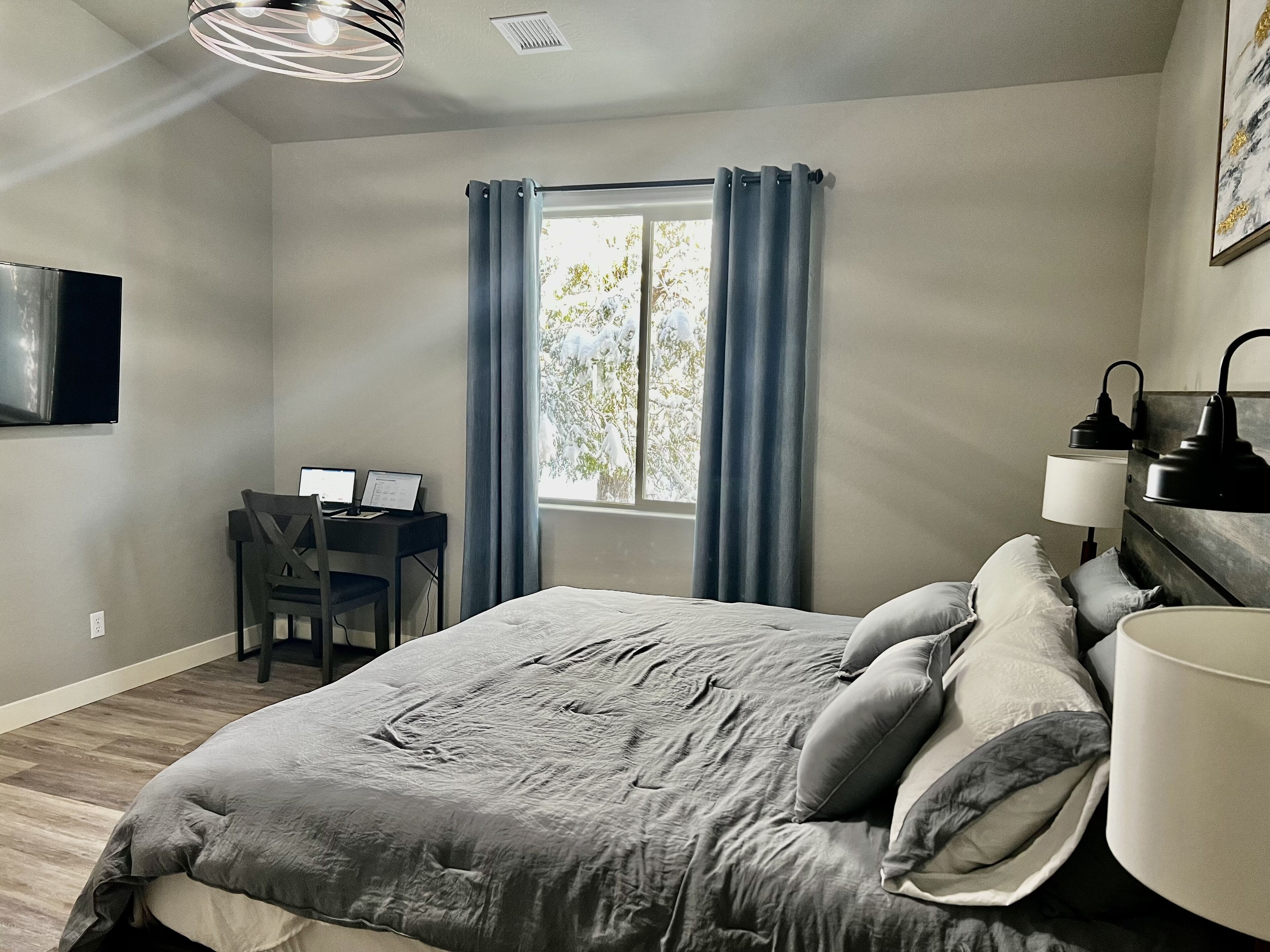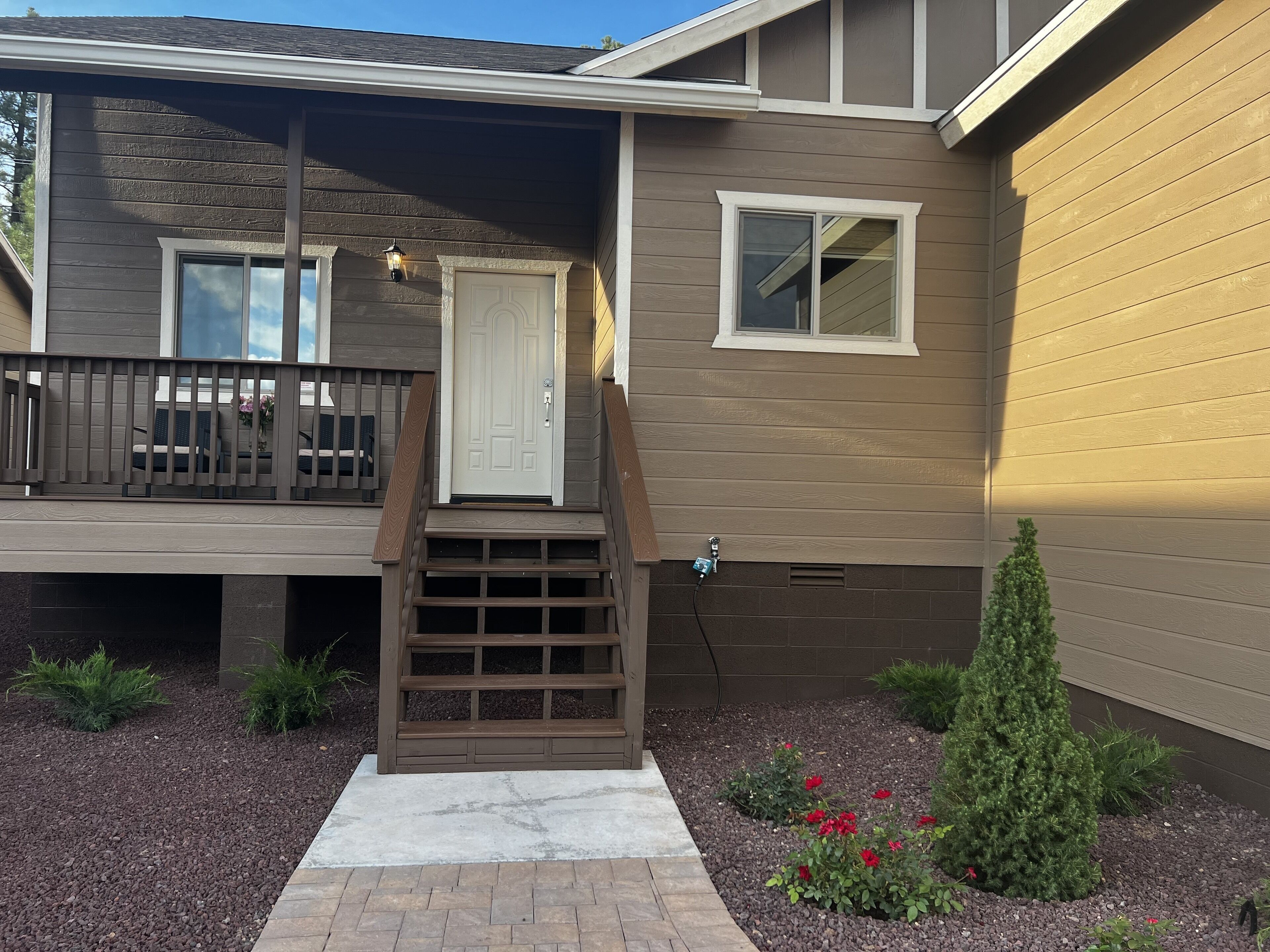 Gorgeous 3 bedroom cabin with hot tub Beautiful brand new cabin with all the luxury of a home. Conveniently situated in the heart of Pinetop, our place still gives the great feeling of being in the woods. Come enjoy our cabin as much as us!The master bedroom has a king bed, desk, HD TV, and spacious bathroom with walk in shower. The second bedroom has a queen bed and working area. The third bedroo...