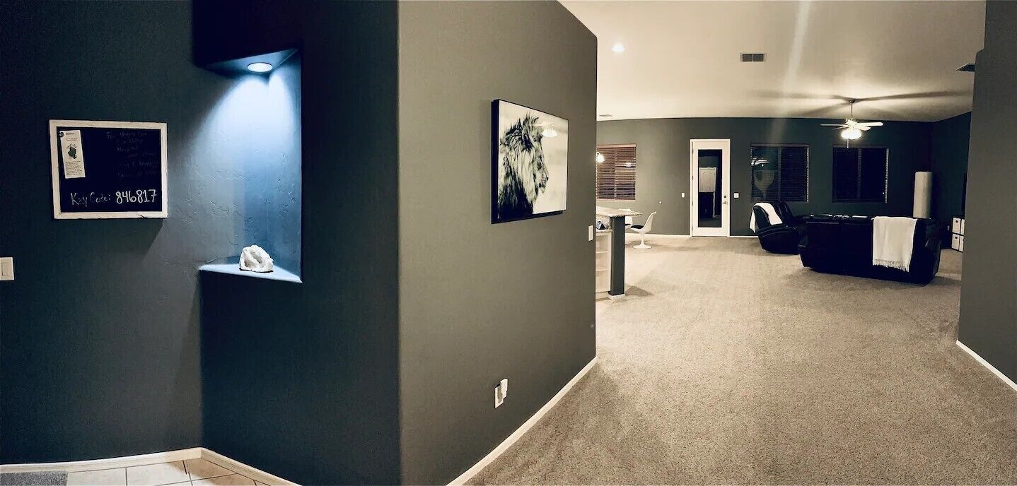 ZenHouse Dove Mountain Located in Dove Mountain where you can enjoy your time hiking the many trails, stargazing, or relaxing in the backyard with fresh breeze from the mountains.3 Bedroom 2 Bath, spacious house with full Laundry Room, Kitchen Appliances, and workout space inside Garage.100mbps High Speed Internet WiFiTouch Keypad EntryWater Softener The following subscriptions are included during your stay:Netflix DisneyMaxPrime VideoPeacock Paramount +Crunchyroll