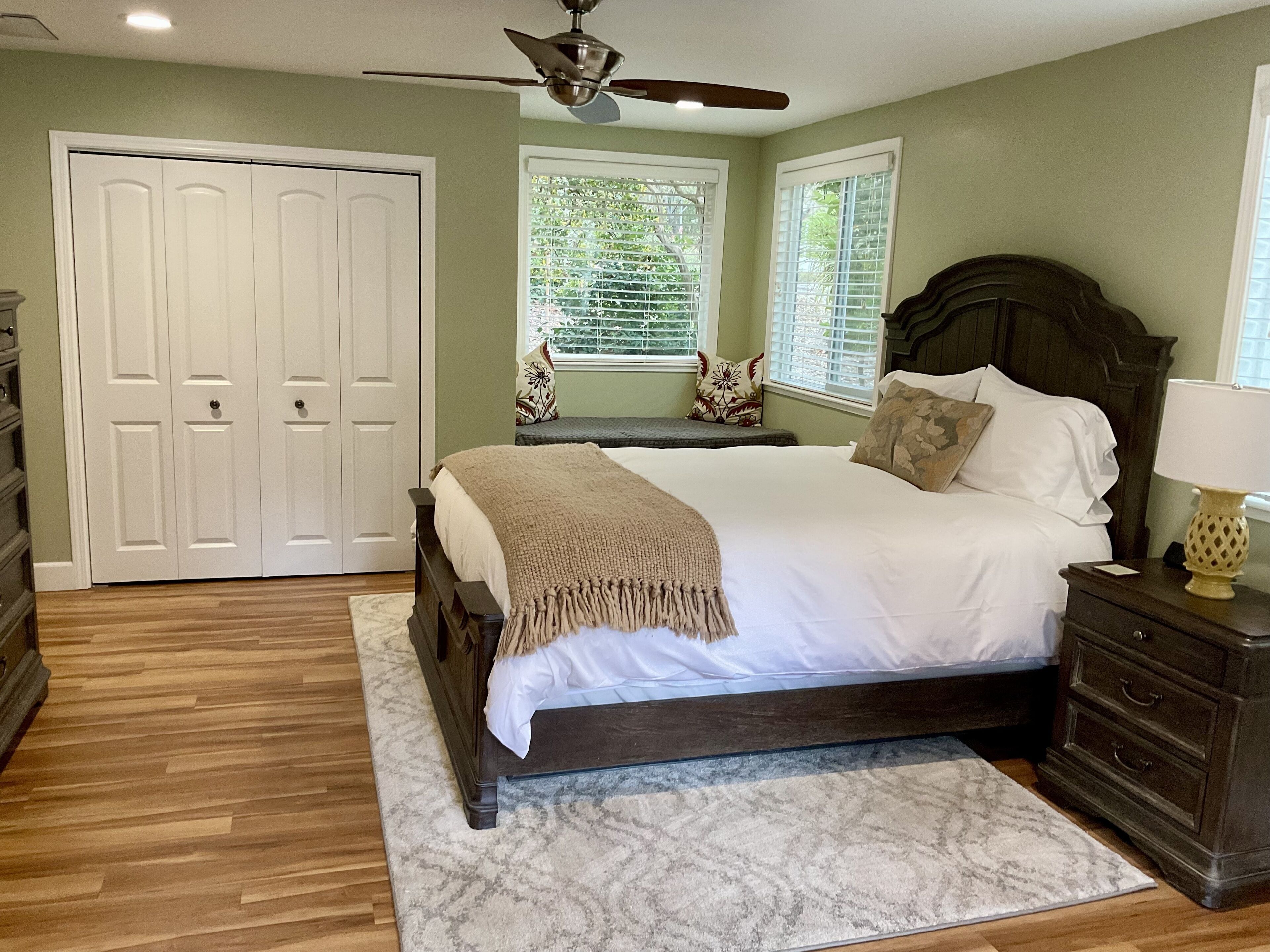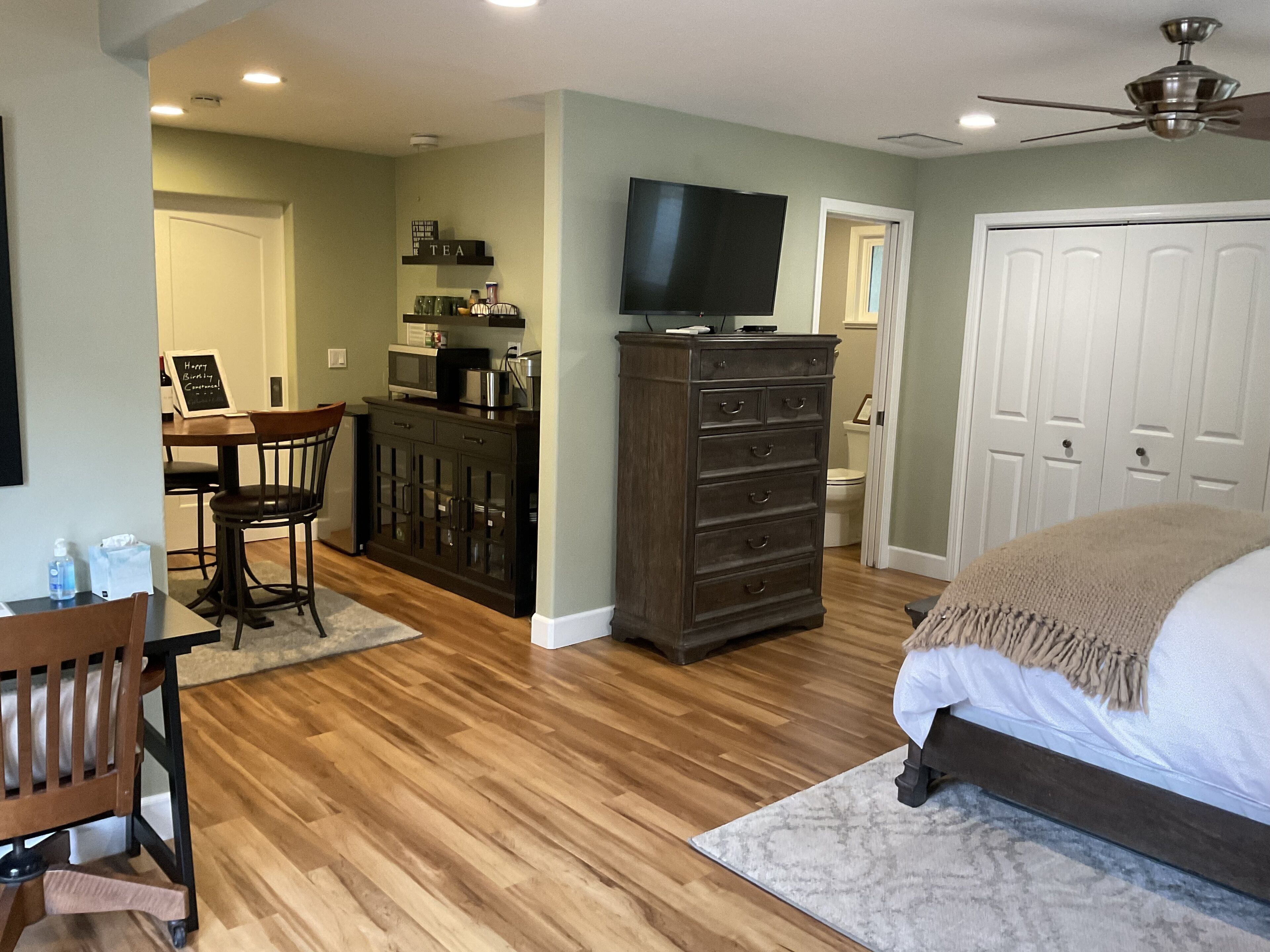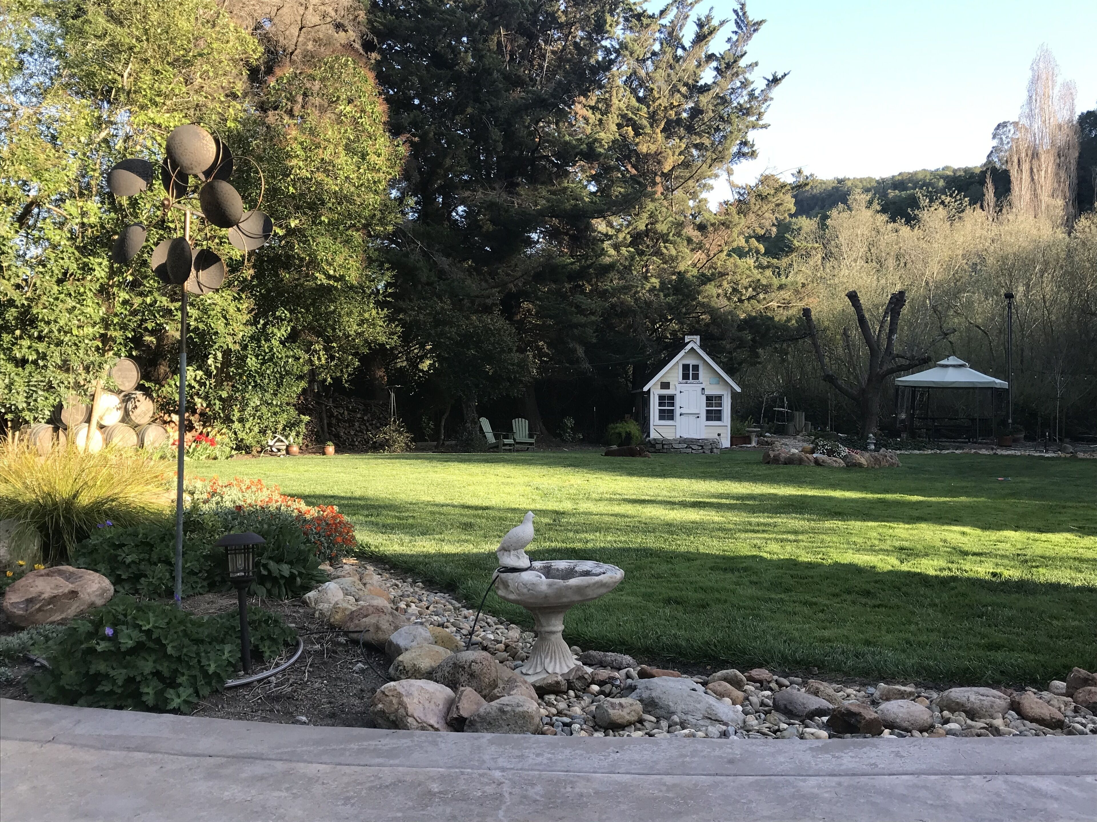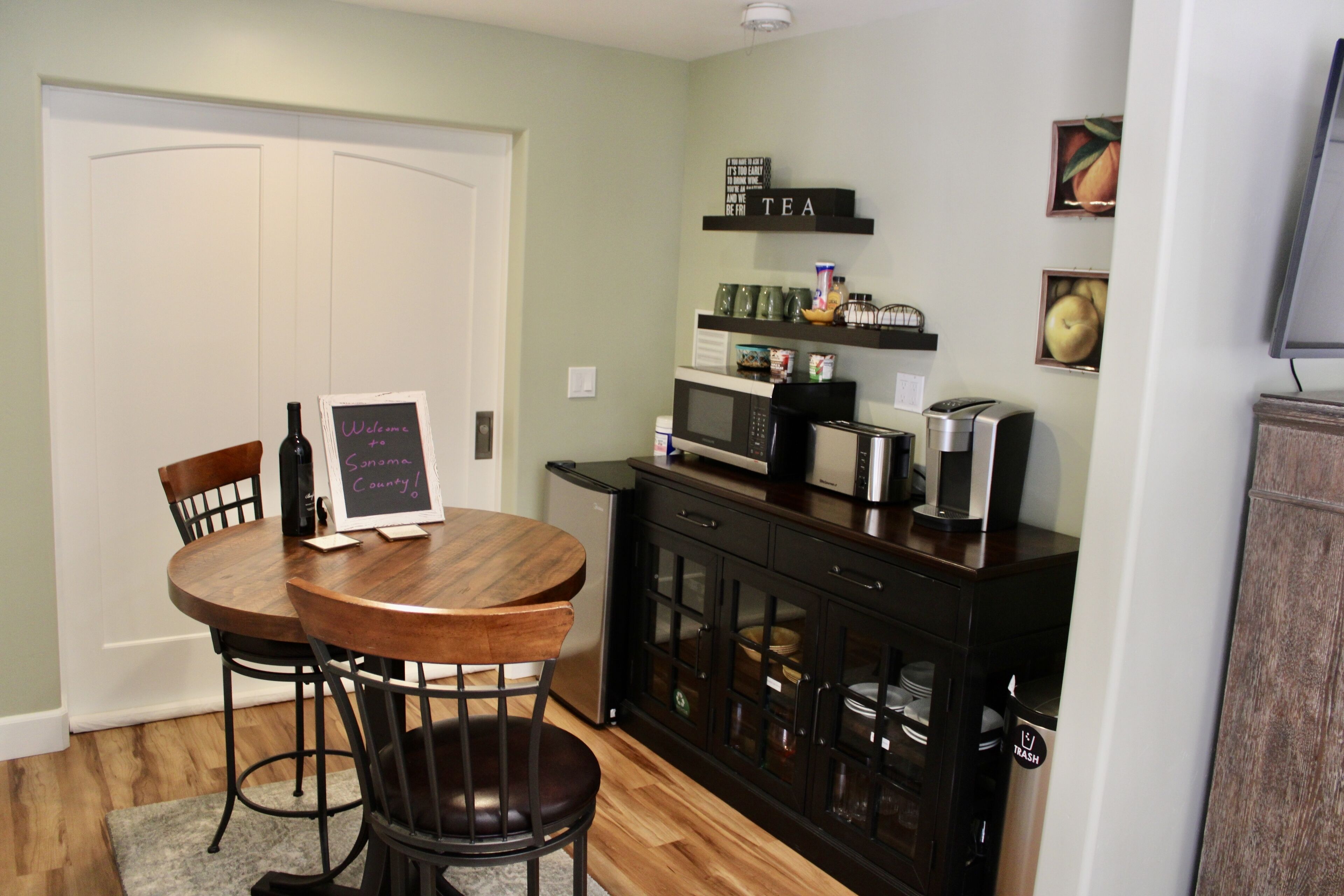Wine Country Retreat w Pool & Spa - Near Vineyards This one-acre estate offers the quiet and convenience of beautiful Bennett Valley. Just a short drive to the east you will find beautiful vineyards, wine tasting, and farm-fresh cuisine in Sonoma Valley. North 20 minutes up highway 101 you will find spectacular vineyards in Alexander Valley, Dry Creek Valley, as well as elegant tasting rooms and shops in the town of Healdsburg. Located minutes from shopping and local sites, but you will feel worlds away in a quiet, peaceful setting.For the outdoor enthusiasts, you will find Spring Lake and Annadel Park as well as Bennett Valley Golf Course close by.After a day of exploring beautiful Sonoma County, enjoy access to the saltwater pool, hot tub and outdoor dining area under a grand pergola. Sit under the stars at two available gas fire pits. Outdoor grilling is available as well as access to the pool house where you will find a pool table and dart board. Follow the woodland setting meandering paths to the horseshoe pit area. Enjoy yoga or simply relax in peaceful meditation in the seasonal outdoor studio. You also may catch of glimpse of Callie, the property's friendly dog. Please note that the saltwater pool is solar heated and available from mid April to late September (solar/weather accommodating). The spa is available year-round. The spacious guest suite is located in a wing of the home and has a private entrance. Three sides of the suite are open with only one wall being shared. The suite is also a single story . There is a comfy queen bed with luxury white sheets, down comforter, and down pillows. Featuring a smart TV, desk, washer/dryer, and plenty of closet space. The kitchenette offers a microwave, mini refrigerator, toaster and coffee maker. For comfort in the summer there is air conditioning available and a cozy fireplace for the winter. A reading nook is available to comfortably sit and plan out your wine country weekend.