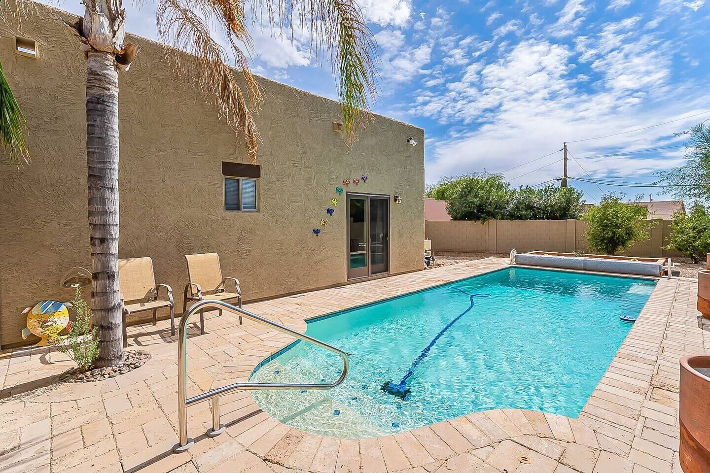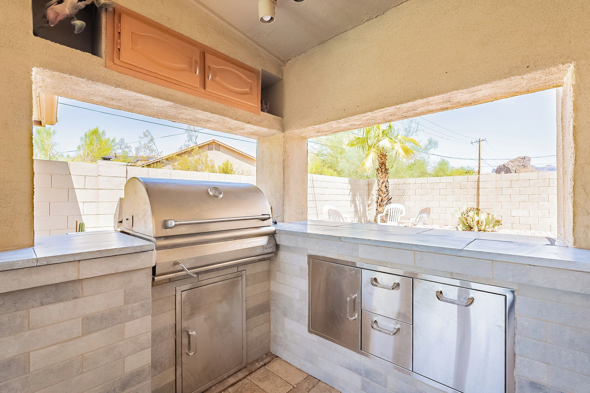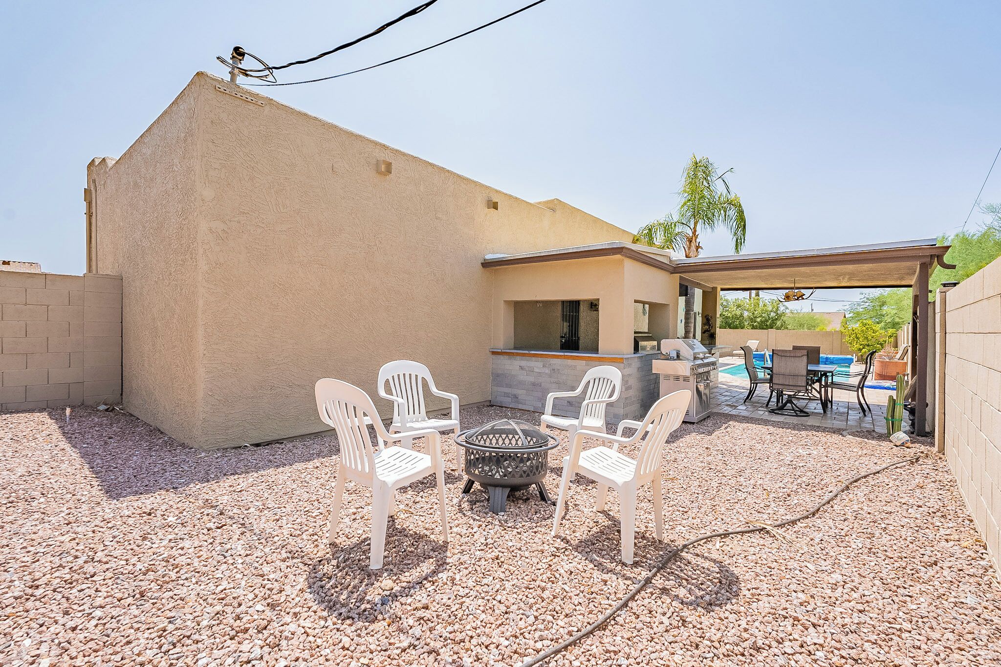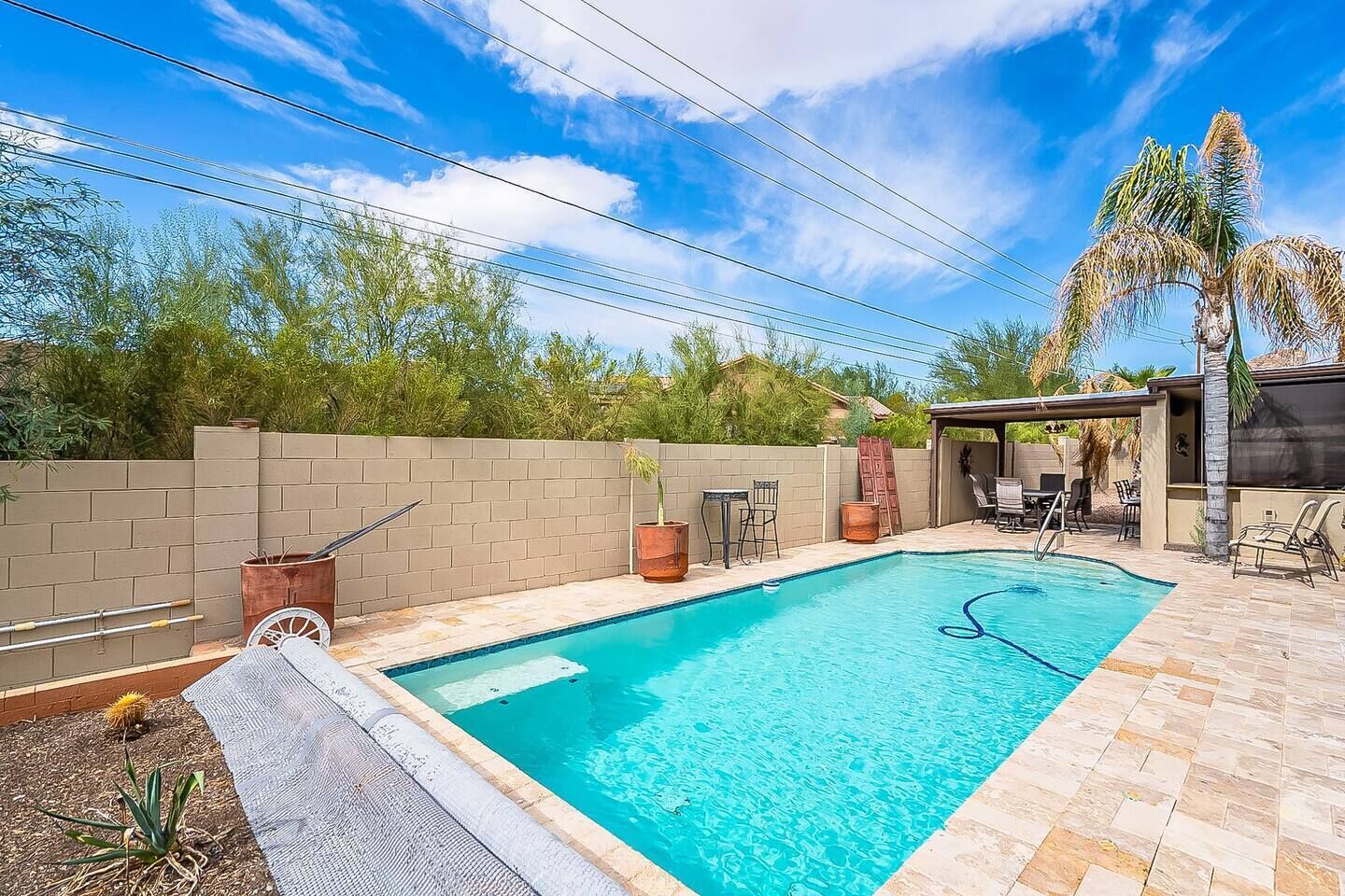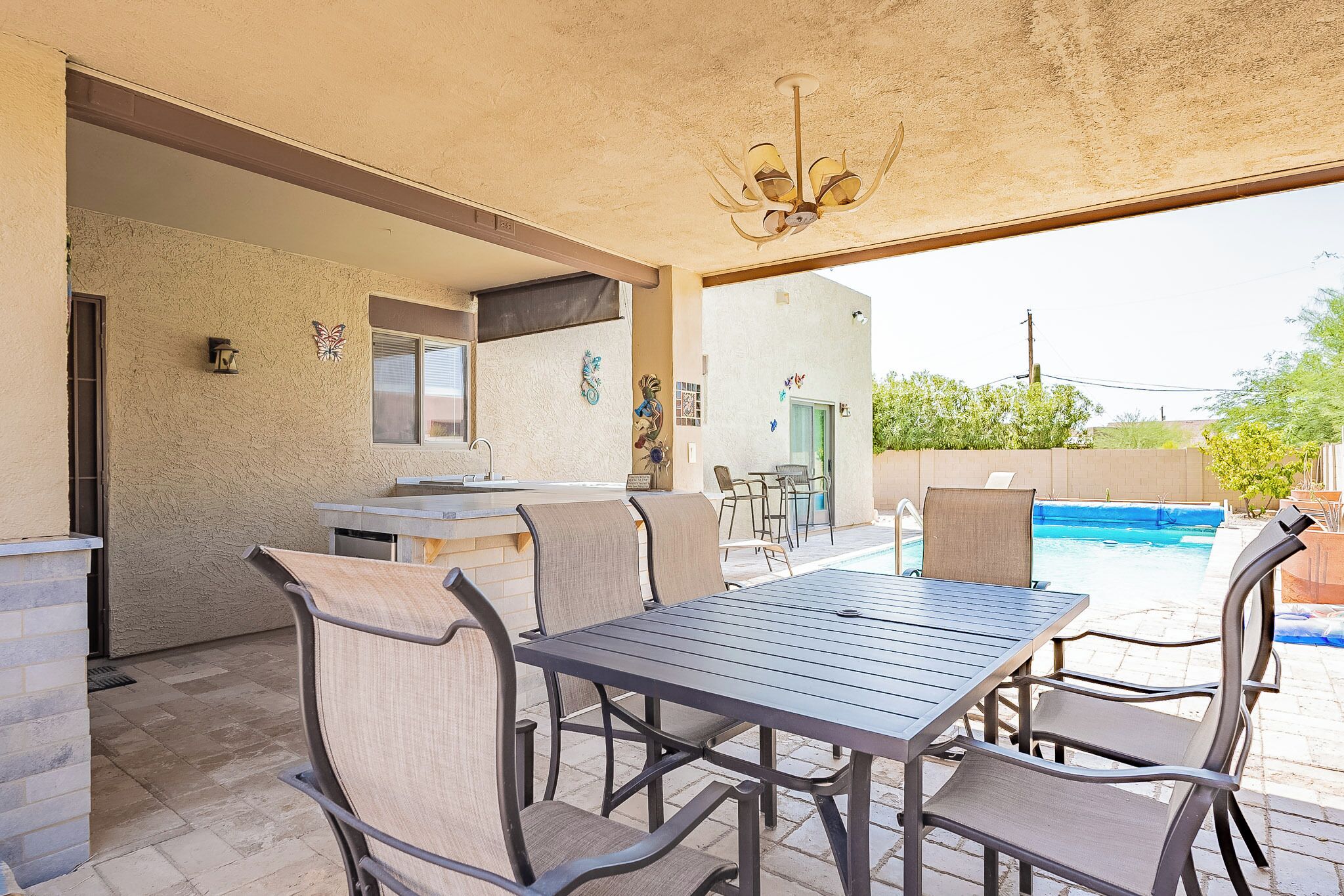 Superstition Escape - Heated Pool, Outdoor Kitchen This amazing 1200 square foot, 3-bedroom 2 bath mission style home is not only in the perfect location, but also offers everything you need for an amazing stay. The completely upgraded interior, inviting heated pool, newly renovated outdoor kitchen, fire pit and RV parking are just a few of the home’s amazing features! This home sleeps 6 guests.Not only will you love the great location and the beautiful home, but the amenities can’t be beat! You'll enjoy sitting around the stunning heated pool, or at the intimate seating area watching the sunrise while you drink your favorite morning beverage, or spend some time sitting around the fire pit or at the patio table. Also you'll want to take advantage of the newly renovated outdoor kitchen for a family style cookout. While inside the home the cozy kitchen has everything you'll need and more to whip up a tasty dinner for family or friends, with lots of seating available for mealtimes. The comfortable bedrooms are the perfect place to get a good night's rest or watch some TV to unwind after a day of hiking, exploring, or golfing.The bedrooms not only offer comfortable beds, but ceiling fans, dressers, night stands and a TV in each room to rest and relax during your stay. With an open concept layout there are great open spaces as well as designated areas to watch TV, visit, eat together, play games or plan you next days adventure. There is plenty of parking available in the driveway, street and RV parking through the large double gates. You'll love being minutes away from world class golf courses, hiking and walking trails, ziplining, state park, ghost and mining towns and so much more! Many of these opportunities for fun and adventure can be found only minutes away from Superstition Escape. Please come and stay and call Superstition Escape your home away from home!Property HighlightsPool (heated)Newly Renovated Outdoor Kitchen and DiningBBQ Grills - gas and charcoal Fire PitRV ParkingMountain ViewsSleeping ArrangementsBedroom 1 - King Bed (Sleeps 2)Bedroom 2 - Queen Bed (Sleeps 2)Bedroom 3 - Queen Bed (Sleeps 2)LocationNearest Supermarket - less than 10-minute drive to Bashas' Supermarket, less than 5-minute drive to WalgreensDistance to Airport - about 35-minute drive to Phoenix Sky Harbor International AirportNearby AttractionsGold Canyon Golf Resort & Spa - less than 5-minute driveHieroglyphic Canyon Trail - about 10-minute drive Superstition Mountain - about 10-minute driveSuperstition Mountain Golf & Country Club - about 10-minute driveArizona Speedway (Wild West Shootout) - about 15-minute driveGoldfield Ghost Town - about 15-minute driveSuperstition Zipline - 20-minute driveLost Dutchman State Park - about 20-minute drivePeralta Trailhead - less than 30-minute driveSan Tan Flat - about 30-minute driveSloan Park (Chicago Cubs spring training) - about 30-minute driveTortilla Flat - about 40-minute drivePlaces to EatWahoo's Restaurant & bar - less than 5-minute driveGold Canyon Cafe - 5-minute driveGold Stallion Restaurant - 5-minute driveKokopelli's Restaurant - about 15-minute drive---Things to Note---1. There's a doorbell camera in the property.2. Must be 25 to book. 3. An additional screening form is required from the owner after booking this property. 4. All unrelated guests must have one or more person(s) in their party over 30 that that will be in residence at the property.5. Welcome to the Valley of the Sun. Native to the area are all types of critters (lizards, bugs, spiders, and so on) who call the desert of Arizona home. While the home is regularly treated to control these pests, seeing dead bugs doesn’t mean there is an infestation but that the treatment is working. The house is cleaned in preparation for your arrival but those trespassers sometimes die at inconvenient times. To ensure ants stay out please don't leave food or crumbs on counters or tables.