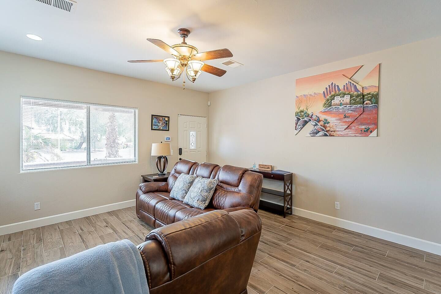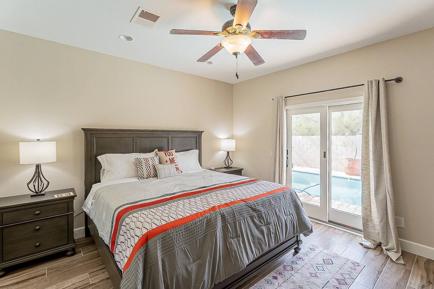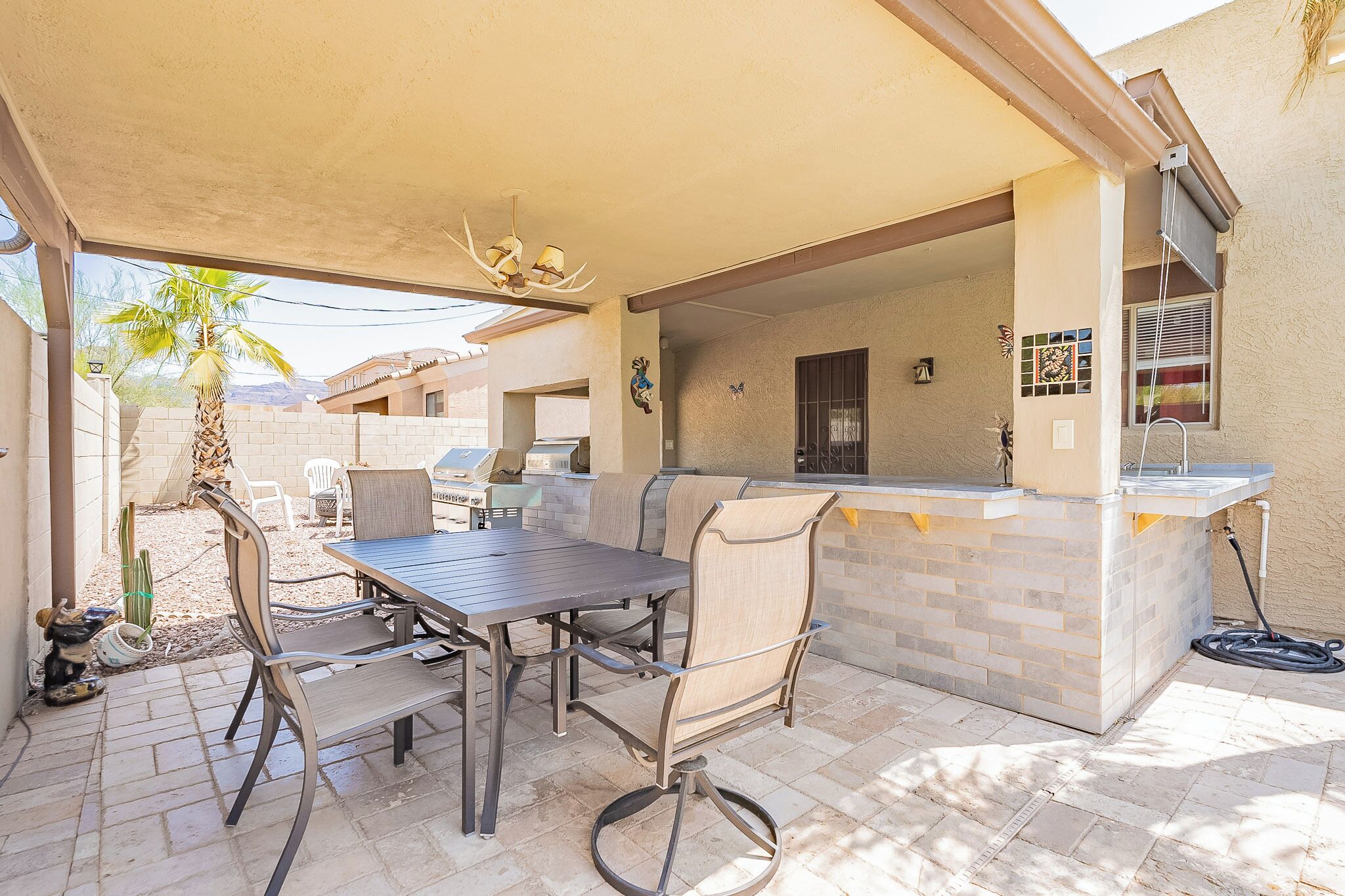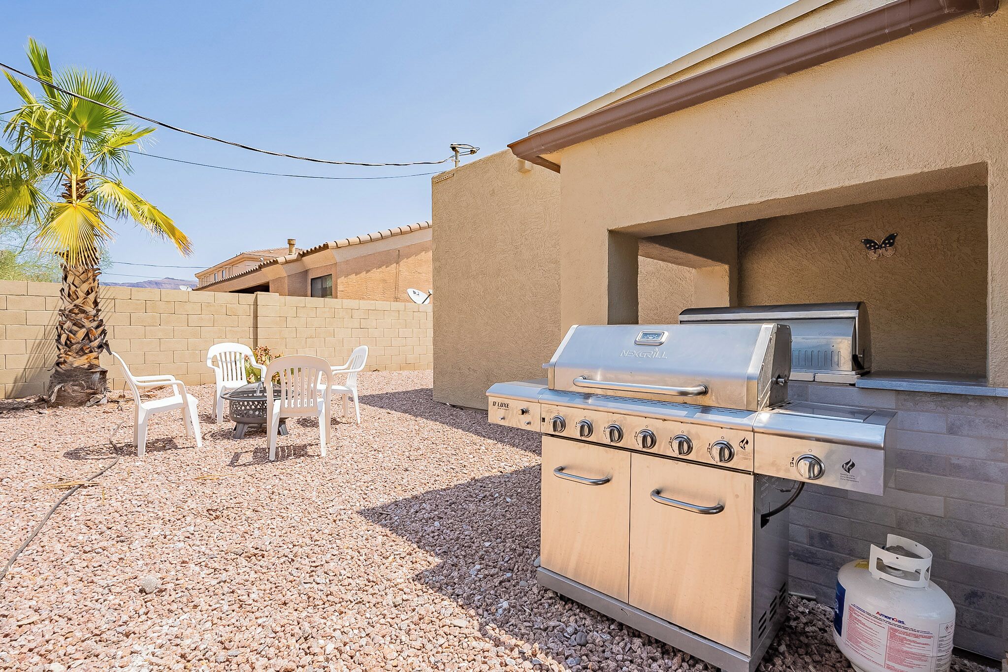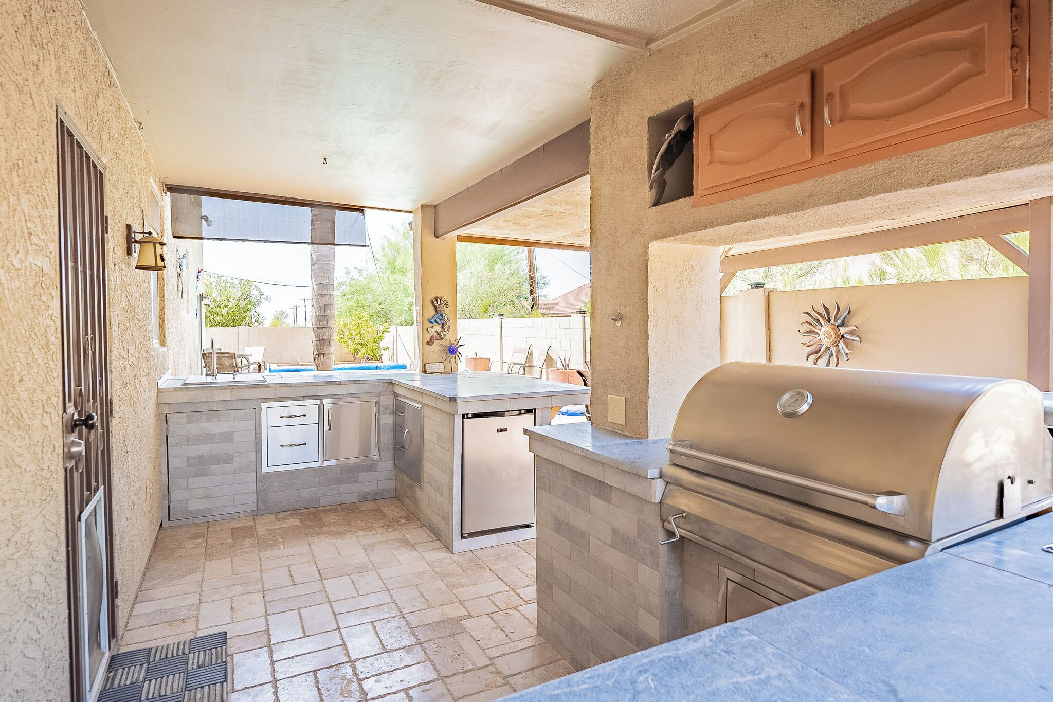 Superstition Escape - Heated Pool, Outdoor Kitchen This amazing 1200 square foot, 3-bedroom 2 bath mission style home is not only in the perfect location, but also offers everything you need for an amazing stay. The completely upgraded interior, inviting heated pool, newly renovated outdoor kitchen, fire pit and RV parking are just a few of the home’s amazing features! This home sleeps 6 guests.Not only will you love the great location and the beautiful home, but the amenities can’t be beat! You'll enjoy sitting around the stunning heated pool, or at the intimate seating area watching the sunrise while you drink your favorite morning beverage, or spend some time sitting around the fire pit or at the patio table. Also you'll want to take advantage of the newly renovated outdoor kitchen for a family style cookout. While inside the home the cozy kitchen has everything you'll need and more to whip up a tasty dinner for family or friends, with lots of seating available for mealtimes. The comfortable bedrooms are the perfect place to get a good night's rest or watch some TV to unwind after a day of hiking, exploring, or golfing.The bedrooms not only offer comfortable beds, but ceiling fans, dressers, night stands and a TV in each room to rest and relax during your stay. With an open concept layout there are great open spaces as well as designated areas to watch TV, visit, eat together, play games or plan you next days adventure. There is plenty of parking available in the driveway, street and RV parking through the large double gates. You'll love being minutes away from world class golf courses, hiking and walking trails, ziplining, state park, ghost and mining towns and so much more! Many of these opportunities for fun and adventure can be found only minutes away from Superstition Escape. Please come and stay and call Superstition Escape your home away from home!Property HighlightsPool (heated)Newly Renovated Outdoor Kitchen and DiningBBQ Grills - gas and charcoal Fire PitRV ParkingMountain ViewsSleeping ArrangementsBedroom 1 - King Bed (Sleeps 2)Bedroom 2 - Queen Bed (Sleeps 2)Bedroom 3 - Queen Bed (Sleeps 2)LocationNearest Supermarket - less than 10-minute drive to Bashas' Supermarket, less than 5-minute drive to WalgreensDistance to Airport - about 35-minute drive to Phoenix Sky Harbor International AirportNearby AttractionsGold Canyon Golf Resort & Spa - less than 5-minute driveHieroglyphic Canyon Trail - about 10-minute drive Superstition Mountain - about 10-minute driveSuperstition Mountain Golf & Country Club - about 10-minute driveArizona Speedway (Wild West Shootout) - about 15-minute driveGoldfield Ghost Town - about 15-minute driveSuperstition Zipline - 20-minute driveLost Dutchman State Park - about 20-minute drivePeralta Trailhead - less than 30-minute driveSan Tan Flat - about 30-minute driveSloan Park (Chicago Cubs spring training) - about 30-minute driveTortilla Flat - about 40-minute drivePlaces to EatWahoo's Restaurant & bar - less than 5-minute driveGold Canyon Cafe - 5-minute driveGold Stallion Restaurant - 5-minute driveKokopelli's Restaurant - about 15-minute drive---Things to Note---1. There's a doorbell camera in the property.2. Must be 25 to book. 3. An additional screening form is required from the owner after booking this property. 4. All unrelated guests must have one or more person(s) in their party over 30 that that will be in residence at the property.5. Welcome to the Valley of the Sun. Native to the area are all types of critters (lizards, bugs, spiders, and so on) who call the desert of Arizona home. While the home is regularly treated to control these pests, seeing dead bugs doesn’t mean there is an infestation but that the treatment is working. The house is cleaned in preparation for your arrival but those trespassers sometimes die at inconvenient times. To ensure ants stay out please don't leave food or crumbs on counters or tables.