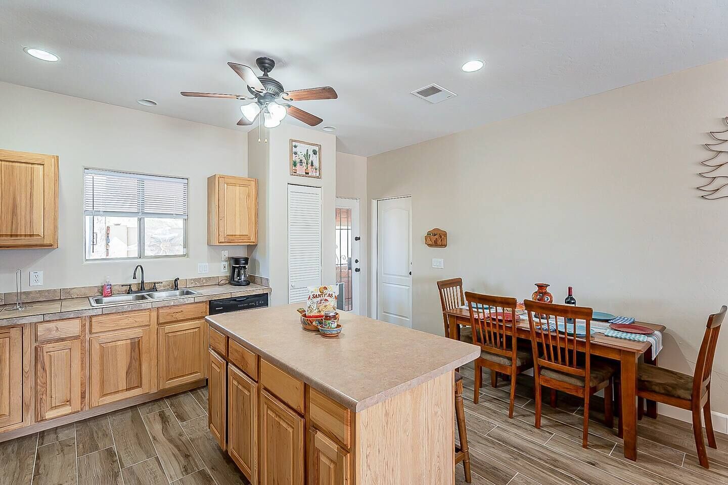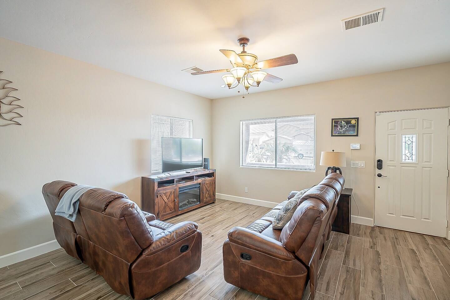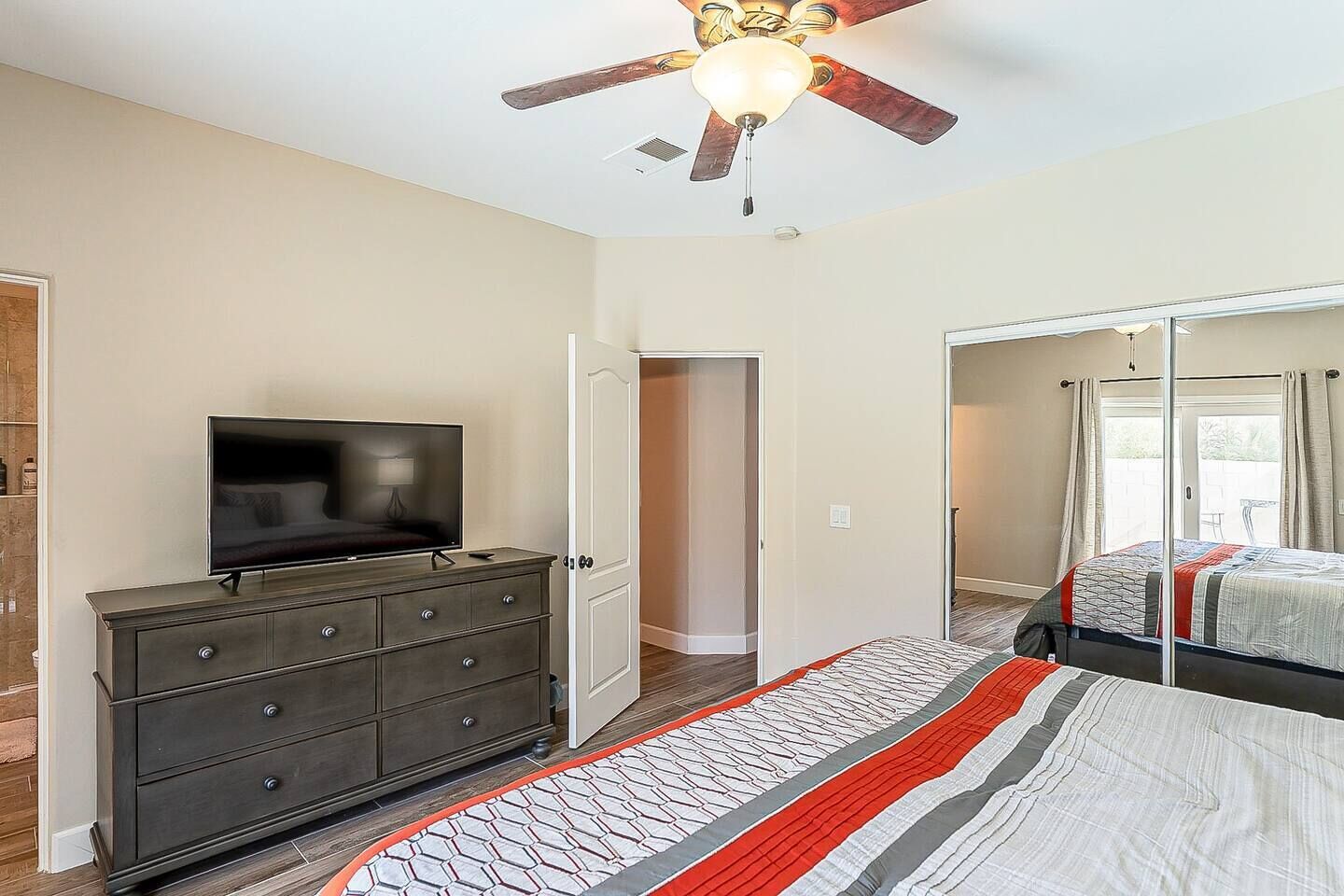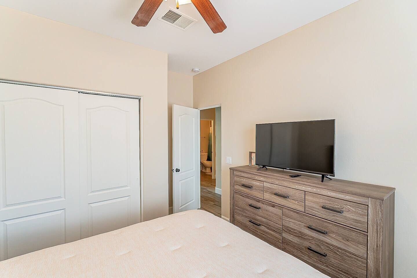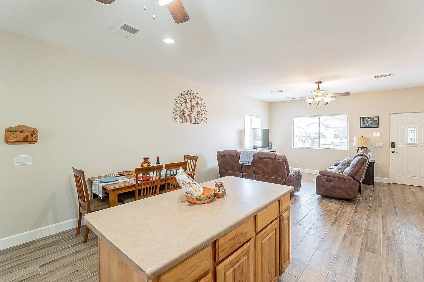 Superstition Escape - Heated Pool, Outdoor Kitchen This amazing 1200 square foot, 3-bedroom 2 bath mission style home is not only in the perfect location, but also offers everything you need for an amazing stay. The completely upgraded interior, inviting heated pool, newly renovated outdoor kitchen, fire pit and RV parking are just a few of the home’s amazing features! This home sleeps 6 guests.Not only will you love the great location and the beautiful home, but the amenities can’t be beat! You'll enjoy sitting around the stunning heated pool, or at the intimate seating area watching the sunrise while you drink your favorite morning beverage, or spend some time sitting around the fire pit or at the patio table. Also you'll want to take advantage of the newly renovated outdoor kitchen for a family style cookout. While inside the home the cozy kitchen has everything you'll need and more to whip up a tasty dinner for family or friends, with lots of seating available for mealtimes. The comfortable bedrooms are the perfect place to get a good night's rest or watch some TV to unwind after a day of hiking, exploring, or golfing.The bedrooms not only offer comfortable beds, but ceiling fans, dressers, night stands and a TV in each room to rest and relax during your stay. With an open concept layout there are great open spaces as well as designated areas to watch TV, visit, eat together, play games or plan you next days adventure. There is plenty of parking available in the driveway, street and RV parking through the large double gates. You'll love being minutes away from world class golf courses, hiking and walking trails, ziplining, state park, ghost and mining towns and so much more! Many of these opportunities for fun and adventure can be found only minutes away from Superstition Escape. Please come and stay and call Superstition Escape your home away from home!Property HighlightsPool (heated)Newly Renovated Outdoor Kitchen and DiningBBQ Grills - gas and charcoal Fire PitRV ParkingMountain ViewsSleeping ArrangementsBedroom 1 - King Bed (Sleeps 2)Bedroom 2 - Queen Bed (Sleeps 2)Bedroom 3 - Queen Bed (Sleeps 2)LocationNearest Supermarket - less than 10-minute drive to Bashas' Supermarket, less than 5-minute drive to WalgreensDistance to Airport - about 35-minute drive to Phoenix Sky Harbor International AirportNearby AttractionsGold Canyon Golf Resort & Spa - less than 5-minute driveHieroglyphic Canyon Trail - about 10-minute drive Superstition Mountain - about 10-minute driveSuperstition Mountain Golf & Country Club - about 10-minute driveArizona Speedway (Wild West Shootout) - about 15-minute driveGoldfield Ghost Town - about 15-minute driveSuperstition Zipline - 20-minute driveLost Dutchman State Park - about 20-minute drivePeralta Trailhead - less than 30-minute driveSan Tan Flat - about 30-minute driveSloan Park (Chicago Cubs spring training) - about 30-minute driveTortilla Flat - about 40-minute drivePlaces to EatWahoo's Restaurant & bar - less than 5-minute driveGold Canyon Cafe - 5-minute driveGold Stallion Restaurant - 5-minute driveKokopelli's Restaurant - about 15-minute drive---Things to Note---1. There's a doorbell camera in the property.2. Must be 25 to book. 3. An additional screening form is required from the owner after booking this property. 4. All unrelated guests must have one or more person(s) in their party over 30 that that will be in residence at the property.5. Welcome to the Valley of the Sun. Native to the area are all types of critters (lizards, bugs, spiders, and so on) who call the desert of Arizona home. While the home is regularly treated to control these pests, seeing dead bugs doesn’t mean there is an infestation but that the treatment is working. The house is cleaned in preparation for your arrival but those trespassers sometimes die at inconvenient times. To ensure ants stay out please don't leave food or crumbs on counters or tables.