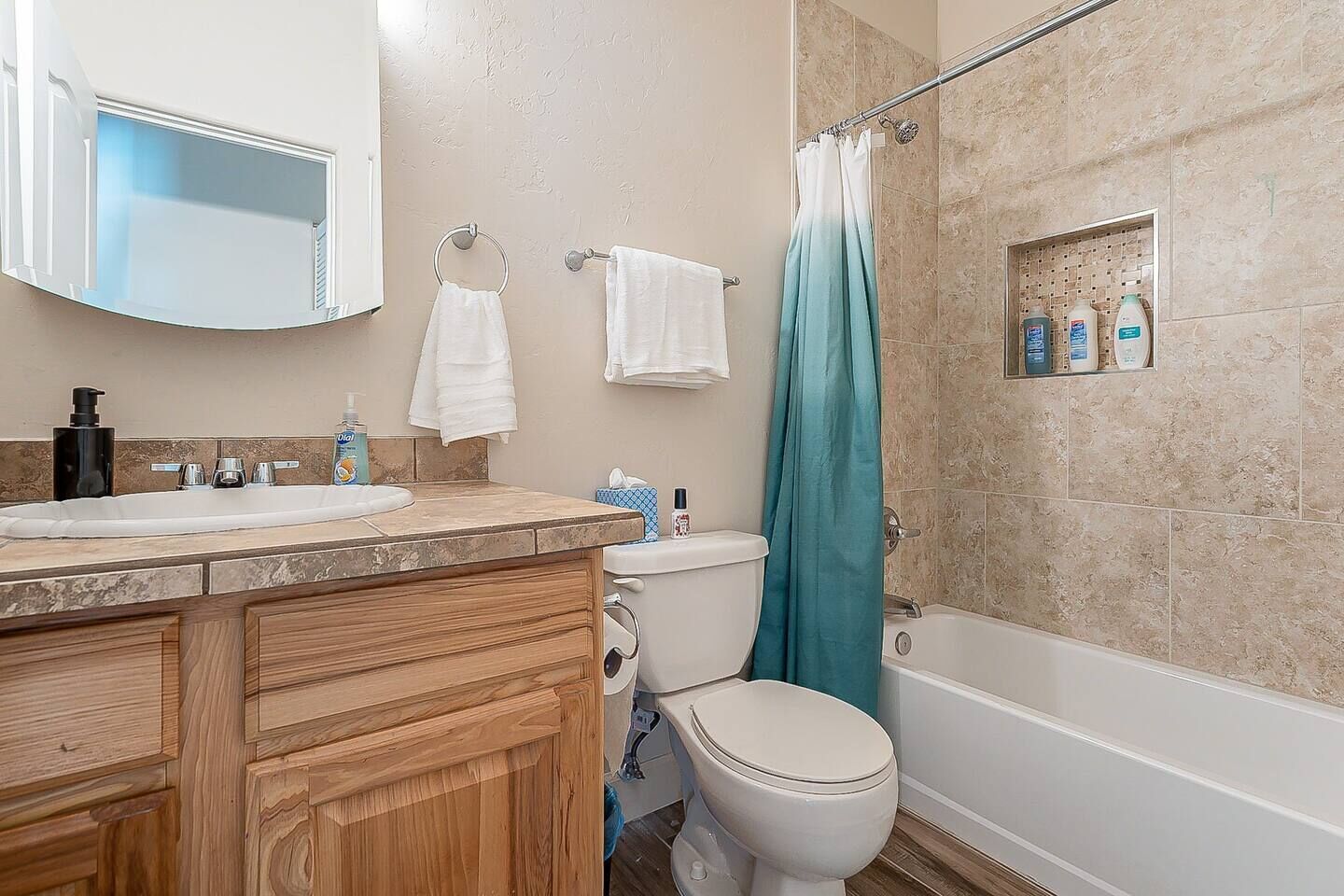 Superstition Escape - Heated Pool, Outdoor Kitchen This amazing 1200 square foot, 3-bedroom 2 bath mission style home is not only in the perfect location, but also offers everything you need for an amazing stay. The completely upgraded interior, inviting heated pool, newly renovated outdoor kitchen, fire pit and RV parking are just a few of the home’s amazing features! This home sleeps 6 guests.N...