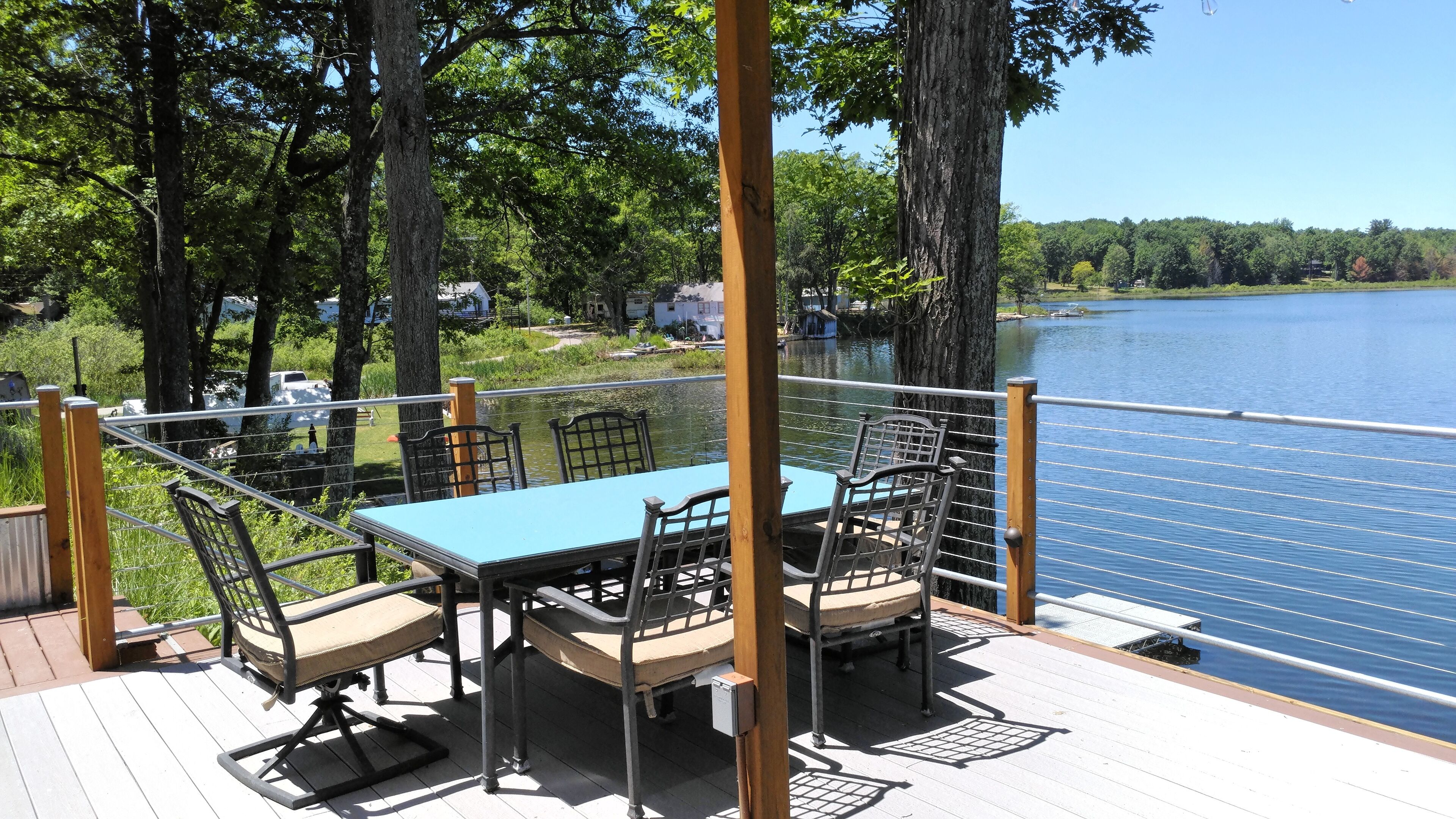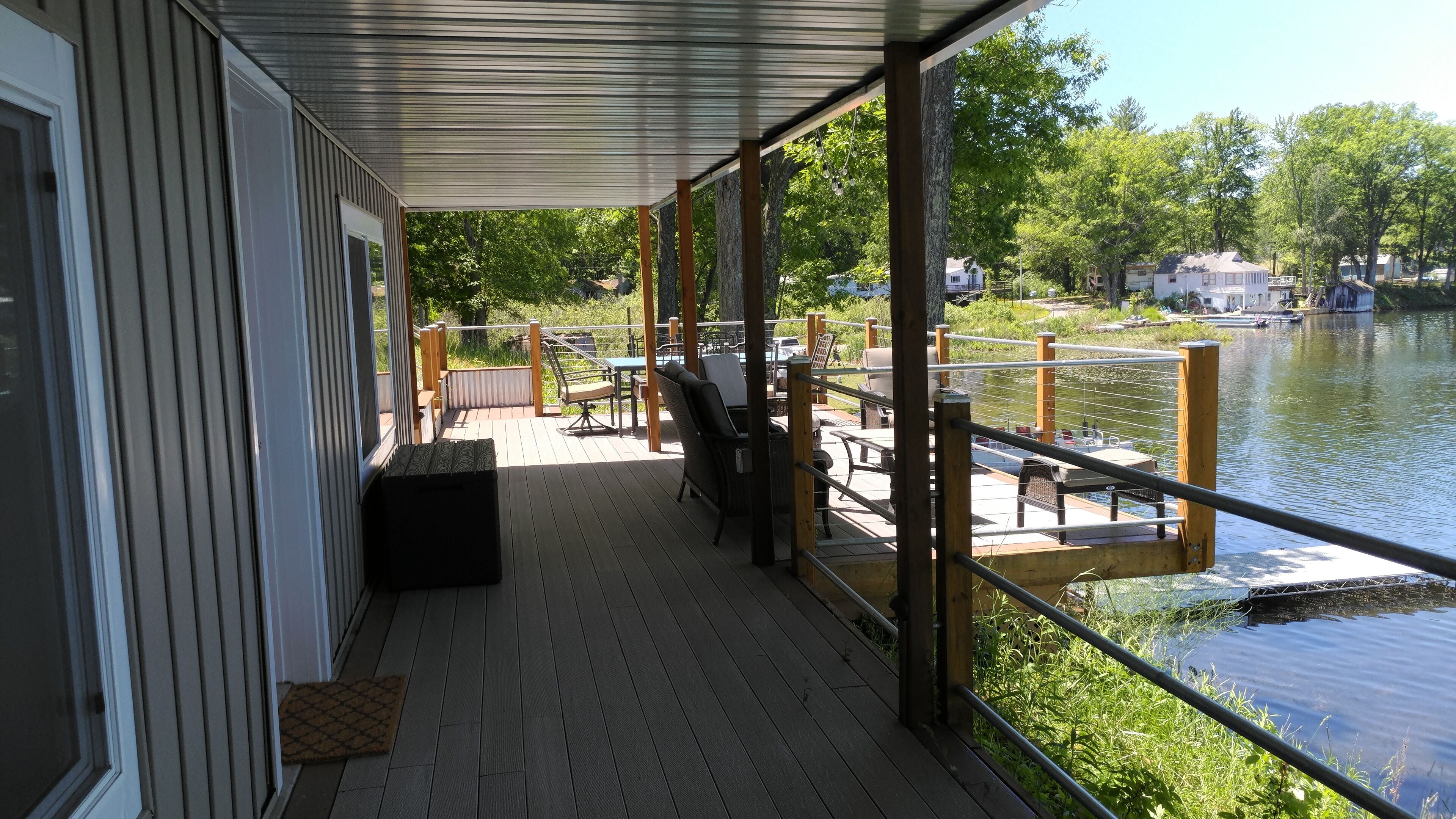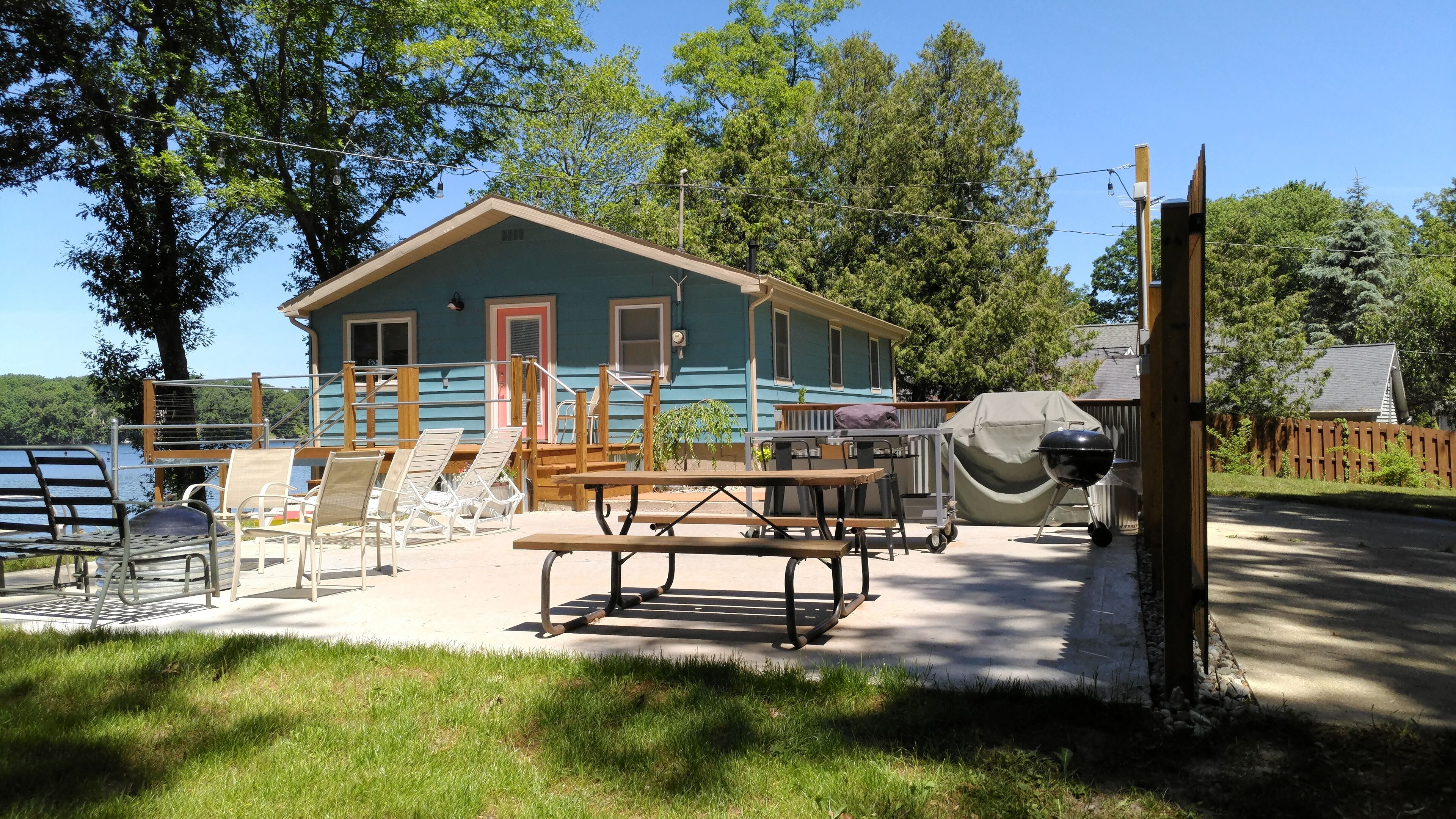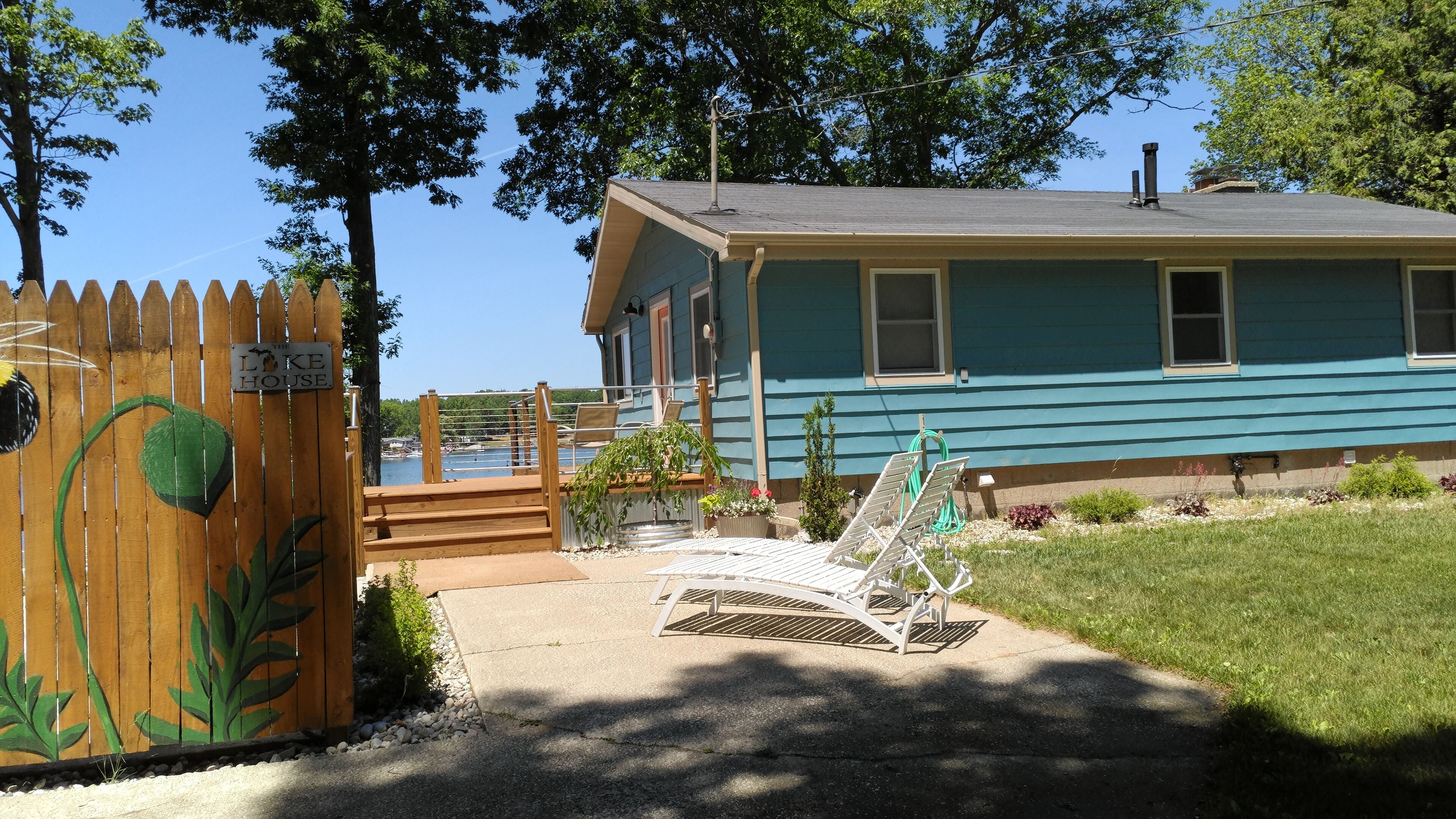 Summer fun and making memories. Nestled in the Manistee National Forest, this lake house has a lot to offer. Located on a 180 acre all sport lake, with sunset views from 2 awesome decks, featuring an outdoor kitchen, fire pit, dining and sunning area, with a corn hole court all overlooking the lake. There is a yard to play in and a little secret garden to sit and enjoy the view or read a good book. The house is newly remodeled top to bottom, keeping some of the original as a nod to it’s past. The lower deck provides lots of seating and lounging area from the walk out basement. The upper deck is a nice place to enjoy a cup of coffee watching the loons, or an evening sunset with a glass of wine. There are stairs to the lakeshore with a great dock and sunning deck to lounge, swim, or fish off from. There is a convenient outdoor shower located on the lower deck to rinse off after a swim. This is a great place to enjoy with family and friends, swimming, playing, fire pit, wood provided. Short drives away are Ludington, Pentwater, the Silver Lake Sand dunes with all they have to offer on Lake Michigan. There are also trails to explore all over Manistee National Forest. A little of something for everyone