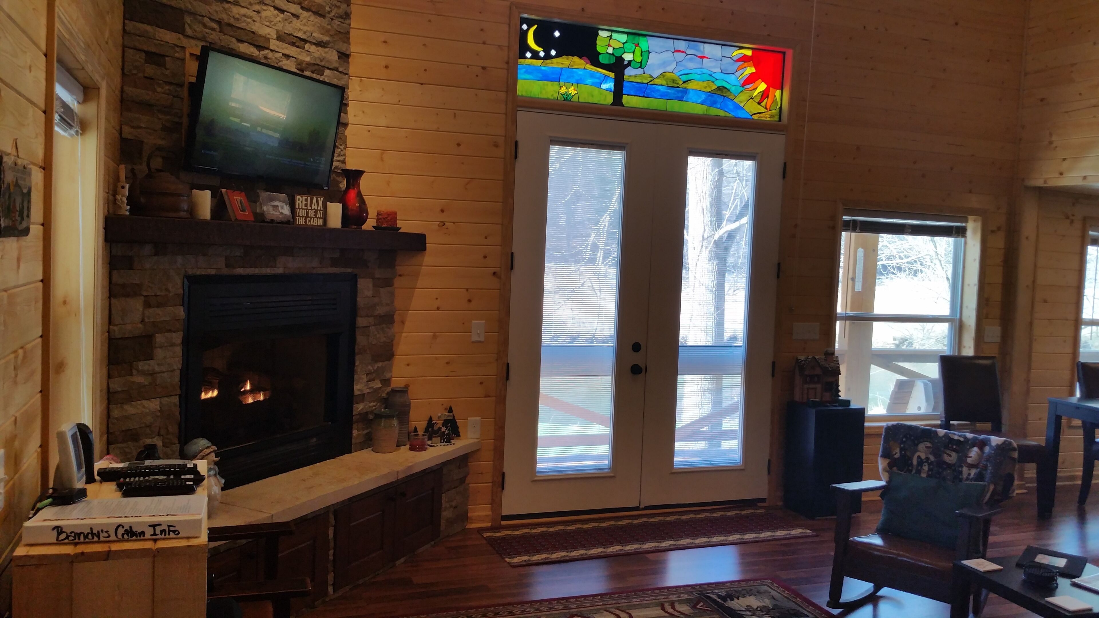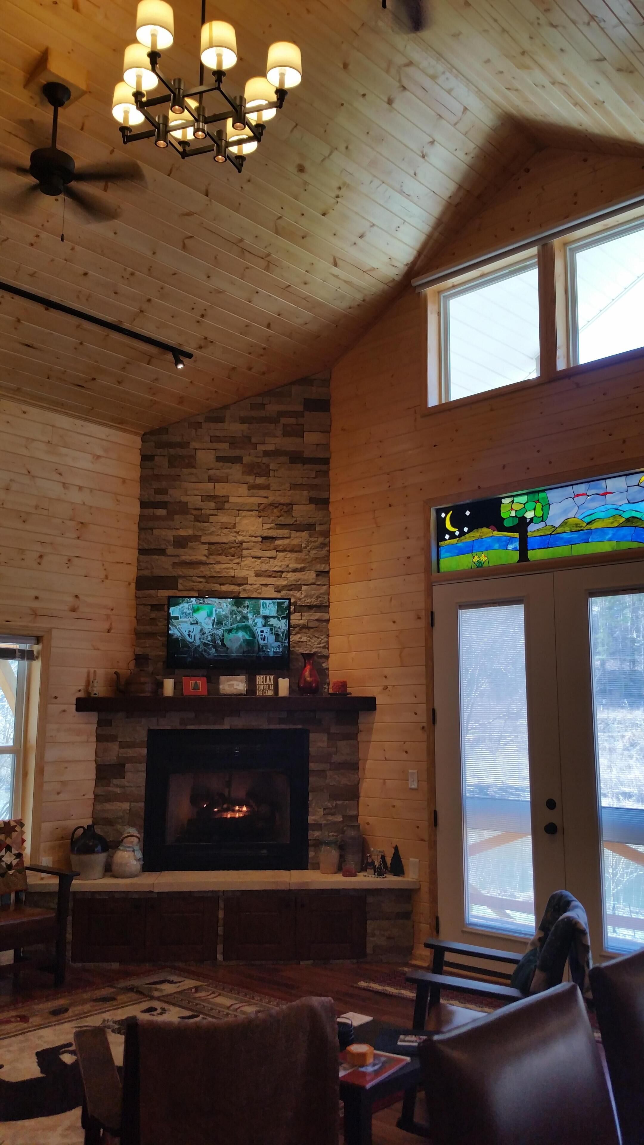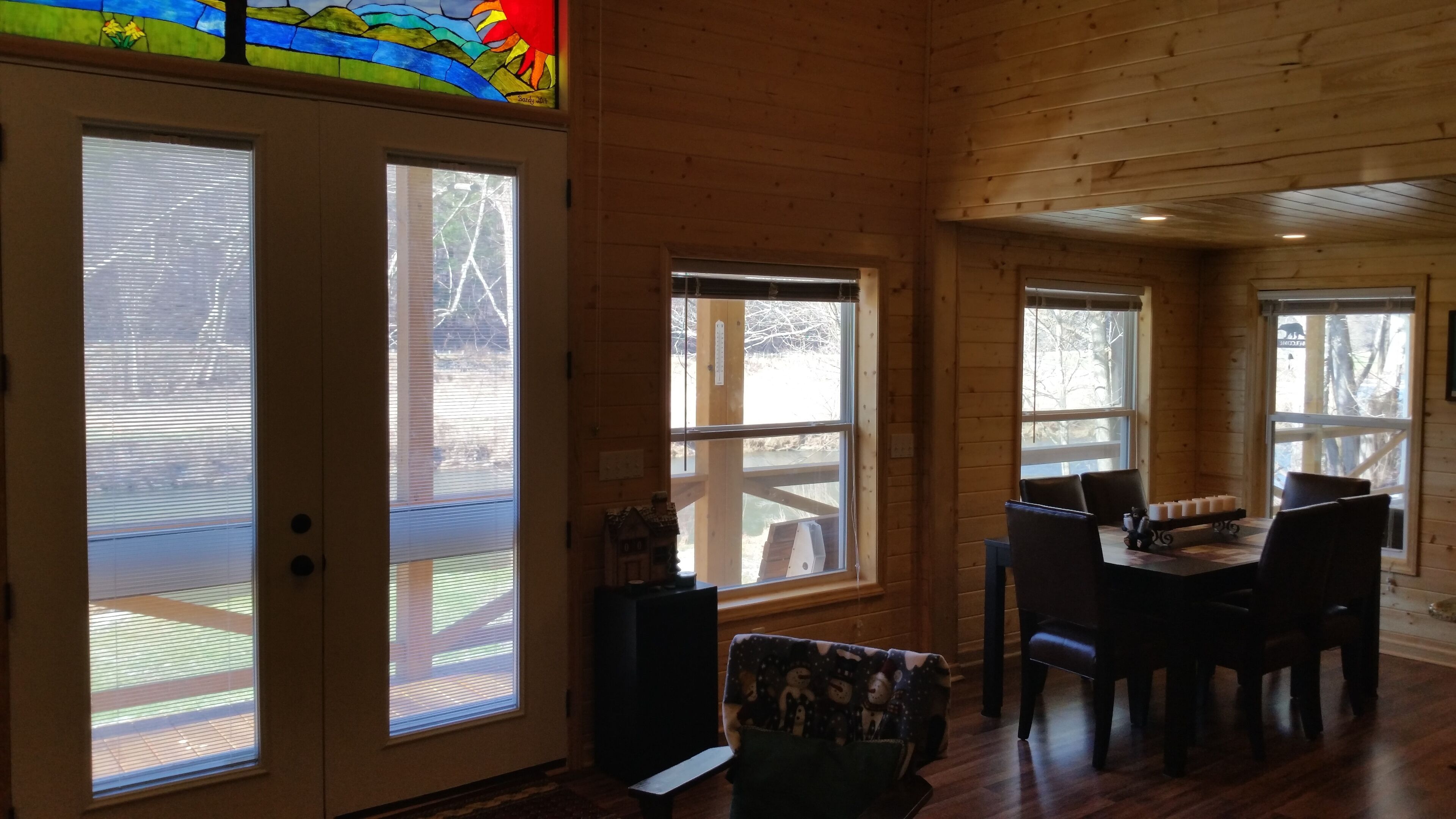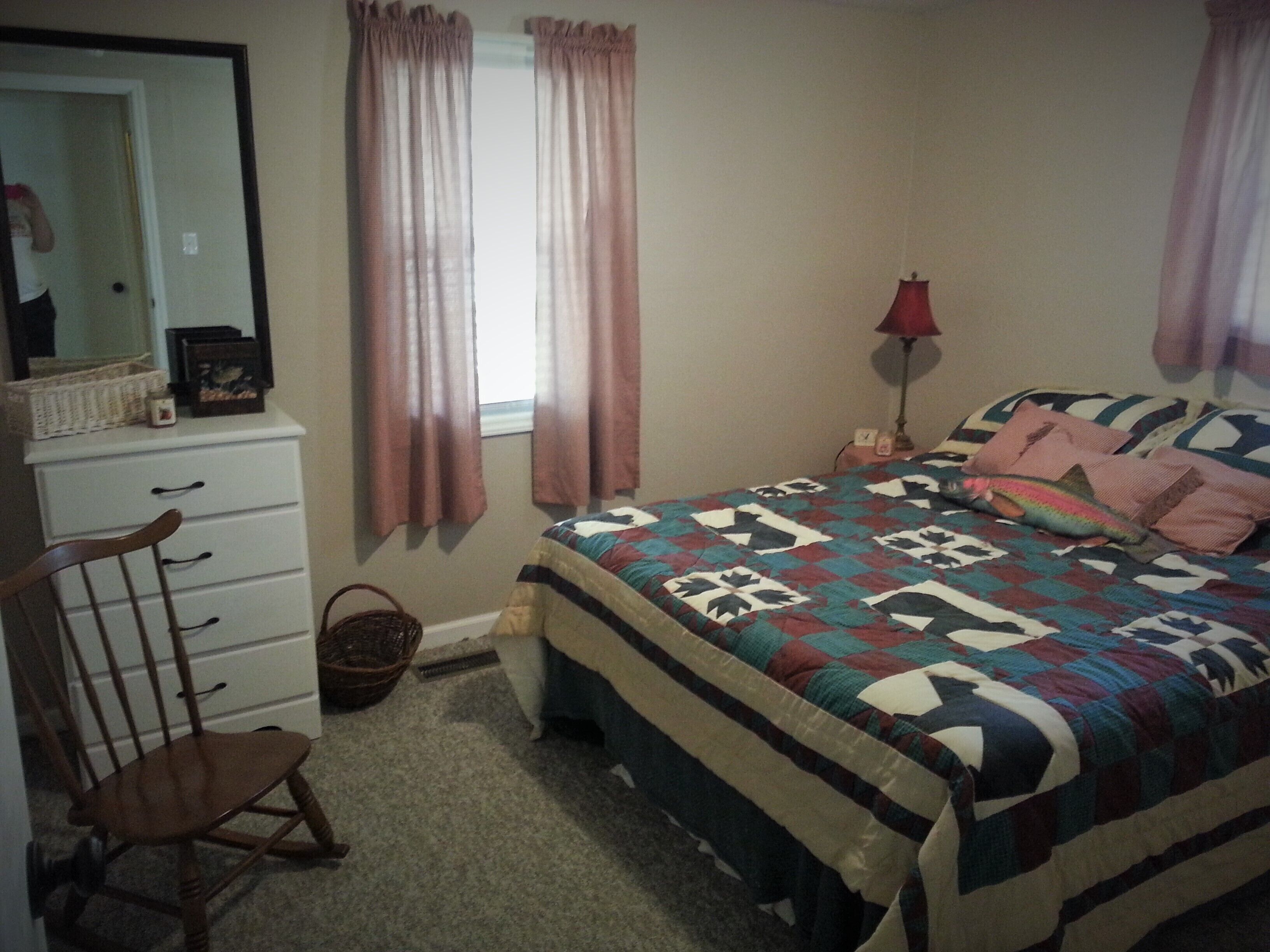 The Cabin- Riverside Cabin Perfect For Your Family Getaway Before you read anything here, scroll down and look at the second picture. It is the view of the North Fork of the New River in the front yard of The Cabin. When we are at The Cabin, we spend as much time as possible on our wonderful front porch- rocking, swinging, eating, roasting s’mores around the fire pit, warming up in the hot tube, napping in the hammock, or waving at people drifting by in the beautiful New River. When nighttime comes, we move inside to the great room and light the fireplace. The rustic chandelier lights the cathedral ceiling and the beautiful wood floors, walls and ceilings. Our family enjoys the evenings listening to beautiful music and playing games with friends, but the wifi is available if we simply have to check emails or want to watch a movie. A fully stocked kitchen allows plenty of room to make a quick snack, or a family feast. When it is time for bed, the master suite has a king bed with ensuite bathroom with a walk in shower. A second bathroom has a Jacuzzi bathtub to enjoy. Three other bedrooms offer a king bed, king day bed, and rear room with bunk single beds, and a full bed. Back over the great room is a loft bedroom (open to great room). The ladder up to the loft is sturdy and an easy climb up to two more double beds. The kids always fight to see who gets to sleep in the loft. When morning comes, everyone is ready to hit the river. The North Fork of the New River is literally in the front yard. The river is about 40 feet wide in front of the cabin, but only a few feet deep. For those wishing more adventure than fishing, swimming around and skipping rocks, tubing is always an option. If shopping is more your speed, West Jefferson and Jefferson are about a 15 minute drive. The Ashe County Cheese Factory, art galleries, fresco churches and shops are great fun. We even have a hard apple cider cidery nearby in Lansing. If hiking is more your speed, the possibilities in the area are endless. For bikers, the top of the Virginia Creeper trail at White Top is only 30 minutes away. Vacations are about making memories with the people you love. Our family has enjoyed The Cabin for many years, and now that we have renovated it, we enjoy sharing it with friends. We look forward to sharing it with you.