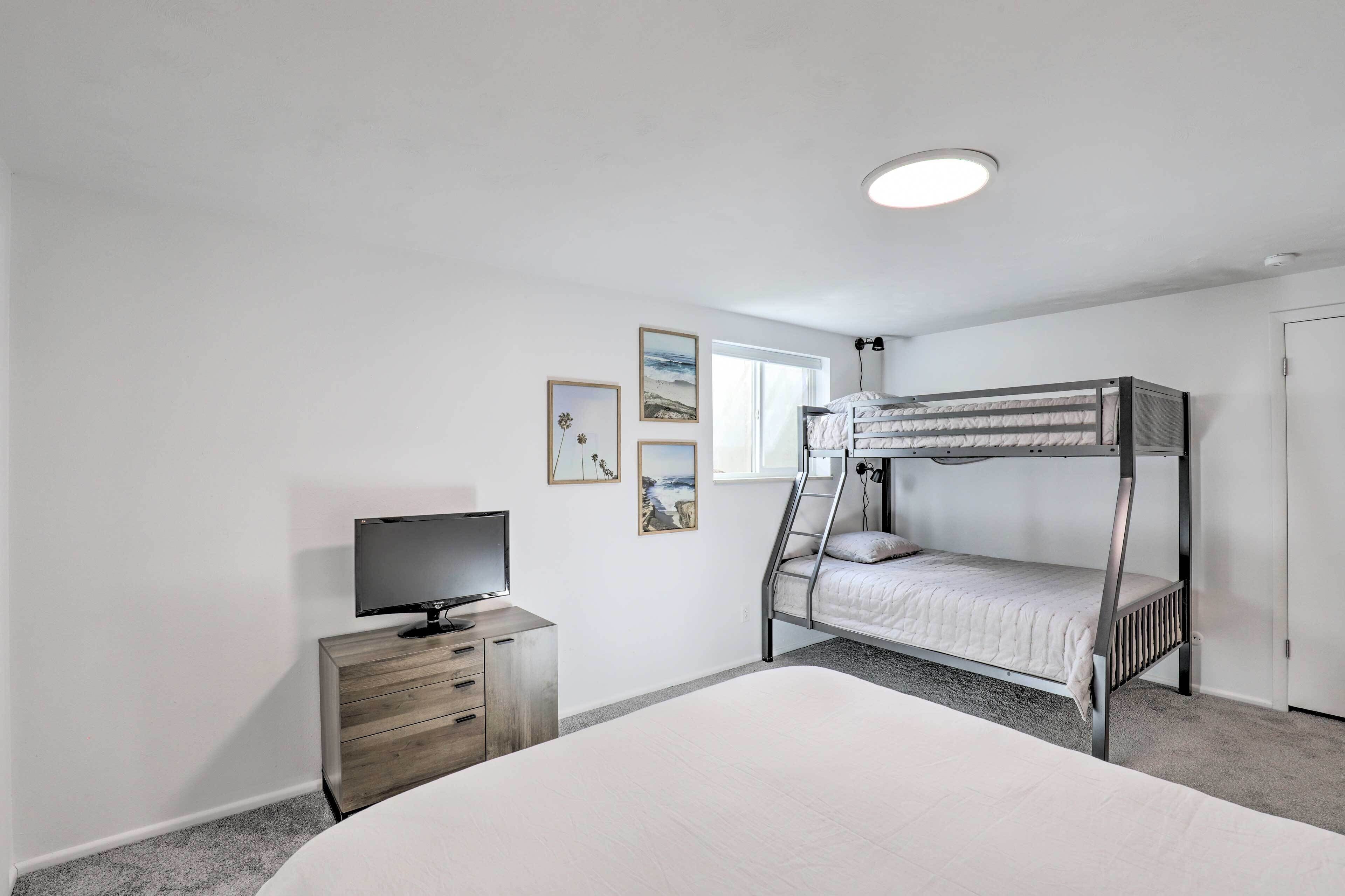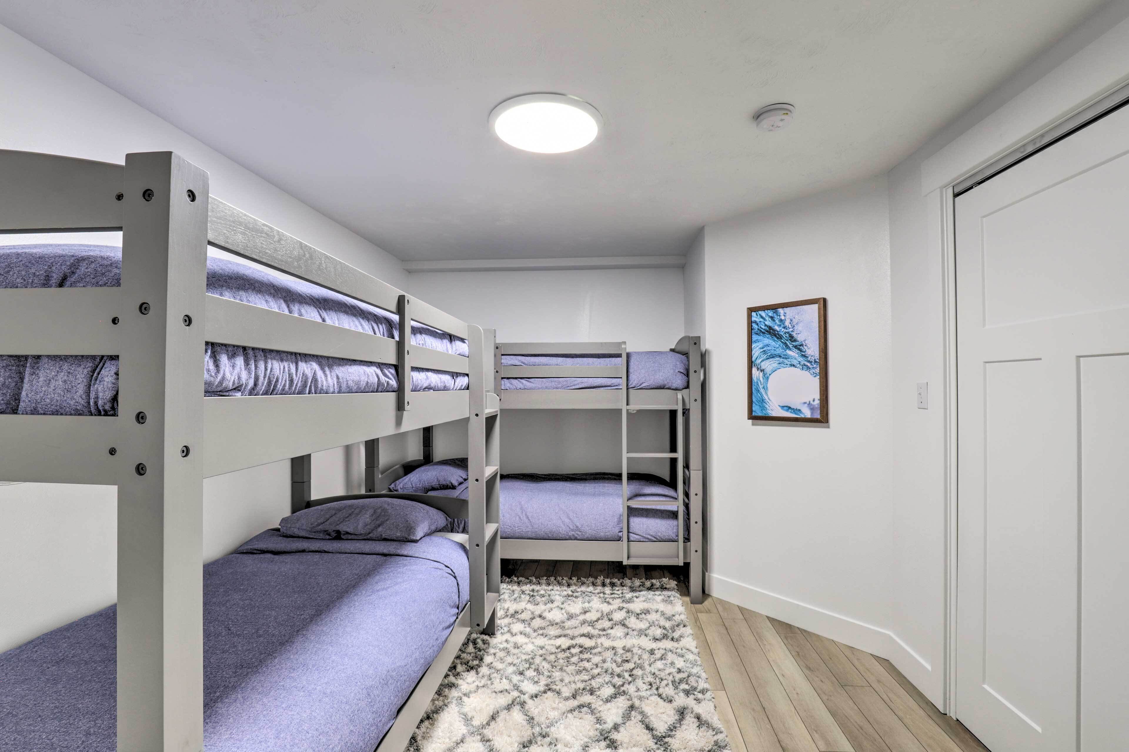 Stylish Provo Home w/ Mtn Views: Steps to BYU! Seeking recreation & relaxation in the heart of Provo? Look no further than this 3-bedroom, 2-bathroom beach-themed gem for your next mountain escape! With majestic views and modern finishes, this vacation rental offers the ultimate getaway. Visit BYU's campus located right across the street, drive up Provo Canyon past Bridal Veil Falls to Sundance Mountain Resort, or take a trip to Park City, Salt Lake City, and historic Temple Square! End the night with board games by the fireplace.-- THE PROPERTY --Private Yard | Gas Fireplace | Central Location | Lower Unit Only (please be respectful of the upstairs neighbors)Whether looking to experience world-class skiing at Sundance Mountain Resort, float down the Provo River, or explore the area’s boating, hiking, and mountain biking, ‘Provo Surf House’ offers families the perfect home base for adventure and incredible mountain scenery.Bedroom 1: Queen Bed, Twin/Full Bunk Bed | Bedroom 2: Queen Bed | Bedroom 3: 2 Twin Bunk Beds | Additional Sleeping: Pack ‘n PlayINDOOR LIVING: 2 Smart TVs w/ cable, books & board games, dining table, modern decorKITCHEN: Fully equipped w/ stainless steel appliances, cooking basics & spices, dishware/flatware, Crock-Pot, hot water pot, ice maker, toaster oven, espresso machineGENERAL: Free WiFi, central heating & air conditioning, linens/towels, complimentary toiletries, 2 hair dryers, in-unit washer/dryer, laundry detergent, iron/board, keyless entryFAQ: Step-free access, exterior security camera (front door), quiet hours (10:00 PM - 7:00 AM), lower unit apartment (long-term renters in upper unit)PARKING: Driveway (2 vehicles), free street parking (first-come, first-served)-- THE LOCATION --UNIVERSITY ATTRACTIONS (walking distance): BYU Marriott Center - basketball & other events, LaVell Edwards Football Stadium, Miller Baseball Park, Performing Arts at BYU, Bean Life Science Museum, BYU Museum of Paleontology, Brigham Young University Museum of Art, BYU StoreOUTDOOR ADVENTURE: Y Trailhead (1.4 miles), Canyon Glen Park (5.2 miles), Utah Lake State Park (6.5 miles), Bridal Veil Falls - Provo Canyon (8.4 miles), Sundance Mountain Resort (14.0 miles), Stewart Falls (15.2 miles), Deer Creek State Park (16.8 miles), Timpanogos Cave National Monument (20.1 miles)THINGS TO SEE & DO: Seven Peaks Water Park & Ice Skating Arena (2.1 miles), Cinemark University Mall Theaters (2.7 miles), The Shops at Riverwoods & Provo Beach Family Fun Center (3.8 miles), Scera Shell Outdoor Theatre (3.8 miles), Hale Center Theatre (5.2 miles), Outdoor Summer Theatre at Sundance (14.0 miles) The Owl Bar Live Music at Sundance (14.0 miles), Museum of Ancient Life at Thanksgiving Point (20.0 miles), Thanksgiving Point Golf Club (20.1 miles)SALT LAKE CITY (~44 miles): Historic Temple Square, City Creek Shopping Center, Hogle Zoo, Tracy Aviary & Botanical Gardens, This Is The Place Heritage ParkPARK CITY (~44 miles): Park City Mountain Resort, Main Street, Alpine Slide, Canyons Village, Empire PassAIRPORT: Salt Lake City International Airport (49.0 miles)-- REST EASY WITH US --Evolve makes it easy to find and book properties you’ll never want to leave. You can relax knowing that our properties will always be ready for you and that we’ll answer the phone 24/7. Even better, if anything is off about your stay, we’ll make it right. You can count on our homes and our people to make you feel welcome--because we know what vacation means to you.-- POLICIES --- No smoking- No pets allowed- No events, parties, or large gatherings- Must be at least 25 years old to book- Additional fees and taxes may apply- Photo ID may be required upon check-in- NOTE: Your safety matters. There is a security camera located outside the front door, facing out. It does not look into any interior spaces- NOTE: This vacation rental unit is located on the bottom floor. Another residence is located on the top floor, with a completely separate and private entrance. Other travelers may be present- NOTE: Please observe quiet hours from 10:00 PM to 7:00 AM