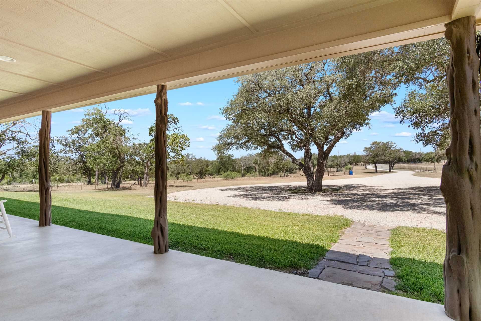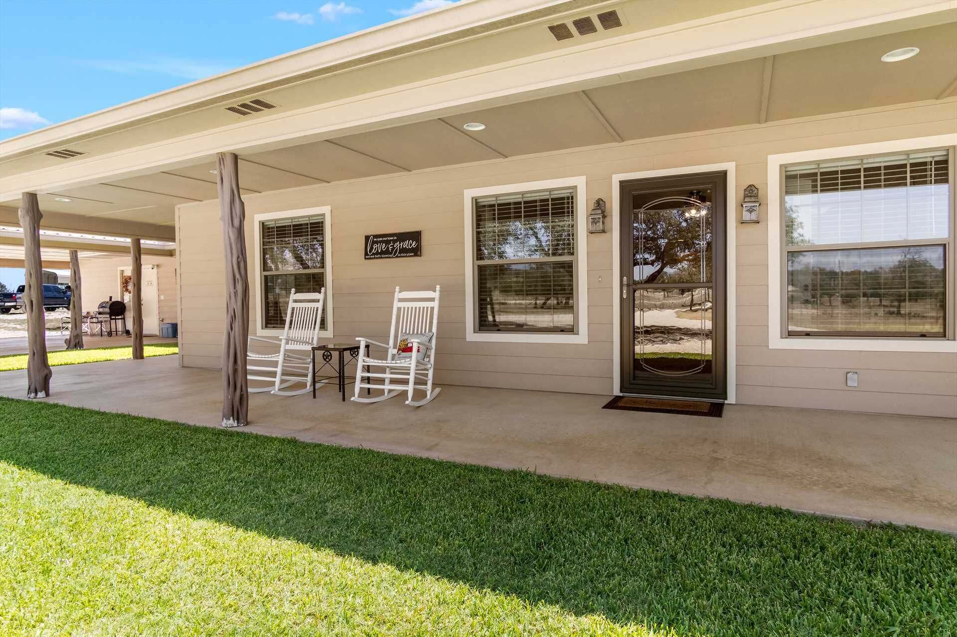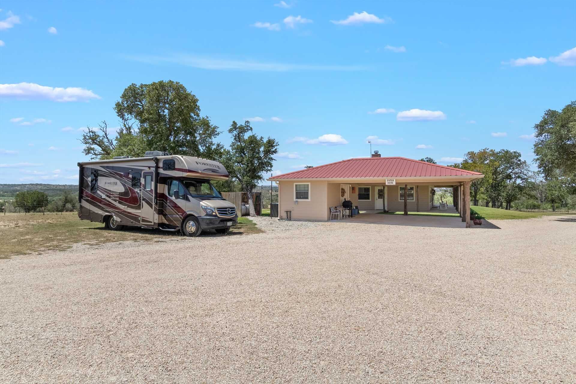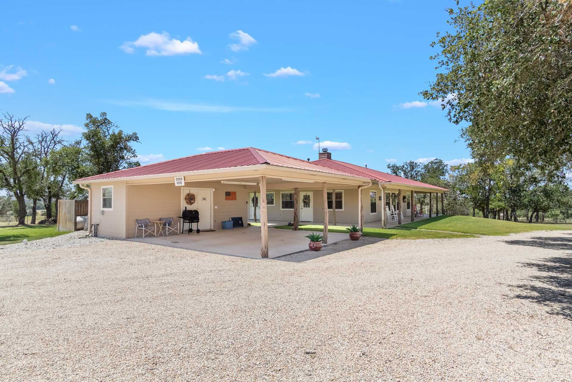 Omie's Ranch Haus in Fredericksburg Located just 10 miles form Fredericksburg, this three bedroom, and two-and-a-half bath spacious country home is the perfect location for both a family getaway or a gathering of friends.Gemutlichkeit! This German word means good cheer, and it's embodied by this warm and welcoming German Ranch Haus. "Omie" is German for "Grandma," and this was home to a sweet couple whose family and friends filled it for years. You can almost hear their hearty laughter! The mantle was built from a cedar tree, and its stump out back has the couple's names carved into it. Just ten miles from downtown Fredericksburg, this family weekend getaway is nestled in breathtaking Hill Country scenery.With three bedrooms, and two-and-a-half baths, Omie's Ranch Haus in Fredericksburg is the perfect location for a family getaway or a gathering of friends. It's quiet and remote, replete with wildlife and Hill Country views-and a telescope for stargazing! For modern amenities, it's appointed with a fully-furnished kitchen, fireplace, washer and dryer, TV with DVD player, and Wifi. The entire home is climate-controlled, with both heat and central air.The open floor plan here is perfect for gatherings of all kinds. The living room features several couches and recliners, and a gas fireplace. Nearby, there's a dining room table that seats four. This property comfortably sleeps up to eight with two king-sized beds, one queen-sized bed, and a roomy full-sized sleeper sofa in one of the bedrooms. Bed and bath linens are also provided.The kitchen radiates old-world charm without skimping on amenities. There's a fridge, microwave, stove, dishwasher, and Keurig coffeemaker (coffees and teas provided), as well as basic kitchen utensils. This kitchen was home to many meals and happy conversations-a tradition you're invited to continue!Outside, there's a two-car covered and detached carport right next to the house. There are also two RV hookups for water and electricity; black water disposal is not available.Surrounding the property are miles of paved country roads, making it perfect for hiking, biking, and motorcycle riding. There's ample shaded patio space, so you can enjoy the views in any weather. Out back is a fire pit-wood provided-and both front and back have plenty of patio furniture. There's even a corn hole (bags) game for you to enjoy!Omie's Haus is full of the warmth and joy that family and friends bring. Bring those you hold dear, and use this scenic location to build unforgettable memories of your Hill Country vacation! Check out what makes this one of the top picks for family vacations in Texas.The House:=========Three bedrooms, with two bedrooms featuring private doors to the porch.Configuration includes two King beds, one Queen bed, and one full-size bed.Living room equipped with four recliners and ceiling fans in all rooms.Two bathrooms, one with a walk-in shower and the other with a bathtub.Central air conditioning and heating system.Indoor gas fireplace for added comfort.Full kitchen equipped with a regular coffee maker, K-cups, pots, pans, cookie sheets, slow cooker, electric fry pan, electric griddle, cooking utensils, plates, glasses, and more.Appliances provided: Refrigerator, Stove, Microwave, Dishwasher.Amenities:========Keurig coffeemaker with assorted teas and coffees (no breakfast provided).Washer and dryer facilities available.Television with DVD player and Roku.Wireless Internet connectivity (WIFI) is available for your convenience.Outdoor fire pit with a stunning mountain view.Permission for hiking on the property.Charcoal grill for outdoor cooking.Wrap-around porch furnished with rockers and a porch swing, offering picturesque views and wildlife observation.Indoor entertainment includes board games; outdoor entertainment includes a Cornhole game on the back porch and a telescope for stargazing or wildlife viewing.Backyard patio with table and chairs under oak trees.The property includes a two-car carport for parking convenience.Two RV Hookups (water and electricity - 30 amp and 50 amp; no black water disposal).Host availability on the adjacent property if required.Rates and Property Details:====================Nightly rate specified for 2 guests, with complimentary stay for children under 2.Additional guest fee of $25 per day after the initial 2 guests, with a maximum of 8 guests.Children are welcome.RV hookups available at $50 per hookup, per day.Accessible amenities for individuals with disabilities are provided.Provision of towels and sheets, as well as hair dryers.Strict policies against smoking, pets, daily housekeeping, and discharging of firearms, fireworks, or ATVs.Variations in Hill Country river and lake water levels based on rainfall.Situated 10 miles outside of Fredericksburg.Located 20 miles outside of Kerrville, offering convenient access to various amenities including IHOP, Cracker Barrel, Starbucks, Fuddruckers, Chili's, Chick Fil A, and more.Miles of awesome paved county roads from house driveway for walking, bicycling or motorcycles.Fredericksburg:=============Wilkommen! Fredericksburg celebrates its German heritage with authentic cuisine, craft beer, wine, and a picturesque and historic downtown peppered with fascinating local shops. Surrounded by state parks, natural areas, and sites of historical interest, this Hill Country town offers something for everyone!Backroads ReservationsBandera, Texas Ask us at Backroads Reservations about our Hill Country Travel App, the best resource for traveling to the Hill Country! Find thoroughly researched and up-to-date information about dozens of towns, local businesses, events, parks, scenic drives, swimming holes, and much more. Now on the web and mobile!