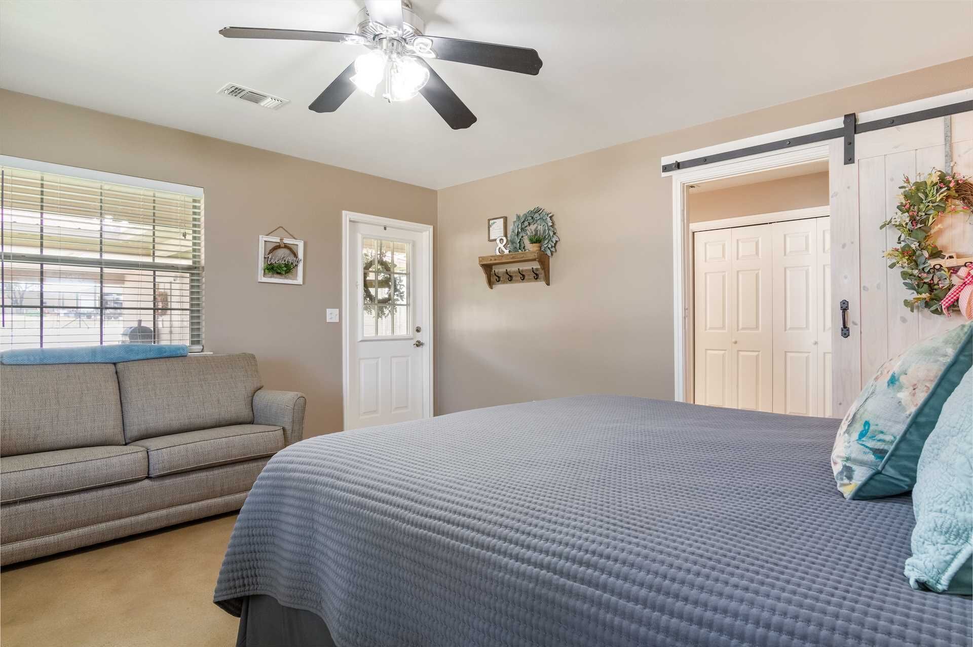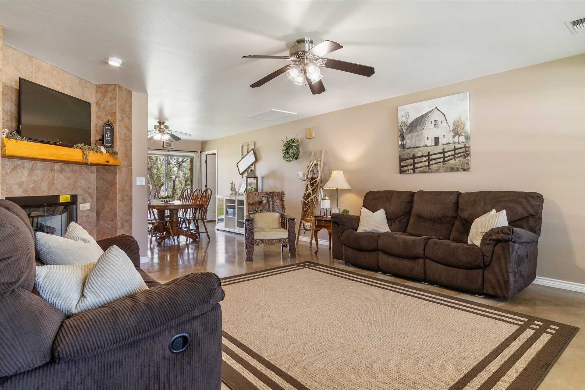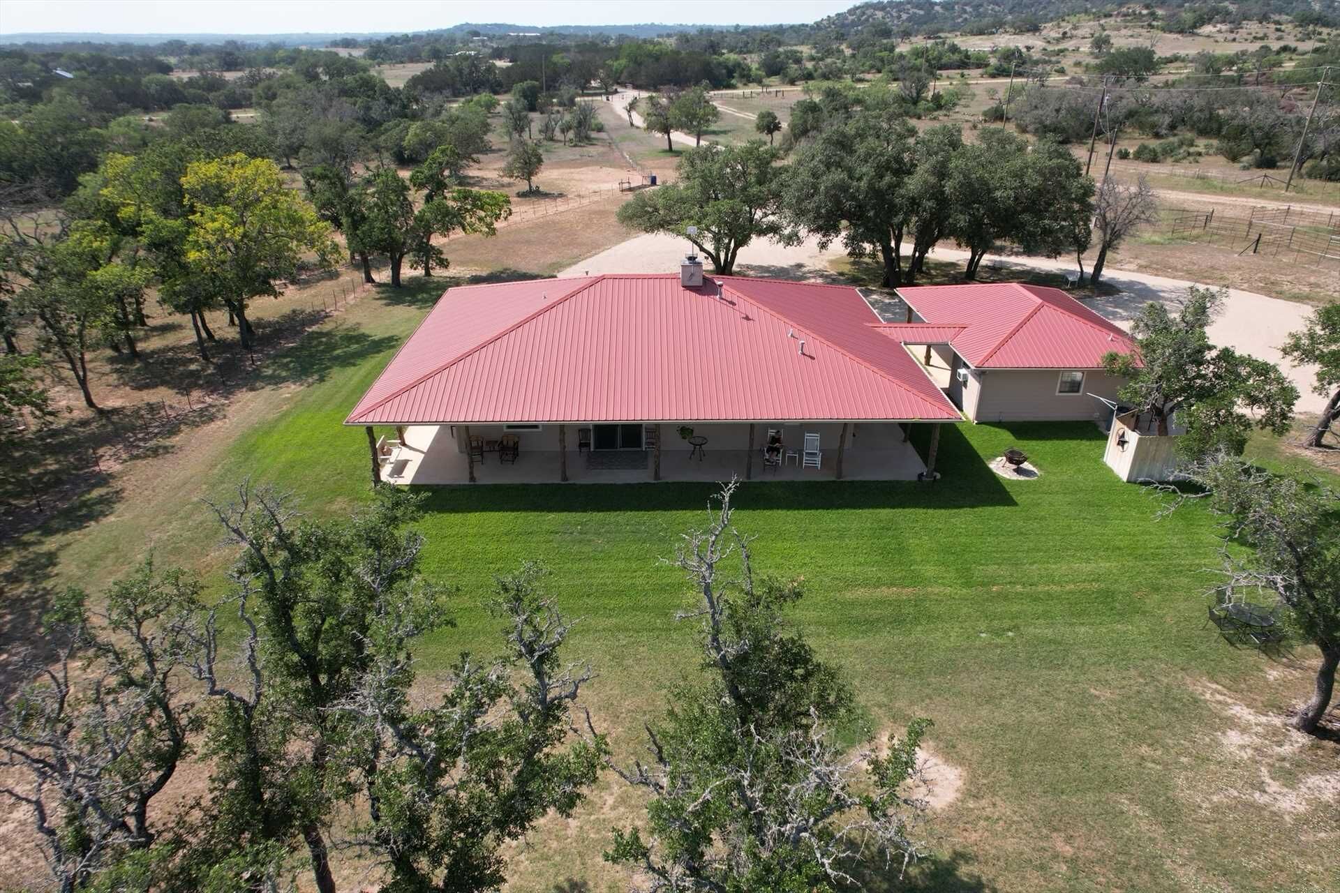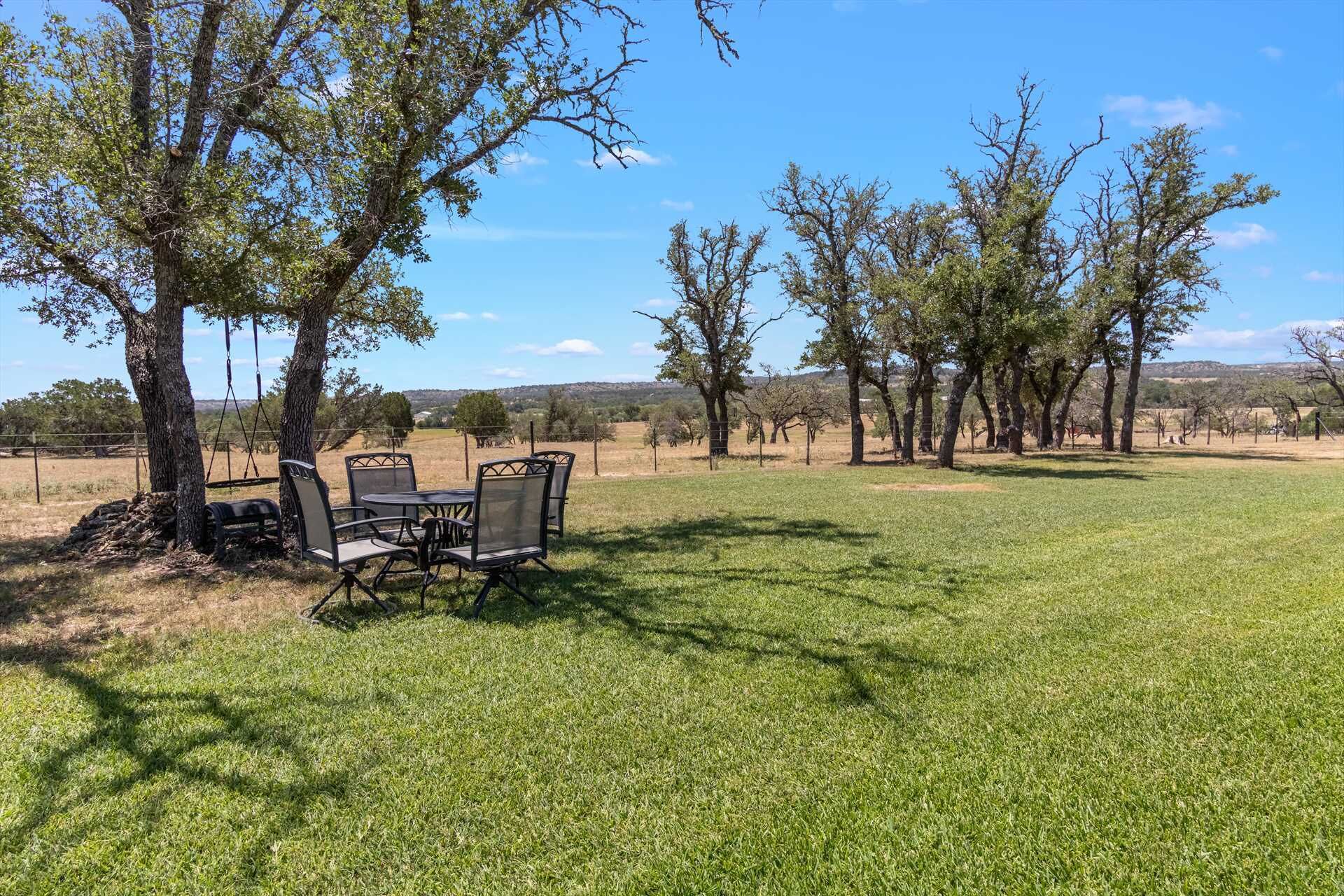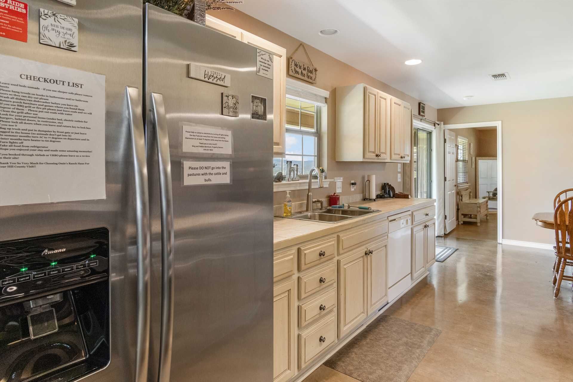 Omie's Ranch Haus in Fredericksburg Located just 10 miles form Fredericksburg, this three bedroom, and two-and-a-half bath spacious country home is the perfect location for both a family getaway or a gathering of friends.Gemutlichkeit! This German word means good cheer, and it's embodied by this warm and welcoming German Ranch Haus. "Omie" is German for "Grandma," and this was home to a sweet couple whose family and friends filled it for years. You can almost hear their hearty laughter! The mantle was built from a cedar tree, and its stump out back has the couple's names carved into it. Just ten miles from downtown Fredericksburg, this family weekend getaway is nestled in breathtaking Hill Country scenery.With three bedrooms, and two-and-a-half baths, Omie's Ranch Haus in Fredericksburg is the perfect location for a family getaway or a gathering of friends. It's quiet and remote, replete with wildlife and Hill Country views-and a telescope for stargazing! For modern amenities, it's appointed with a fully-furnished kitchen, fireplace, washer and dryer, TV with DVD player, and Wifi. The entire home is climate-controlled, with both heat and central air.The open floor plan here is perfect for gatherings of all kinds. The living room features several couches and recliners, and a gas fireplace. Nearby, there's a dining room table that seats four. This property comfortably sleeps up to eight with two king-sized beds, one queen-sized bed, and a roomy full-sized sleeper sofa in one of the bedrooms. Bed and bath linens are also provided.The kitchen radiates old-world charm without skimping on amenities. There's a fridge, microwave, stove, dishwasher, and Keurig coffeemaker (coffees and teas provided), as well as basic kitchen utensils. This kitchen was home to many meals and happy conversations-a tradition you're invited to continue!Outside, there's a two-car covered and detached carport right next to the house. There are also two RV hookups for water and electricity; black water disposal is not available.Surrounding the property are miles of paved country roads, making it perfect for hiking, biking, and motorcycle riding. There's ample shaded patio space, so you can enjoy the views in any weather. Out back is a fire pit-wood provided-and both front and back have plenty of patio furniture. There's even a corn hole (bags) game for you to enjoy!Omie's Haus is full of the warmth and joy that family and friends bring. Bring those you hold dear, and use this scenic location to build unforgettable memories of your Hill Country vacation! Check out what makes this one of the top picks for family vacations in Texas.The House:=========Three bedrooms, with two bedrooms featuring private doors to the porch.Configuration includes two King beds, one Queen bed, and one full-size bed.Living room equipped with four recliners and ceiling fans in all rooms.Two bathrooms, one with a walk-in shower and the other with a bathtub.Central air conditioning and heating system.Indoor gas fireplace for added comfort.Full kitchen equipped with a regular coffee maker, K-cups, pots, pans, cookie sheets, slow cooker, electric fry pan, electric griddle, cooking utensils, plates, glasses, and more.Appliances provided: Refrigerator, Stove, Microwave, Dishwasher.Amenities:========Keurig coffeemaker with assorted teas and coffees (no breakfast provided).Washer and dryer facilities available.Television with DVD player and Roku.Wireless Internet connectivity (WIFI) is available for your convenience.Outdoor fire pit with a stunning mountain view.Permission for hiking on the property.Charcoal grill for outdoor cooking.Wrap-around porch furnished with rockers and a porch swing, offering picturesque views and wildlife observation.Indoor entertainment includes board games; outdoor entertainment includes a Cornhole game on the back porch and a telescope for stargazing or wildlife viewing.Backyard patio with table and chairs under oak trees.The property includes a two-car carport for parking convenience.Two RV Hookups (water and electricity - 30 amp and 50 amp; no black water disposal).Host availability on the adjacent property if required.Rates and Property Details:====================Nightly rate specified for 2 guests, with complimentary stay for children under 2.Additional guest fee of $25 per day after the initial 2 guests, with a maximum of 8 guests.Children are welcome.RV hookups available at $50 per hookup, per day.Accessible amenities for individuals with disabilities are provided.Provision of towels and sheets, as well as hair dryers.Strict policies against smoking, pets, daily housekeeping, and discharging of firearms, fireworks, or ATVs.Variations in Hill Country river and lake water levels based on rainfall.Situated 10 miles outside of Fredericksburg.Located 20 miles outside of Kerrville, offering convenient access to various amenities including IHOP, Cracker Barrel, Starbucks, Fuddruckers, Chili's, Chick Fil A, and more.Miles of awesome paved county roads from house driveway for walking, bicycling or motorcycles.Fredericksburg:=============Wilkommen! Fredericksburg celebrates its German heritage with authentic cuisine, craft beer, wine, and a picturesque and historic downtown peppered with fascinating local shops. Surrounded by state parks, natural areas, and sites of historical interest, this Hill Country town offers something for everyone!Backroads ReservationsBandera, Texas Ask us at Backroads Reservations about our Hill Country Travel App, the best resource for traveling to the Hill Country! Find thoroughly researched and up-to-date information about dozens of towns, local businesses, events, parks, scenic drives, swimming holes, and much more. Now on the web and mobile!