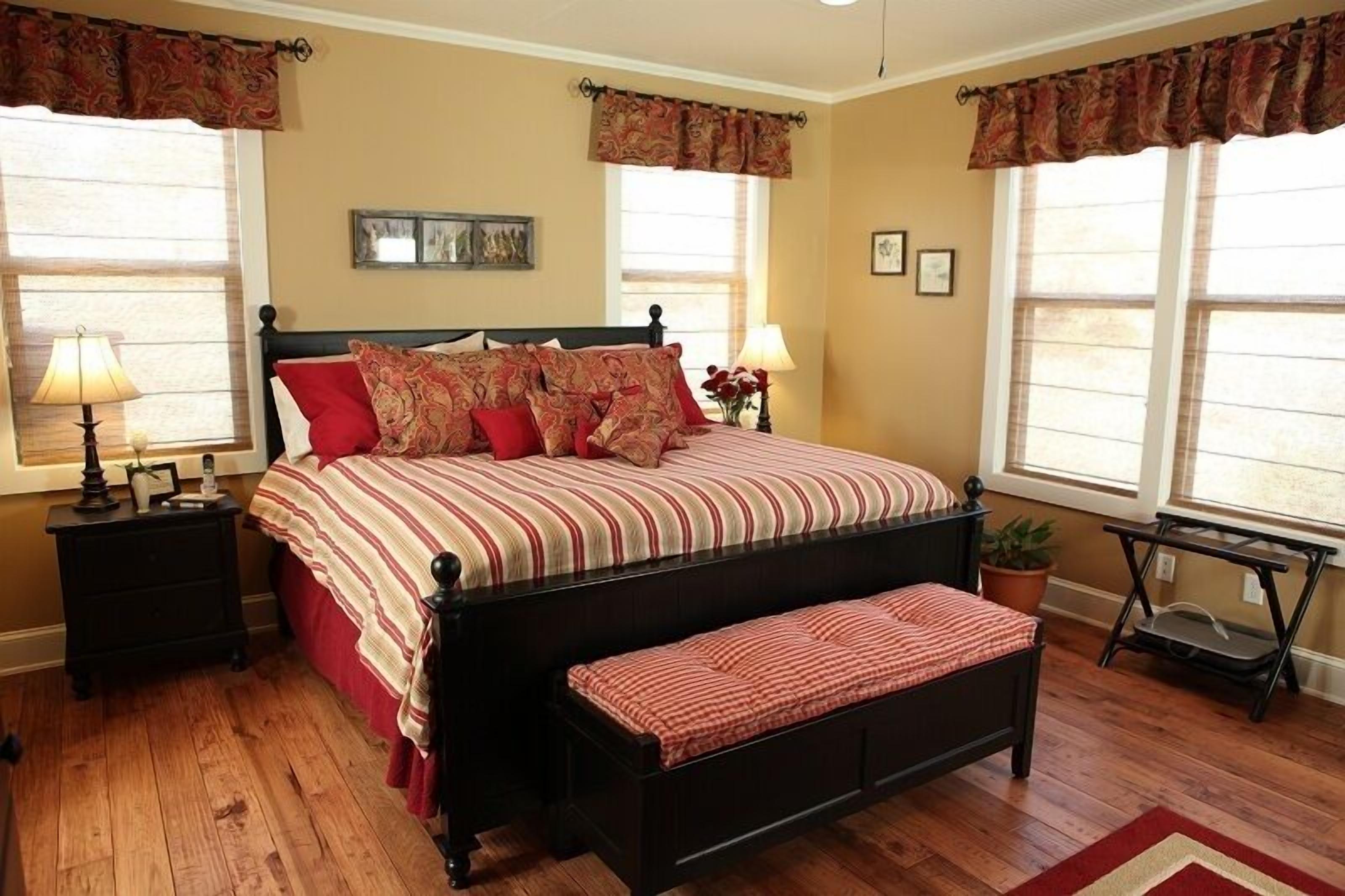 Guest King Room - Bella Vista Cottage Guest bedroom (only available if the reservation is for 3 or more people) also features a King bed with a handmade mattress, 9’ beadboard ceiling, and hand-scraped Pecan wood floors. It has its own walk-in closet and luxurious bathrobes. The bathroom includes a large, bright and spacious spa shower, spa bath/shower soaps, shampoo and conditioner, and a large s...