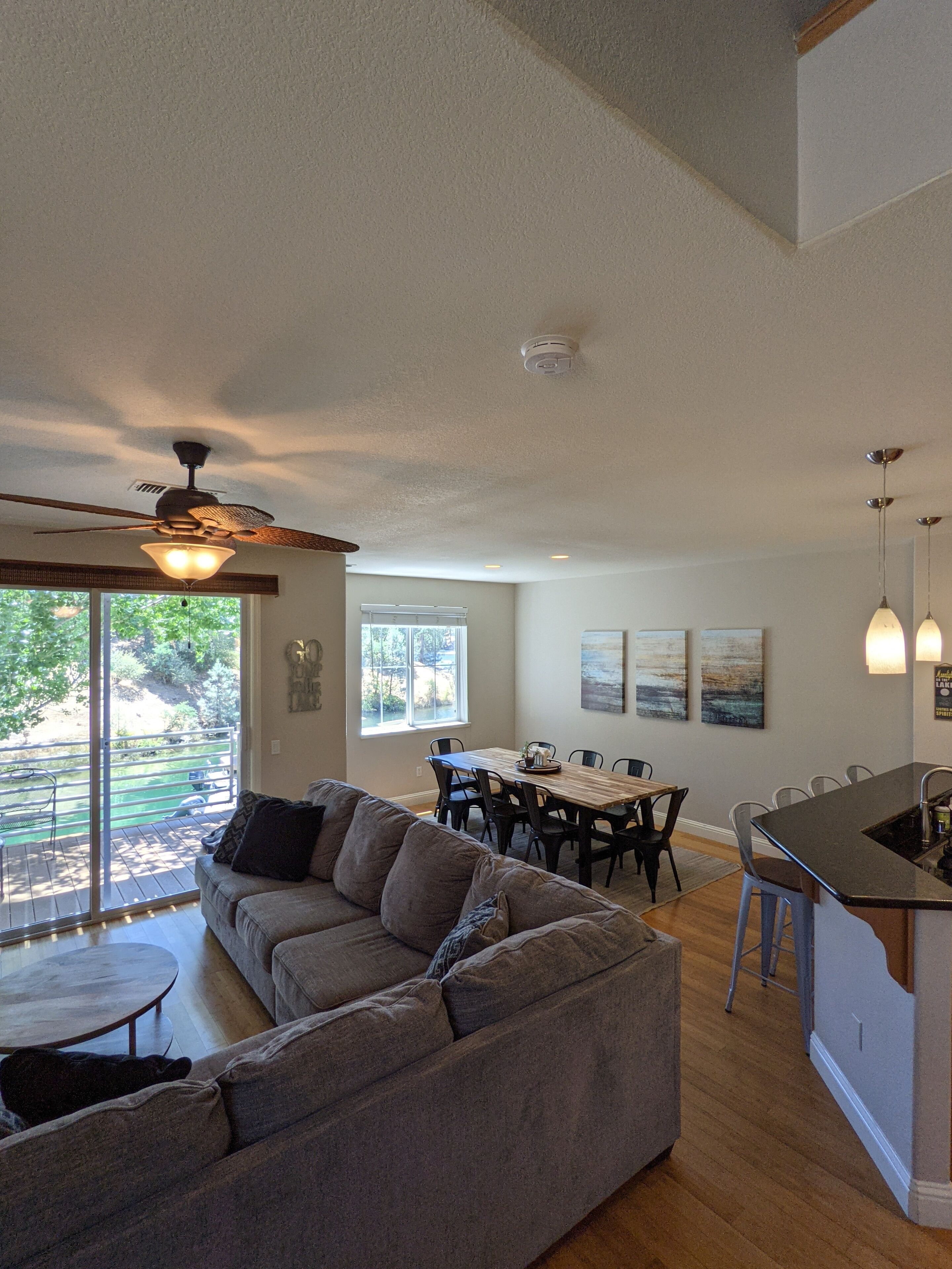 On the Lake at Drifters Marina! Waterfront duet home, at Drifter's Marina, is one of the few legal properties capable of being a daily/weekly vacation rental on the lake. The Main level has open floor plan with kitchen, dining and living areas, plus a large deck over looking the lake. The deck is shaded and perfect for BBQ's or having cocktails. The Upper level has a spacious Master Bedroom with a balcony and gorgeous Master Bath with jetted tub, separate shower, & walk in closet. 2 additional bedrooms, plus a loft with a sleeper sofa, and a large full bath that is separated for many people to enjoy at once with privacy! There's a laundry room with washer/dryer in the event you need to do laundry. Kid friendly as we supply board games, puzzles, DVD's, & sleds for the winter. 2 Car Garage (only 1 space in the garage currently) and driveway provide the space for your boat and vehicles. Walk to Drifter's Restaurant & Marina, but know you're far enough away for peace & quiet. Enjoy the best of Lake Tulloch!!
